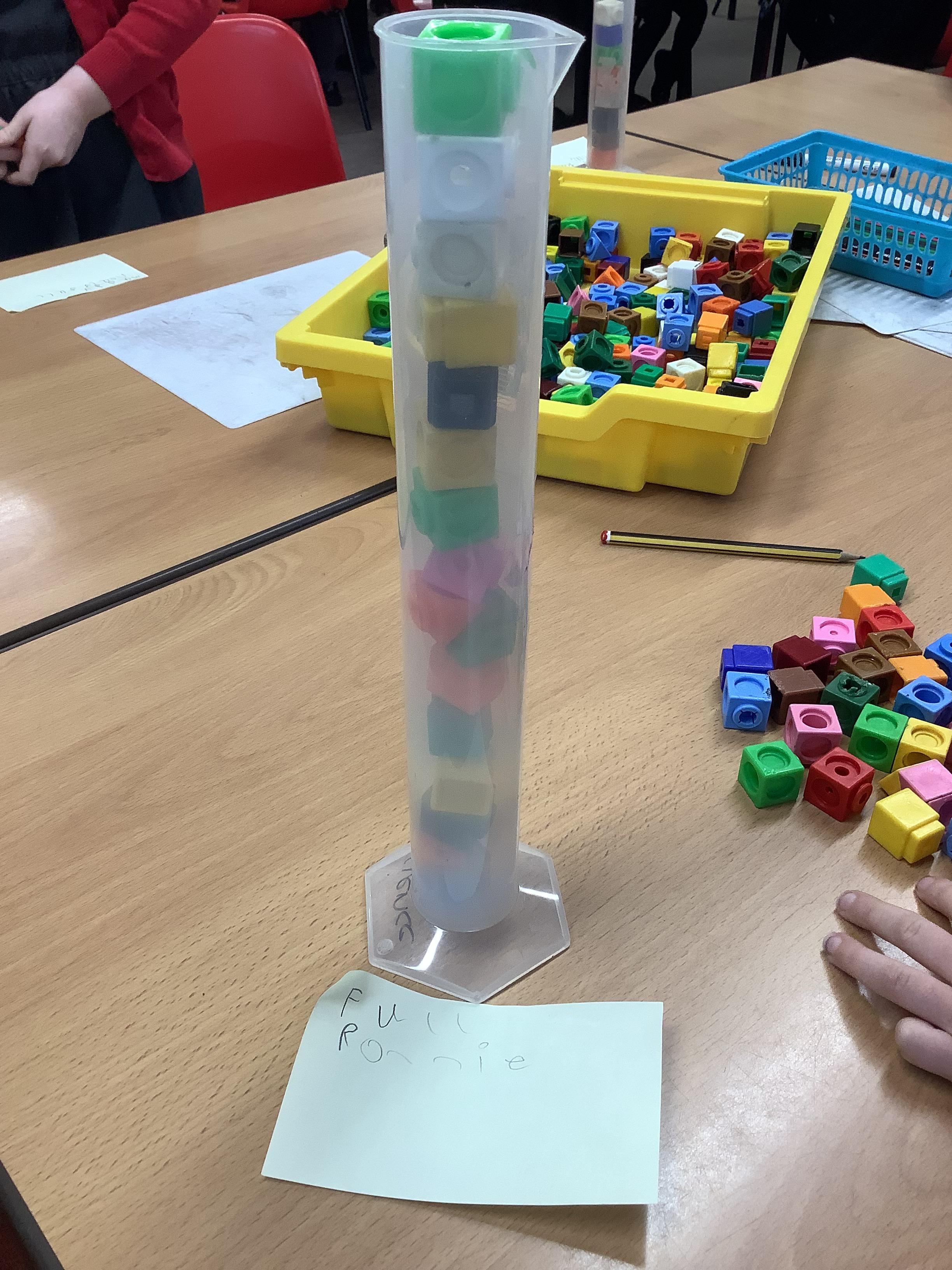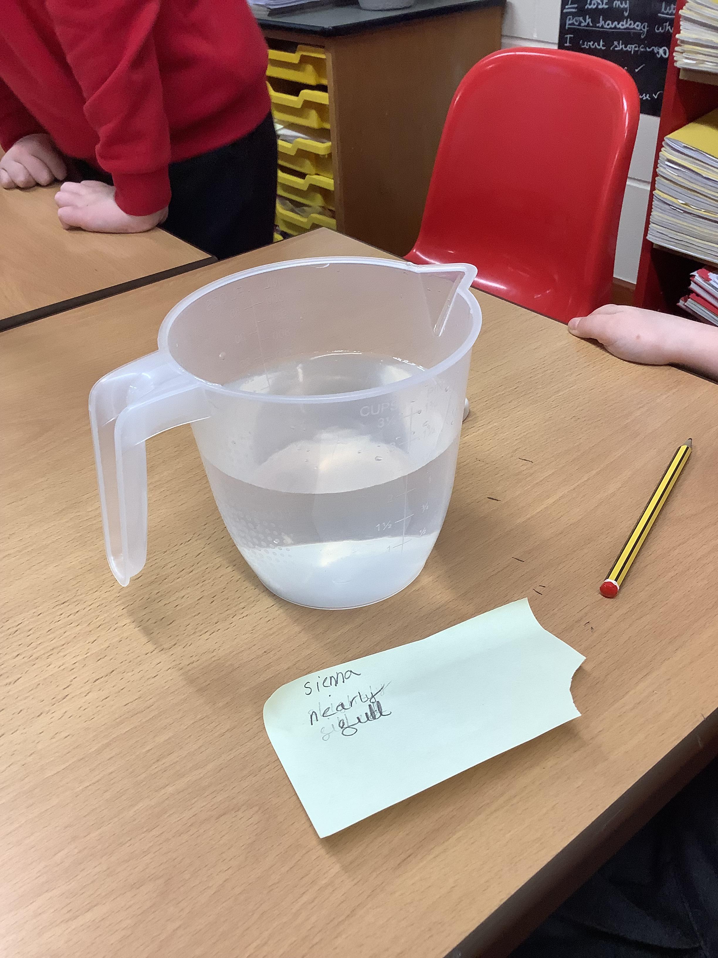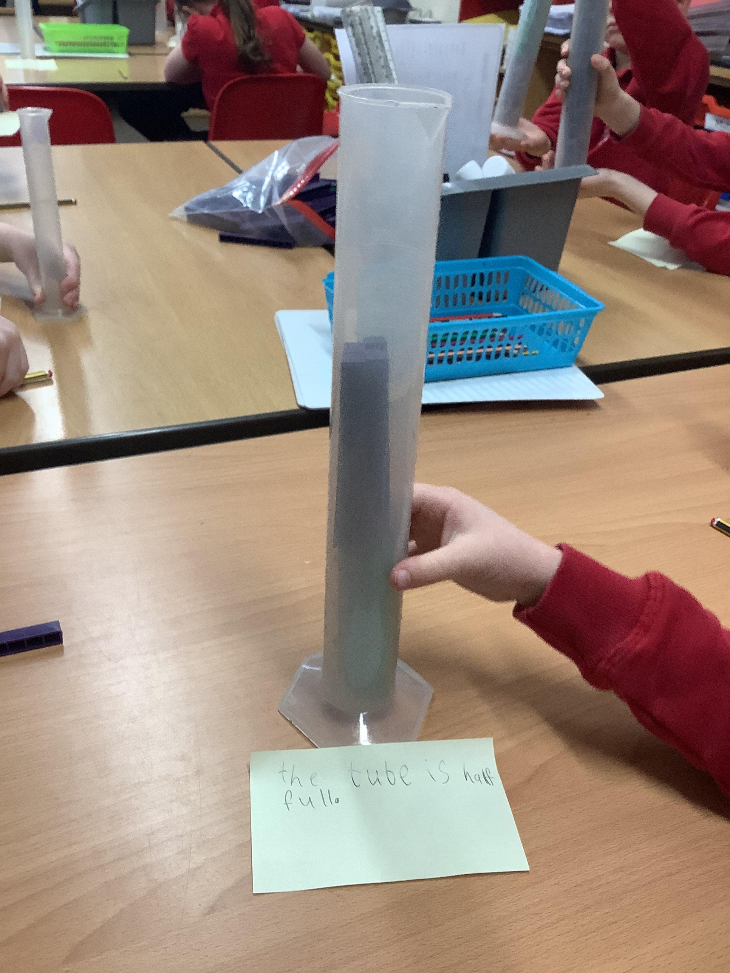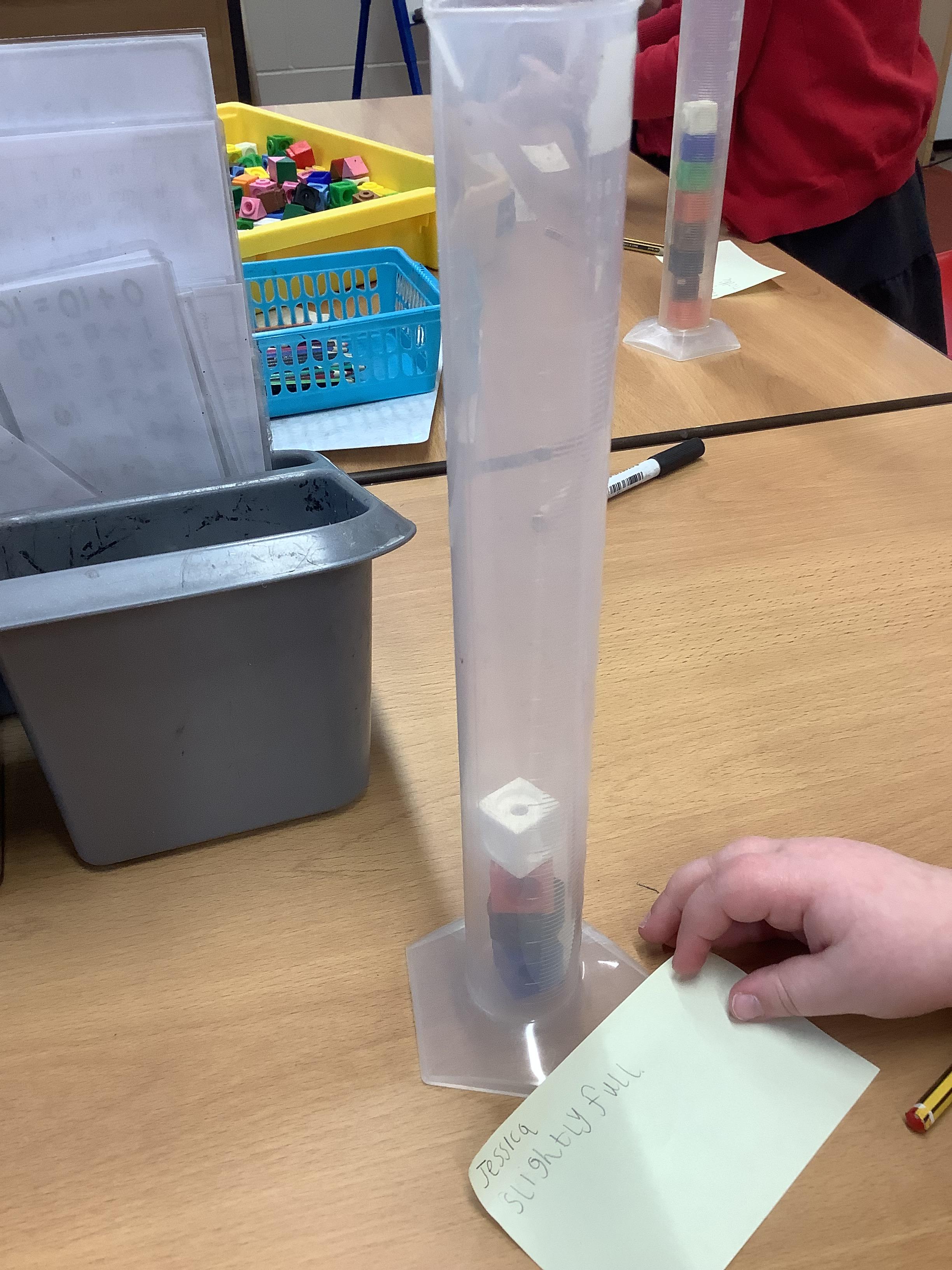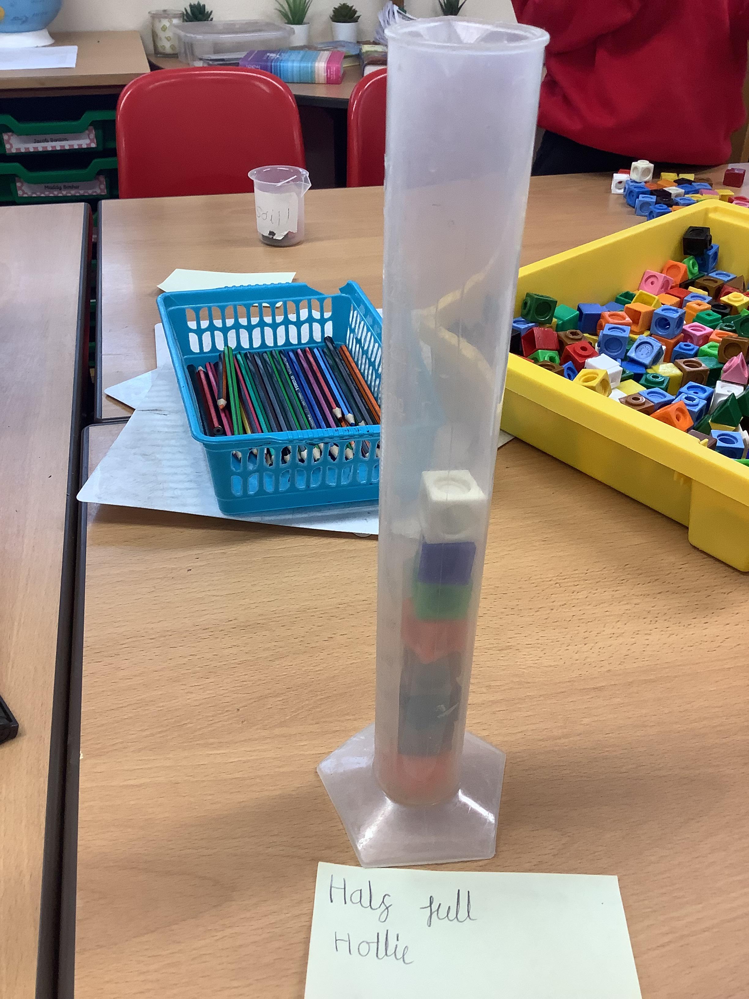 This week the children are learning about volume and capacity. They started by filling different sized containers with different amounts of volume and using the vocabulary, full, empty, half full, nearly full and slightly full.