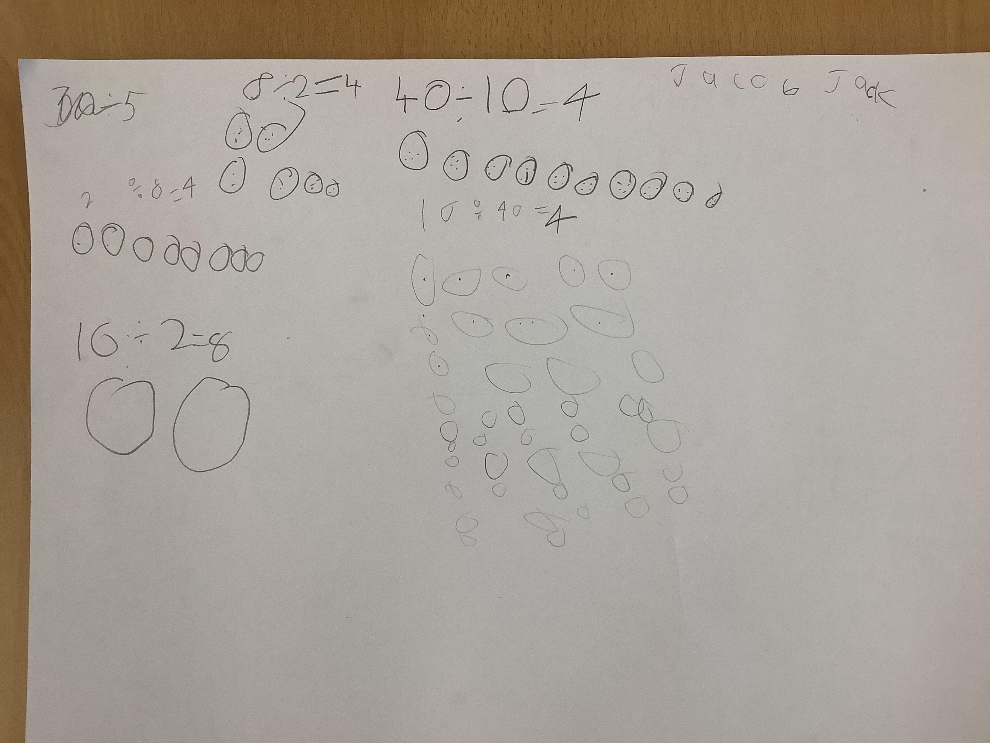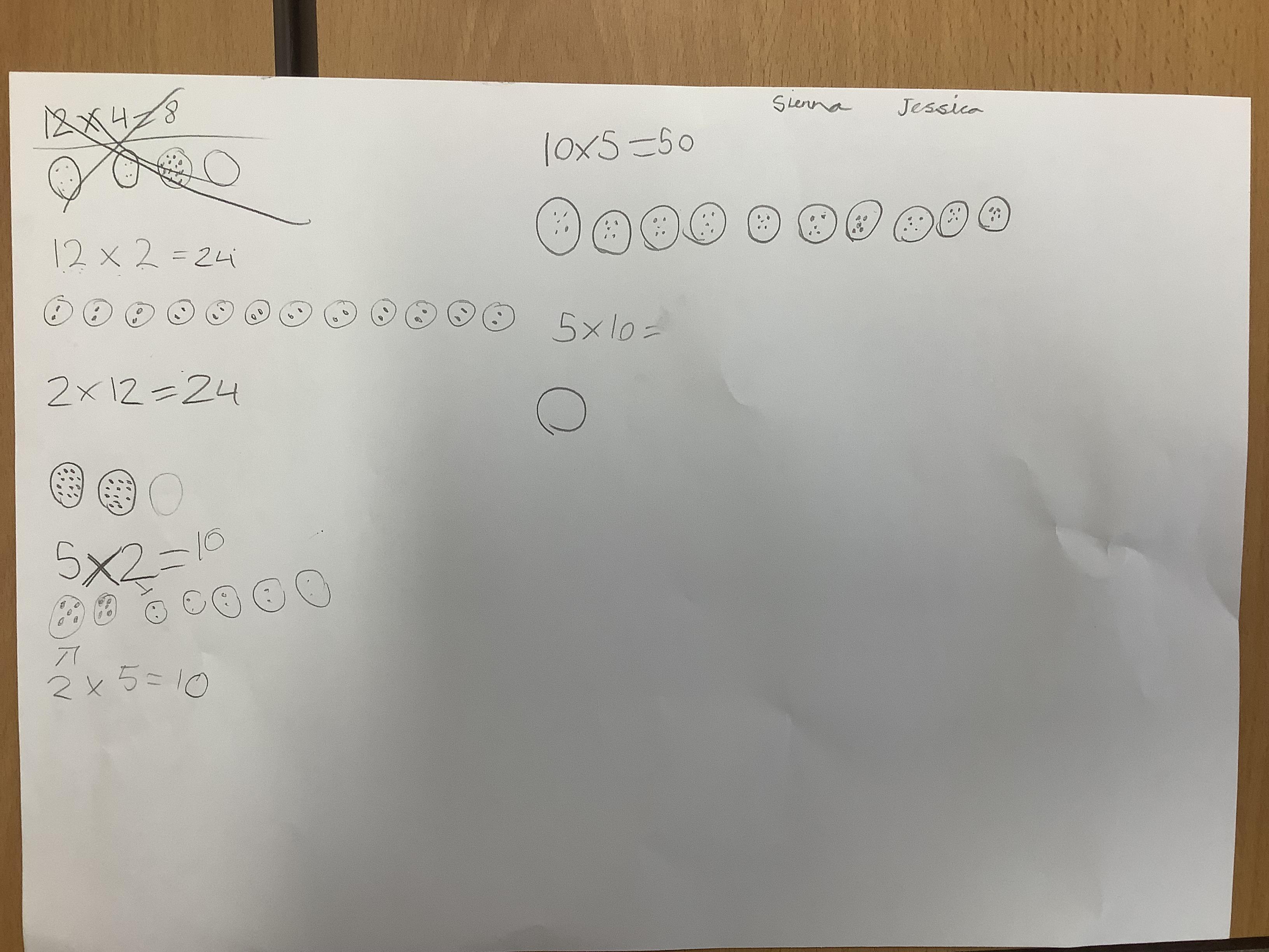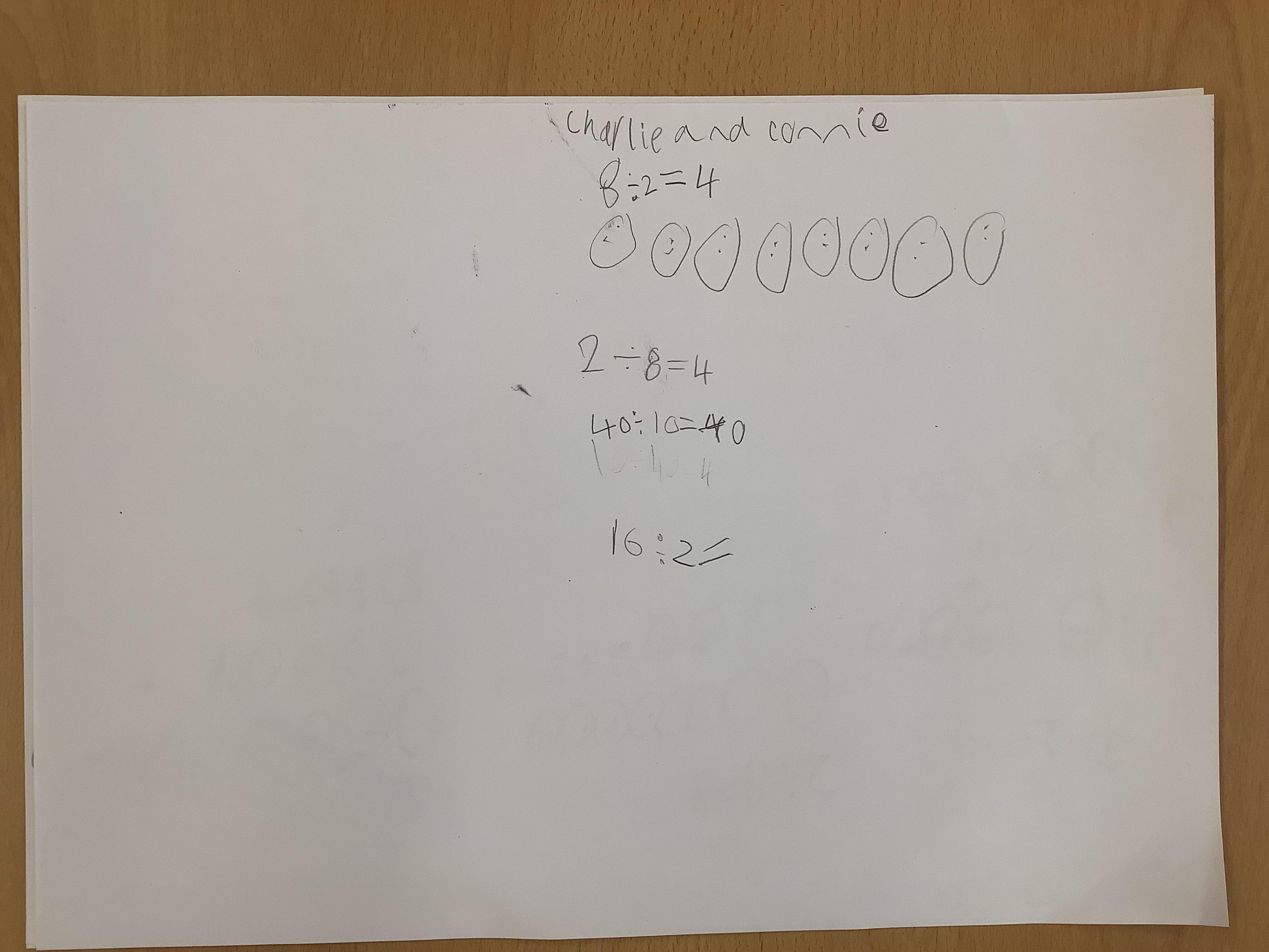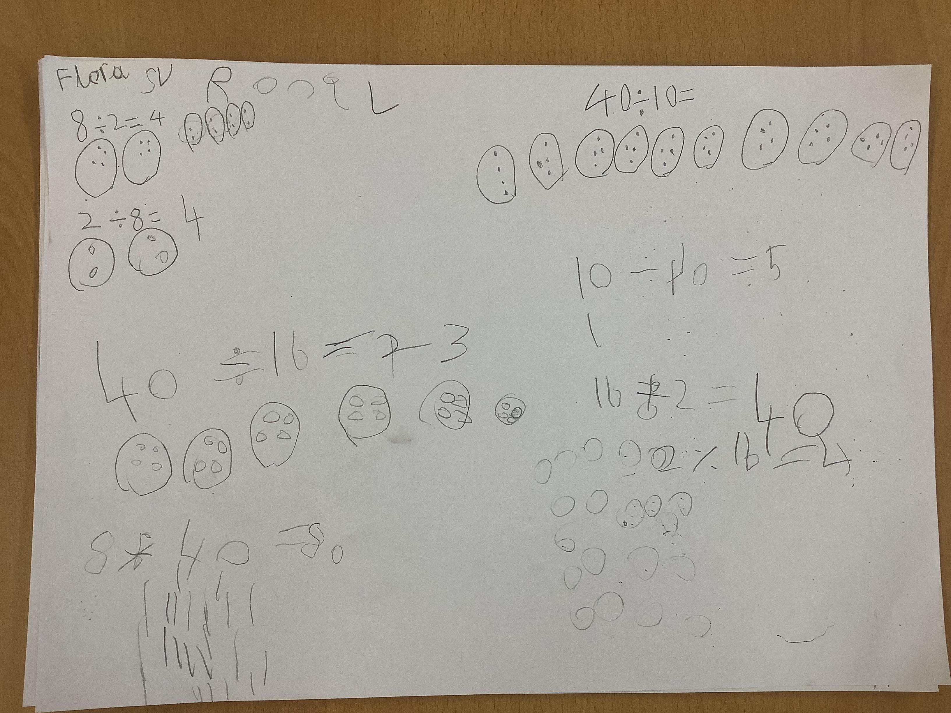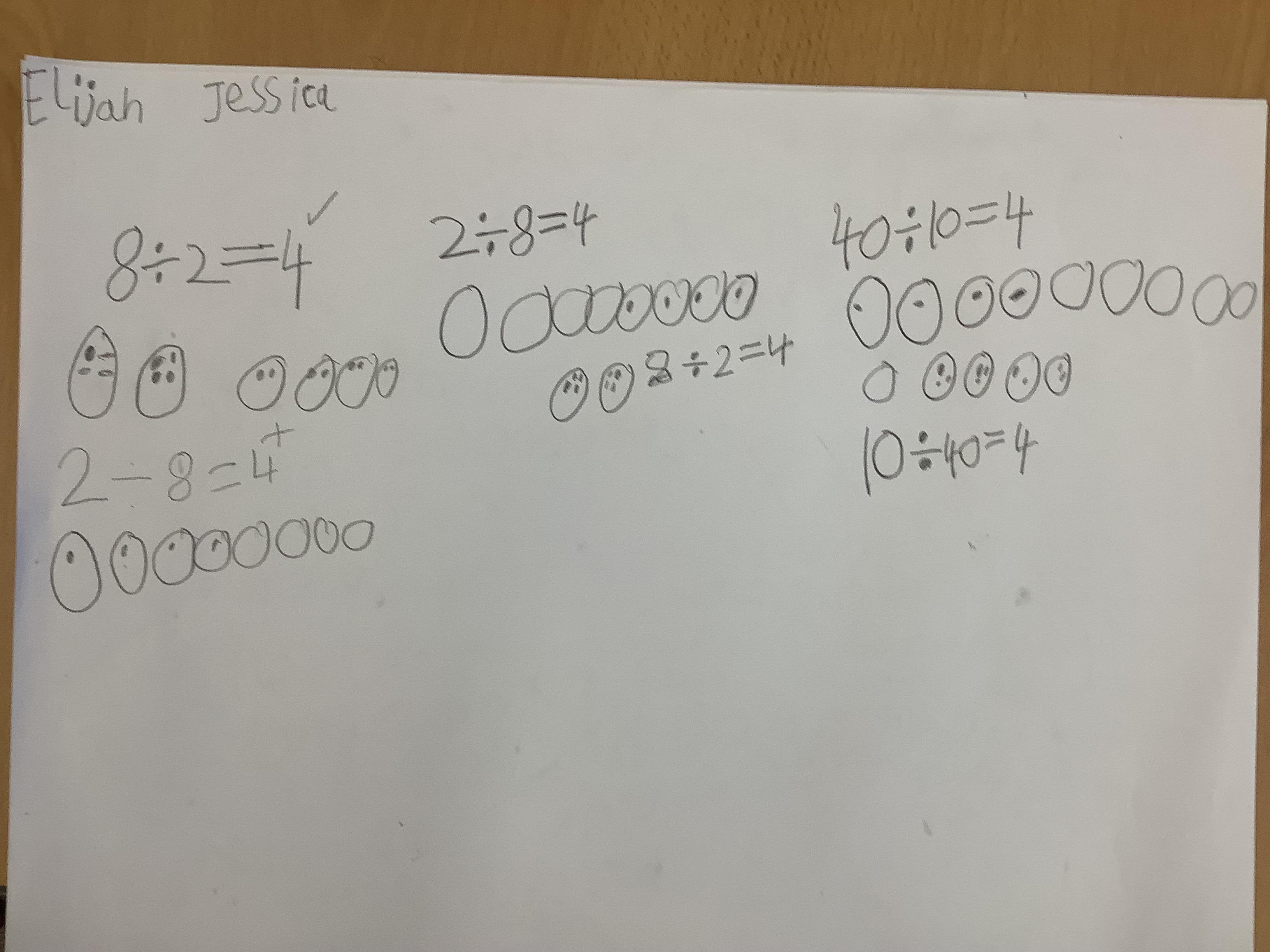 Children continued to investigate whether division is commutative by using sharing and grouping calculations to work out the answers and the swapping the calculation around to see if it could still be solved. They have discovered that multiplication is commutative but division isn't!