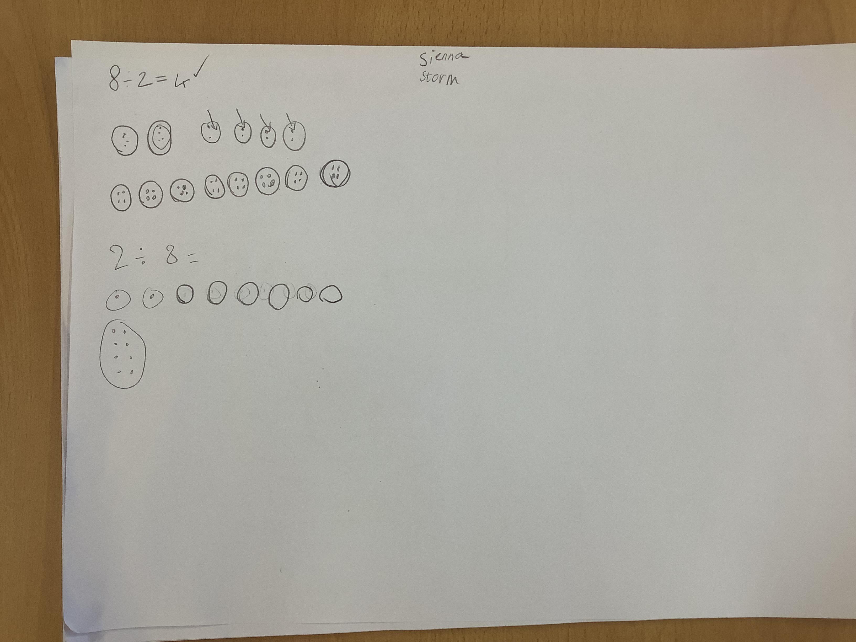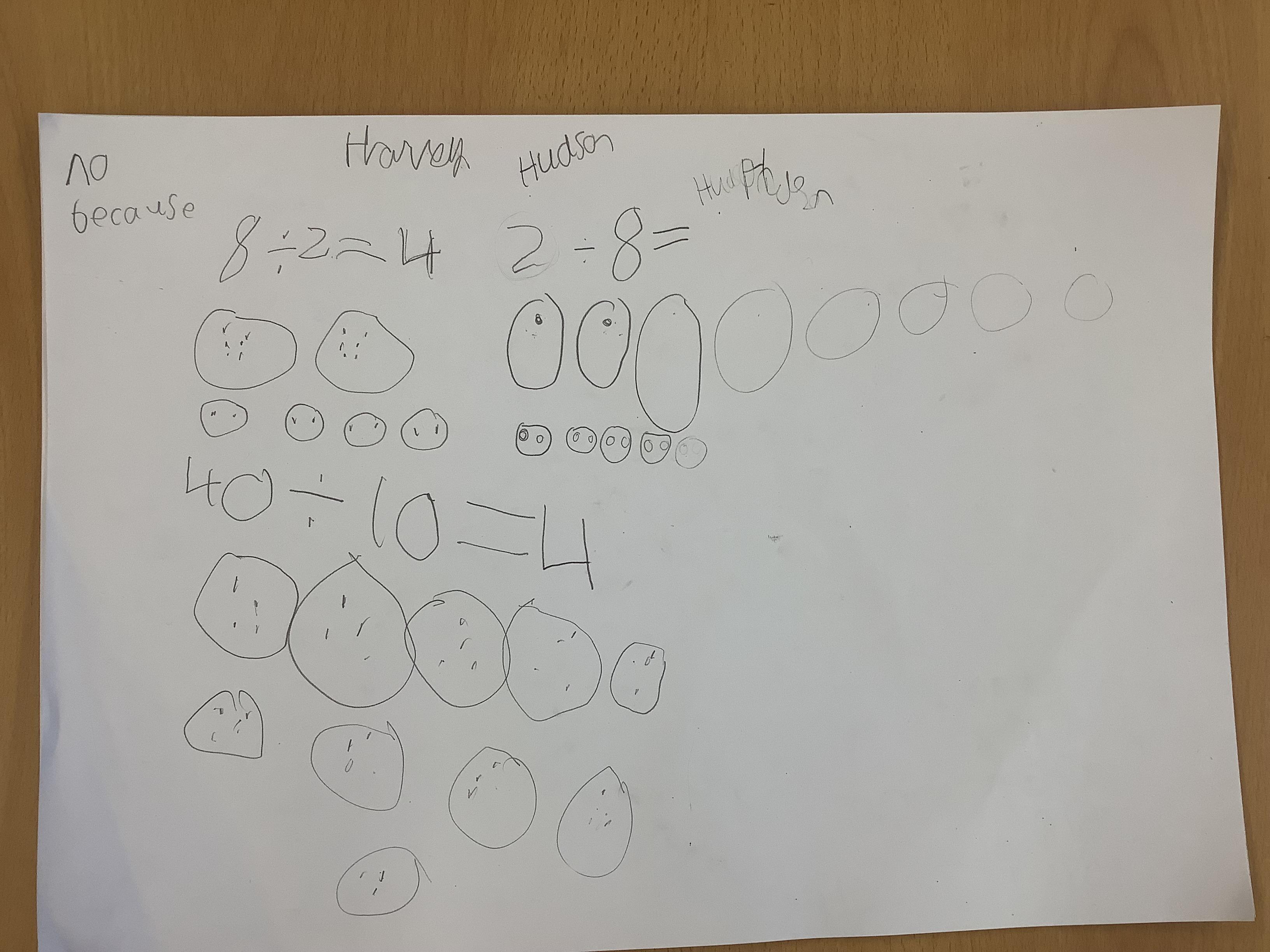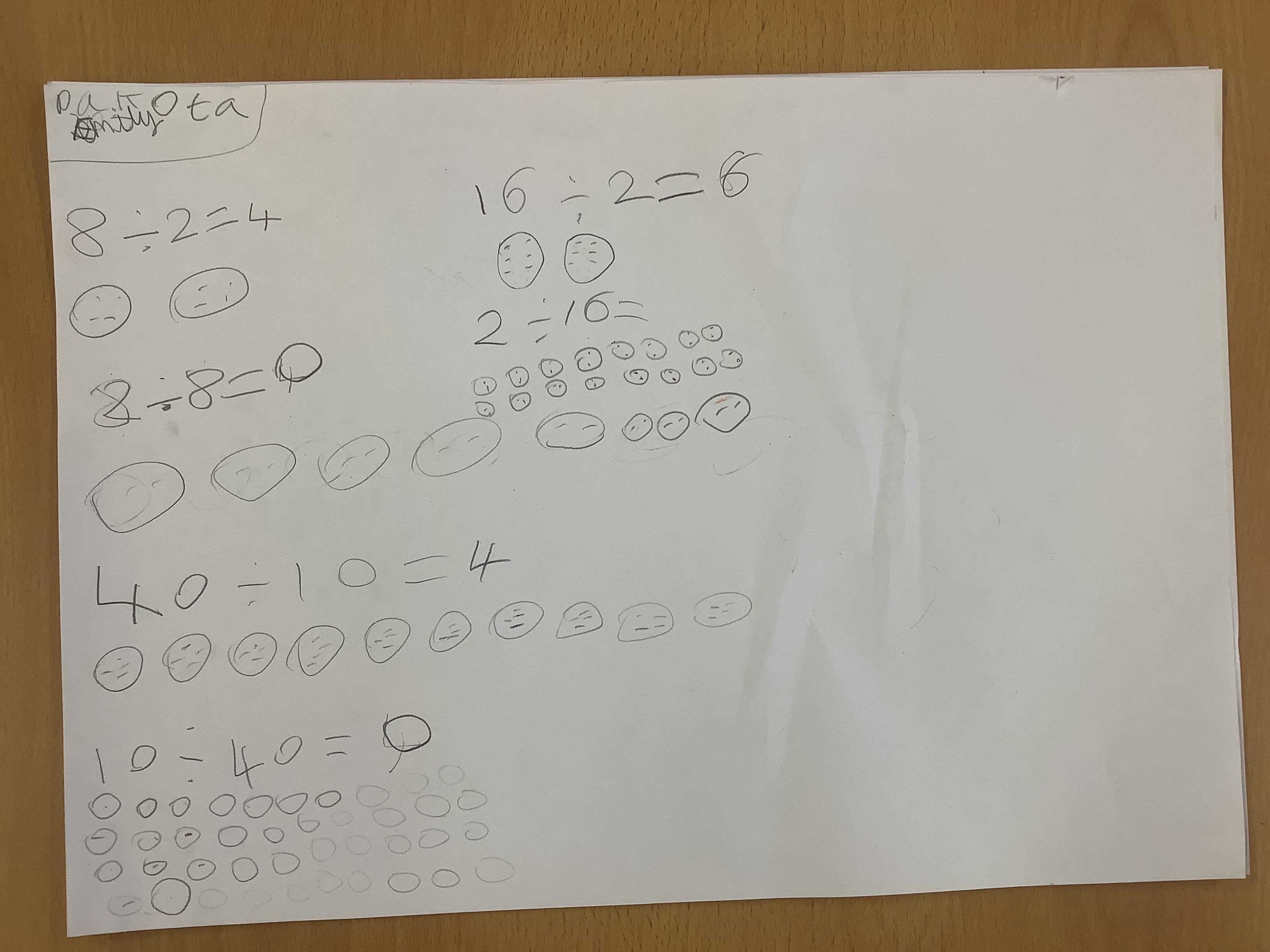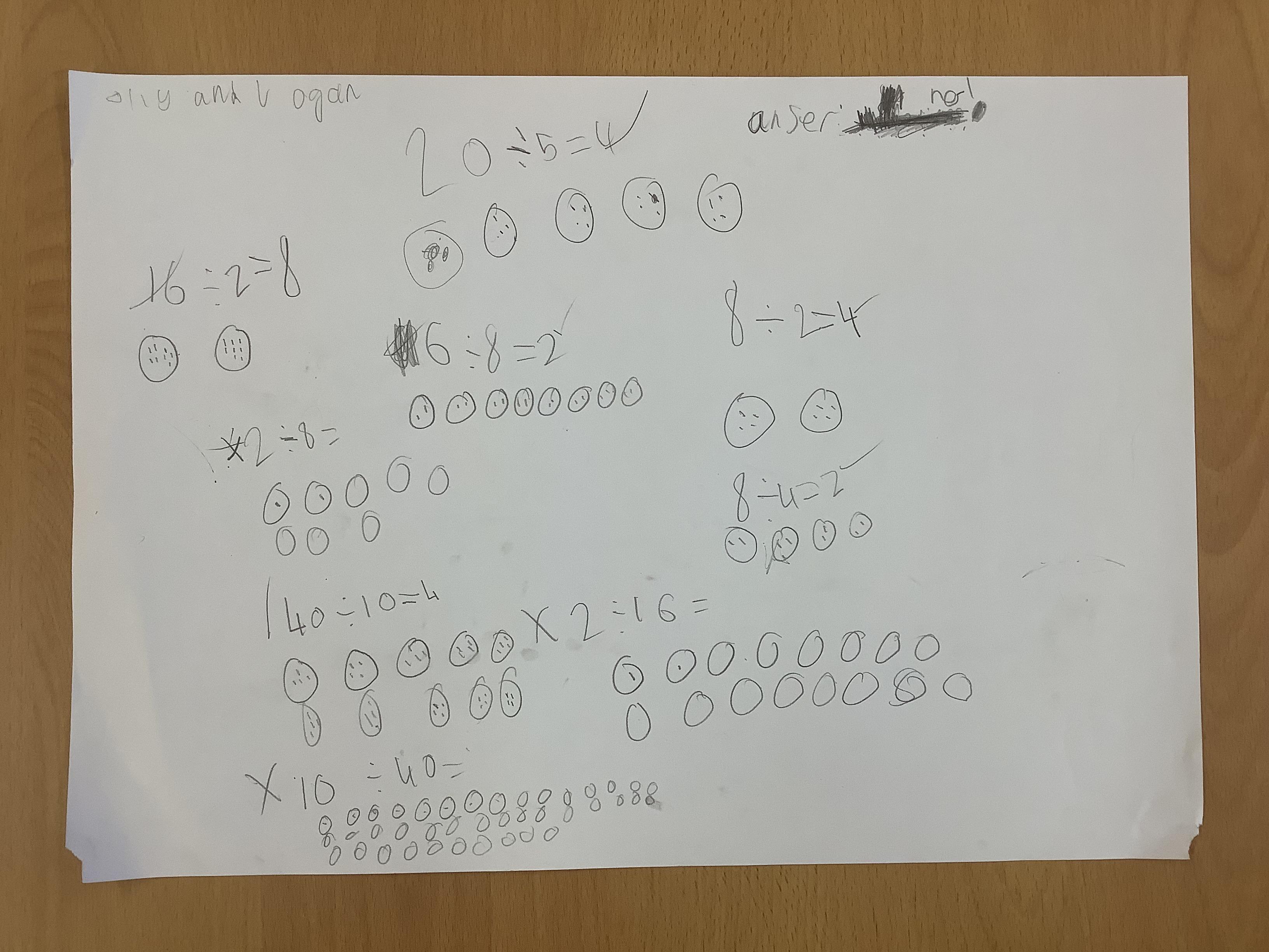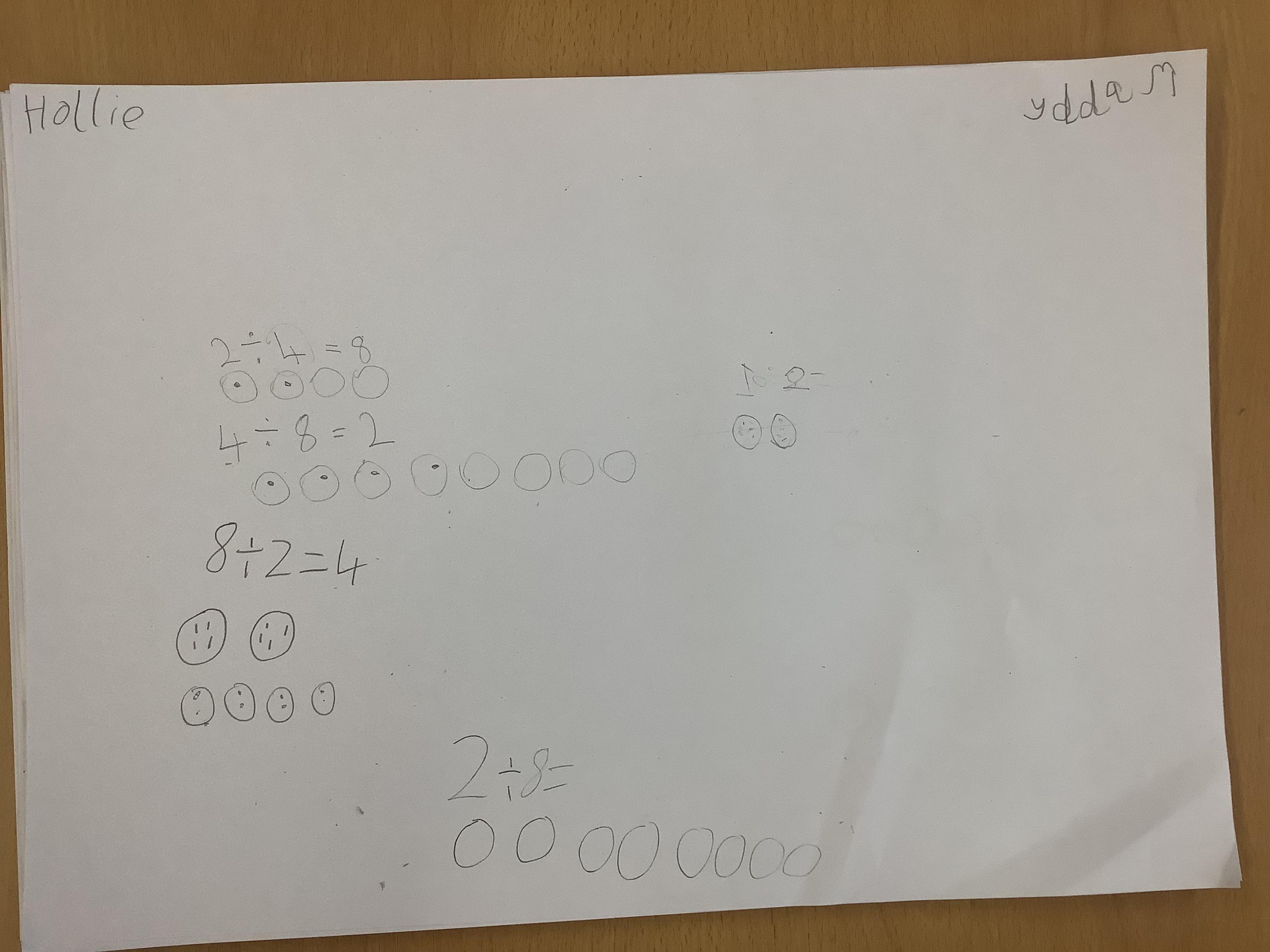 Children continued to investigate whether division is commutative by using sharing and grouping calculations to work out the answers and the swapping the calculation around to see if it could still be solved. They have discovered that multiplication is commutative but division isn't!