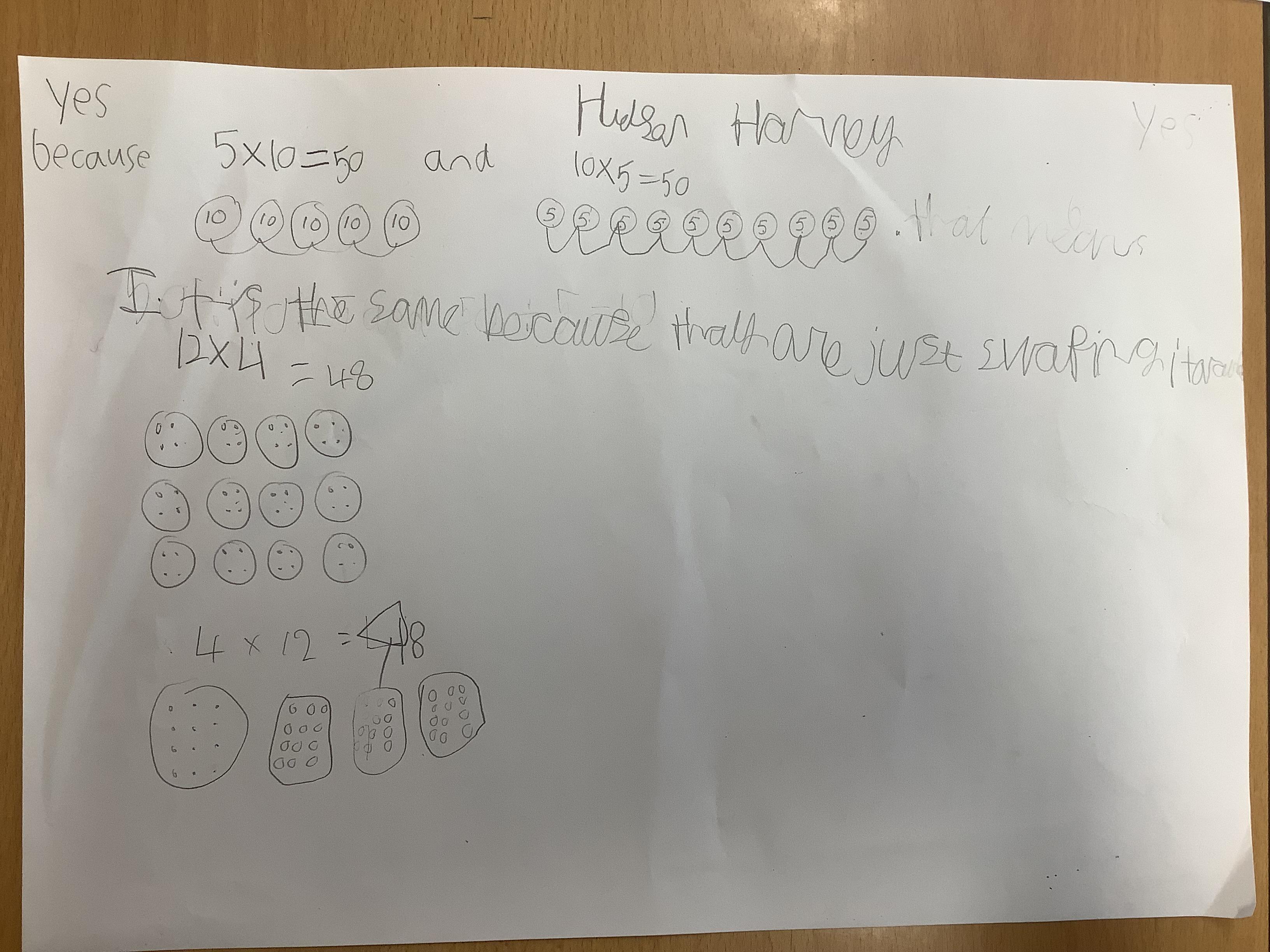 This week we have completed our learning of multiplication and division by looking at commutativity. Children worked in pairs to investigate whether multiplication is commutative or not. They had to pick calculations and see if they got the same answer if the calculation was switched around.