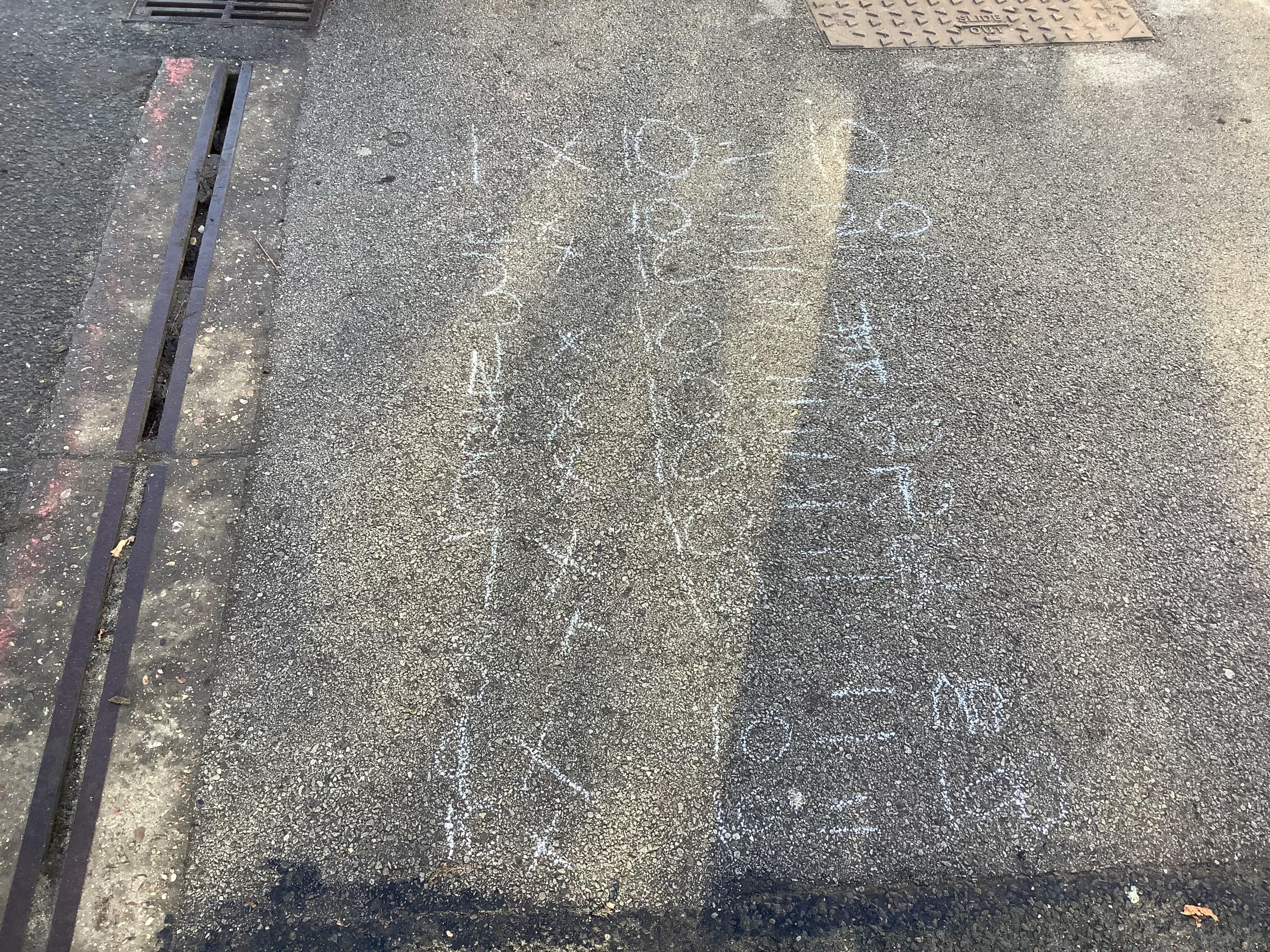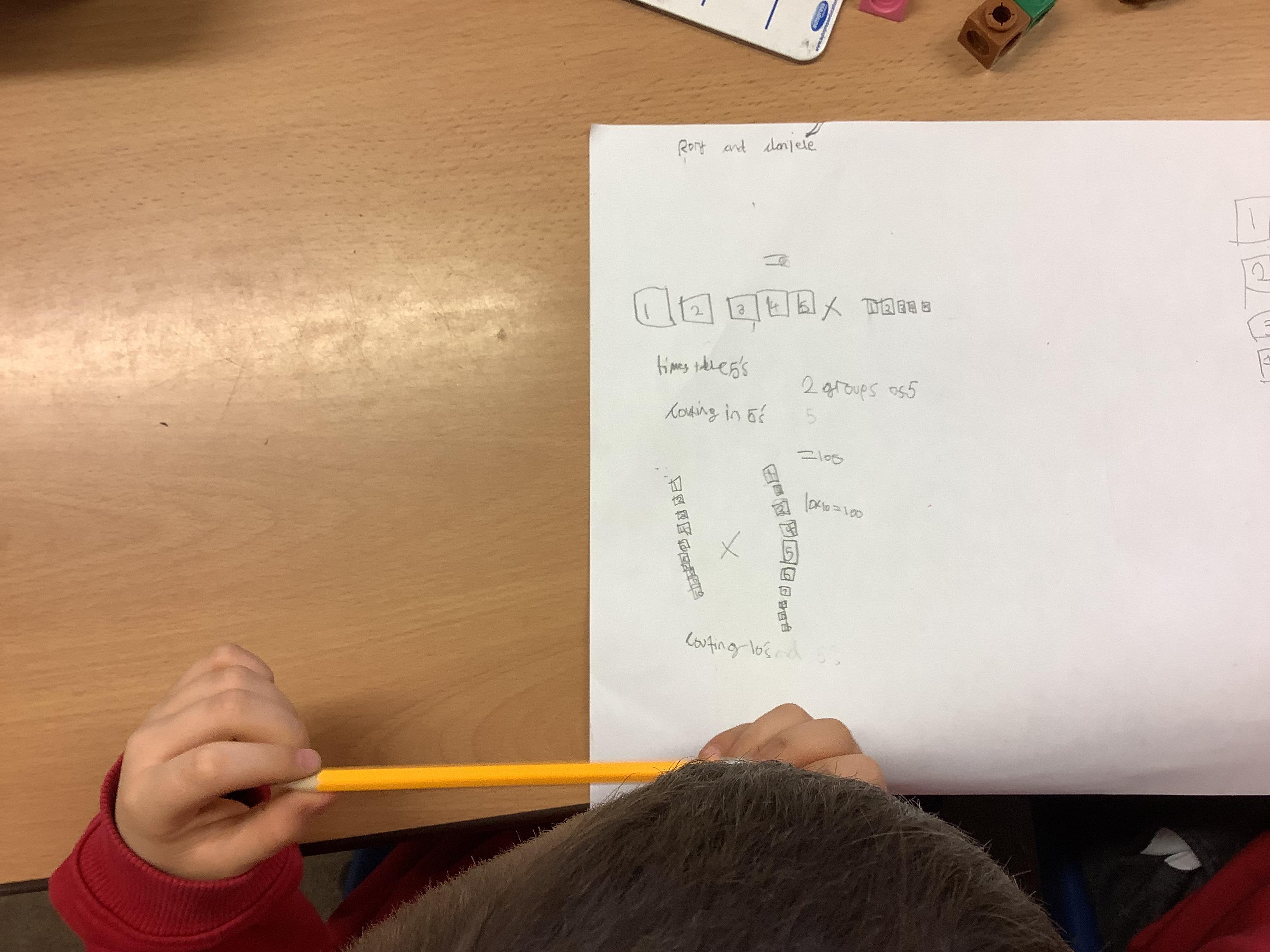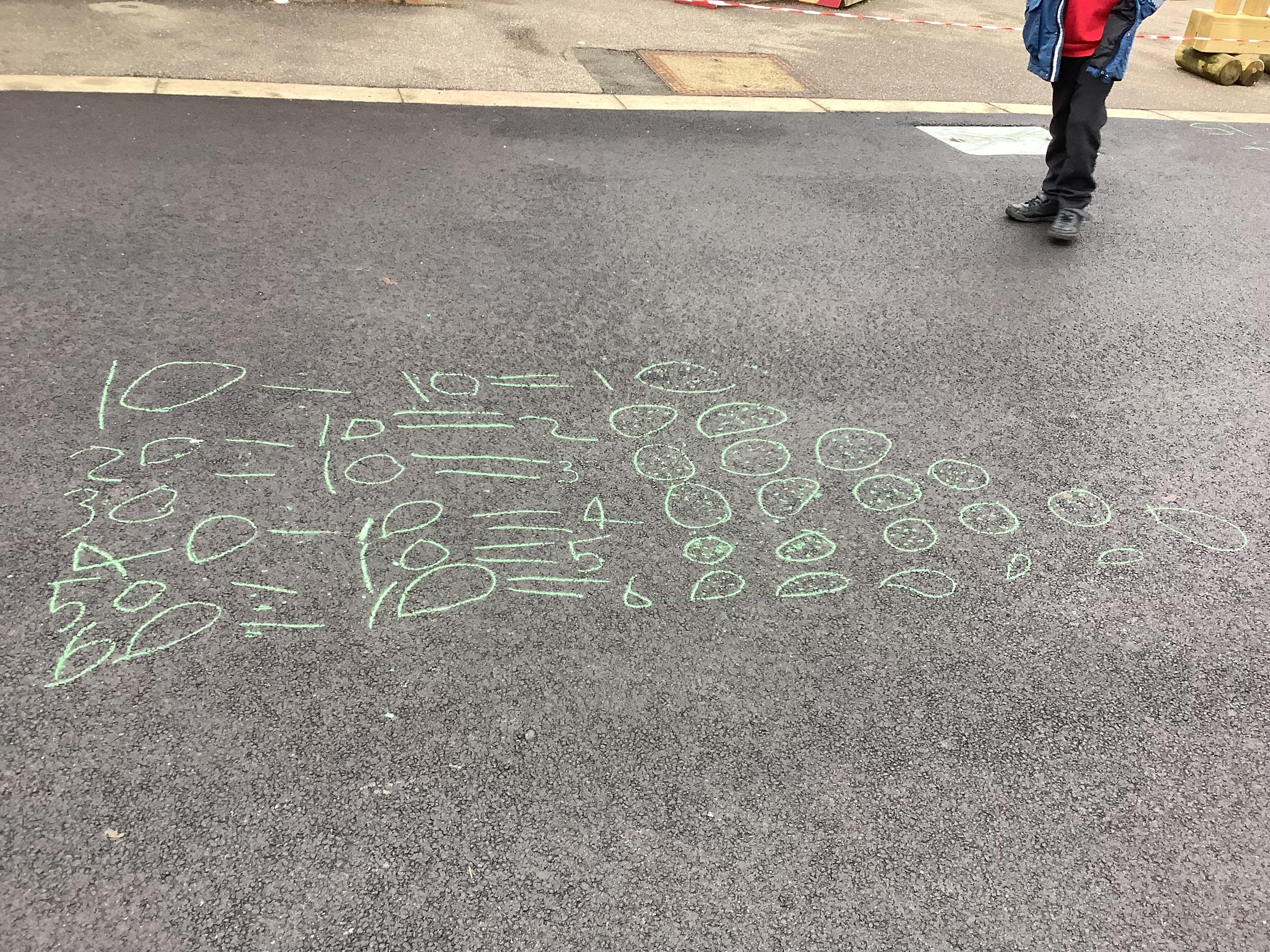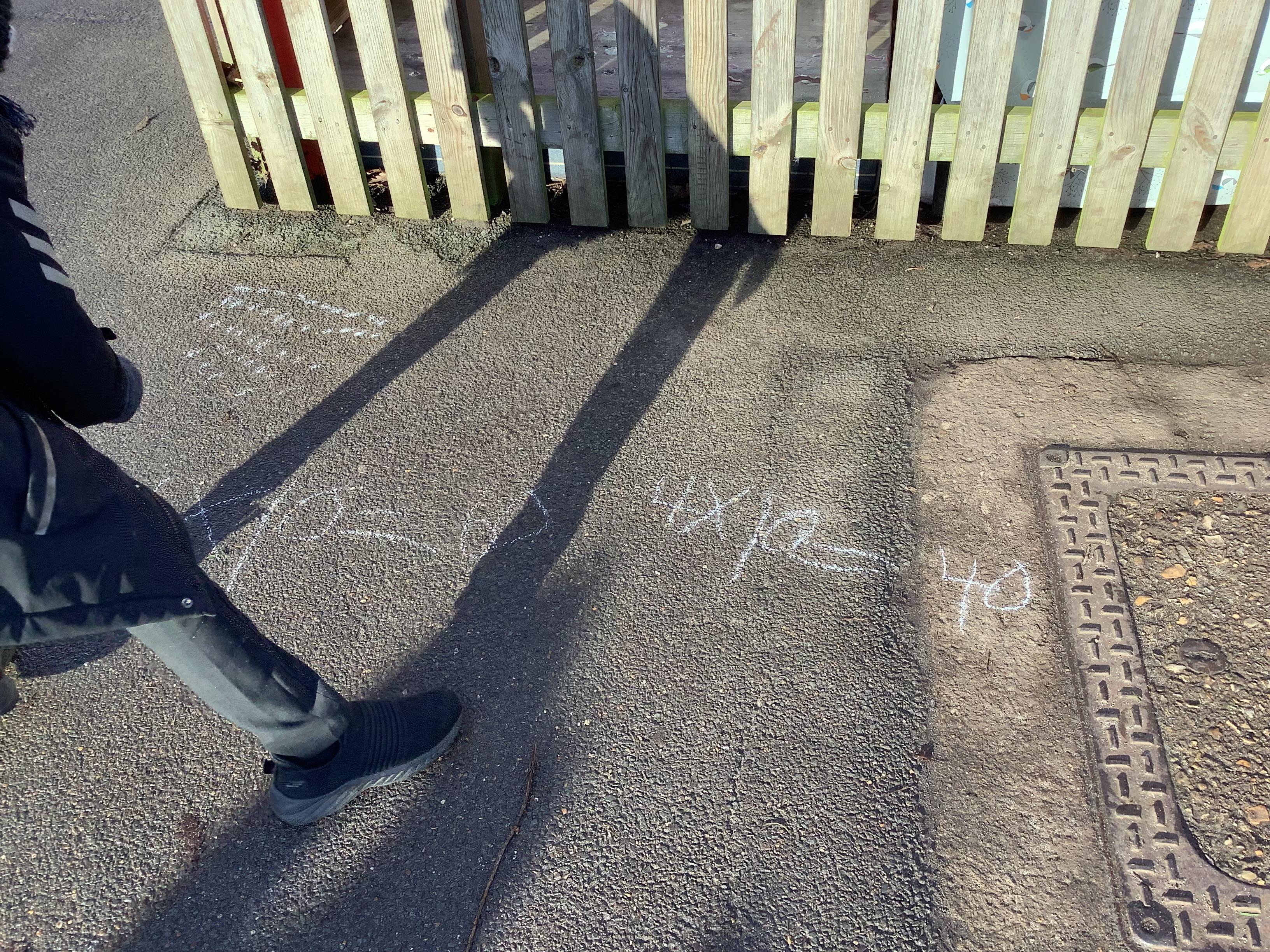 This week in maths, children have been learning how to multiply 2, 5 and 10. They went to the playground and wrote out the 10 times tables and made arrays to represent them.