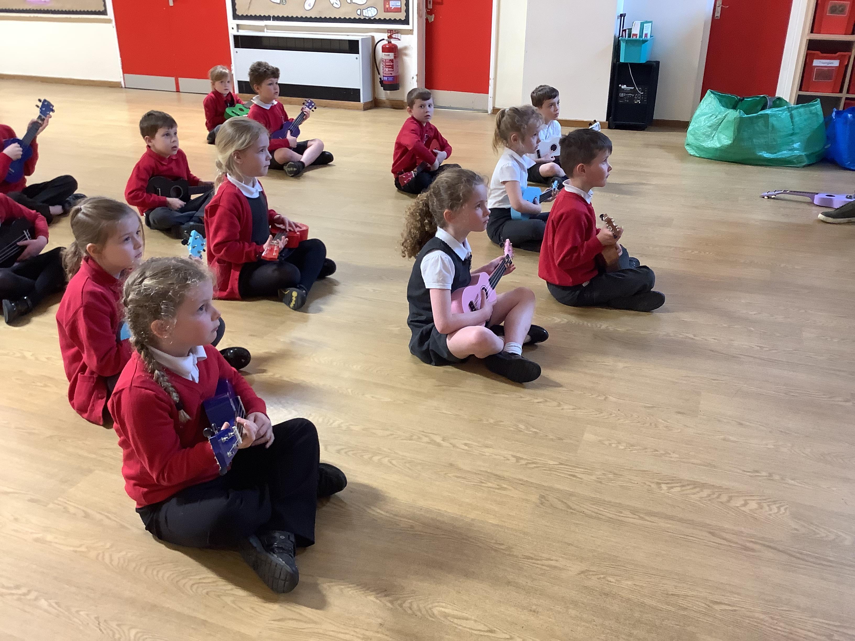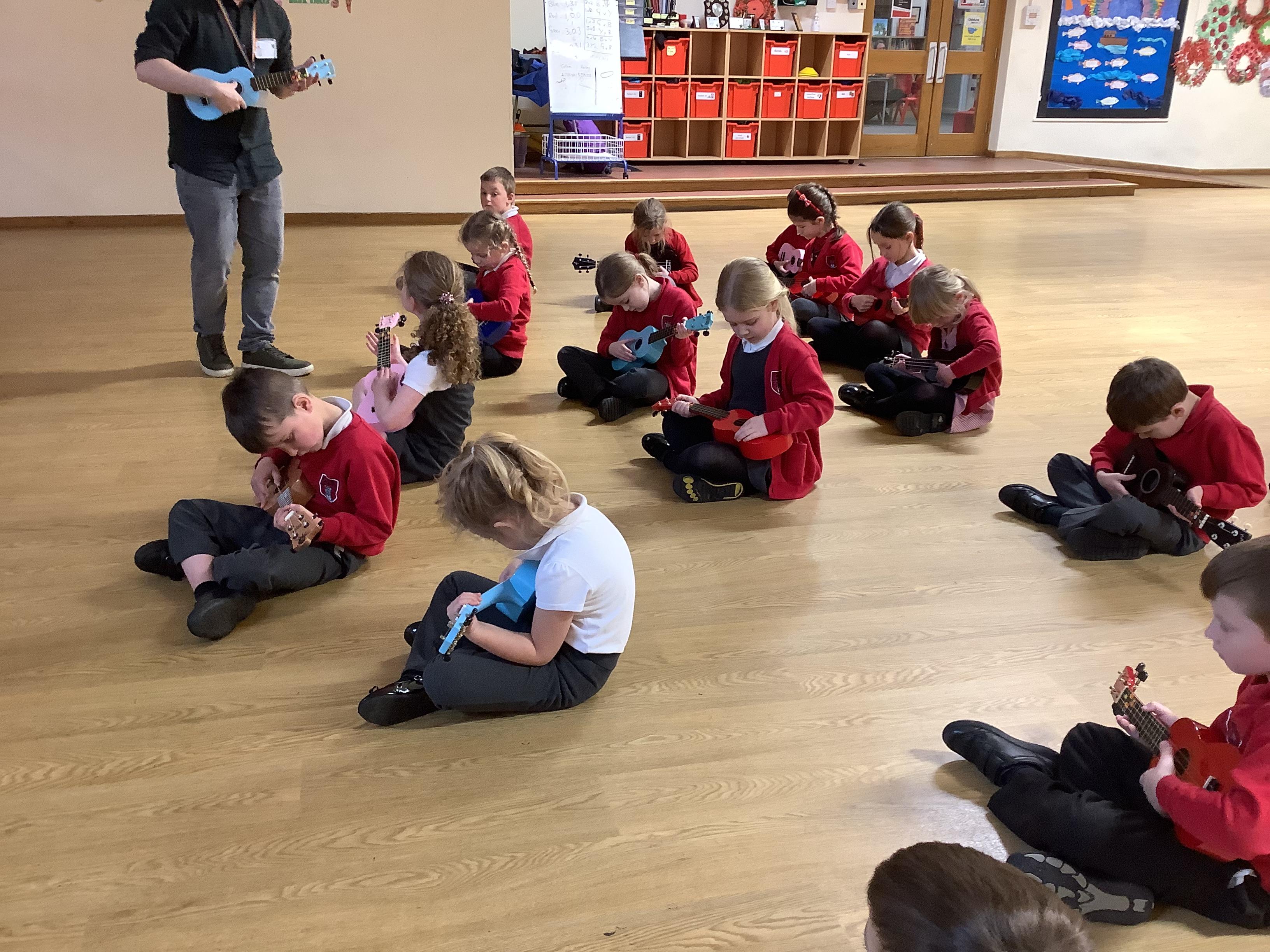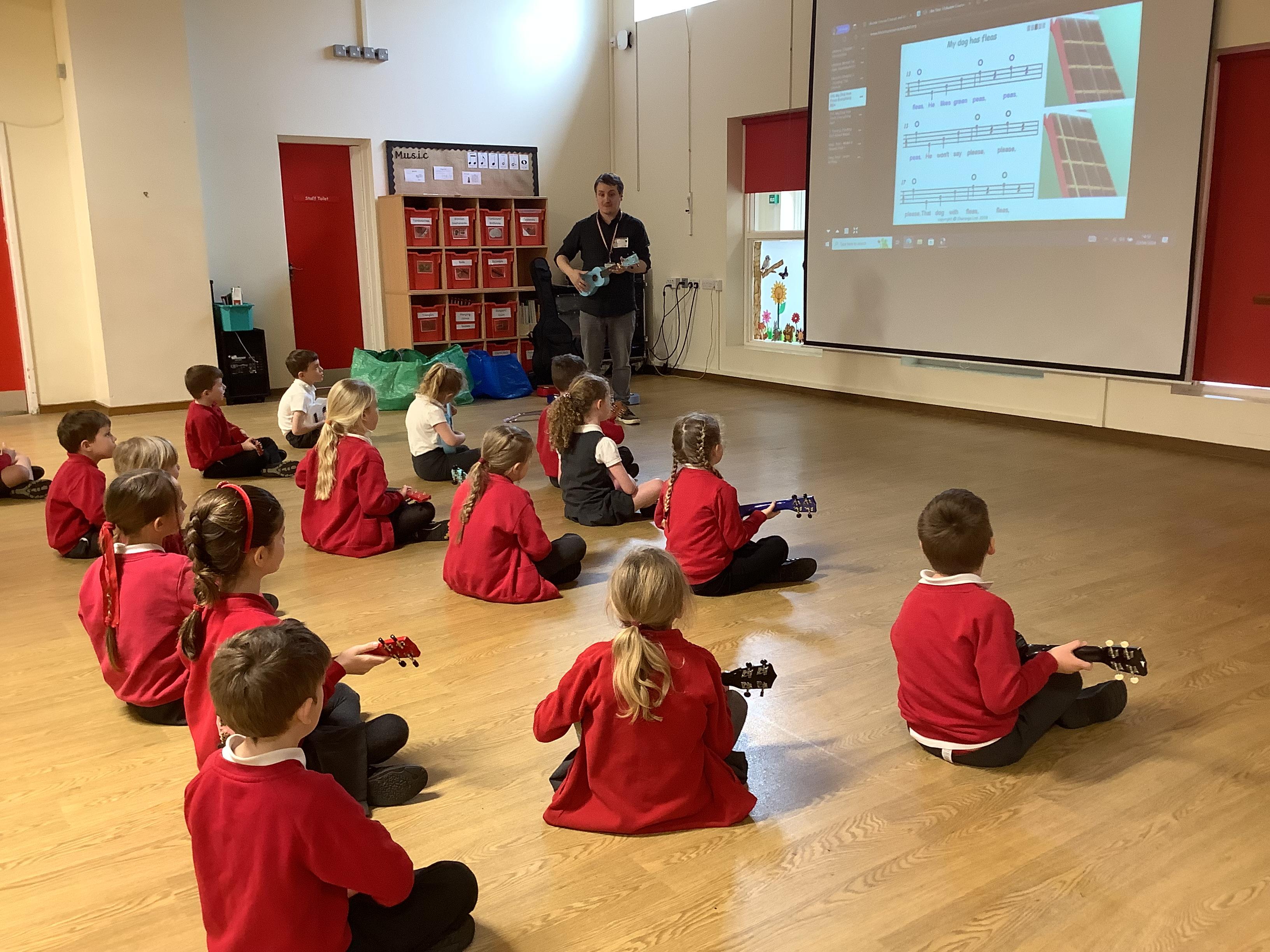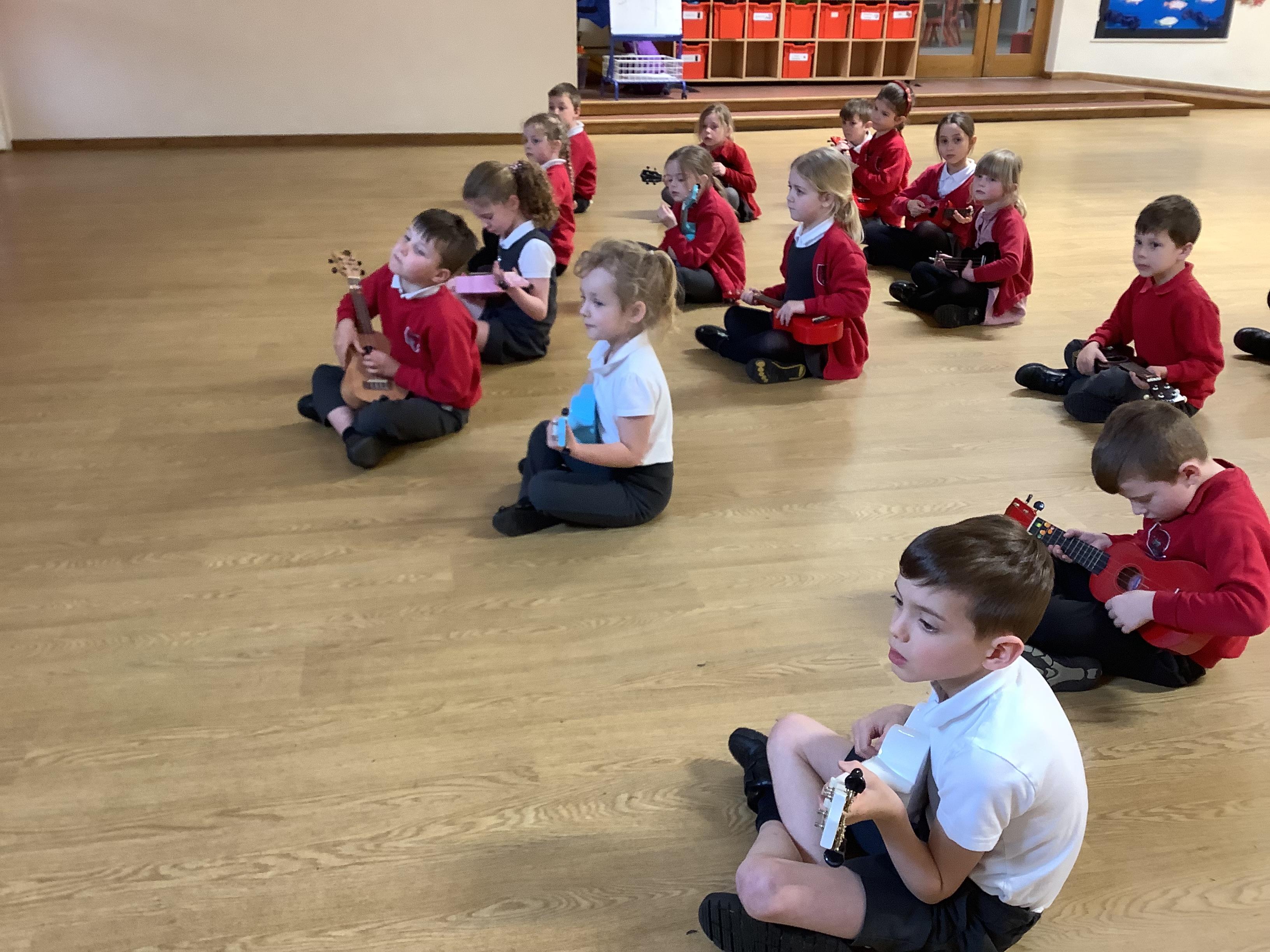 This term we are lucky enough to have a music teacher from Lincolnshire County Council teach us how to play the ukulele!
