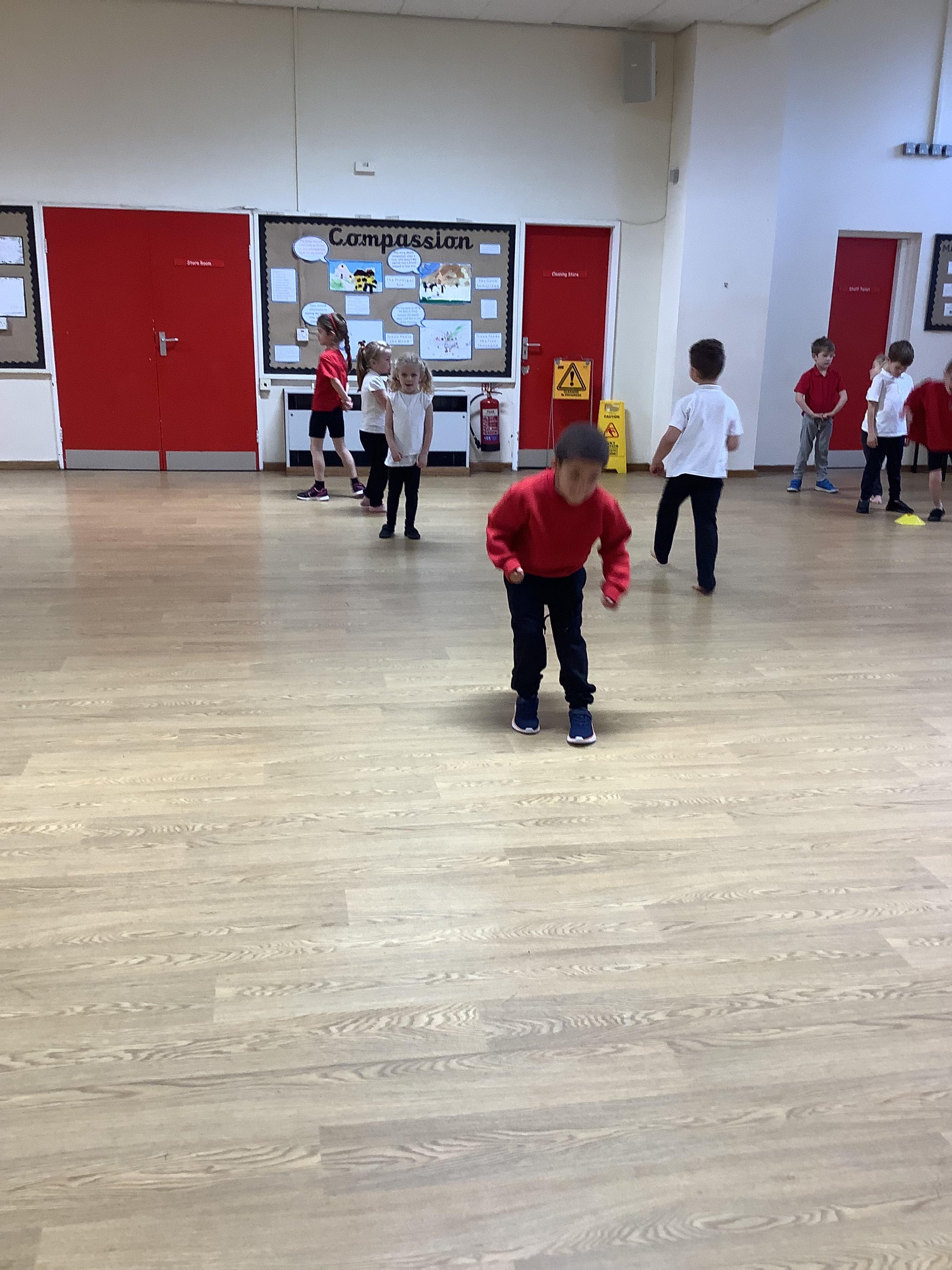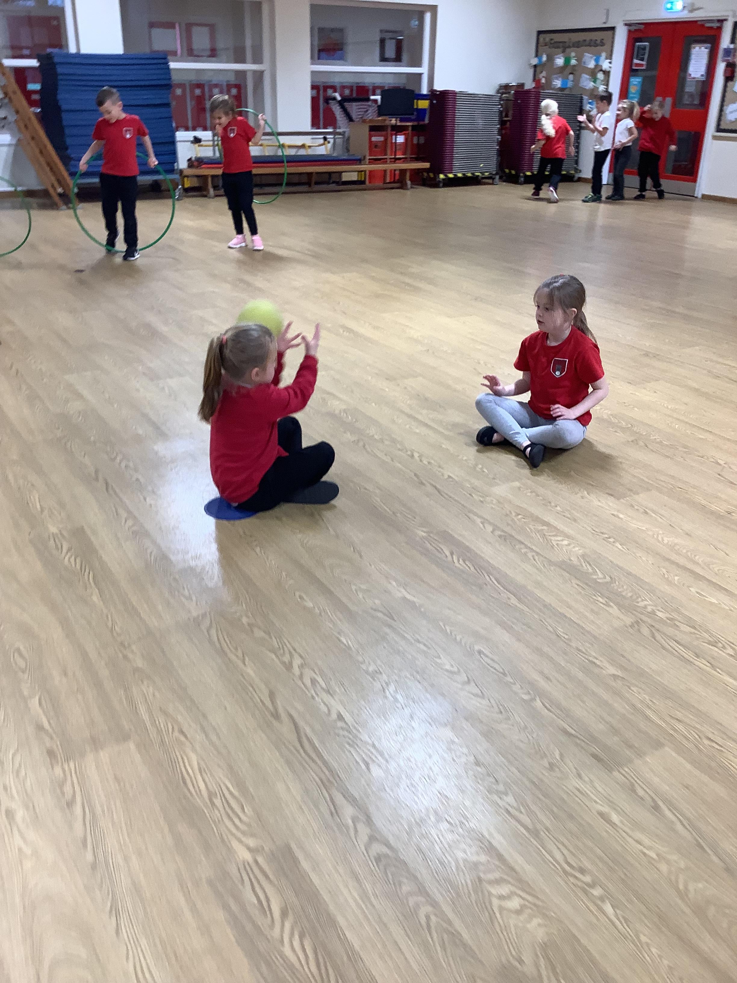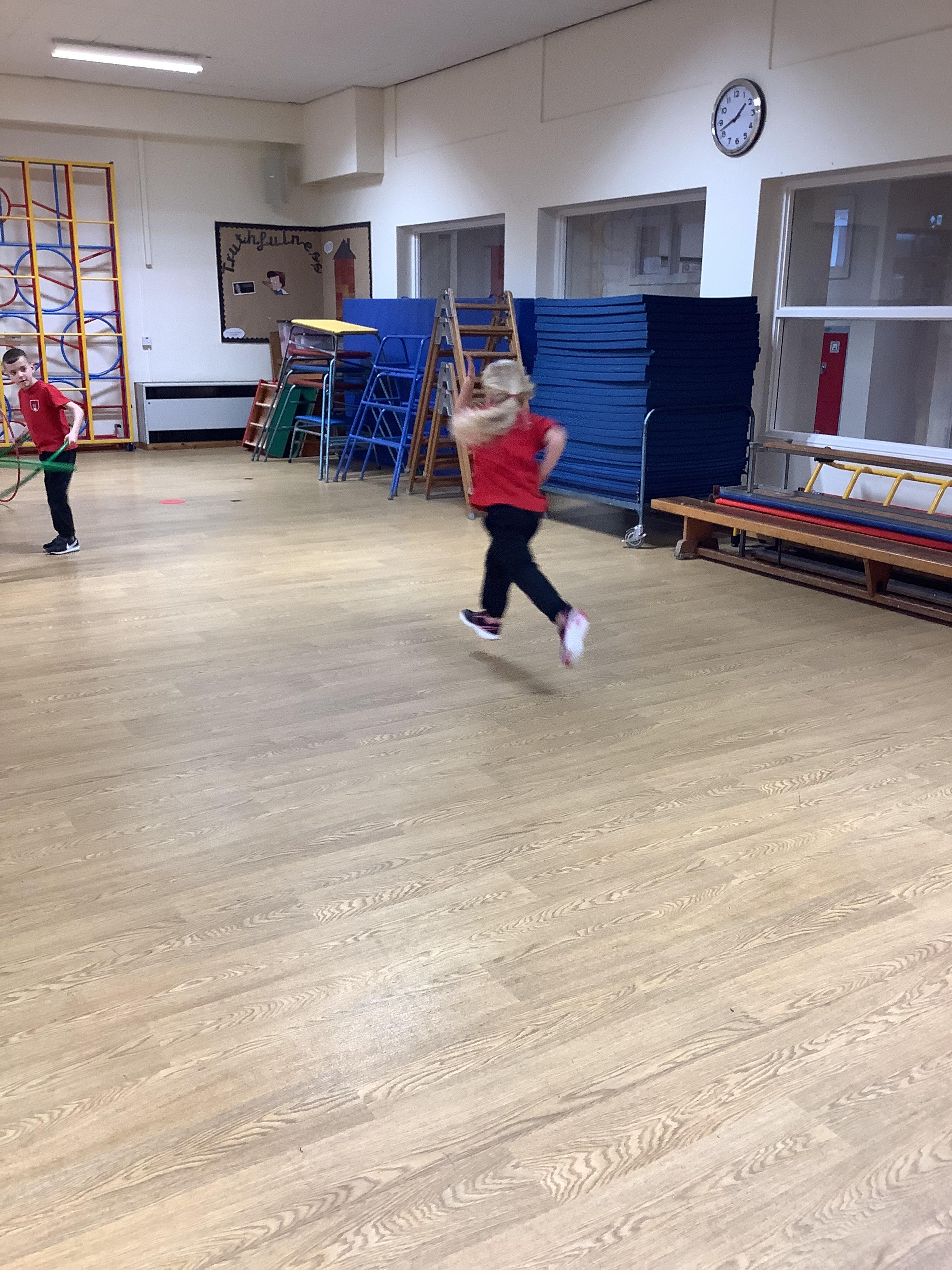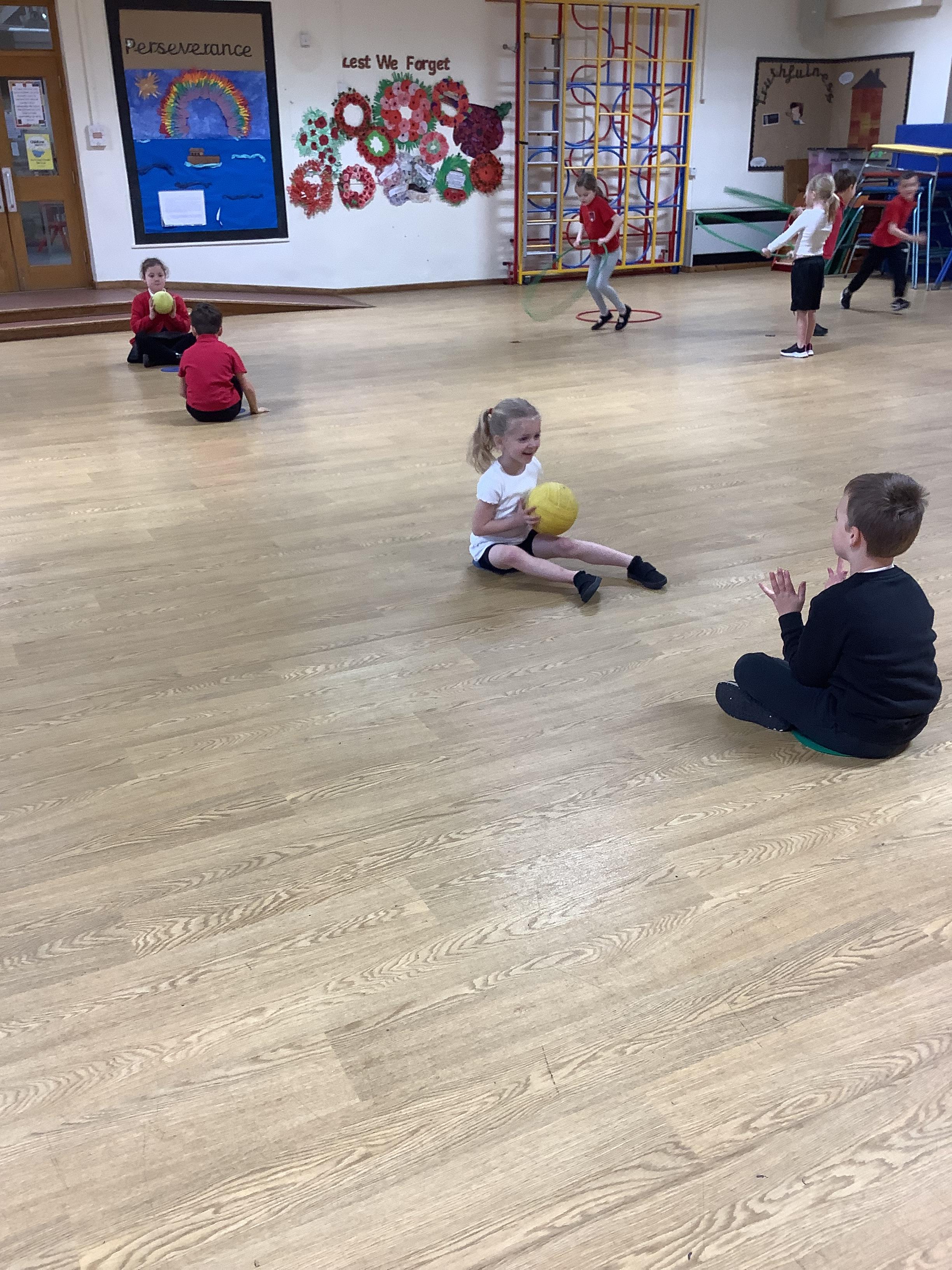 In PE this term we are learning indoor athletics. We began by performing various throwing, jumping and skipping activities were children had to throw the ball with a chest push whilst sitting cross legged, jump from two feet to two feet and leap for 3 steps.