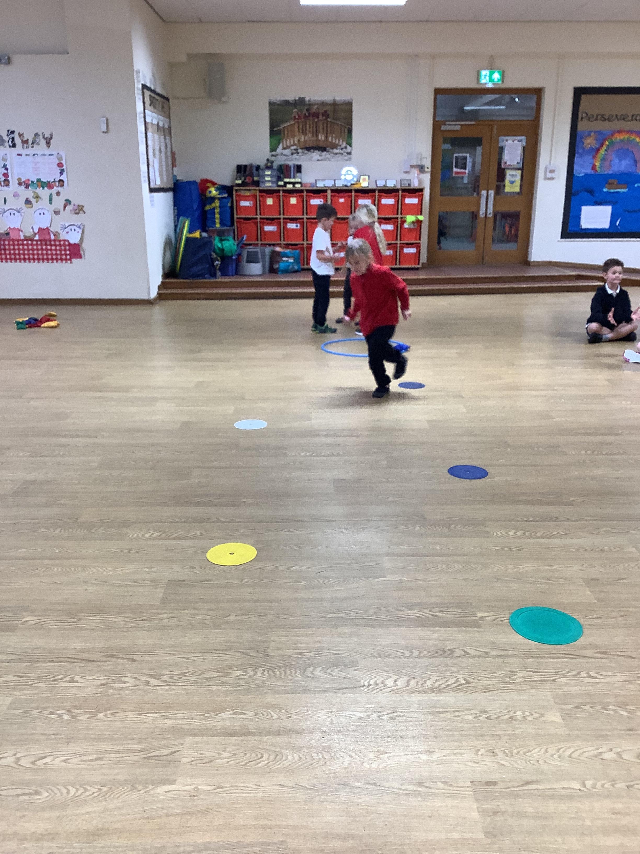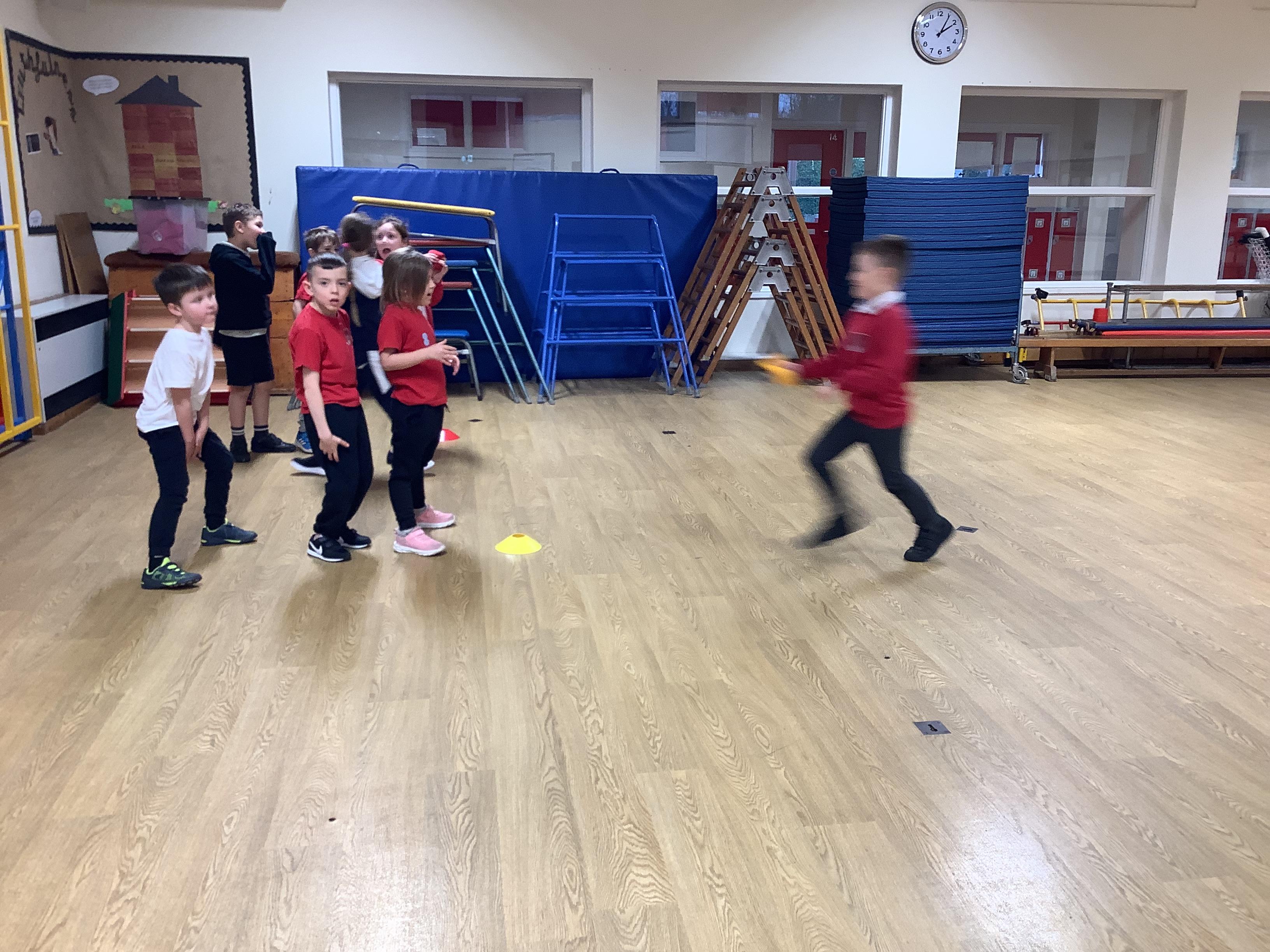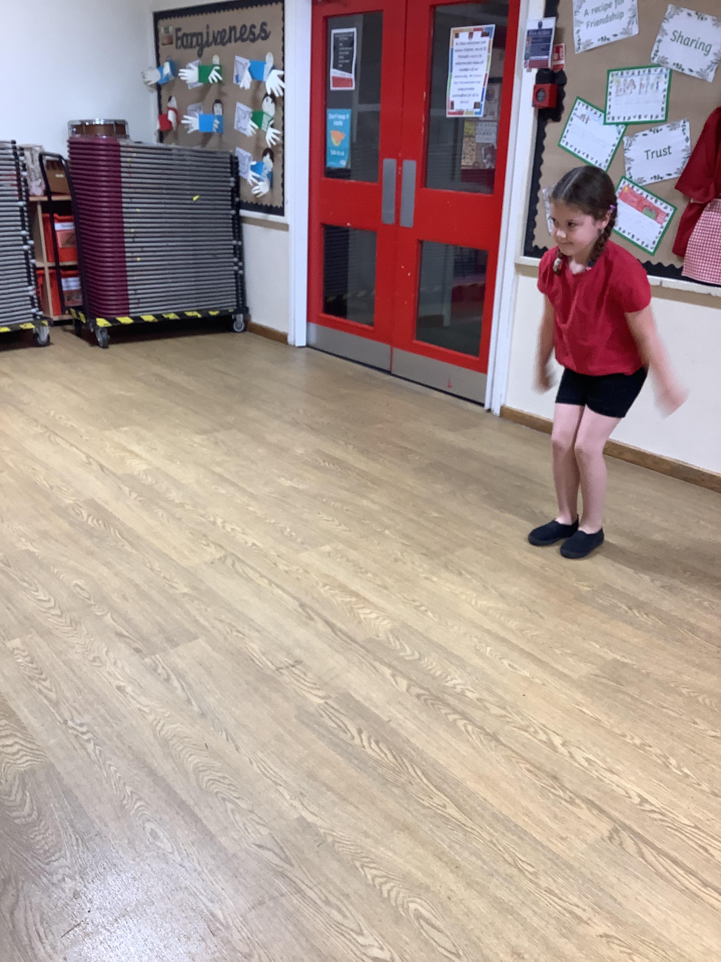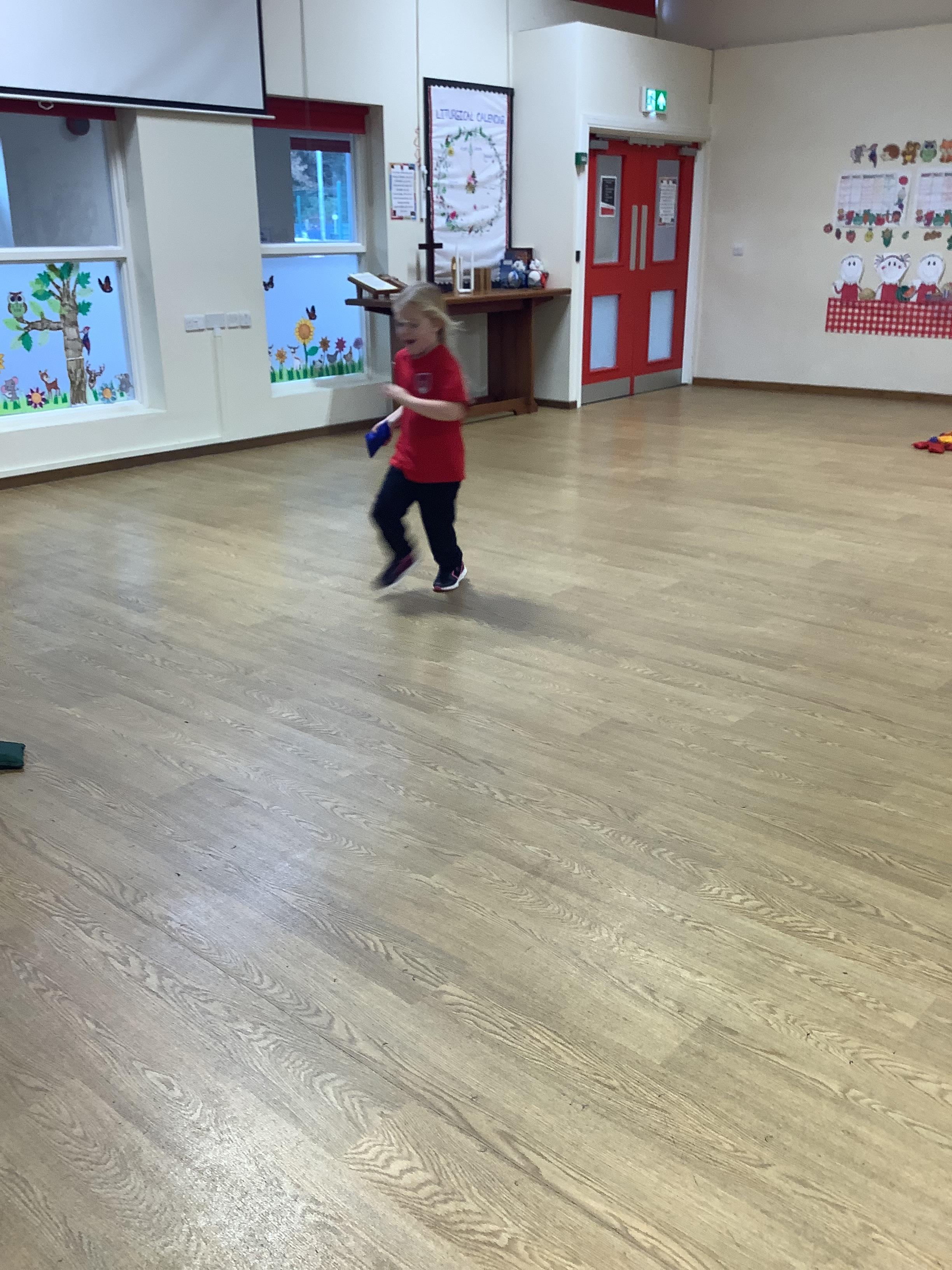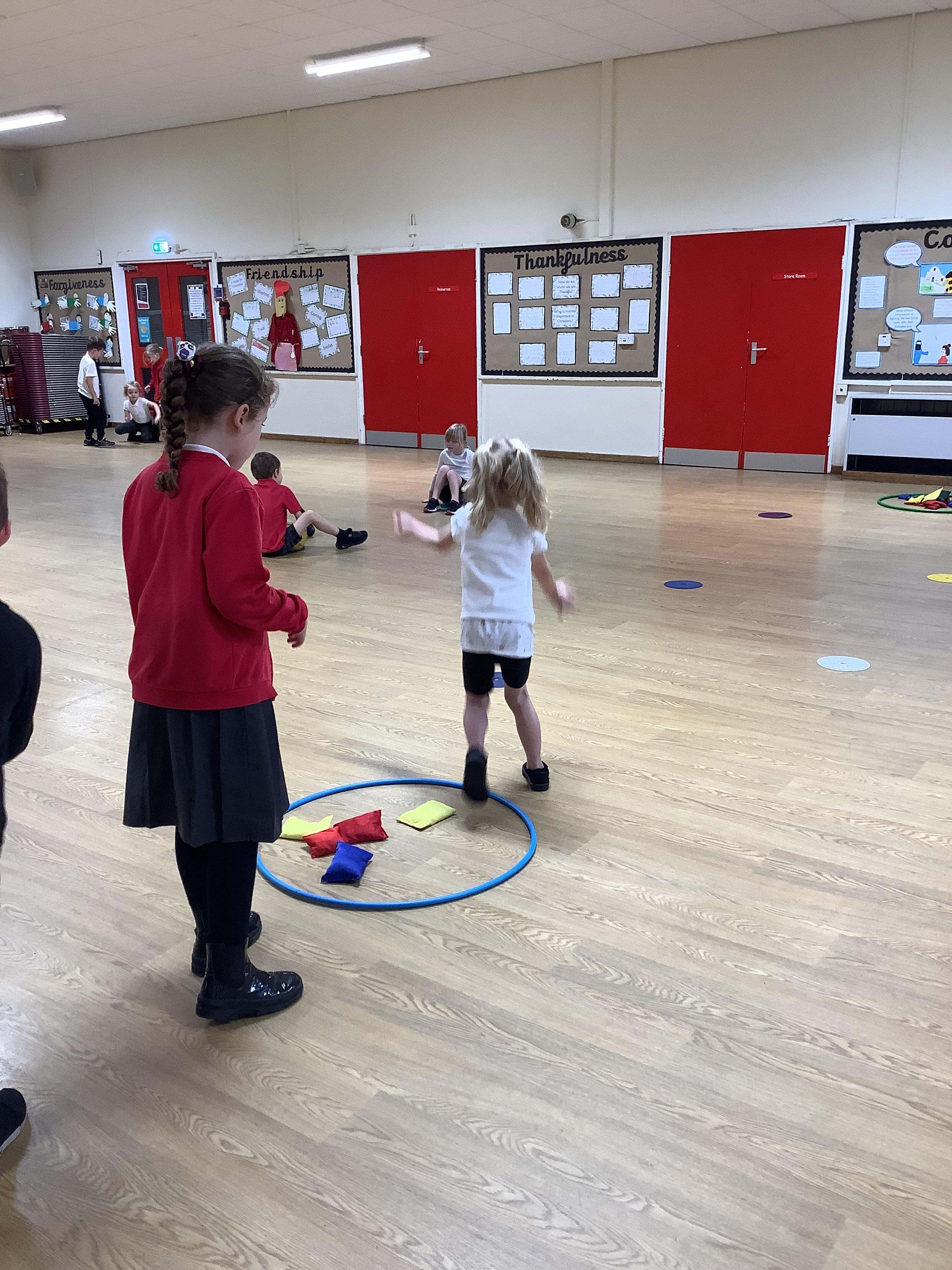 In PE this term we are learning indoor athletics. We began by performing various throwing, jumping and skipping activities were children had to throw the ball with a chest push whilst sitting cross legged, jump from two feet to two feet and leap for 3 steps.
