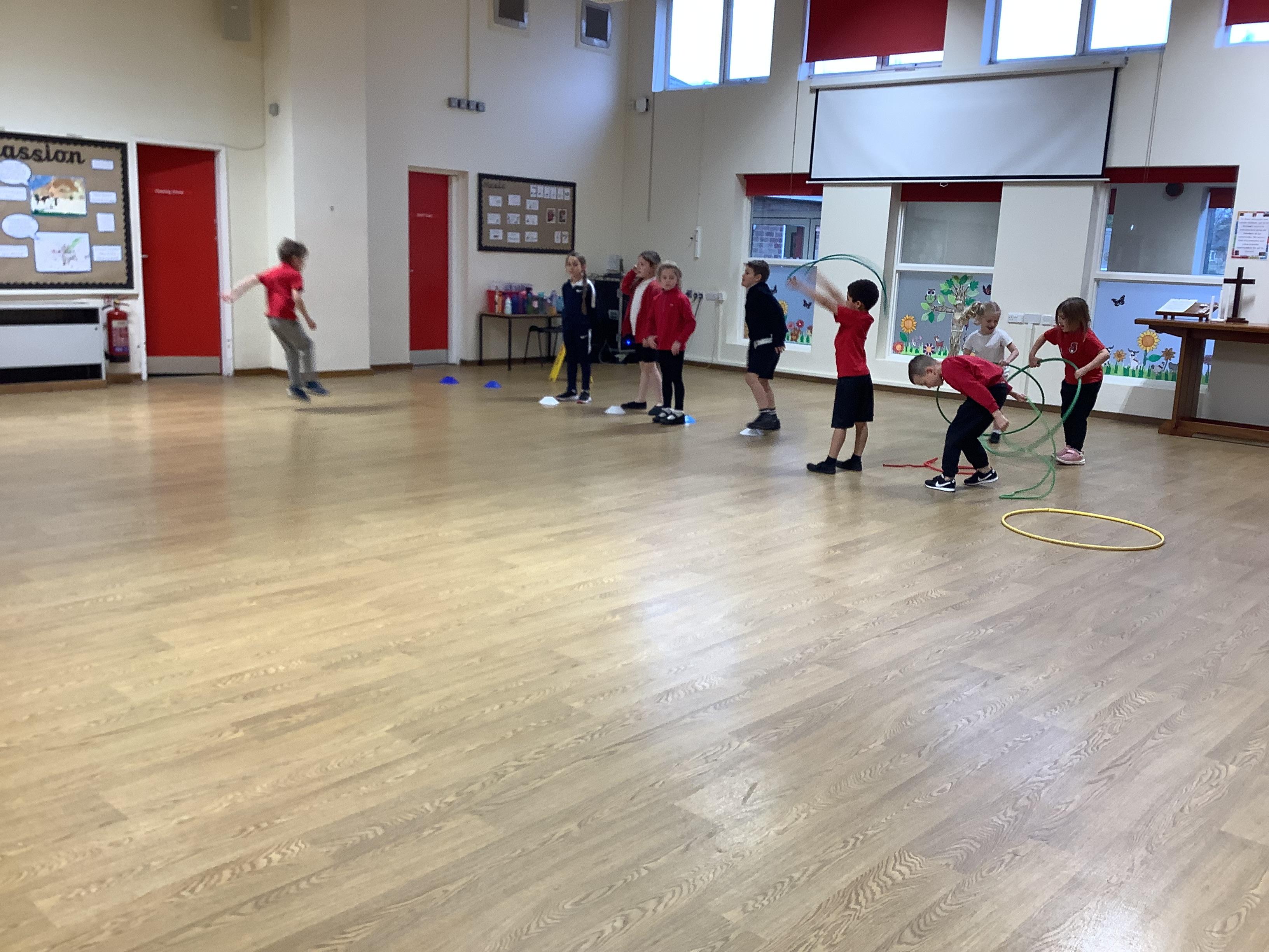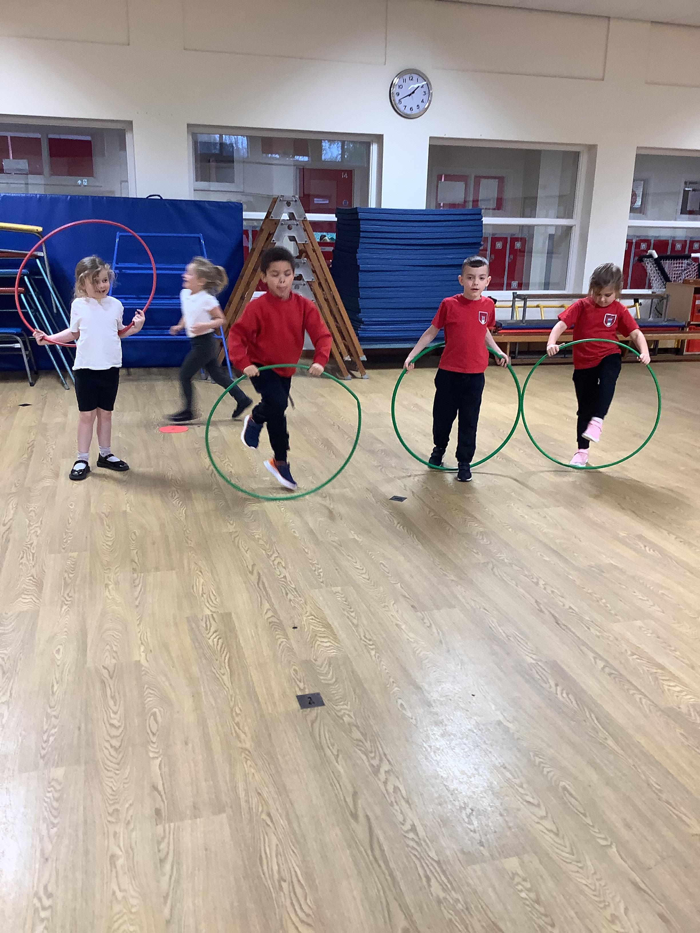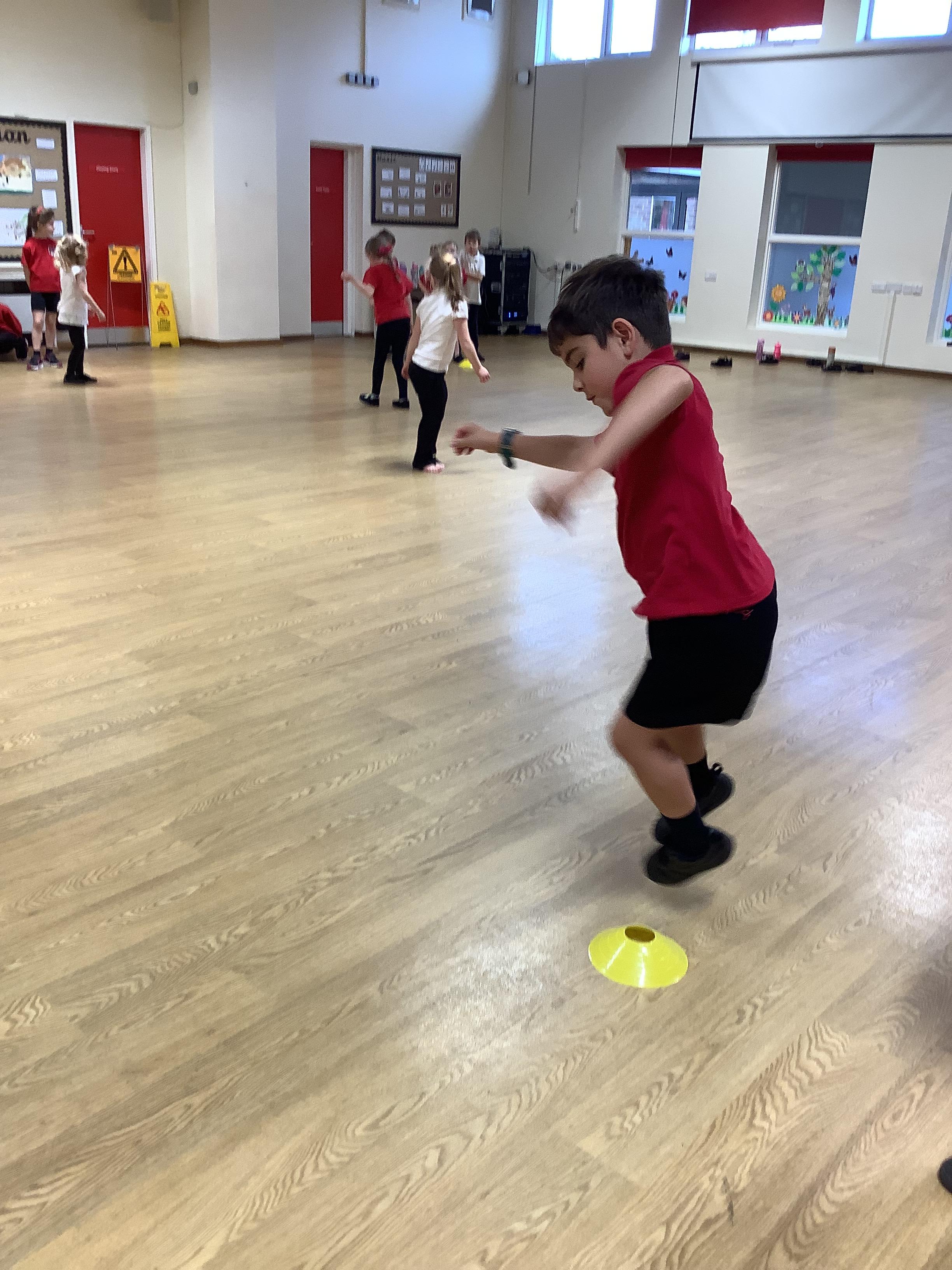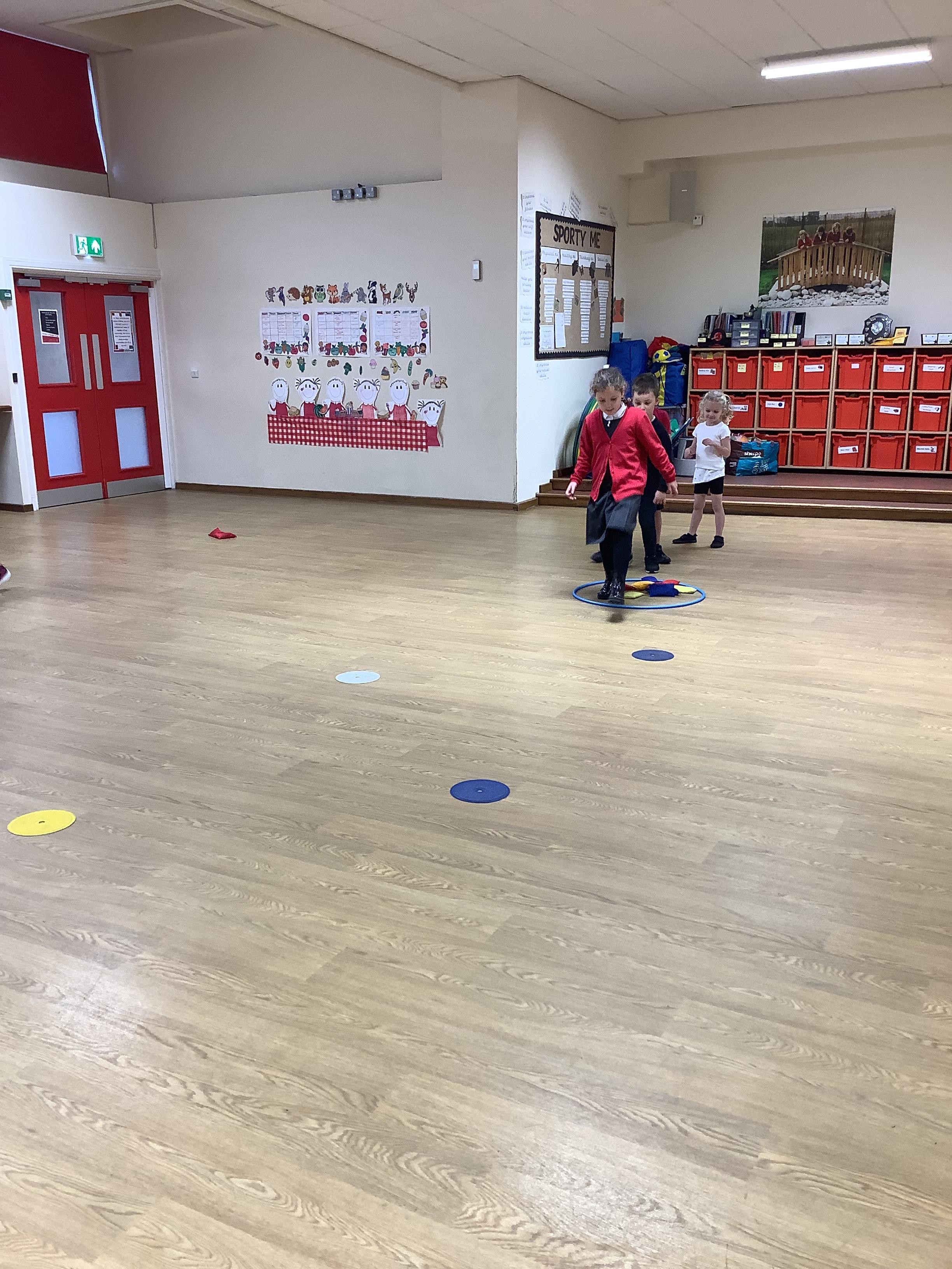 In PE this term we are learning indoor athletics. We began by performing various throwing, jumping and skipping activities were children had to throw the ball with a chest push whilst sitting cross legged, jump from two feet to two feet and leap for 3 steps.