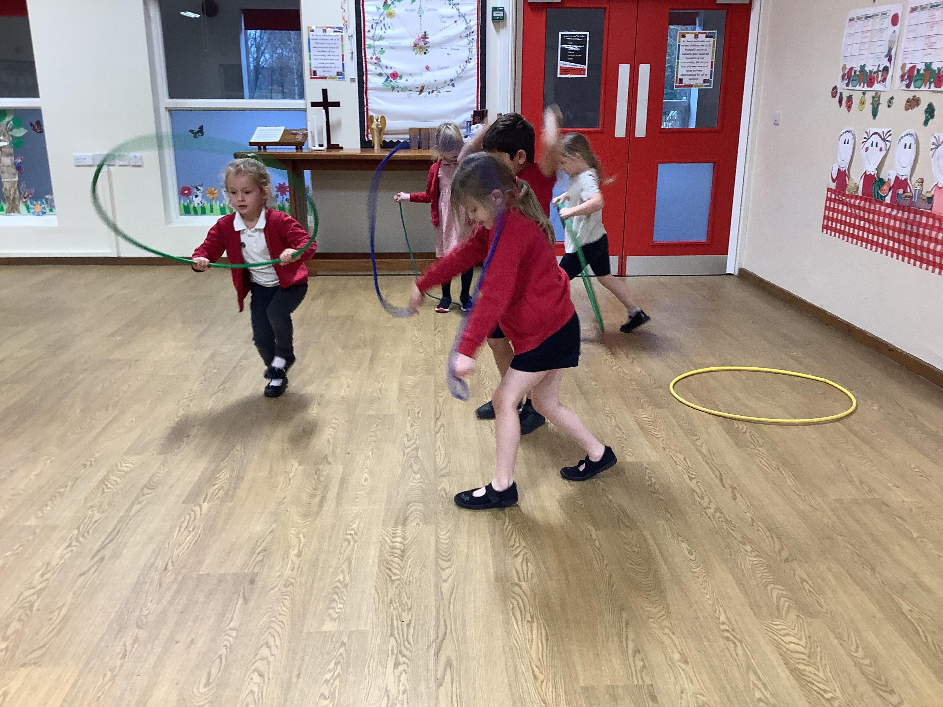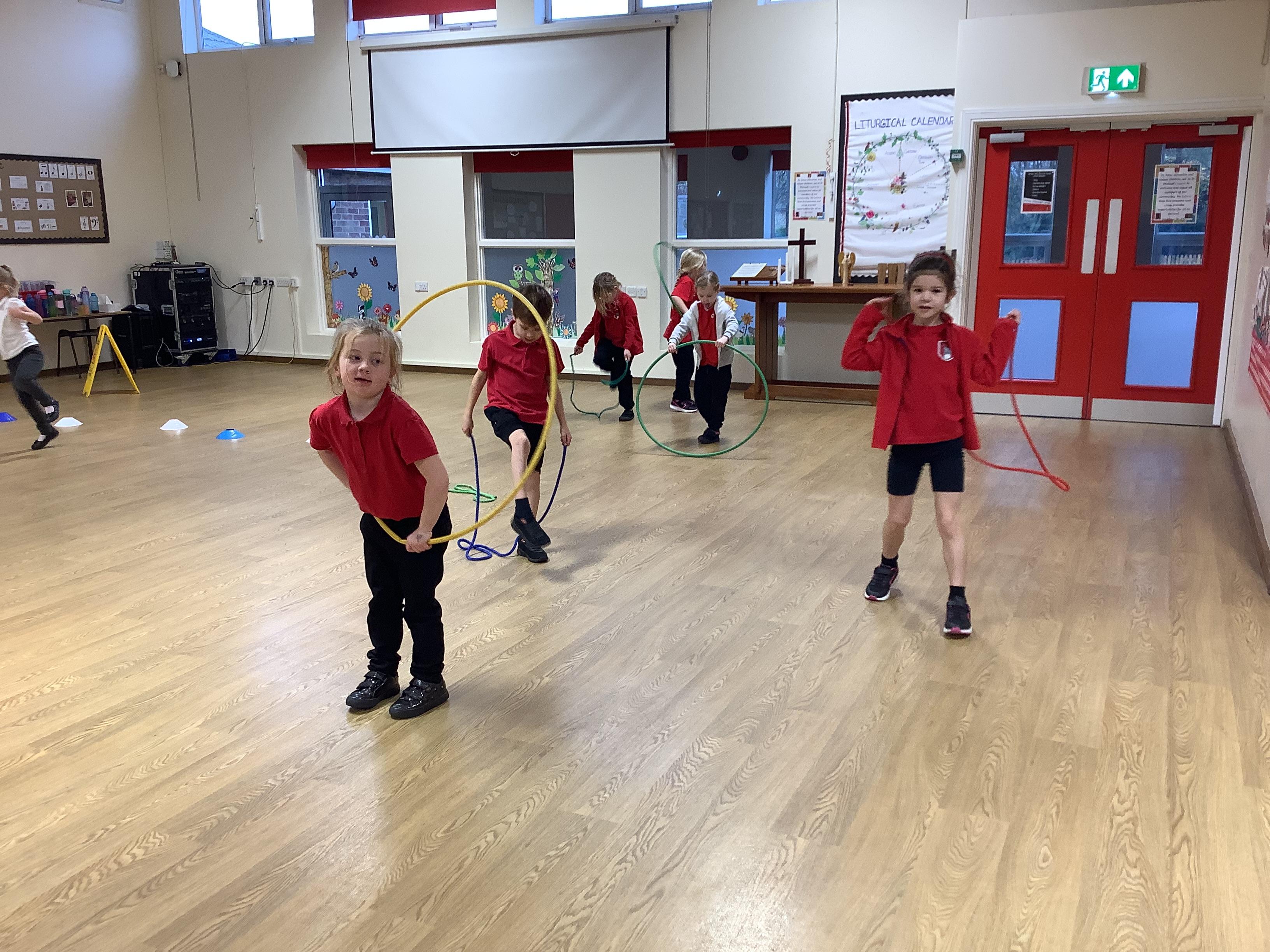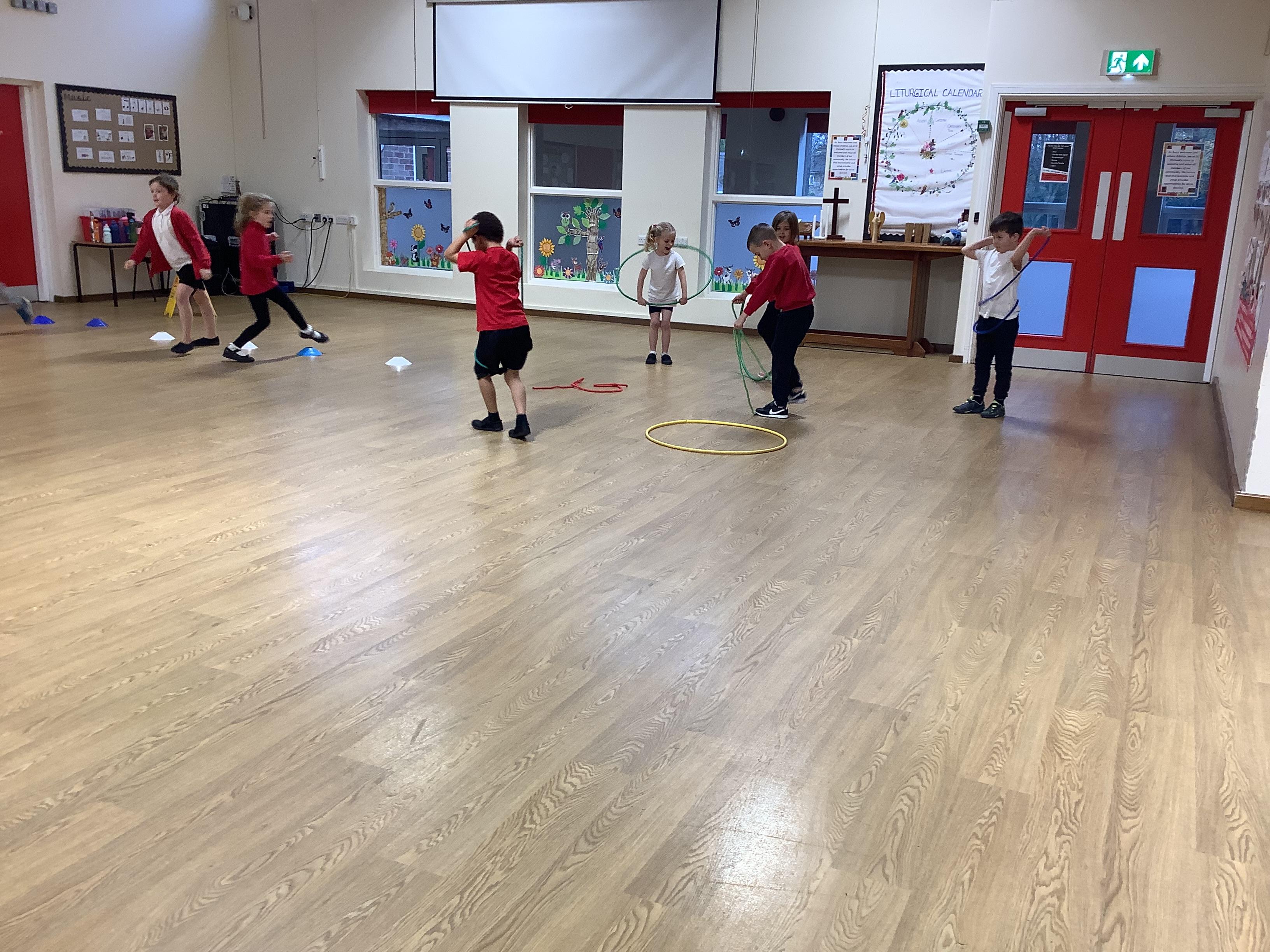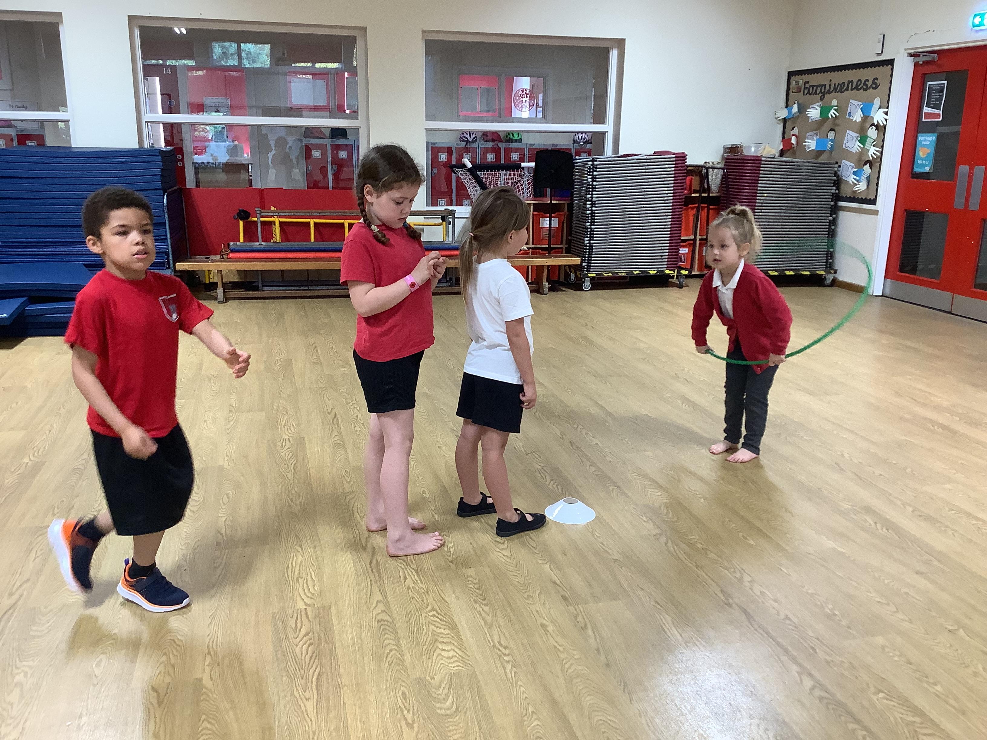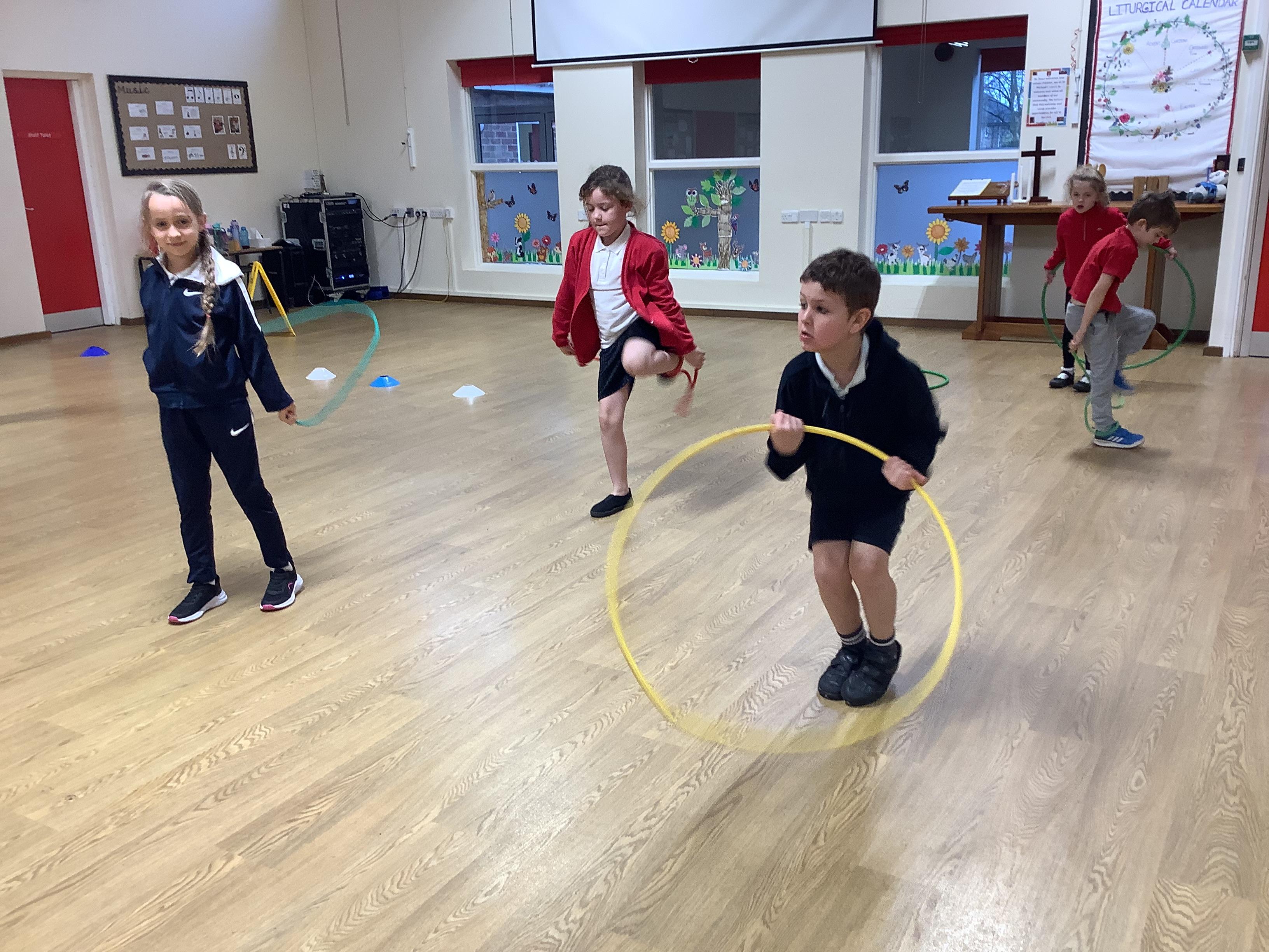 In PE this term we are learning indoor athletics. We began by performing various throwing, jumping and skipping activities were children had to throw the ball with a chest push whilst sitting cross legged, jump from two feet to two feet and leap for 3 steps.