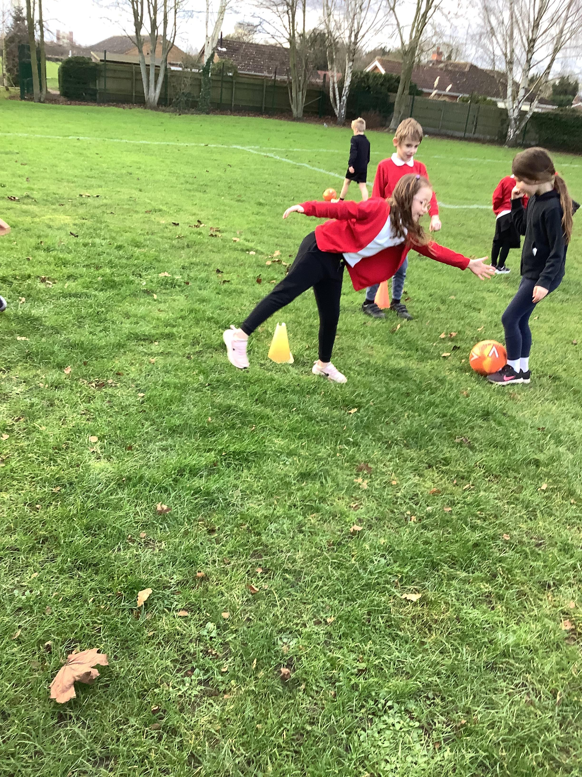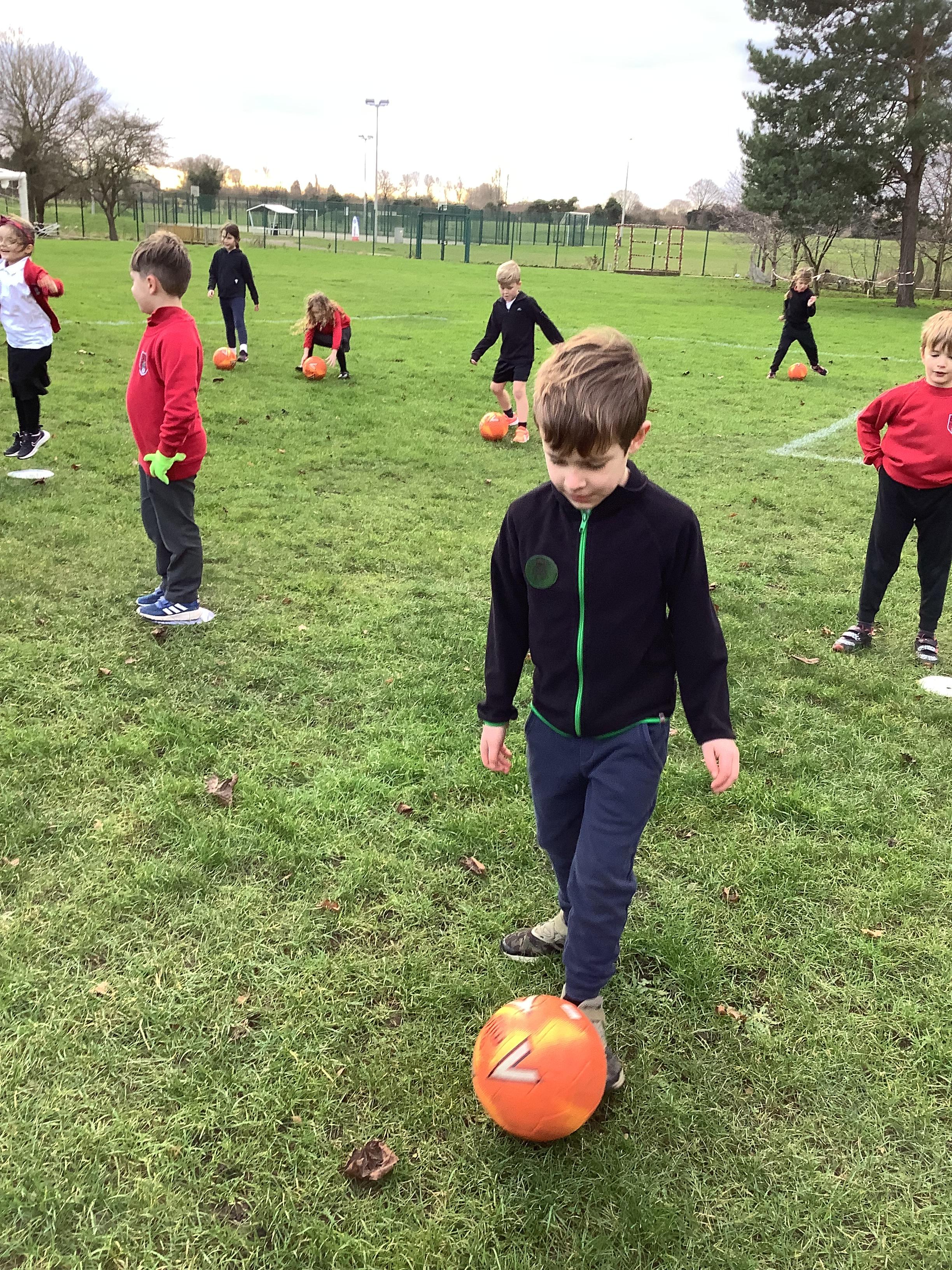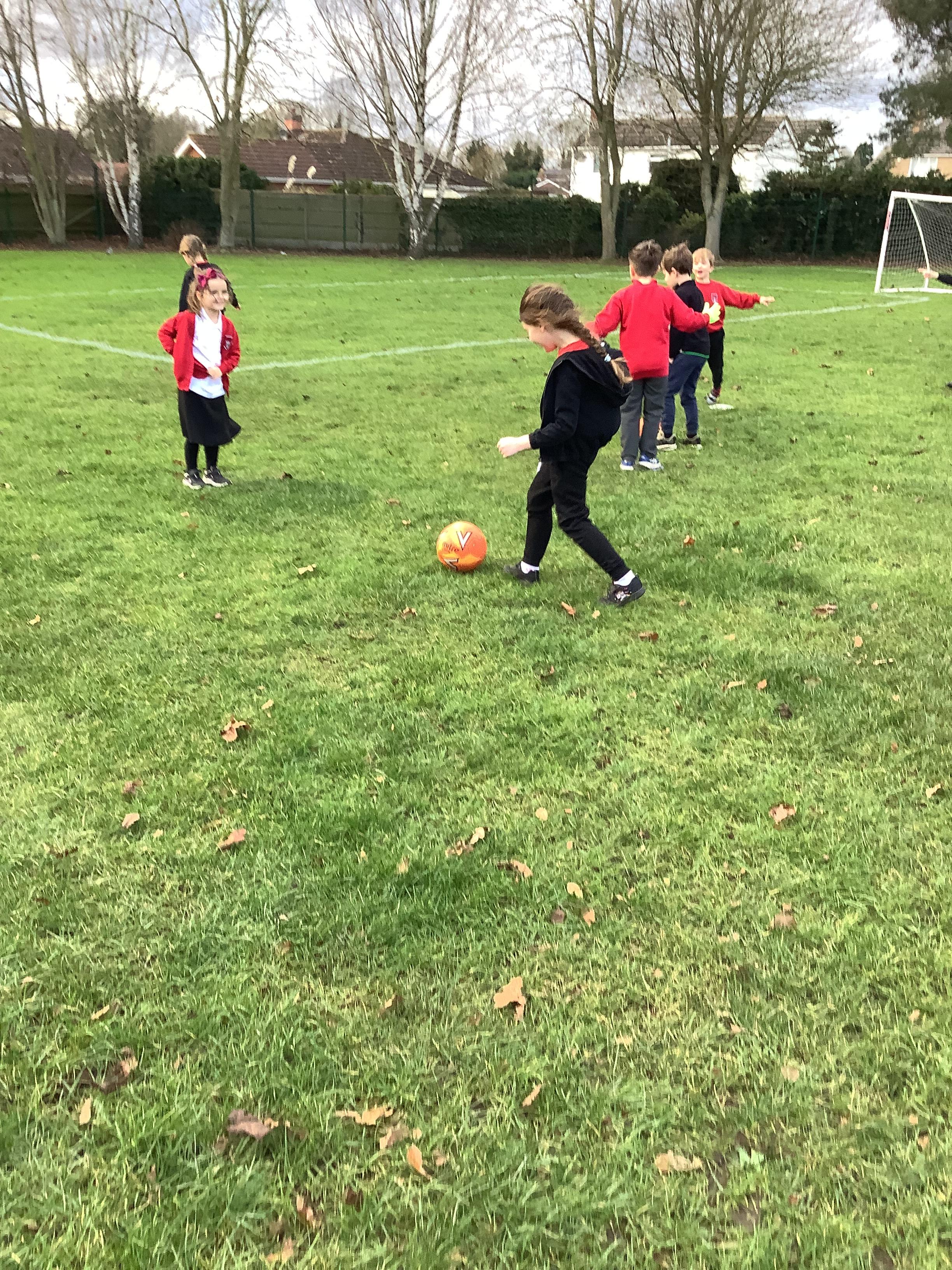 This term in PE, children will explore moving with a ball during a game; using space when passing & receiving a kicked ball; throwing, catching, attacking and defending during a game; developing tactics when shooting at & protecting targets and applying all of this into invasion games.