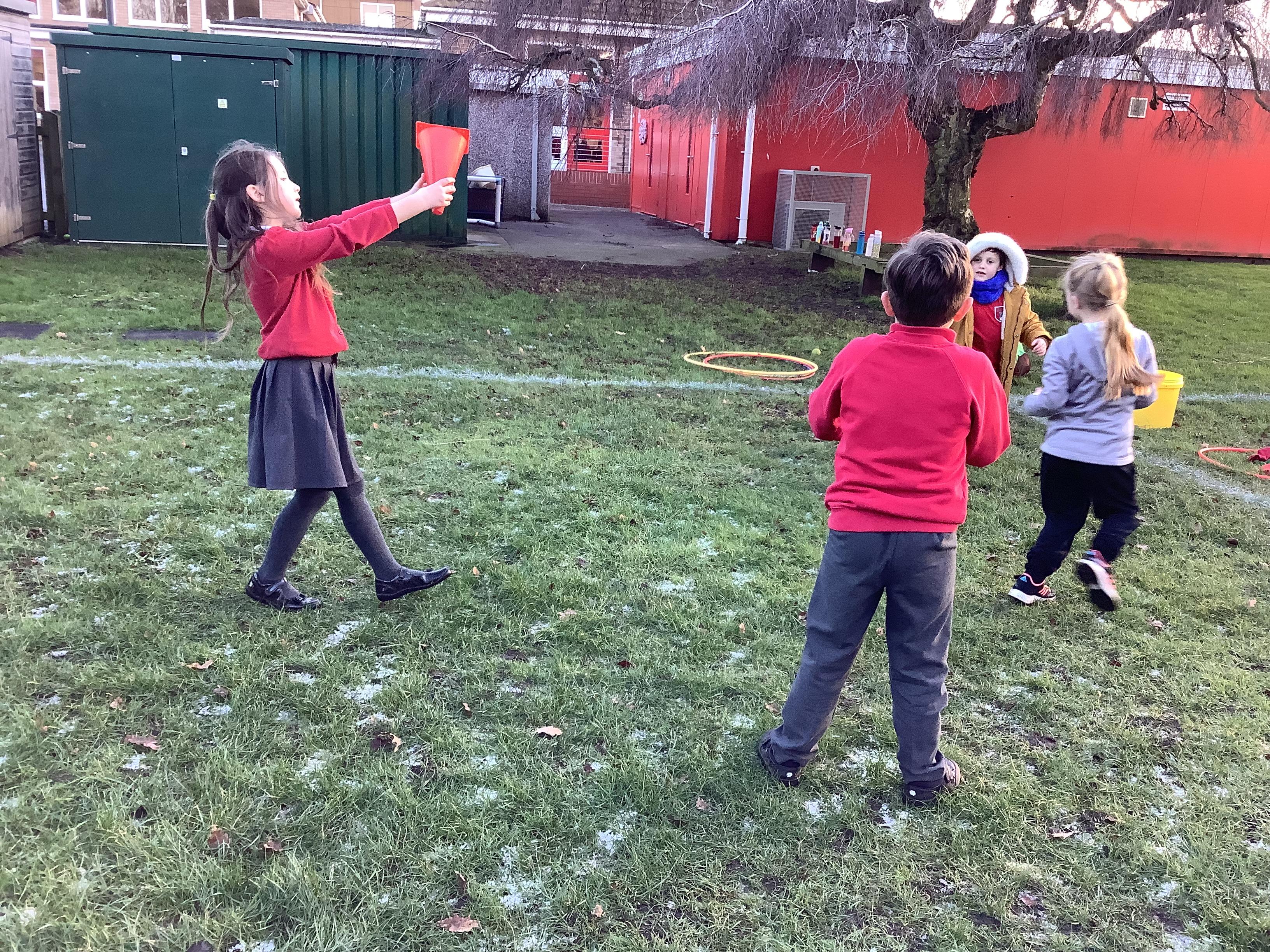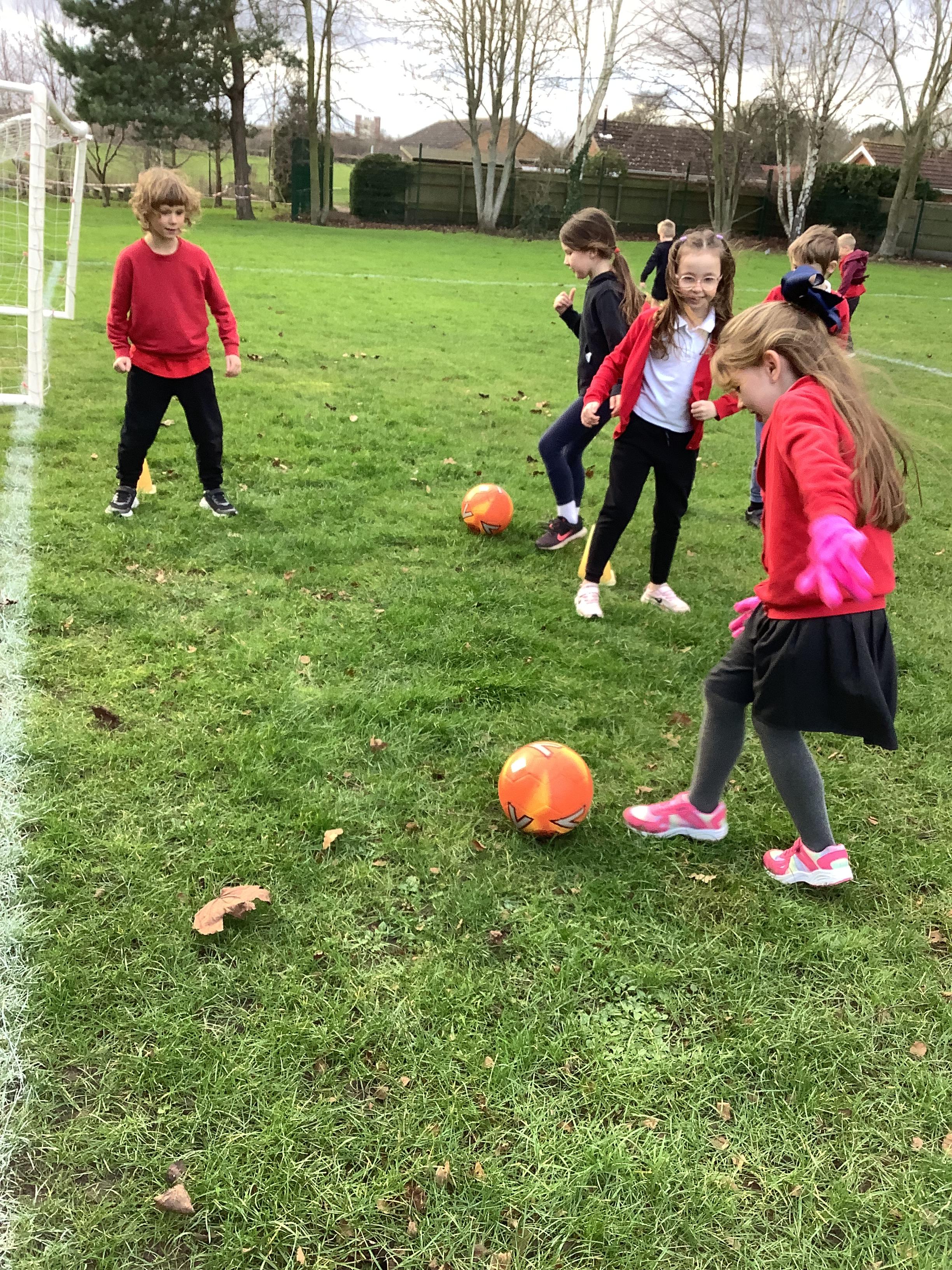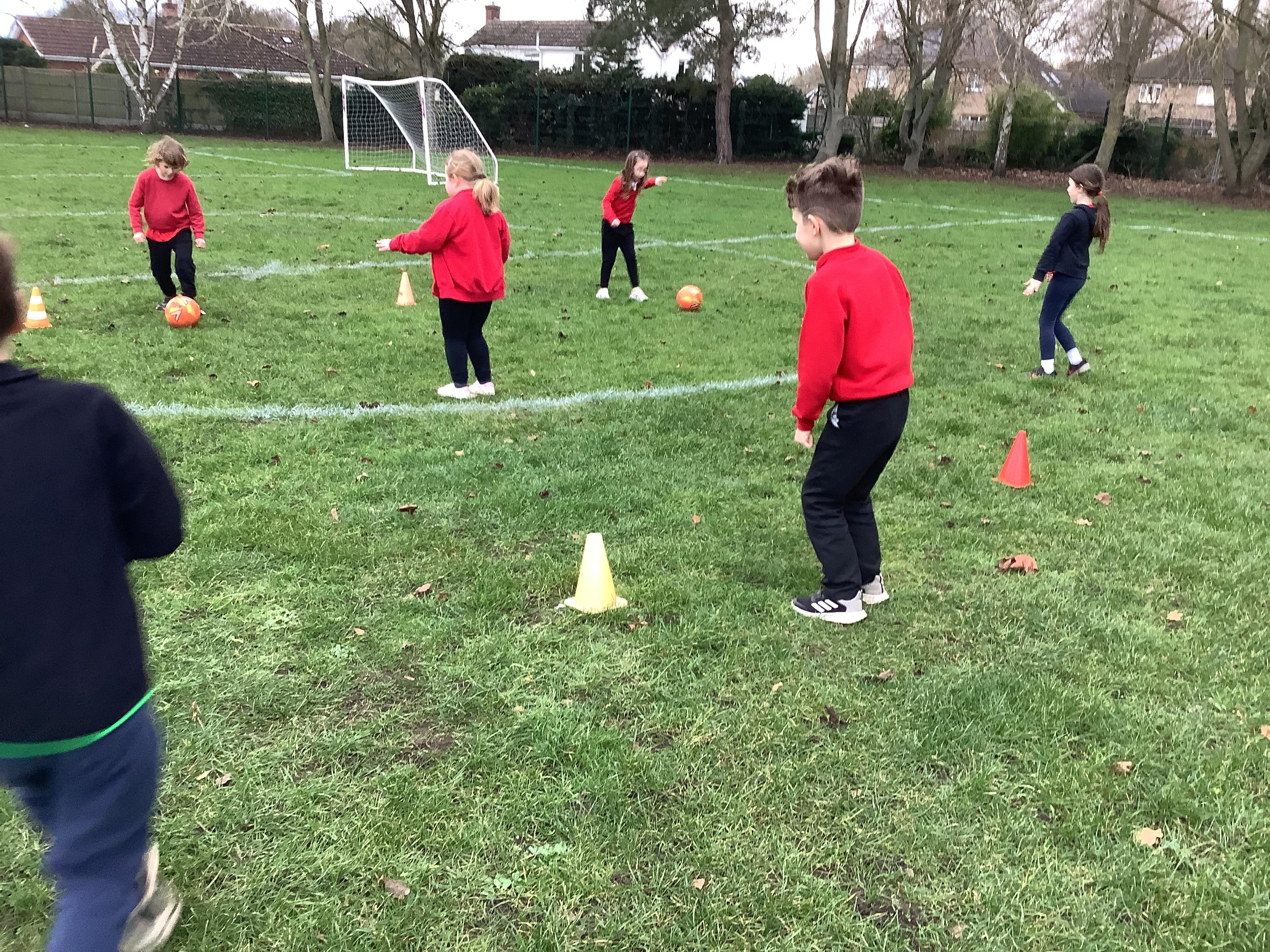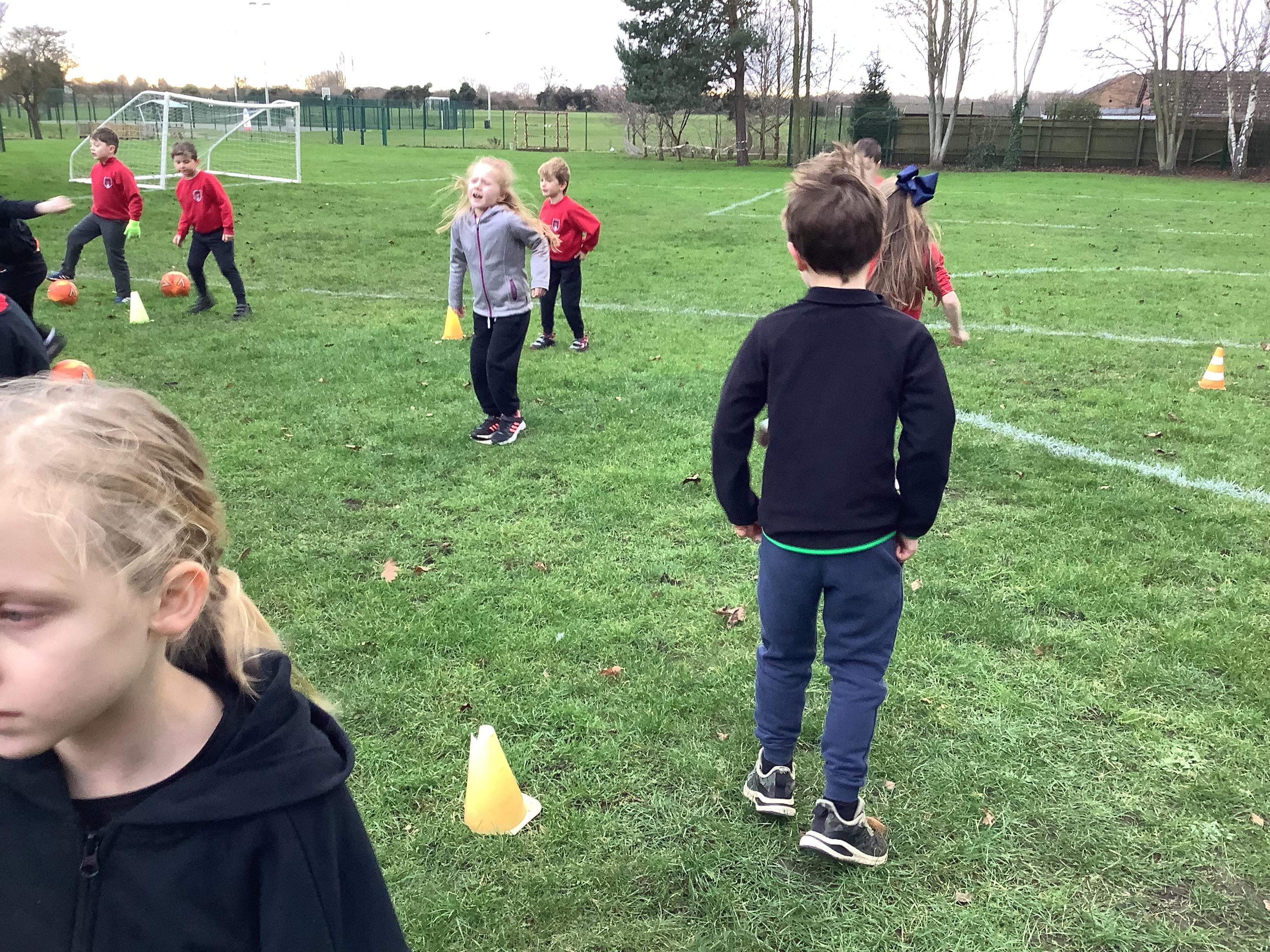 This term in PE, children will explore moving with a ball during a game; using space when passing & receiving a kicked ball; throwing, catching, attacking and defending during a game; developing tactics when shooting at & protecting targets and applying all of this into invasion games.