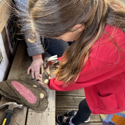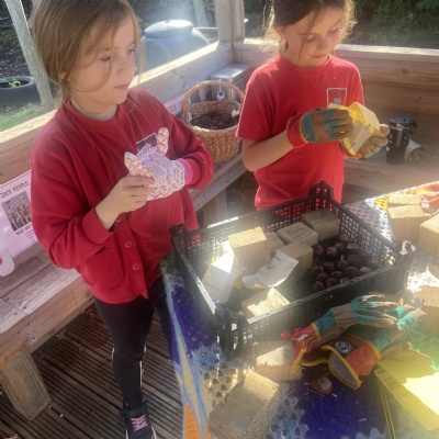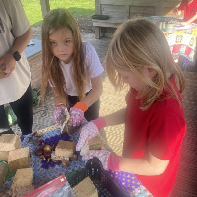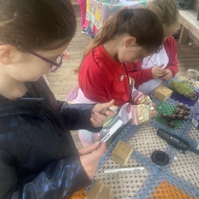 Over the past few weeks, Rabbit Class have been immersed in a special Forest School challenge filled with mystery, creativity, and hands-on learning. Children took home intriguing clues — wooden blocks to cut, conkers and buttons to collect, and long pieces of fabric to prepare — all sparking curiosity and conversation.