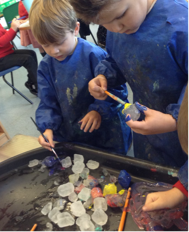 We have had lots of fun painting ice cubes this week and watching what happens when the paint mixed, and the ice cubes melted.