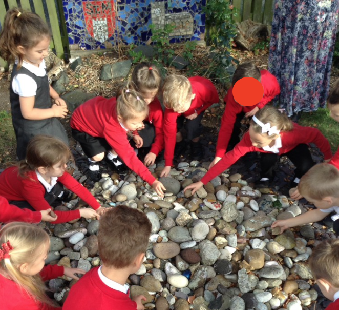 We have had our Cairn ceremony today with Rev. Sue. The children all laid a stone in the garden at the front of school.