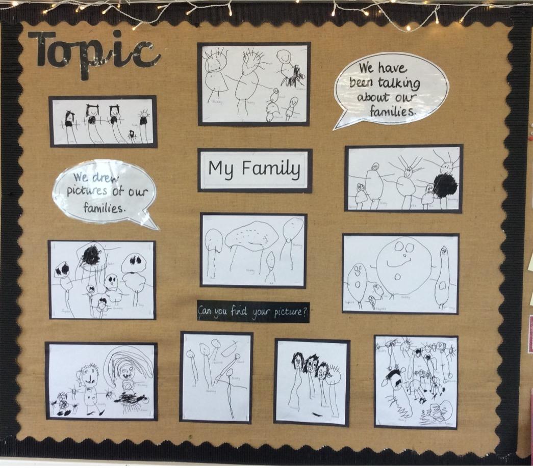 This week we have been talking about our families. During circle time the children talked about the people in their families and then they did pen drawings of their families.