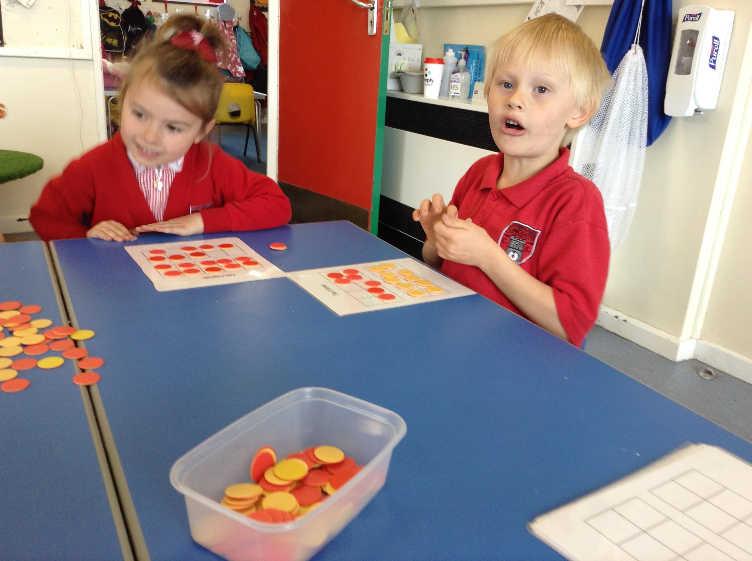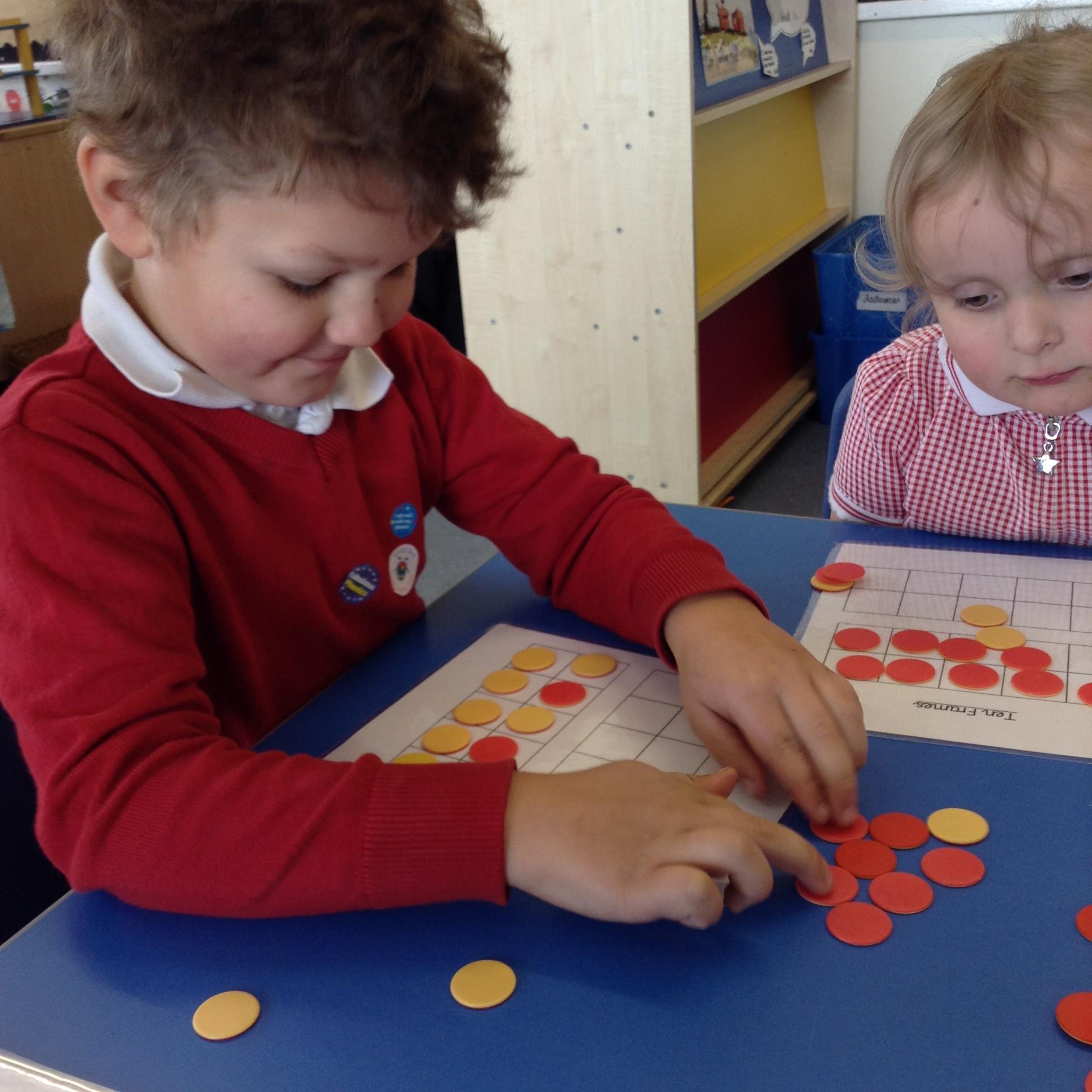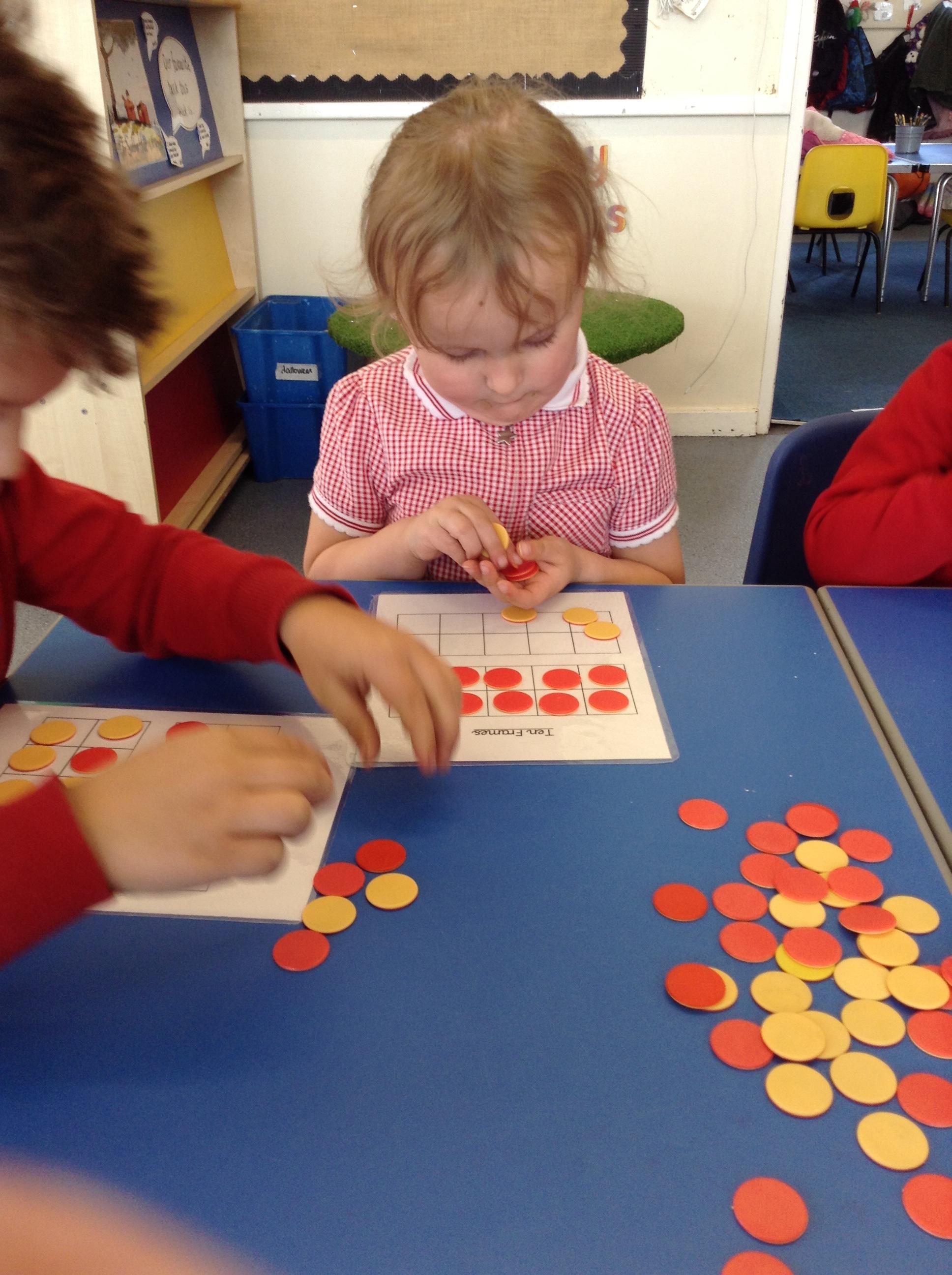 In maths we are looking at numbers form 11 - 20 and the children made their own board games this week and used larger numbers to make the track on their boards. We have been identifying numbers 11 - 20 and then counting out the corresponding number of counters on to ten frames.
