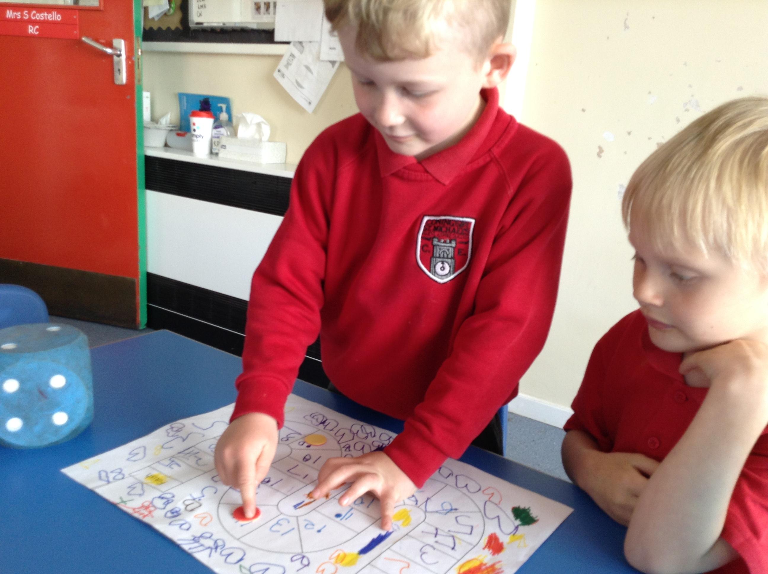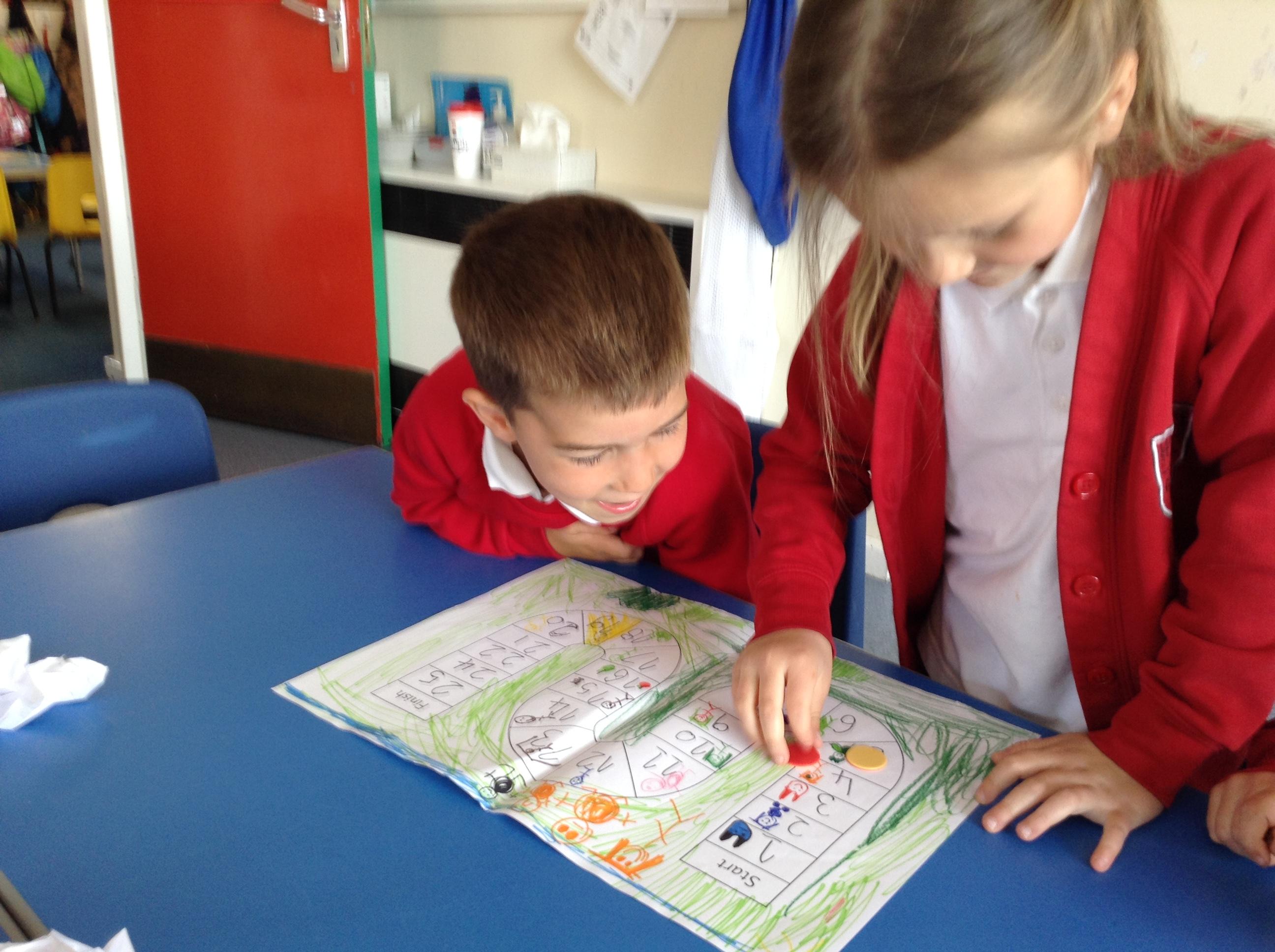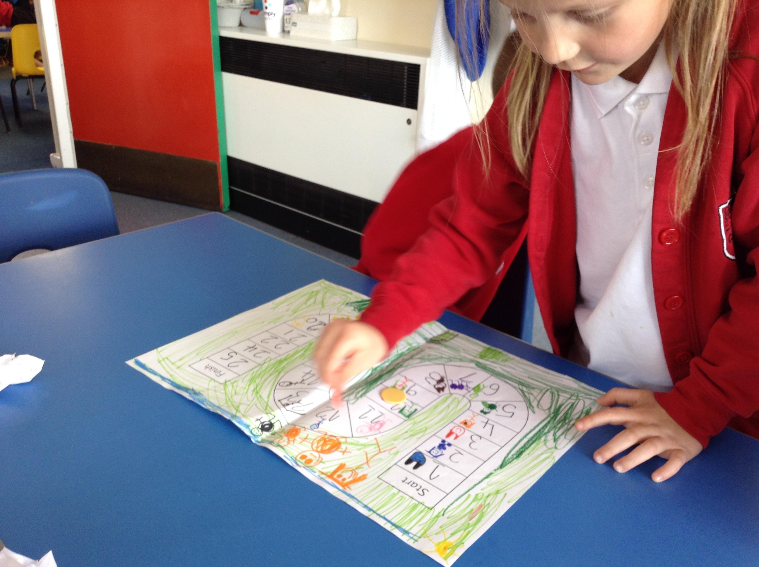 In maths we have been continuing to look at numbers from 11 - 20. We have been counting on from 10 rather than re counting when we know there are 10 for example when using ten frames. The children have been playing the board games they designed last week and playing them with a friend. They have been subitising when looking at the dice and counting the corresponding number of places on the board.