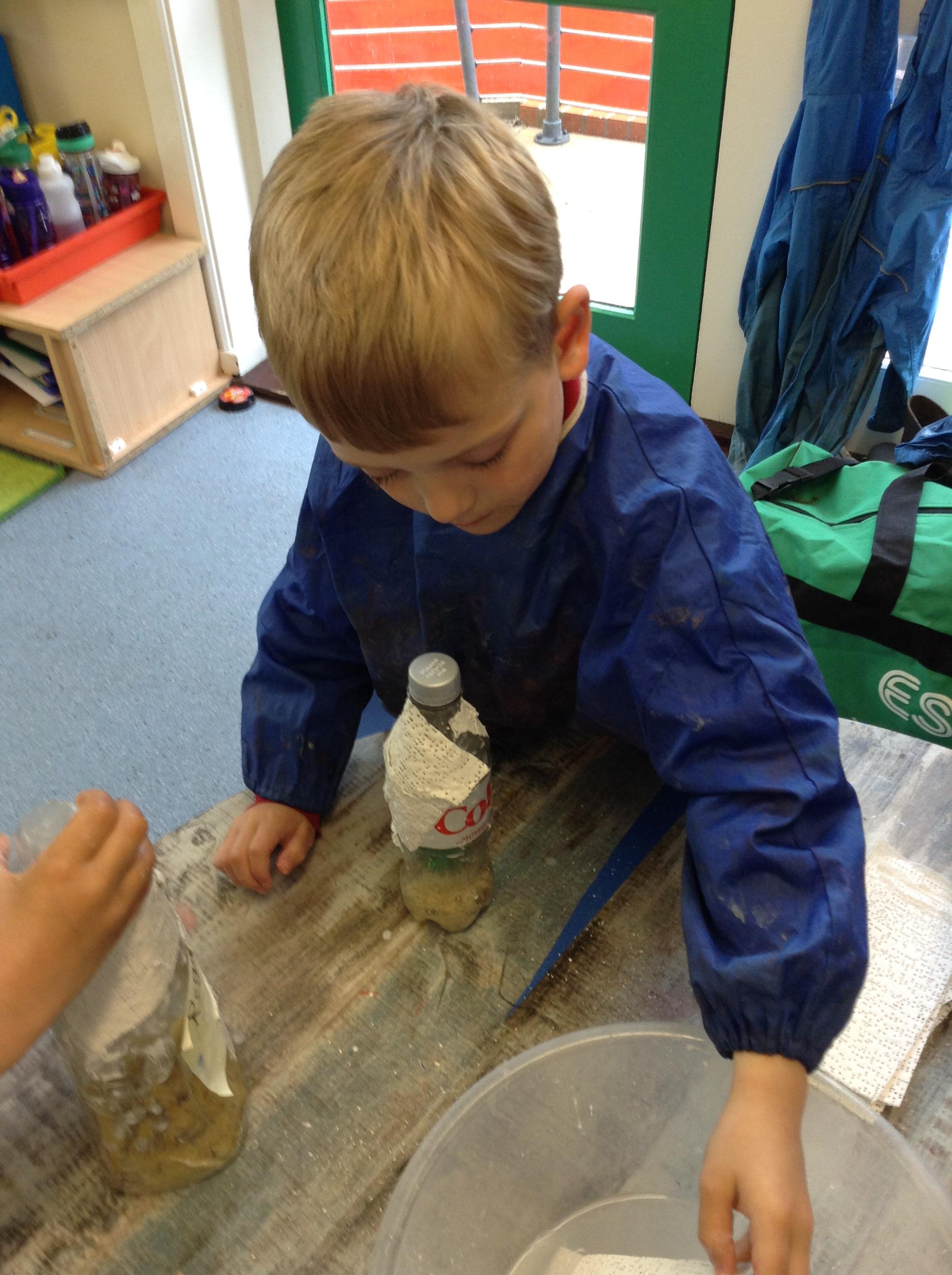 We have been reading Yucky Worms this week and finding out all about worms. The children have amazed us this week by remembering so many worm facts! We children loved searching for worms in the garden and making our own wormery. We watched the worms tunnelling through the layers of sand and soil. We didn't keep the worms in the wormery for long as it wouldn't be fair to keep them in such a small space for too long.