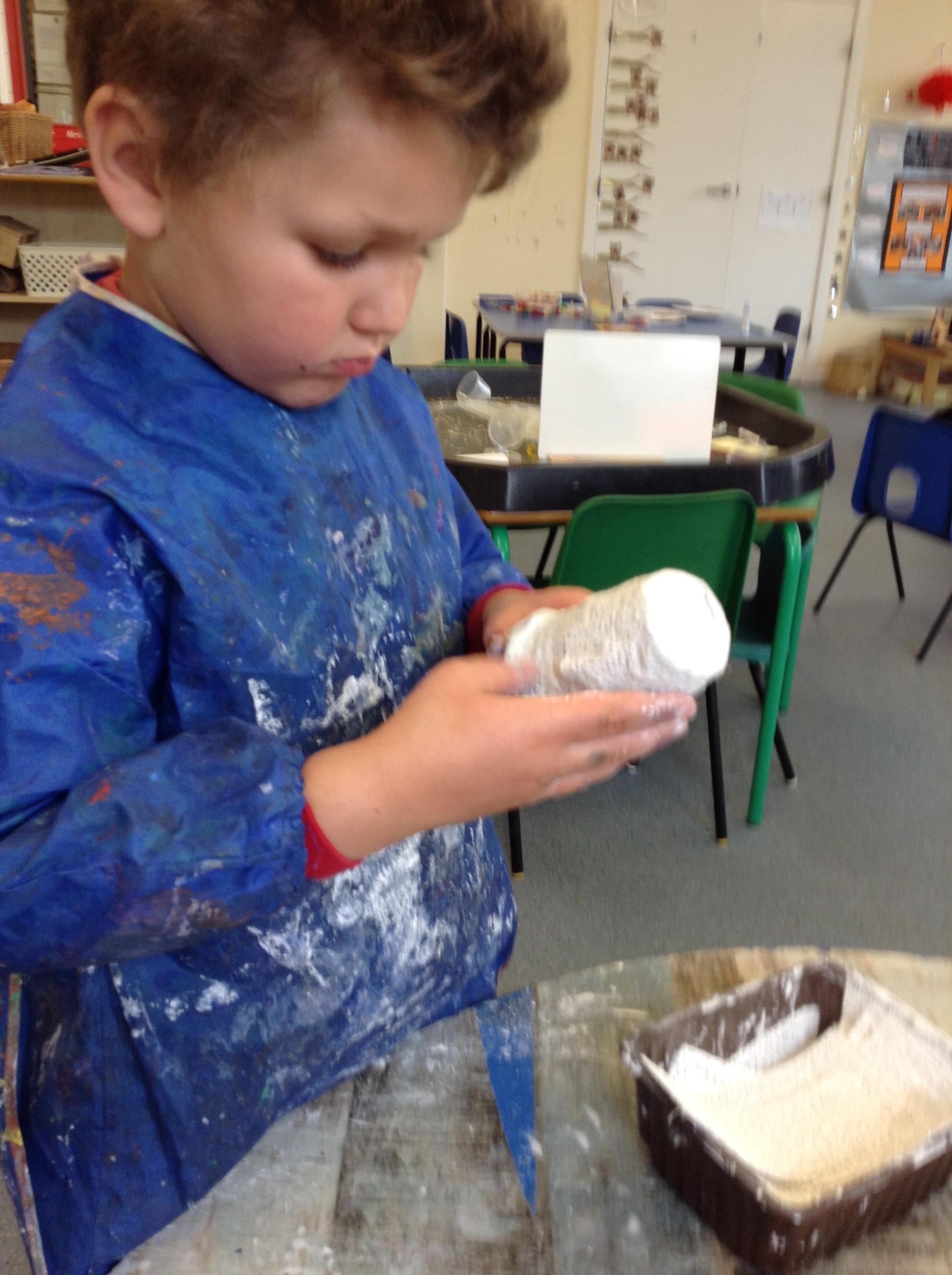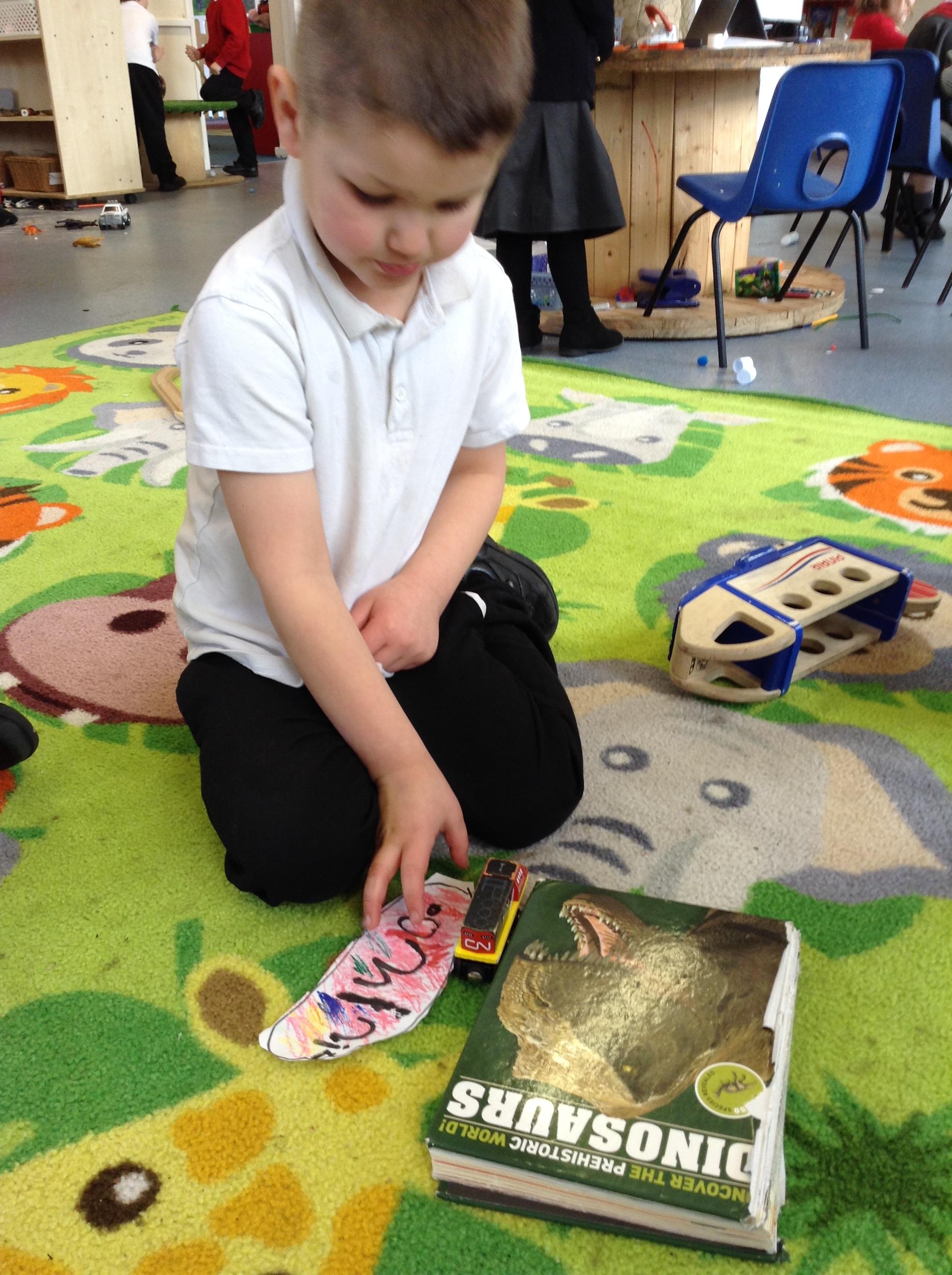 The children have been using their imagination to think about what their stick could be. The stick has been transformed into a bird, a dinosaur and a shark to name a few!