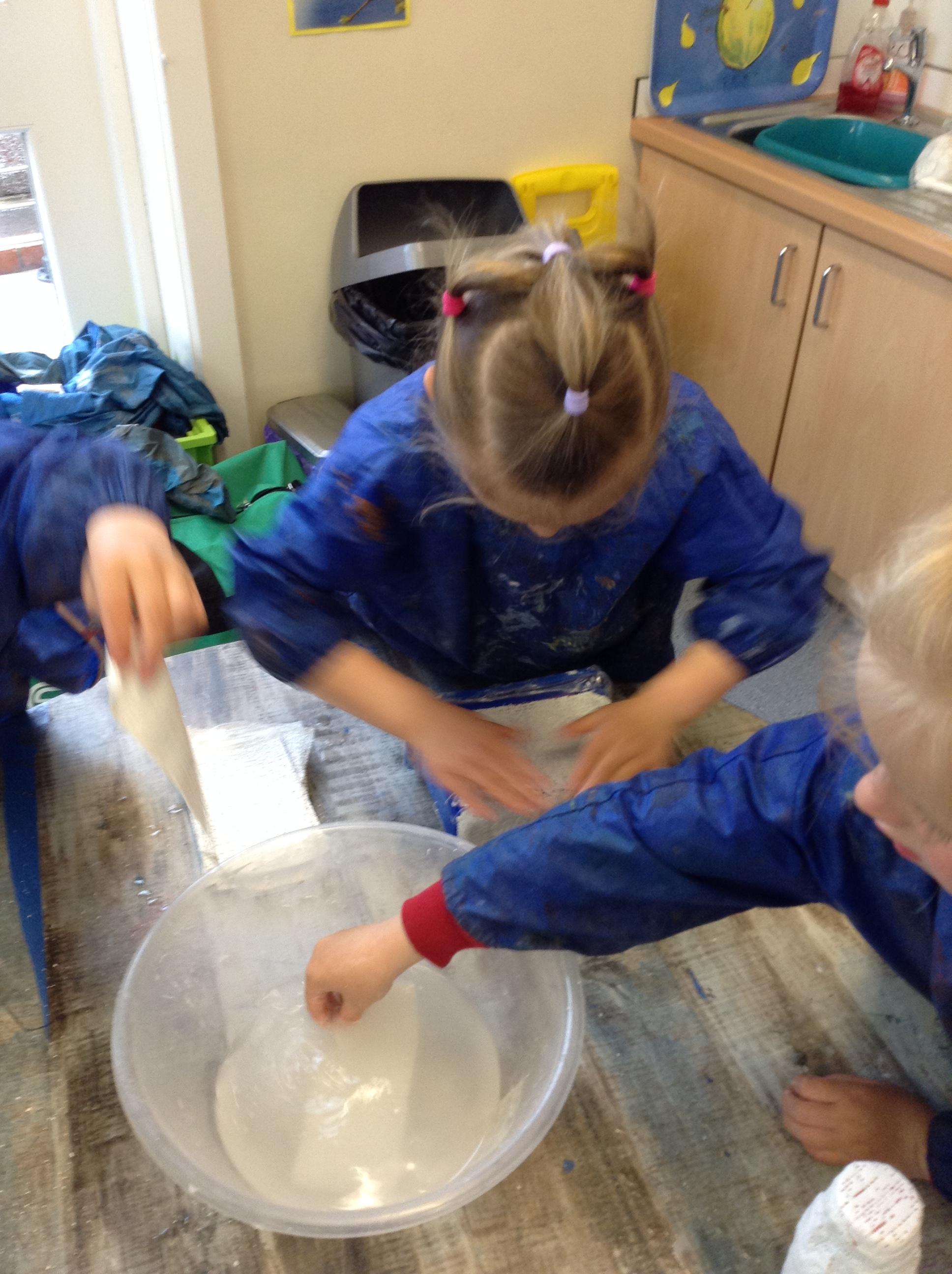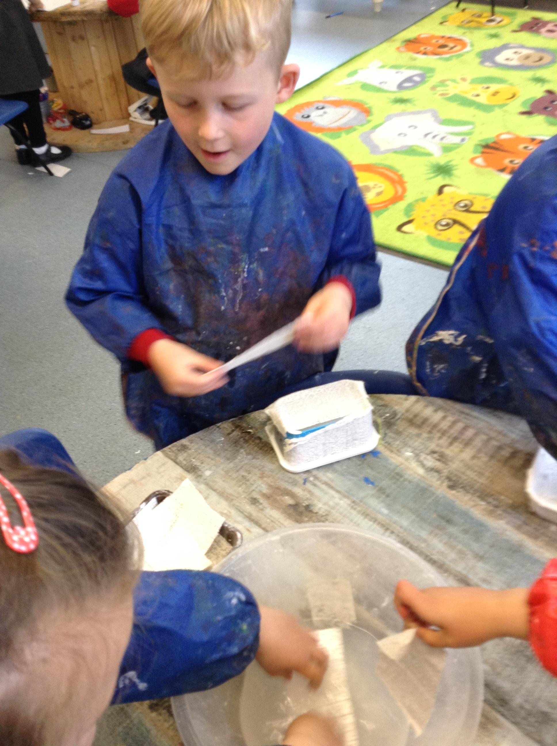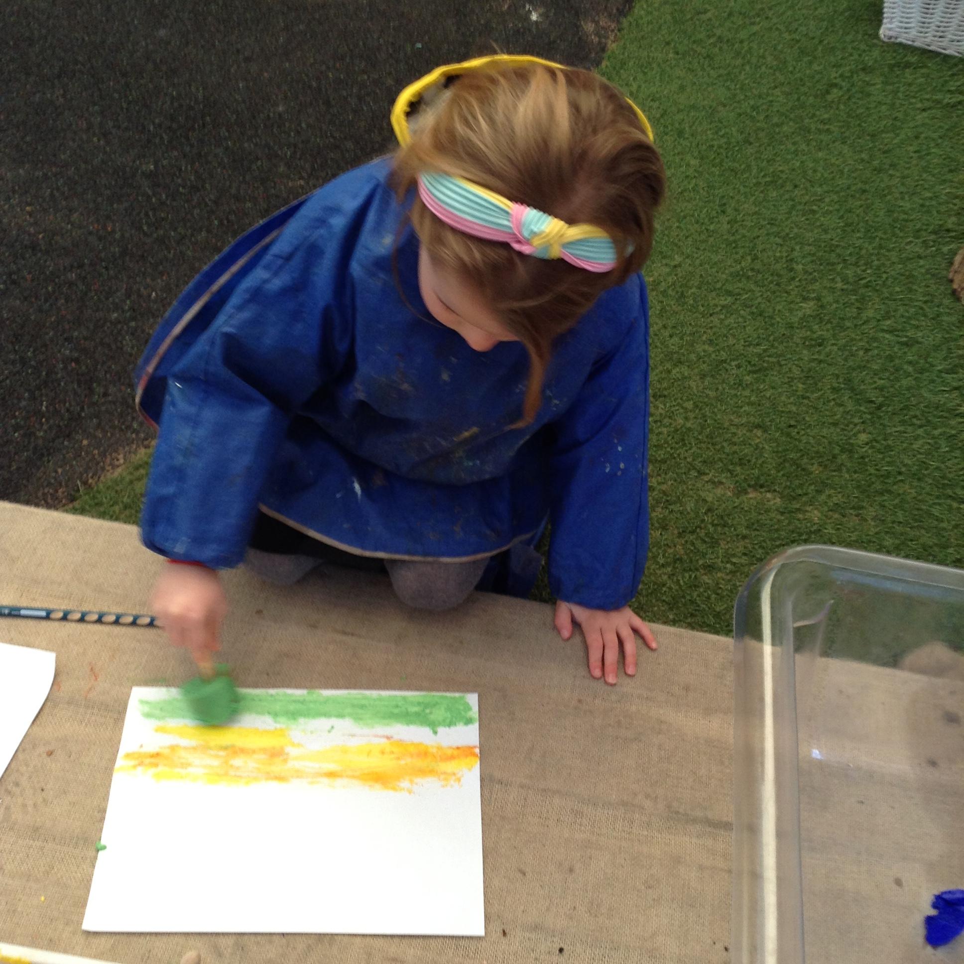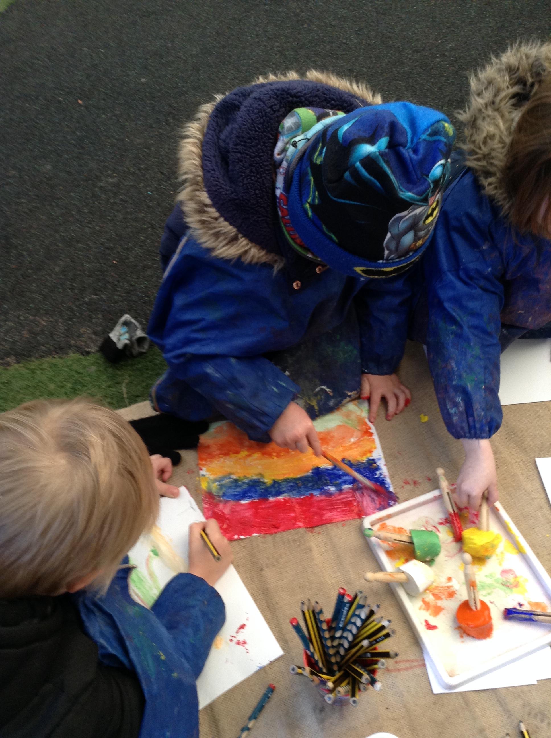 We have been looking at the cold weather and what happens to water outside when it is really cold. We have been looking at how and why the ice melts. We made frozen paint popsicles and used them to paint with, we watched what happened as the ice block melted and the paint colours mixed as we painted with them.
