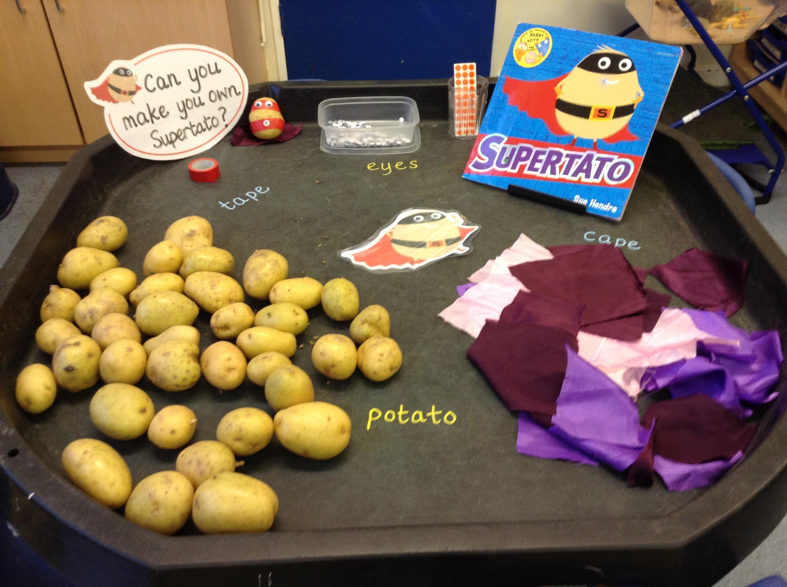 We have been reading Supertato this week and we had a surprise visit from the Evil Peas who had escaped from The Big Red Kitchen's freezer!