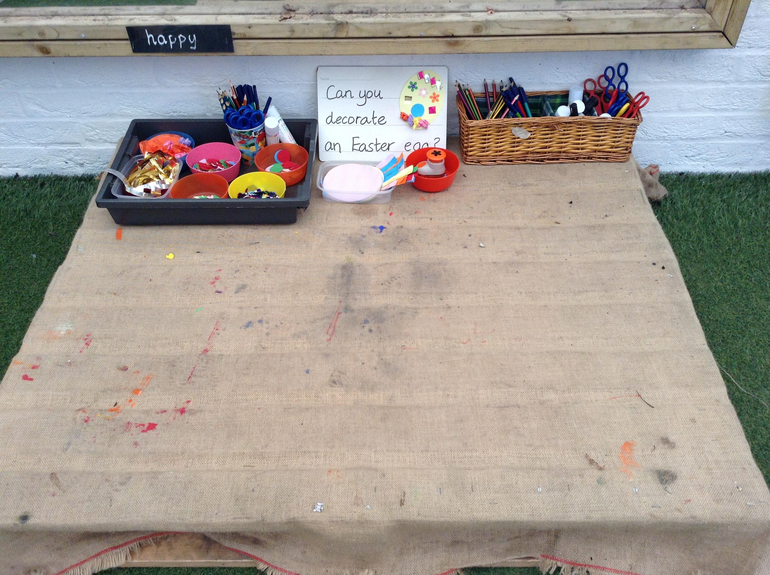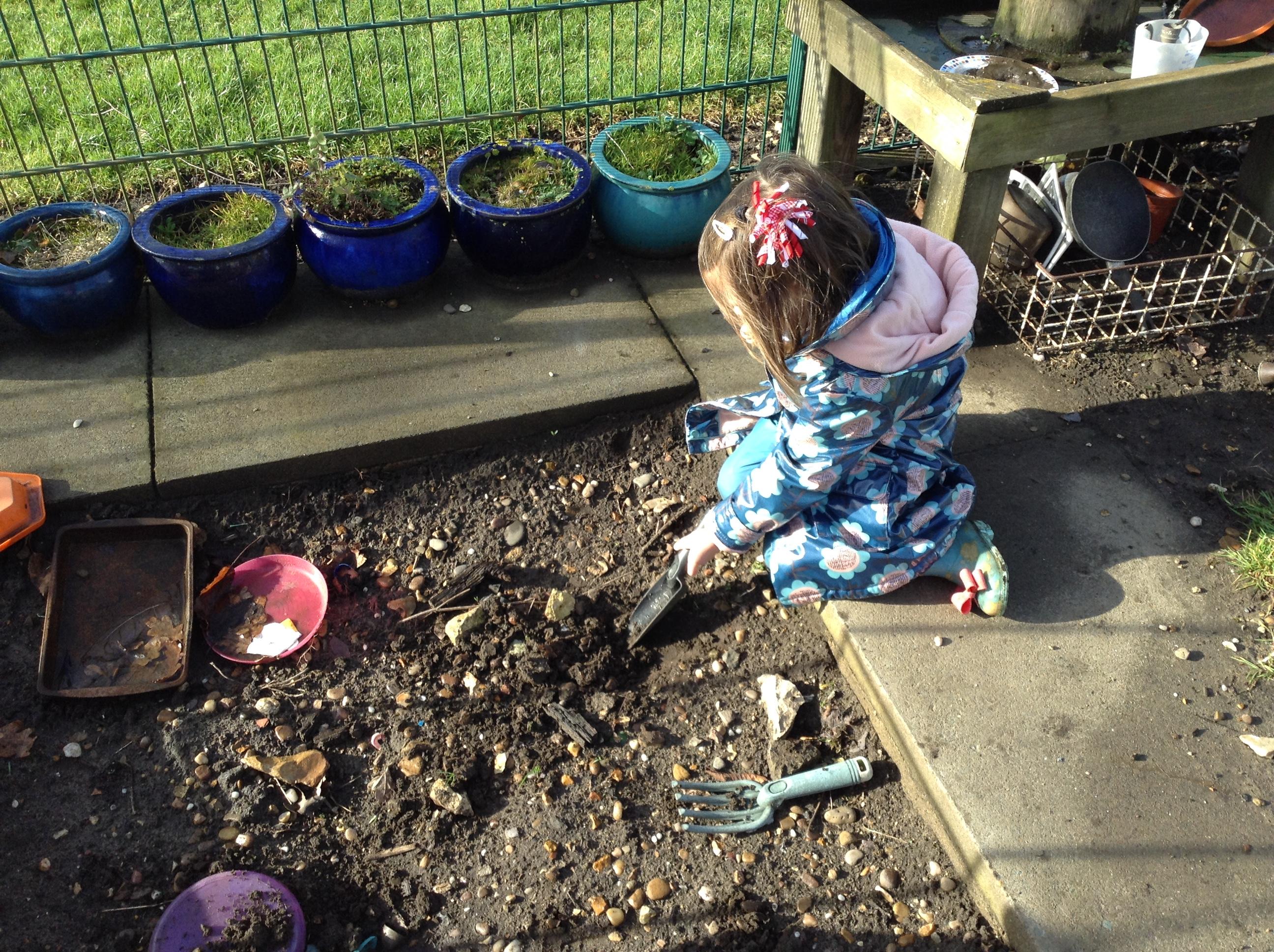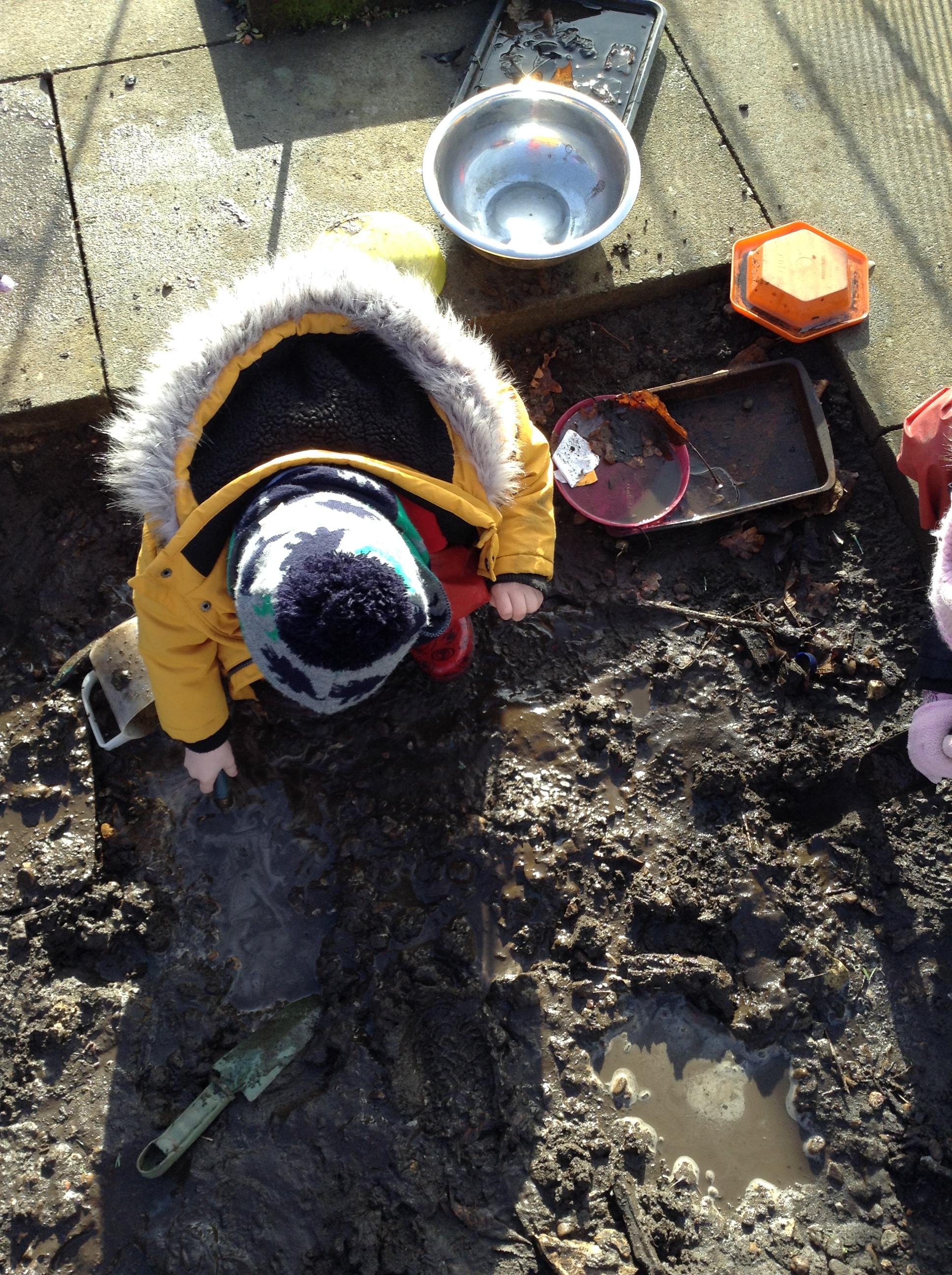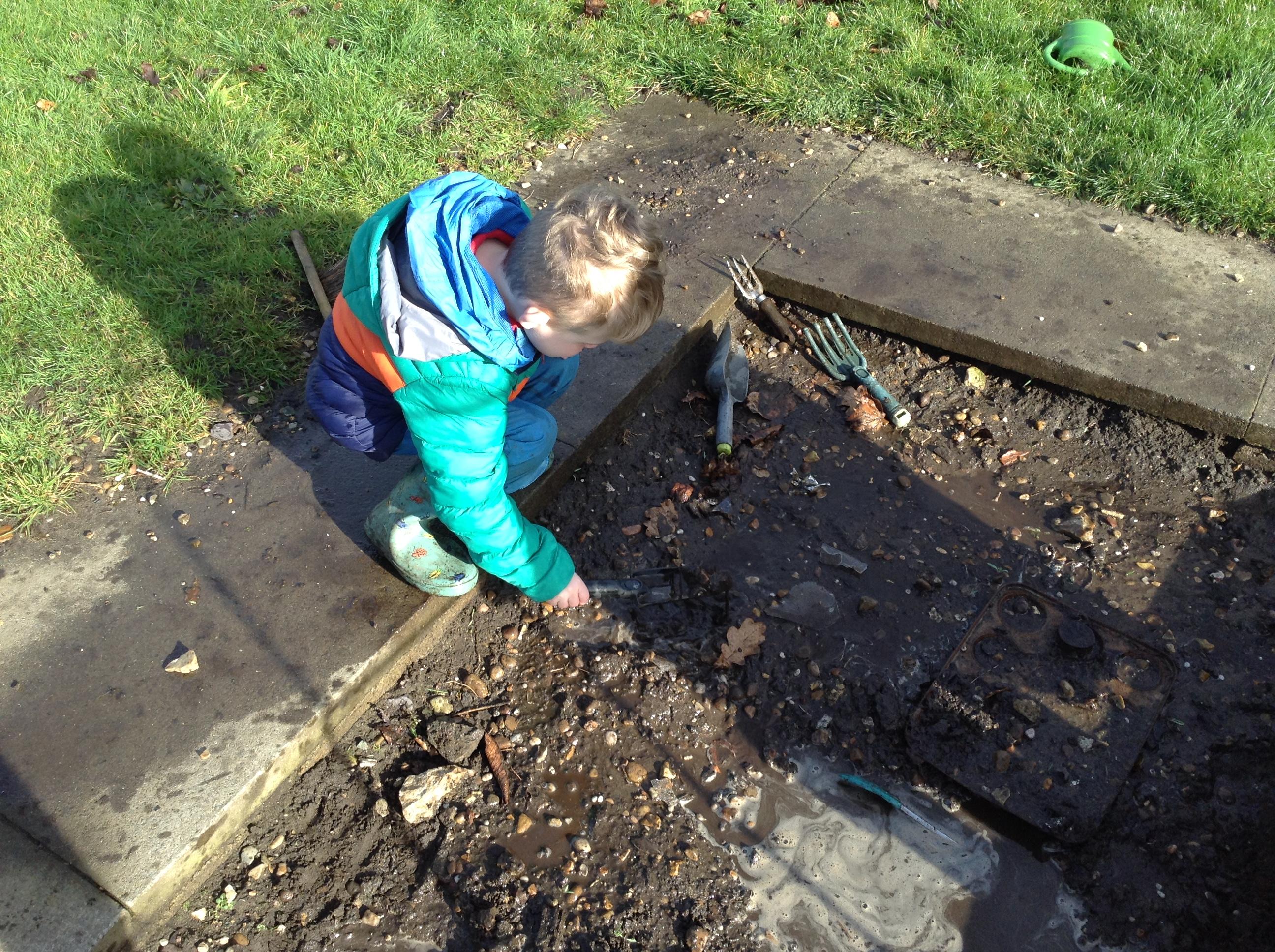 The children have been interested in construction vehicles this week so we have created a building site in our tuff spot in the courtyard.
