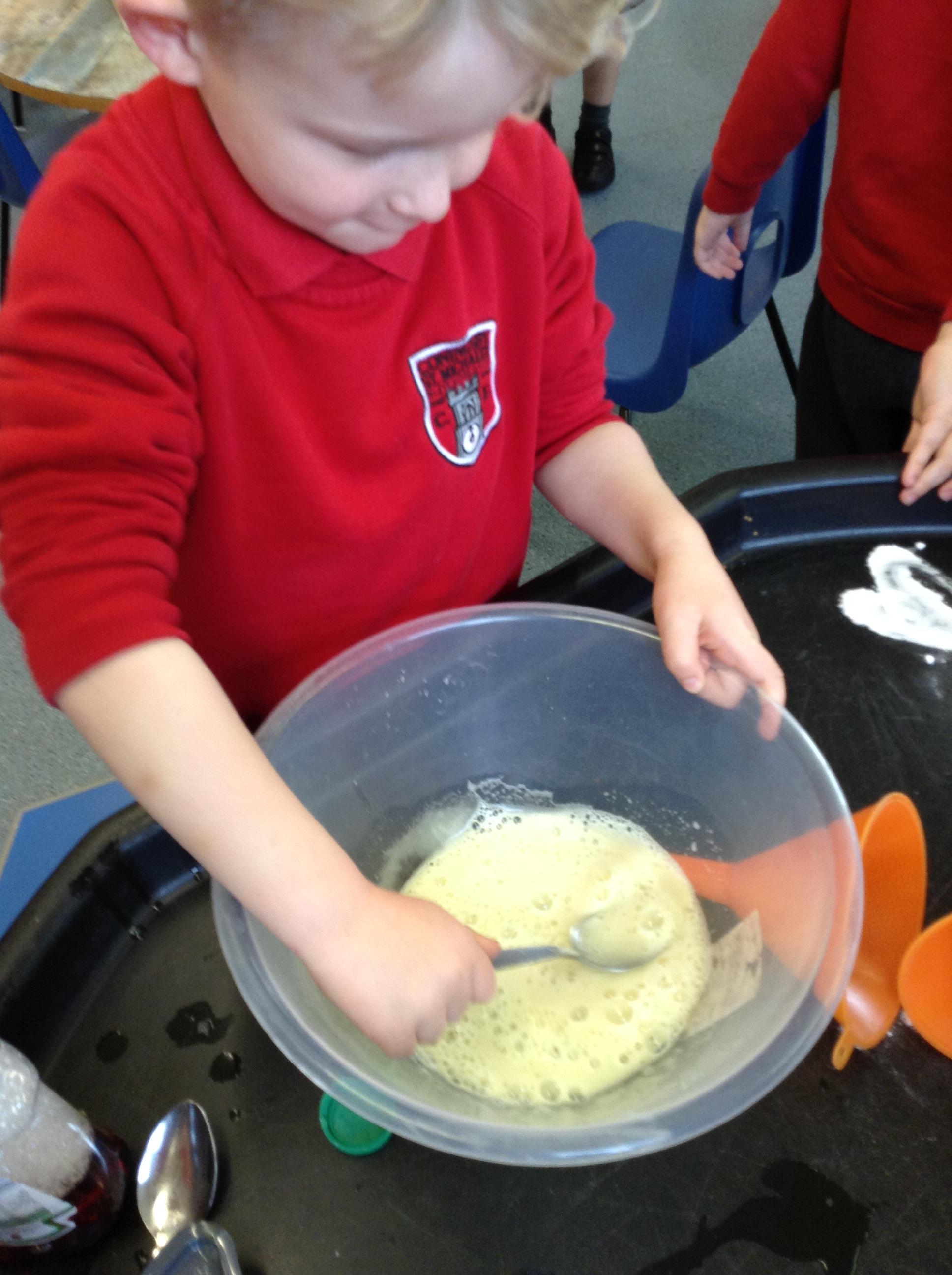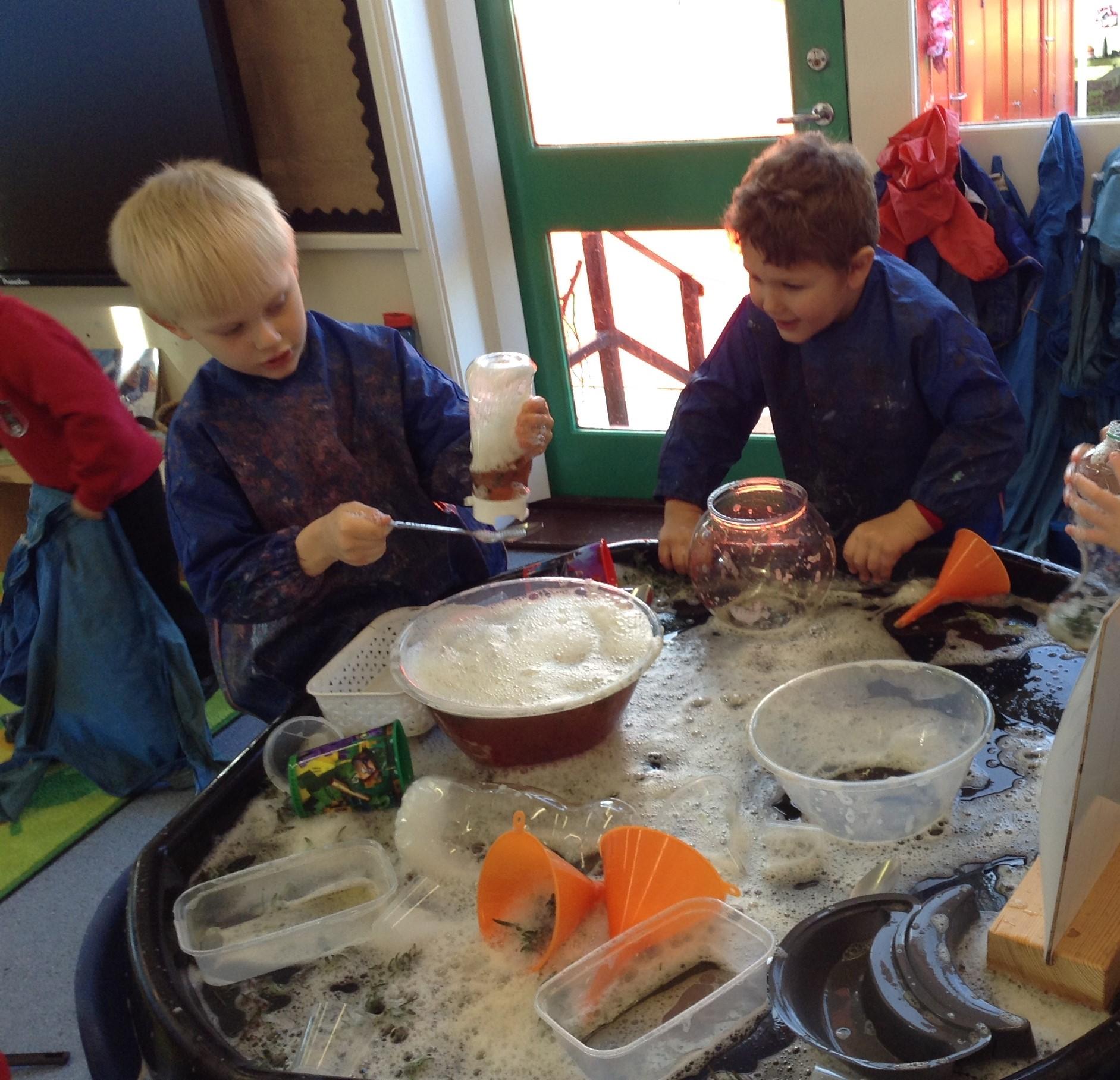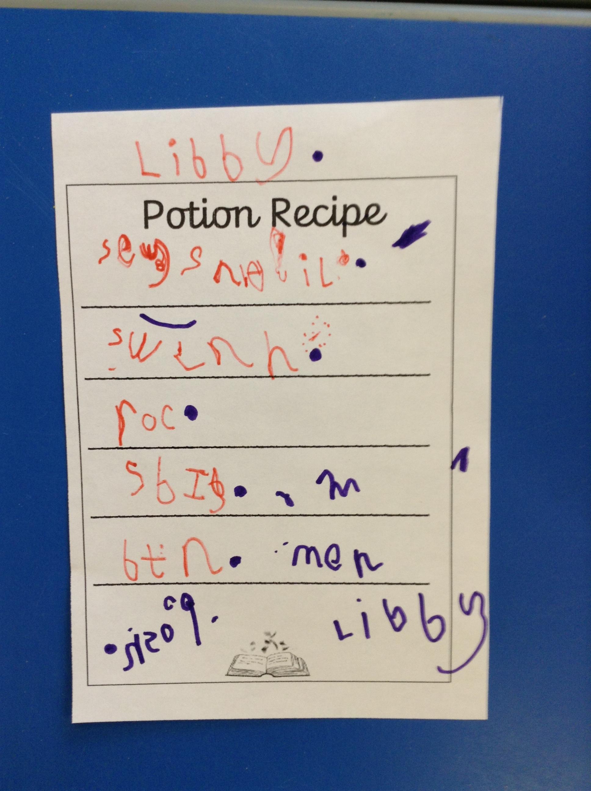 We have been making potions, watching the reactions as we mix different ingredients and writing our own recipes.