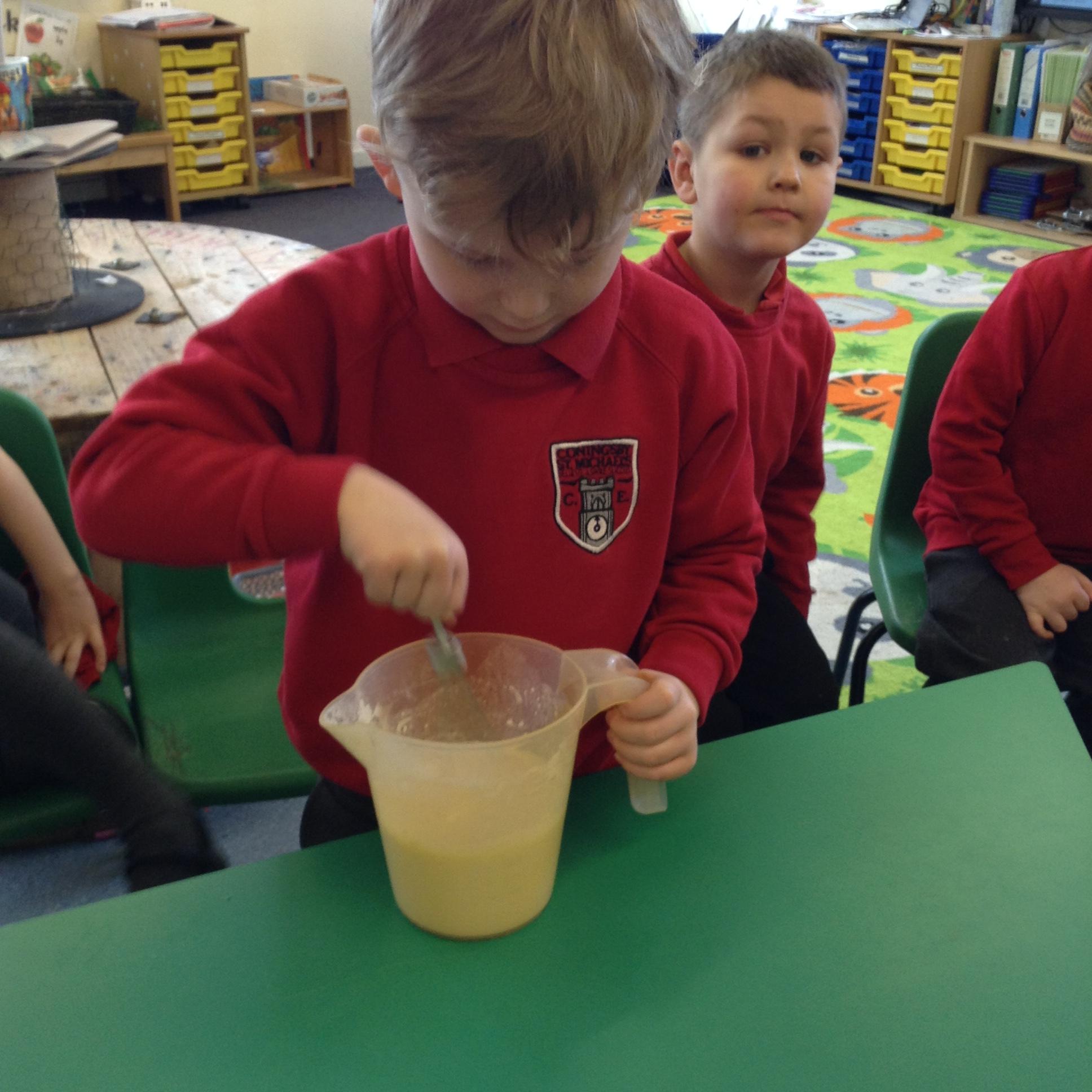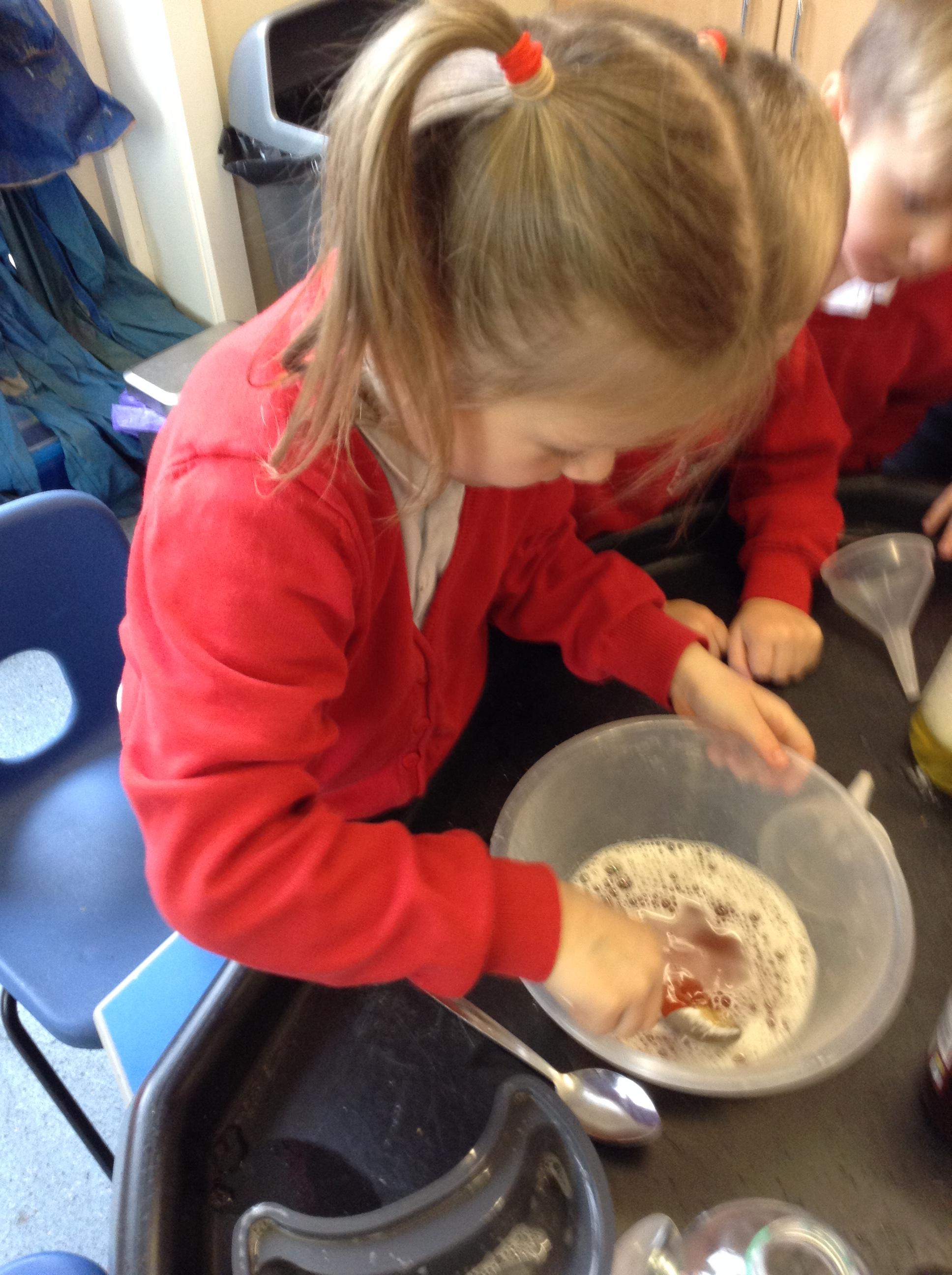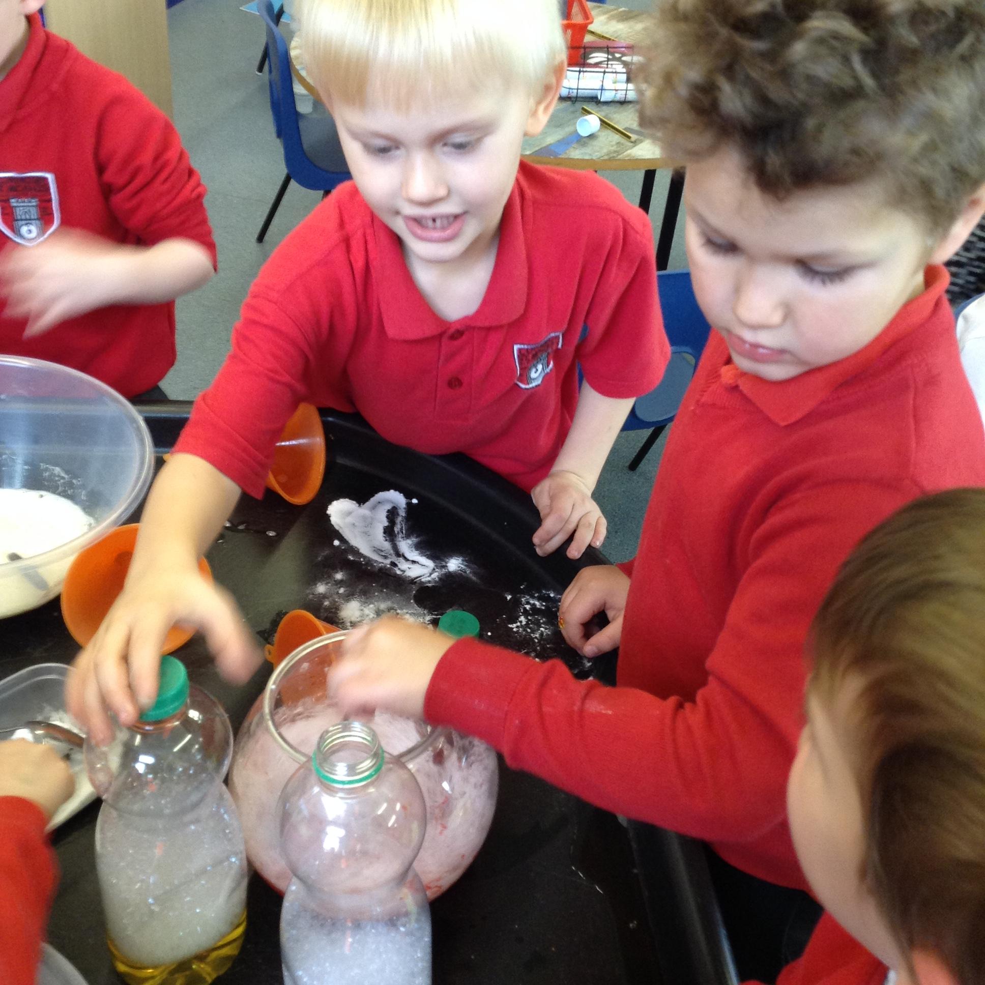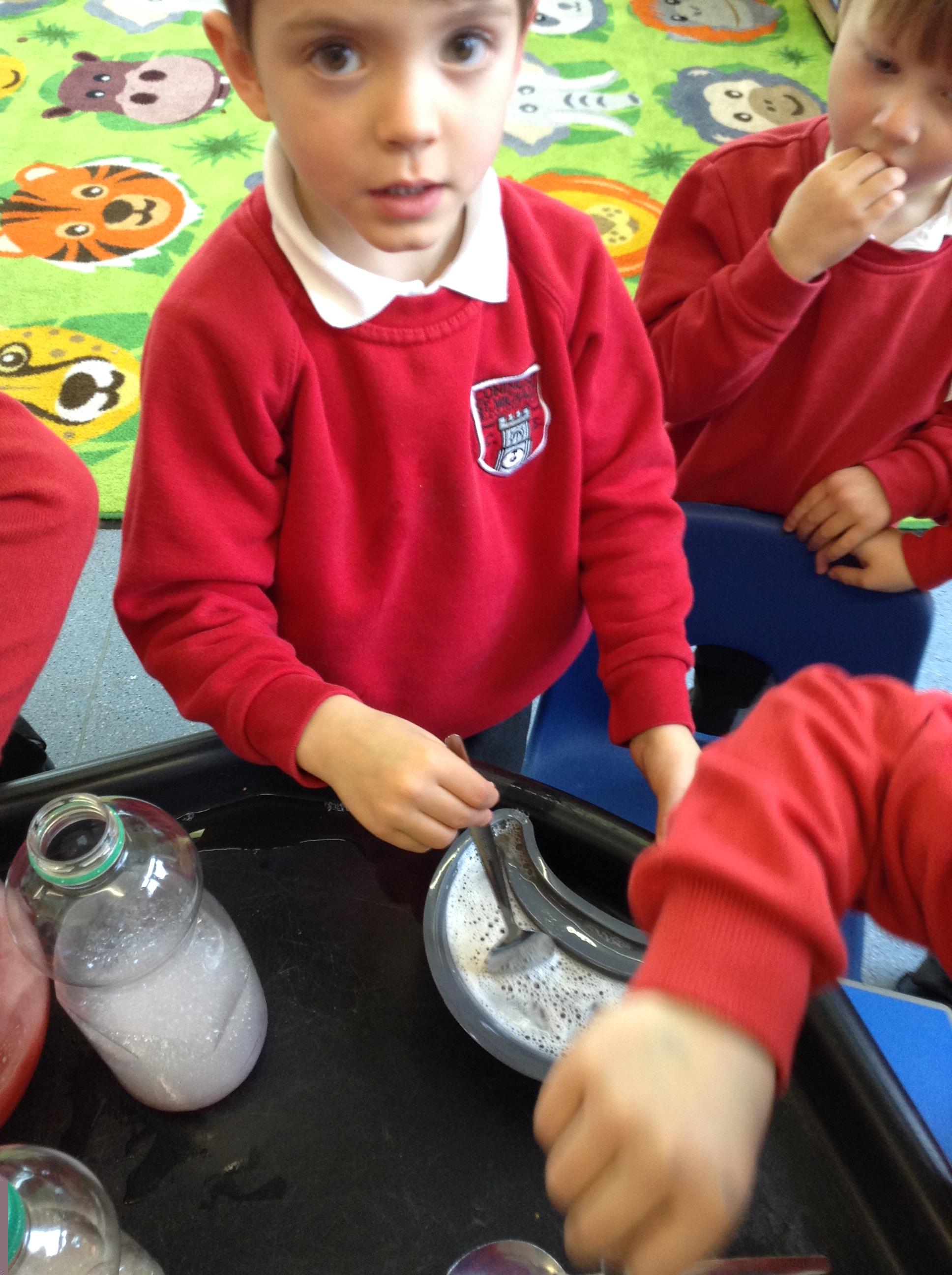 We have been making potions, watching the reactions as we mix different ingredients and writing our own recipes.