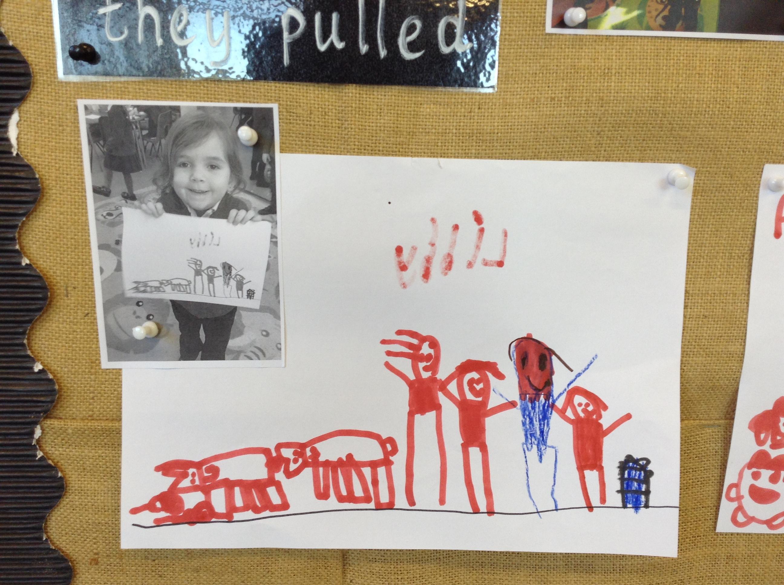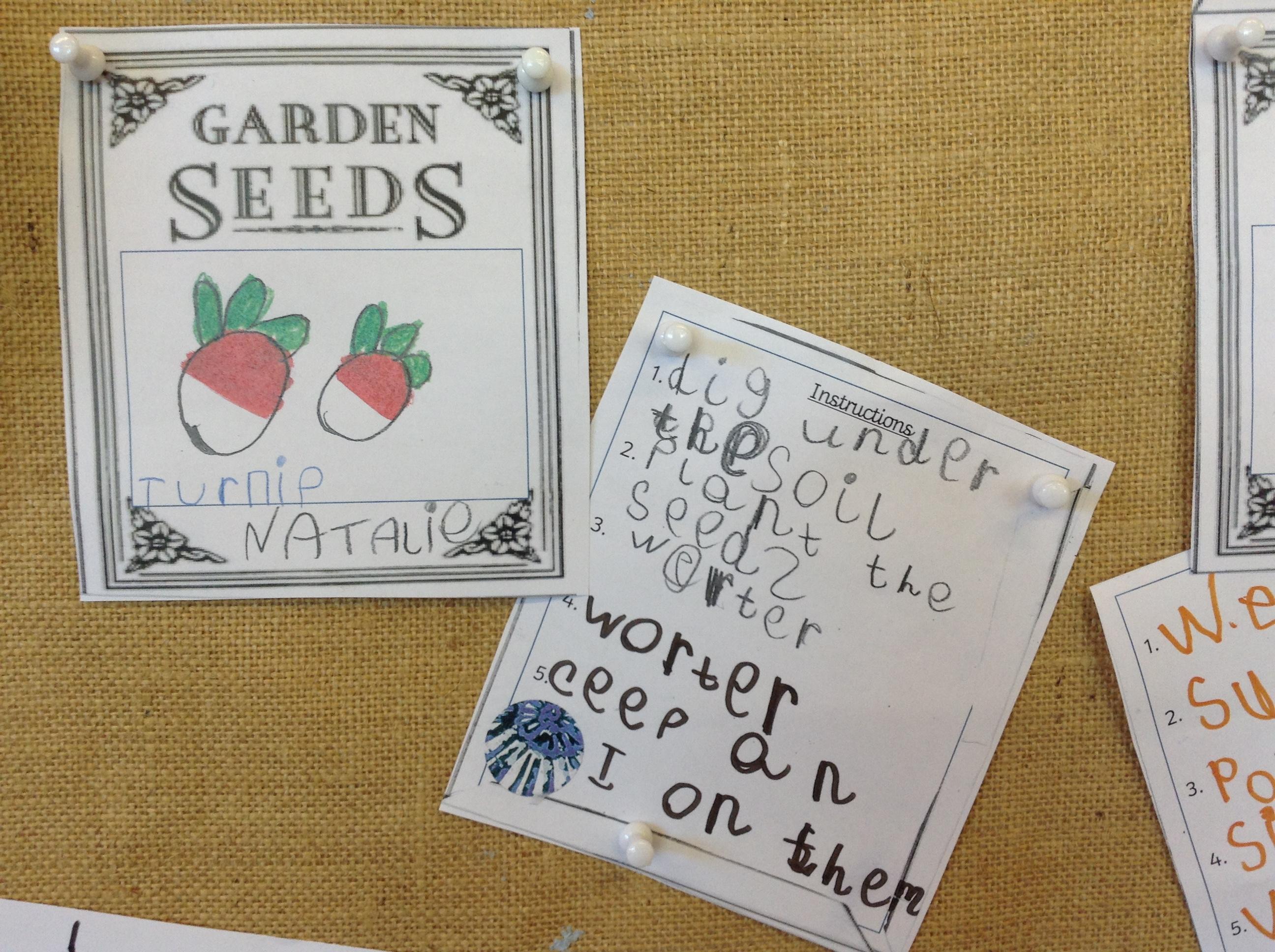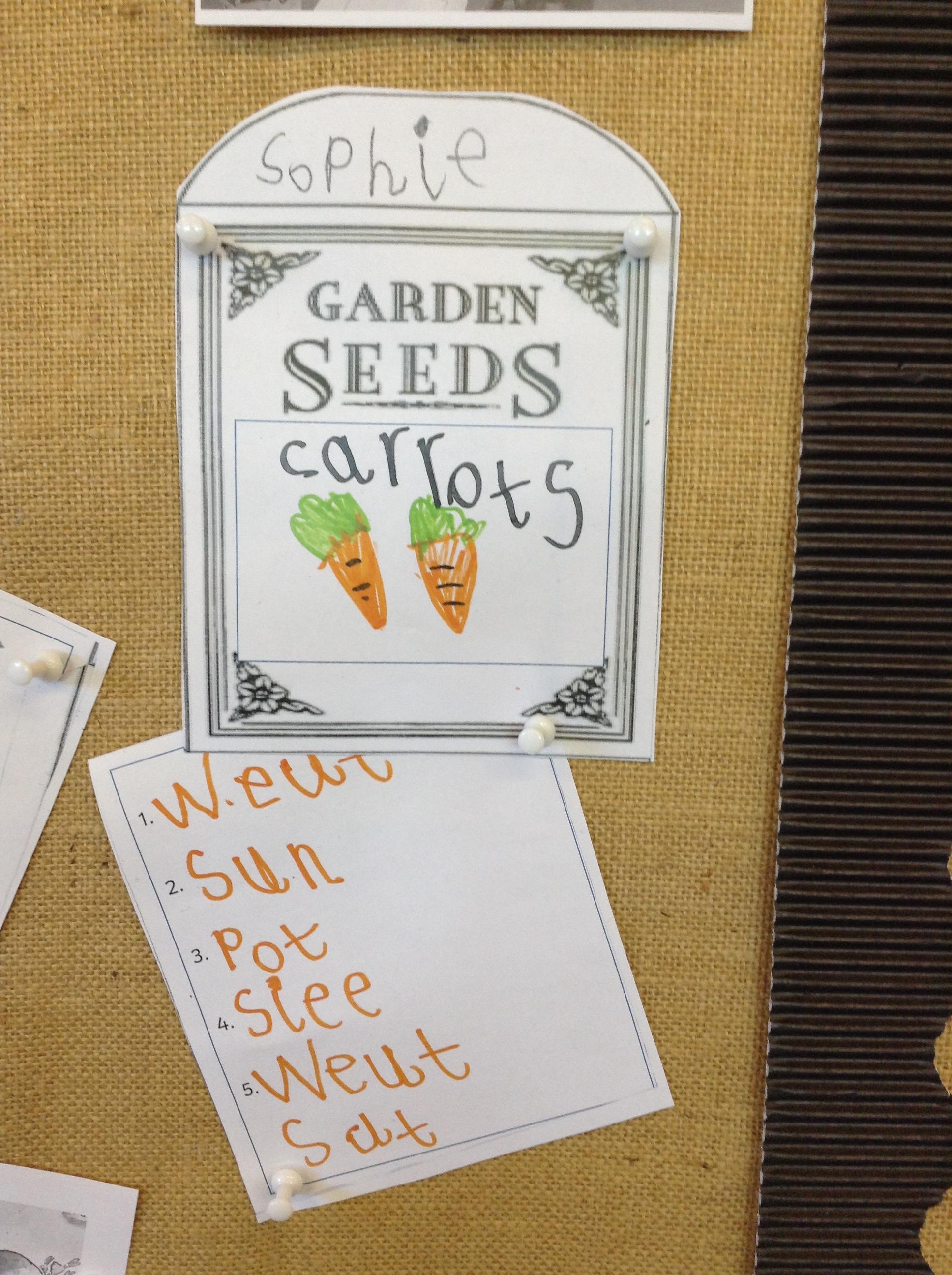 The children have been making seed packets and writing sentences to go with the story of The Enormous Turnip.