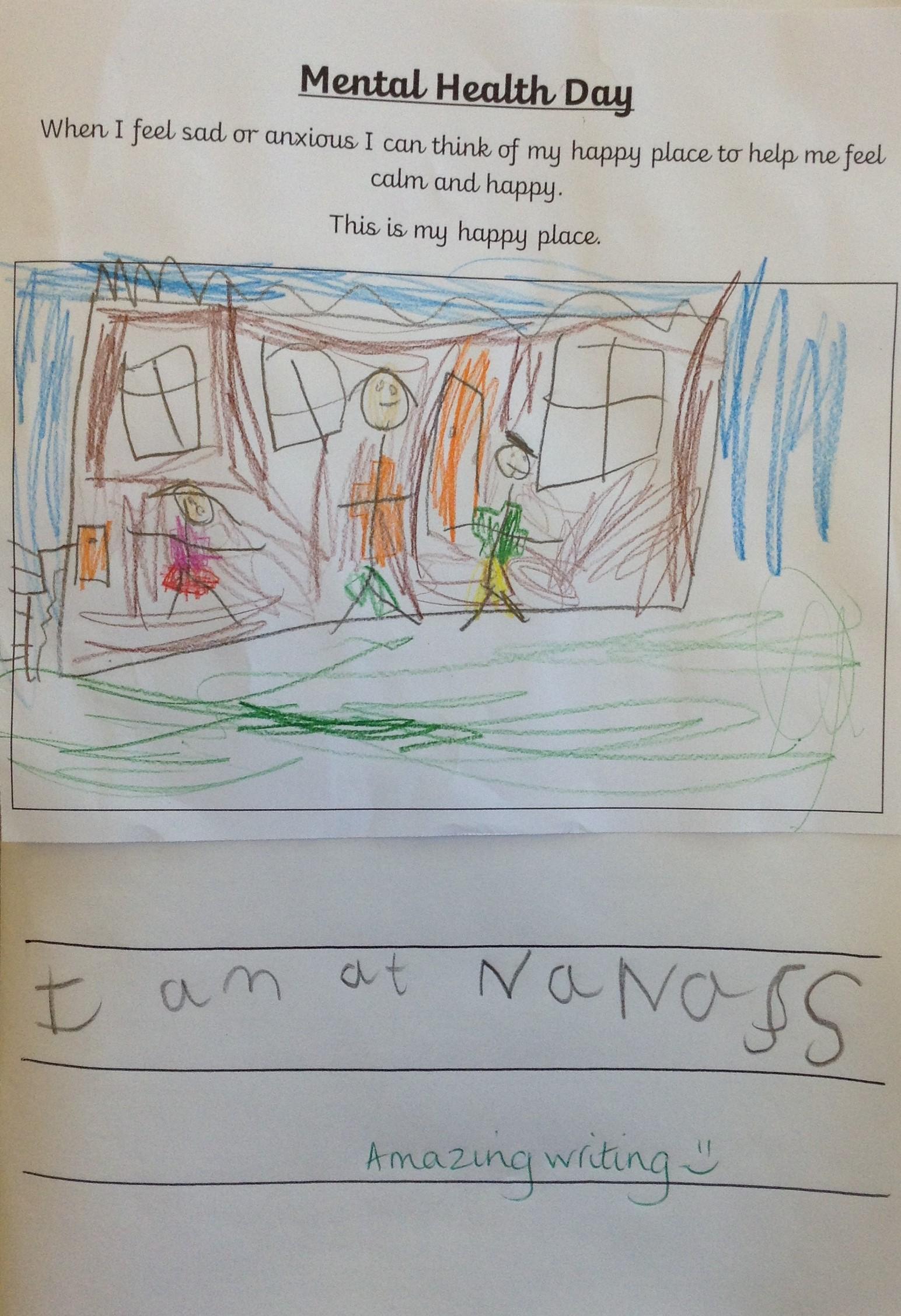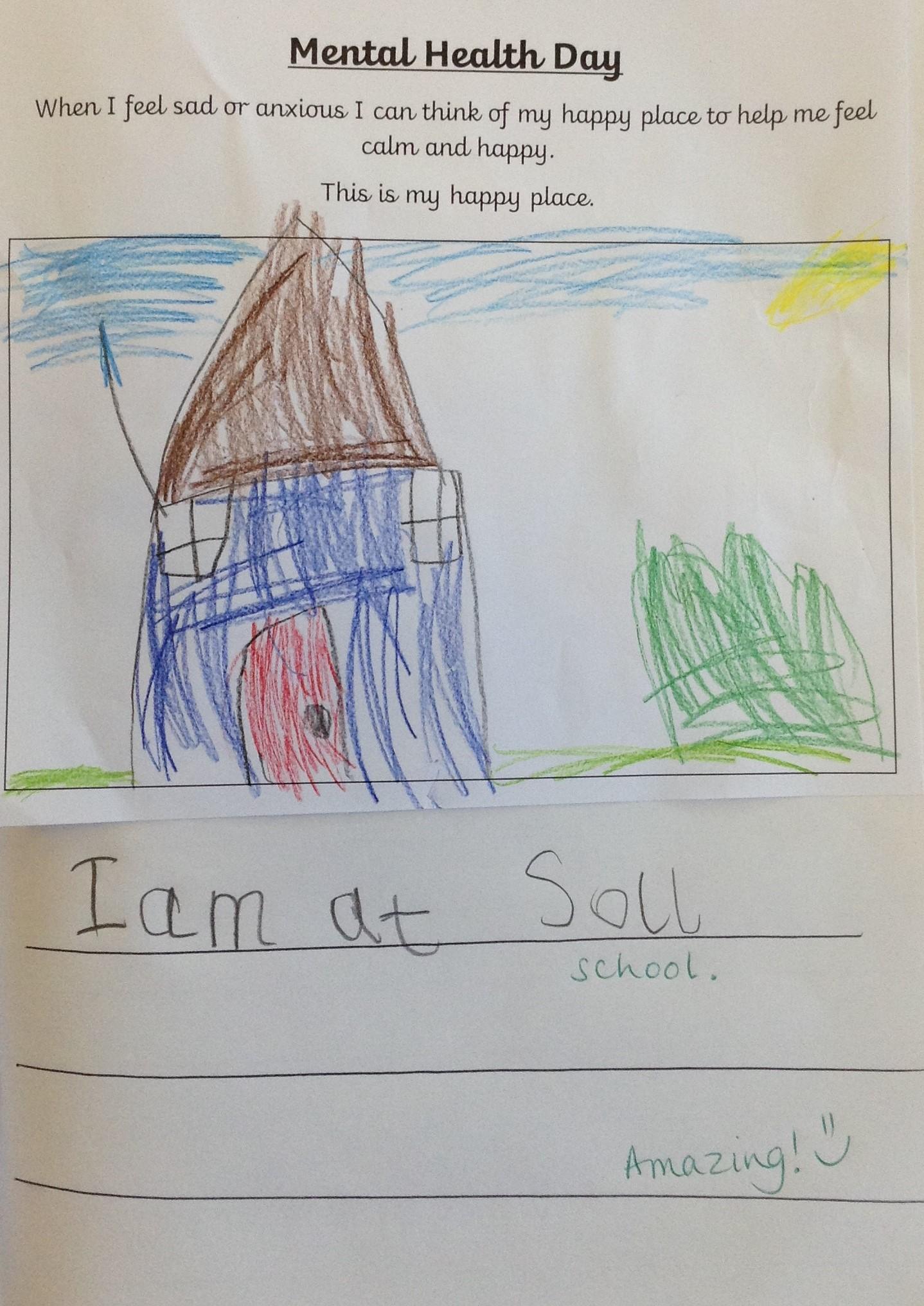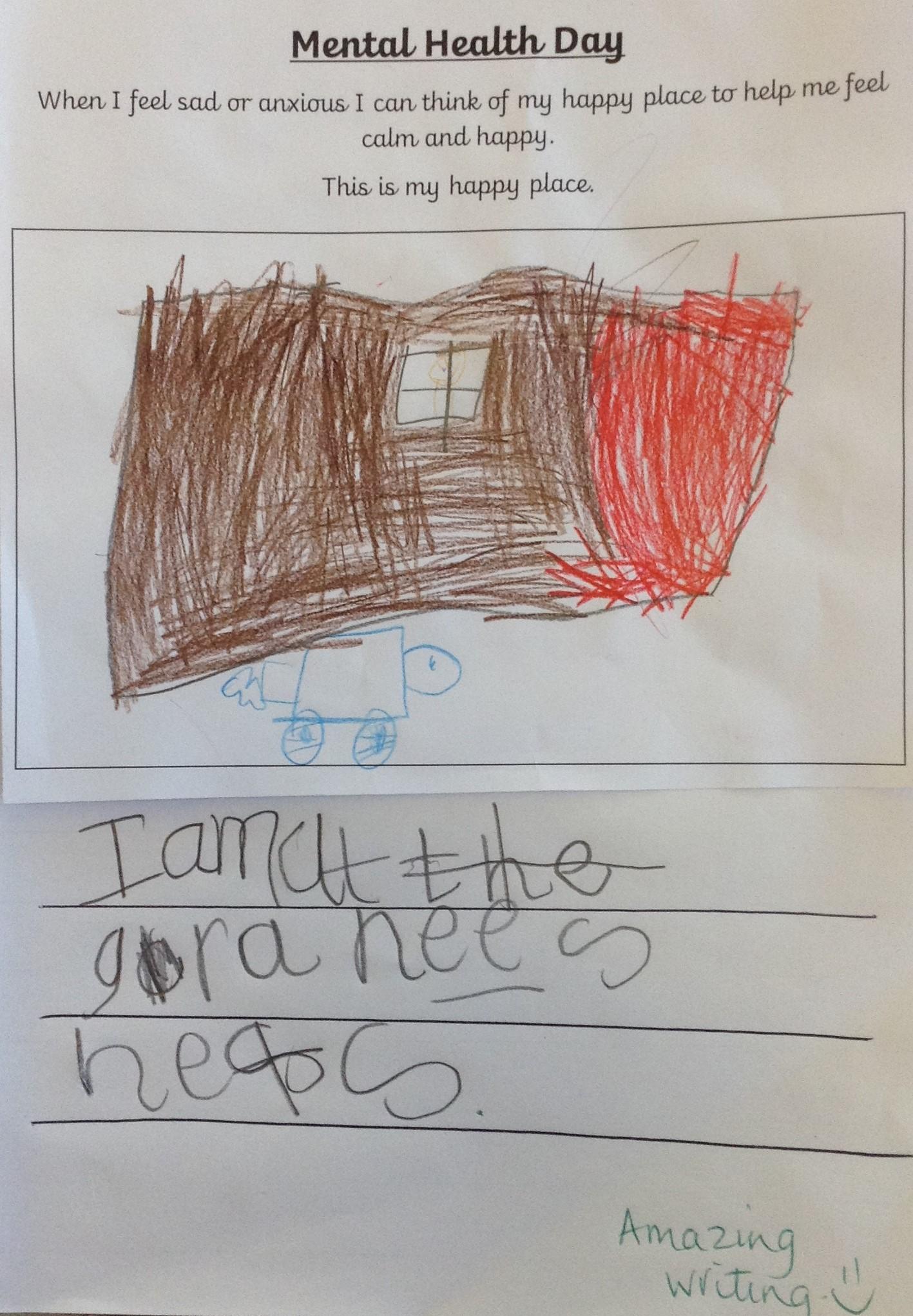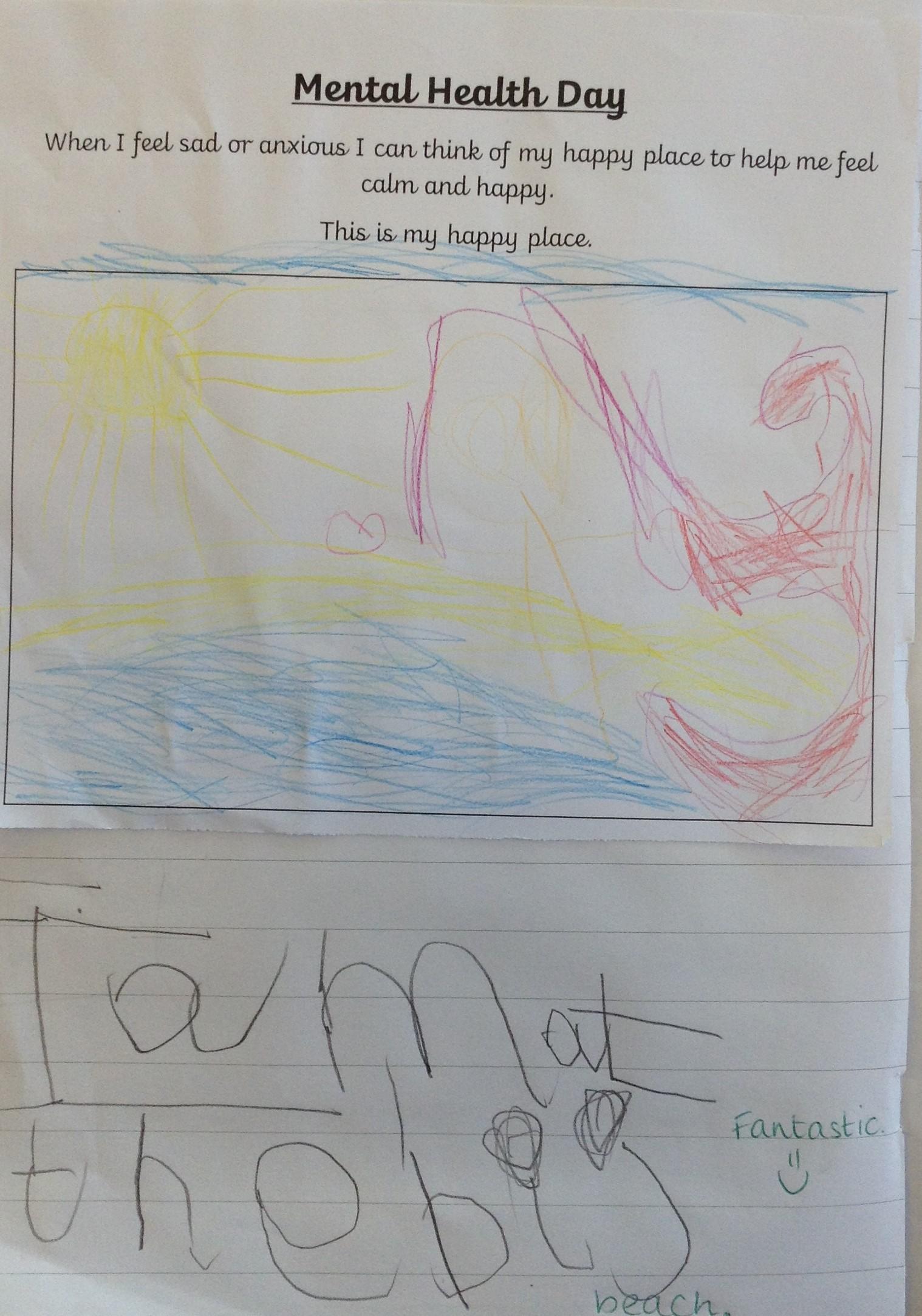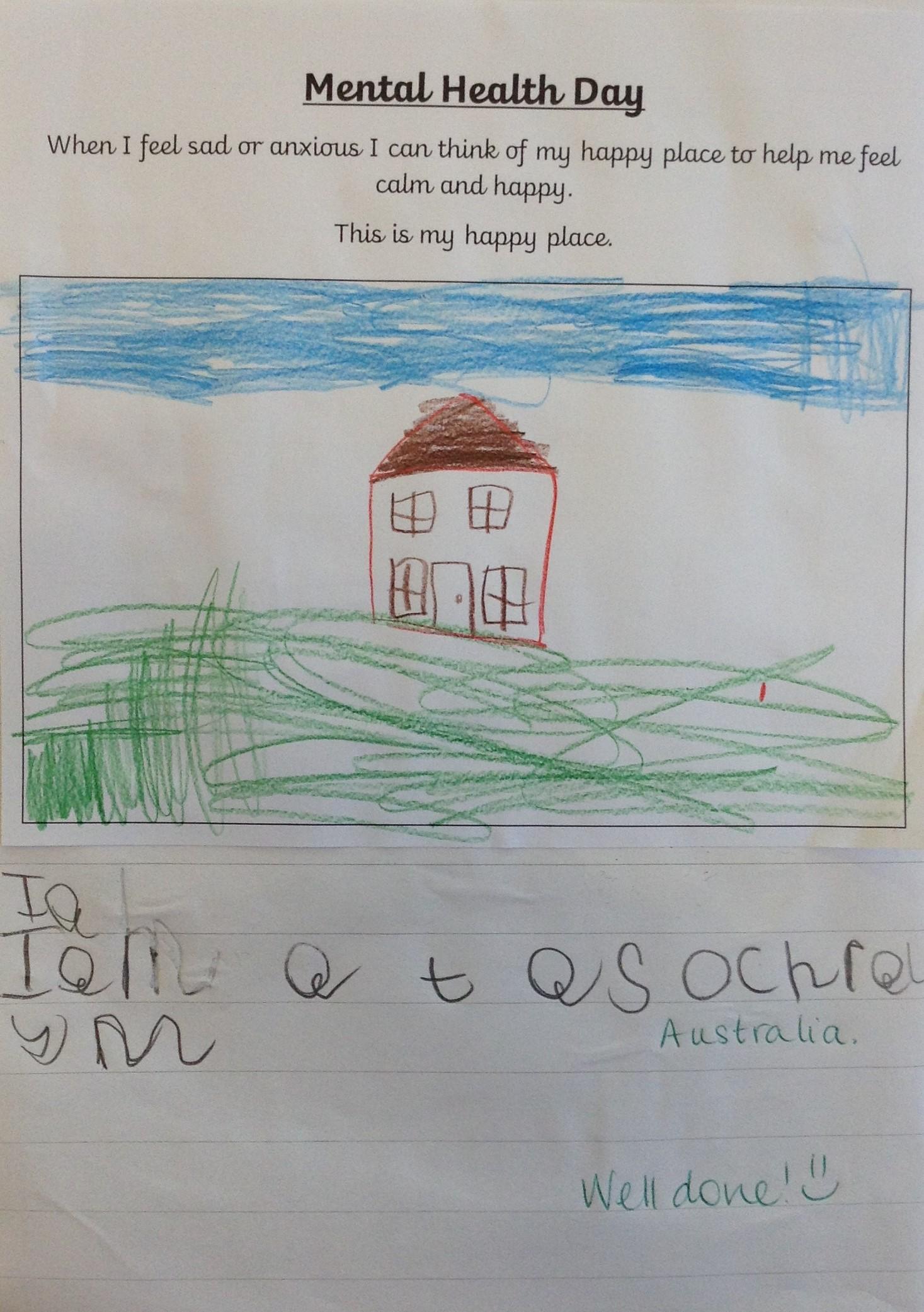This week has been Mental Heath Week and we have been thinking about places that make us feel happy and safe and how we can think of these places when we feel anxious or a little sad. The children have drawn pictures of their happy places and we have enjoyed sharing them together as a class.