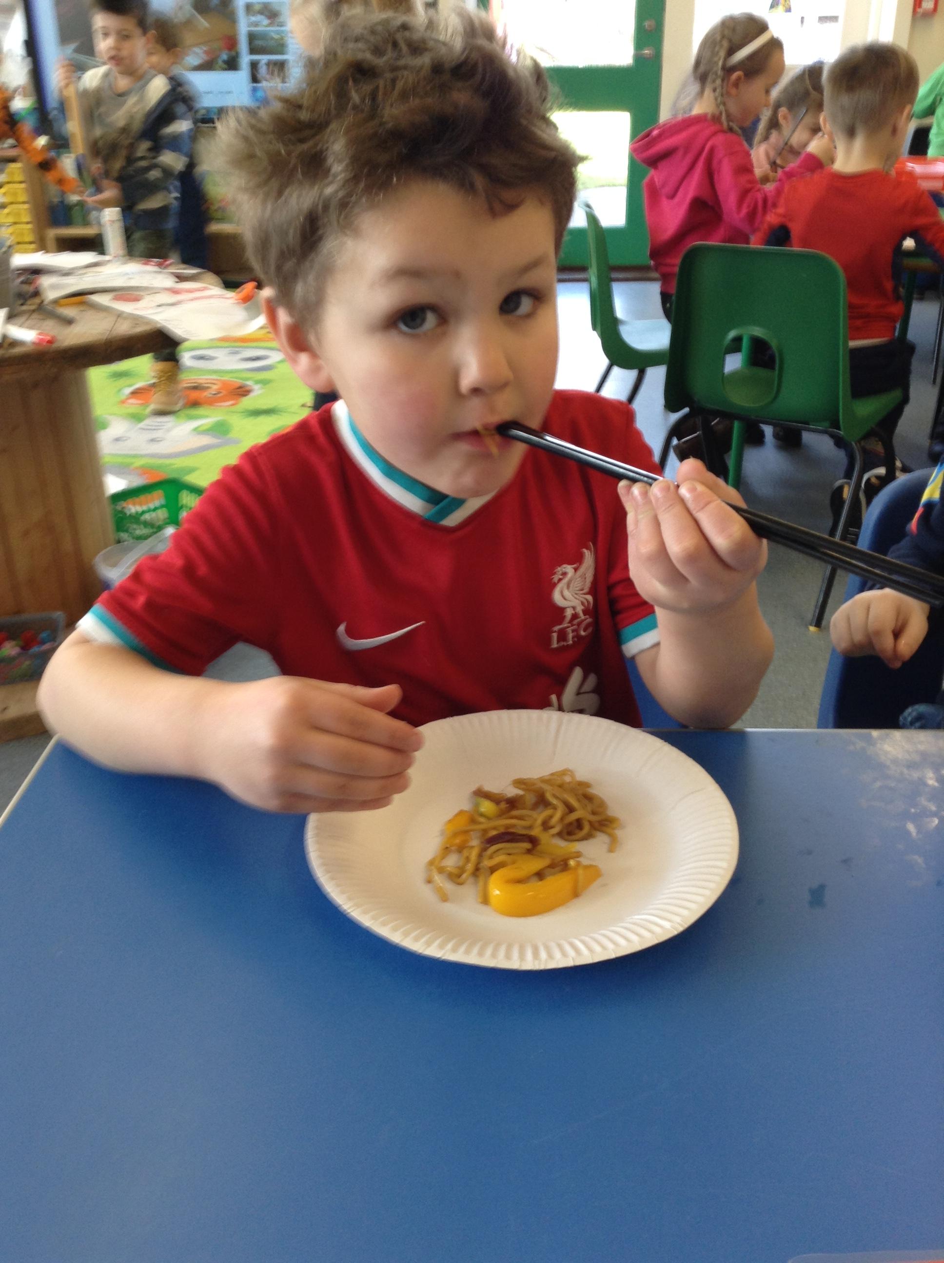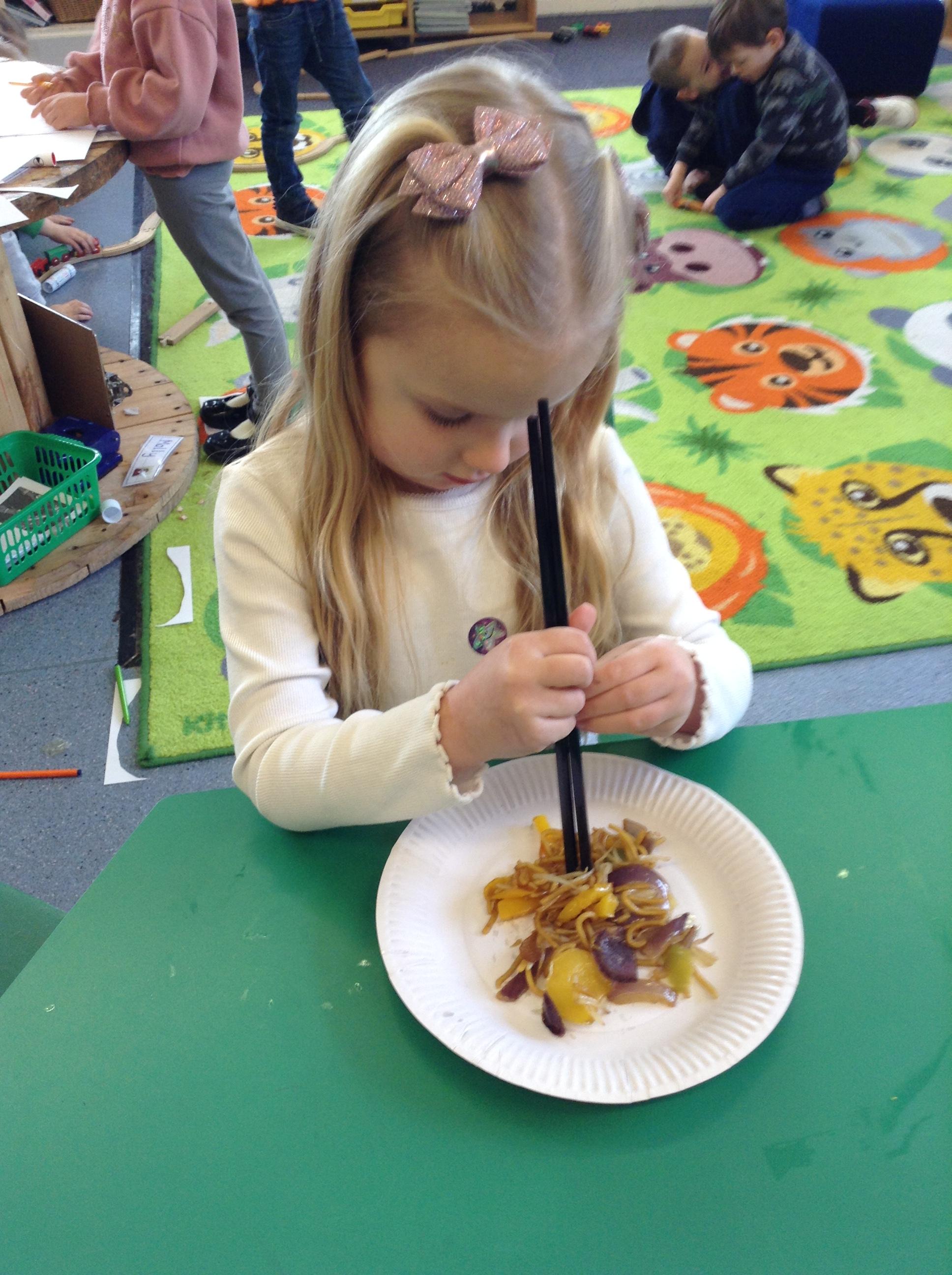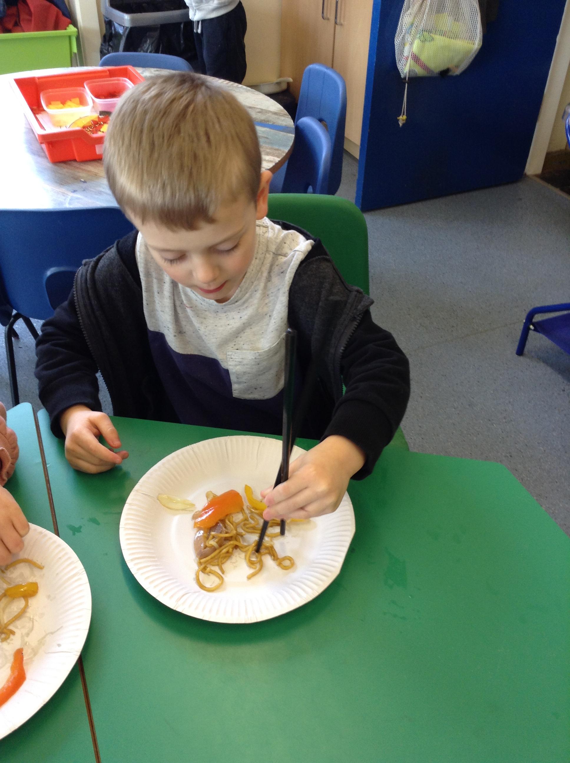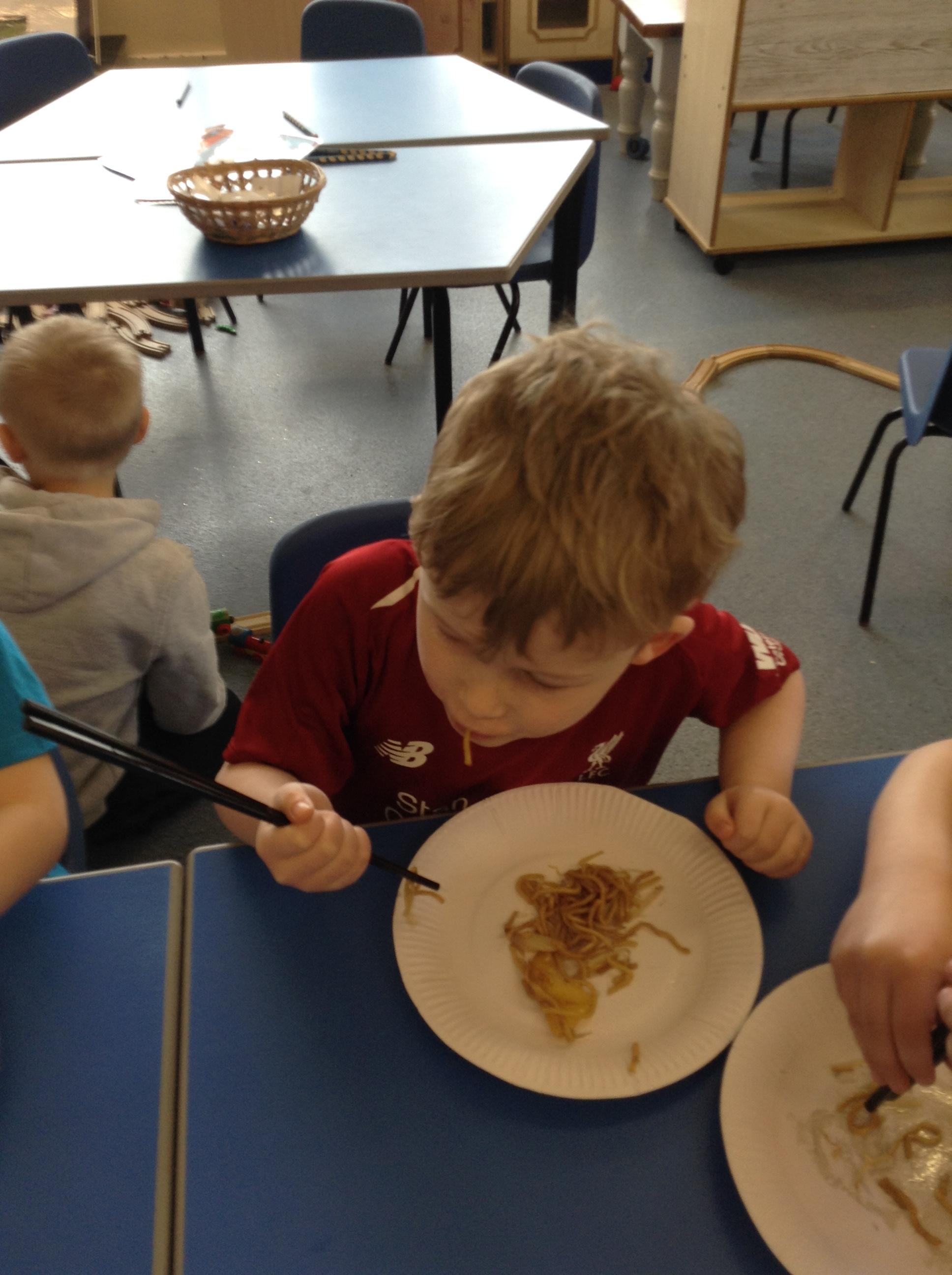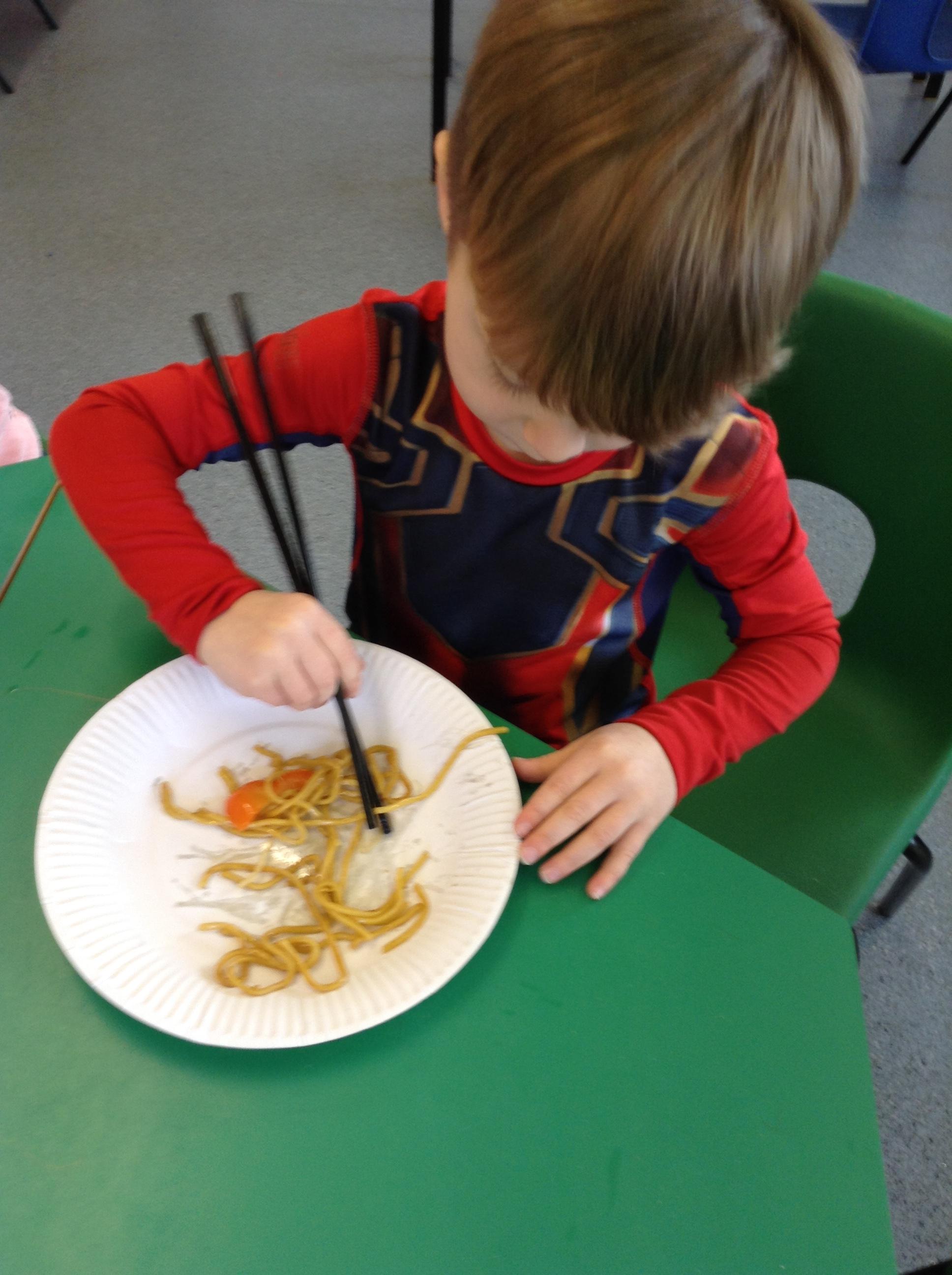 We have made our own small dragons, Chinese lanterns and have tasted Chinese food. We found eating noodles with chopsticks was very tricky!!