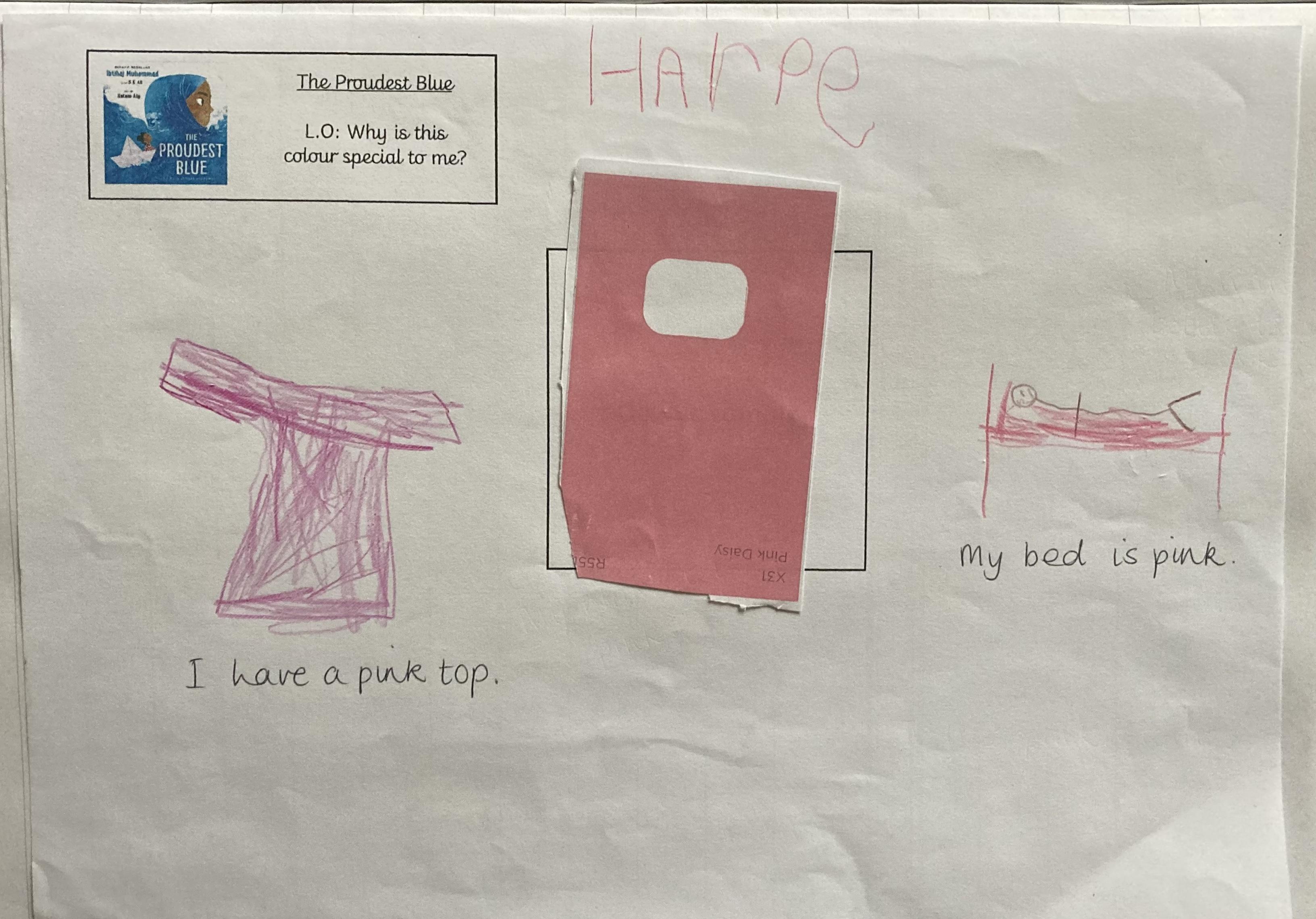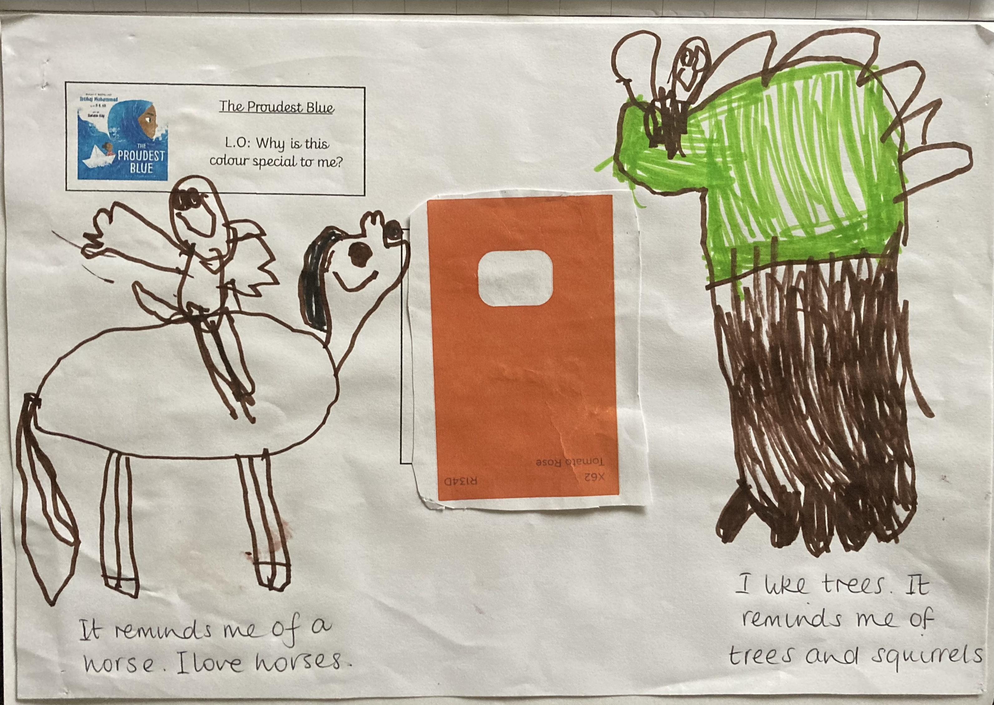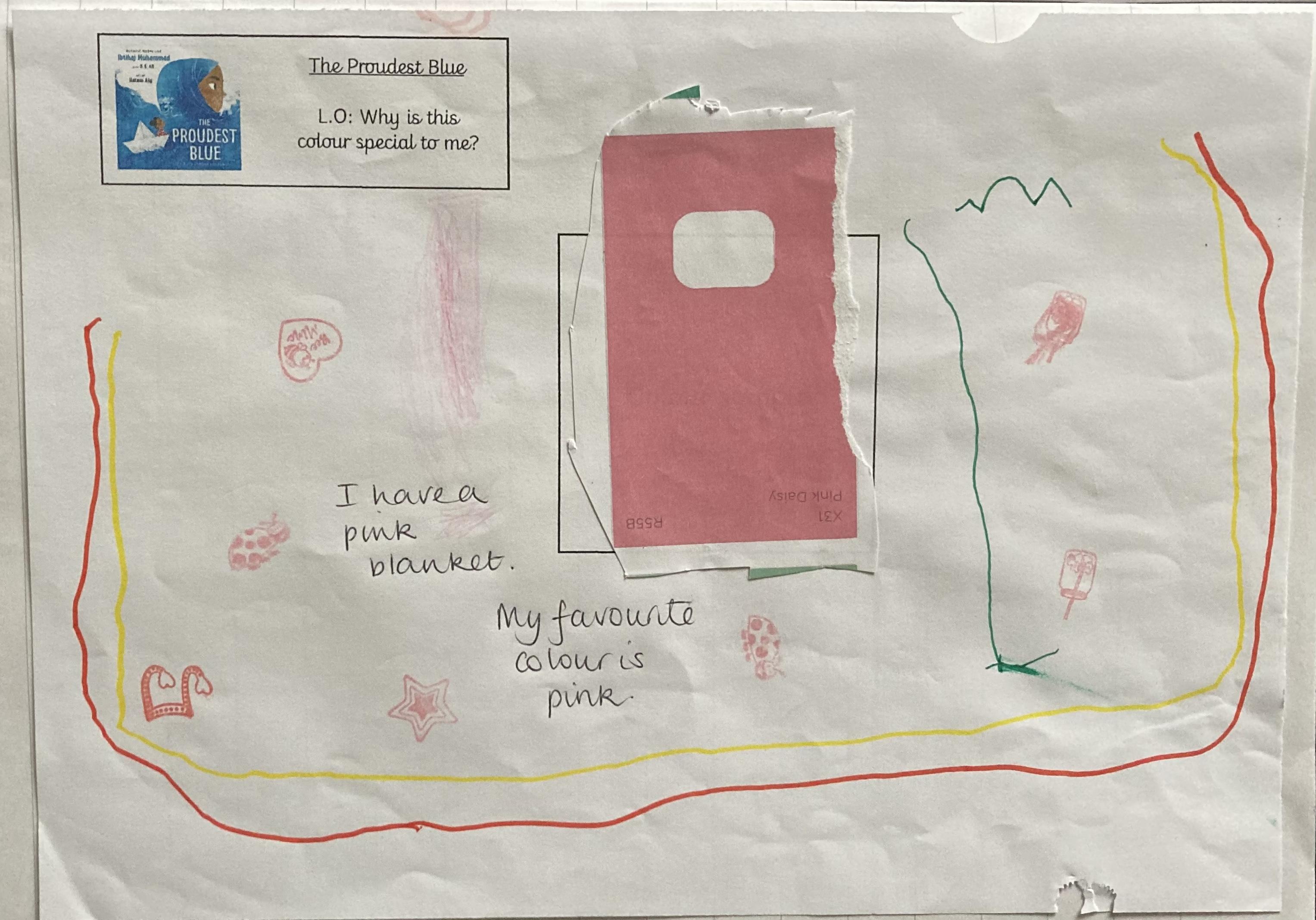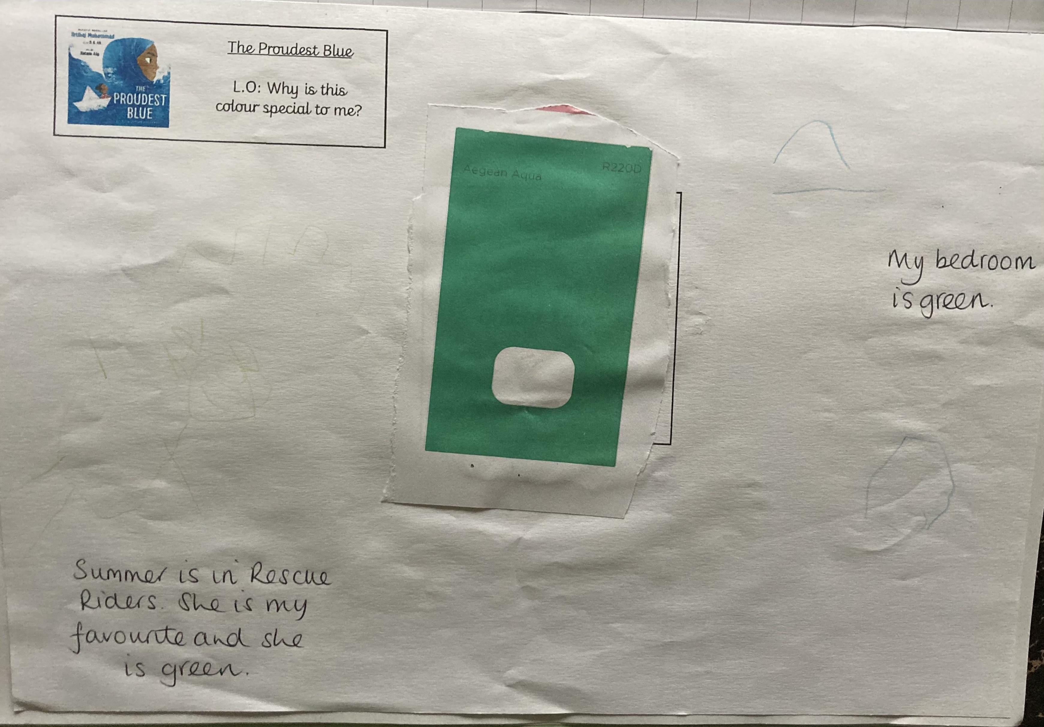 In the story Asiya chooses her first hijab which is her favourite colour blue. The children have been sharing their favourite colours. They have talking about why the colour is special to them and what the colour reminds them of.