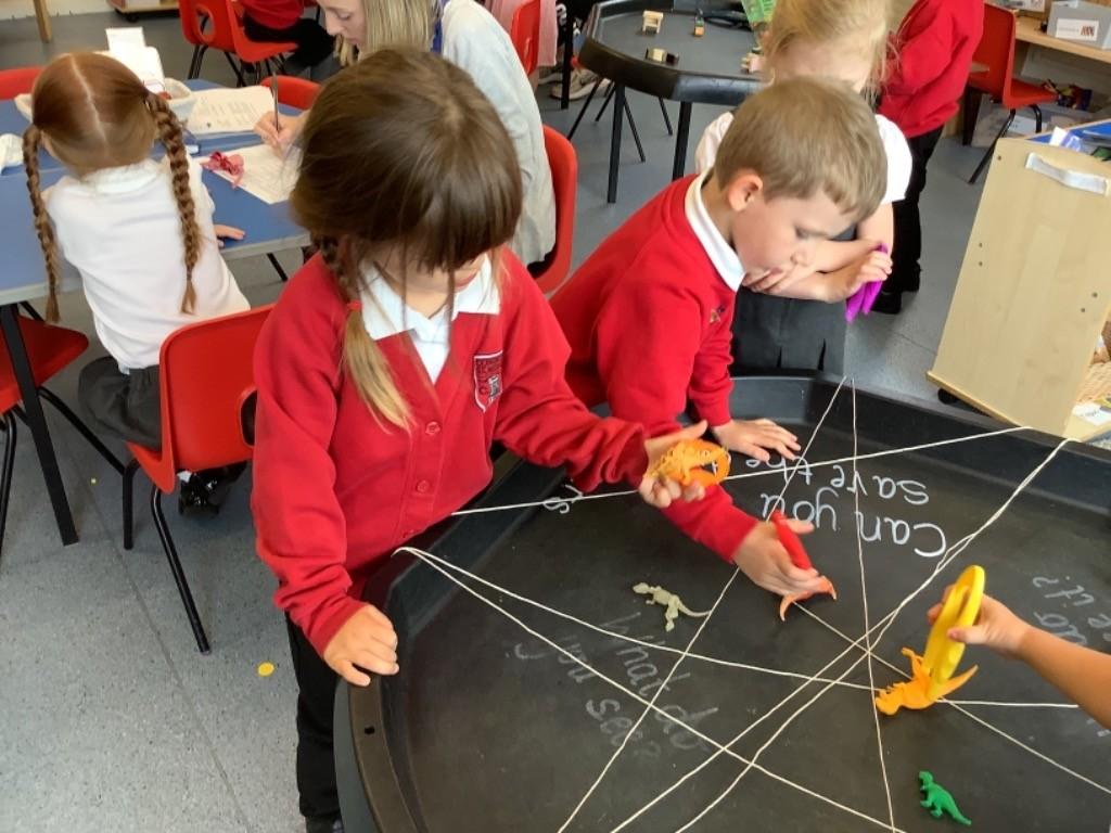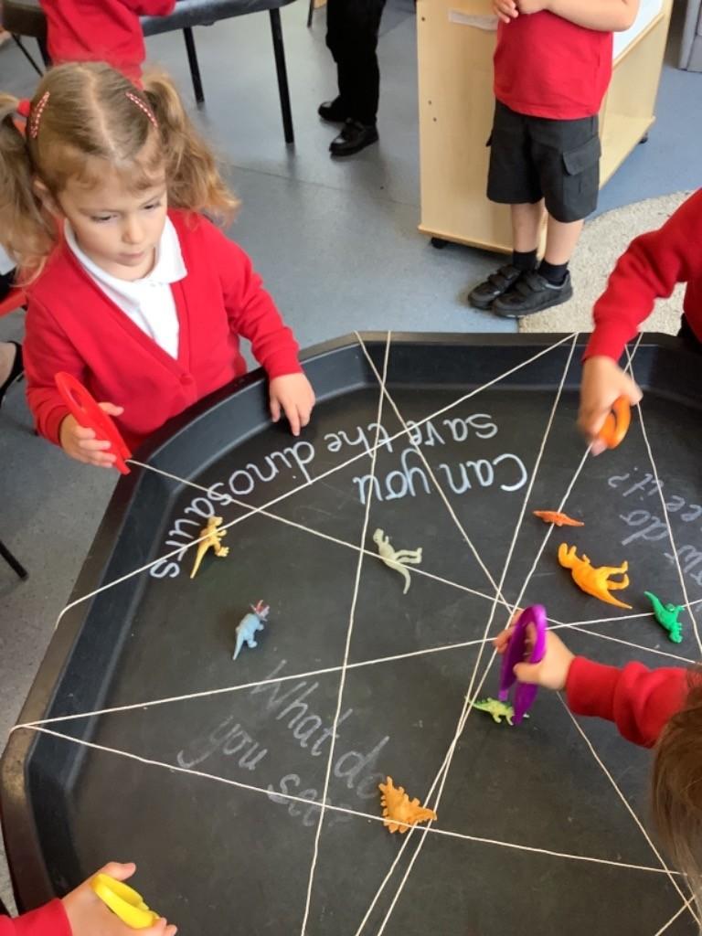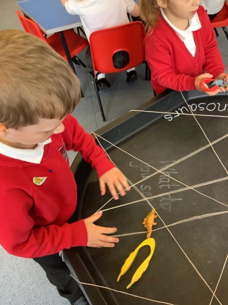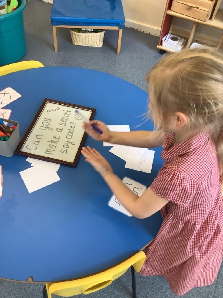 This week we have been using our fine motor skills. We have made dinosaurs using playdough and even created our own secret spy codes.