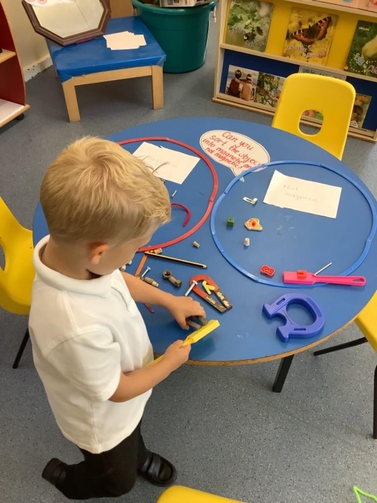 This week we have done lots of sorting in maths. We read the story 'The Button Box' and sorted our own box of buttons. Then we went on an autumn walk to collect different objects to sort as a class. We even explored magnets and decided which objects were magnetic and which weren't.