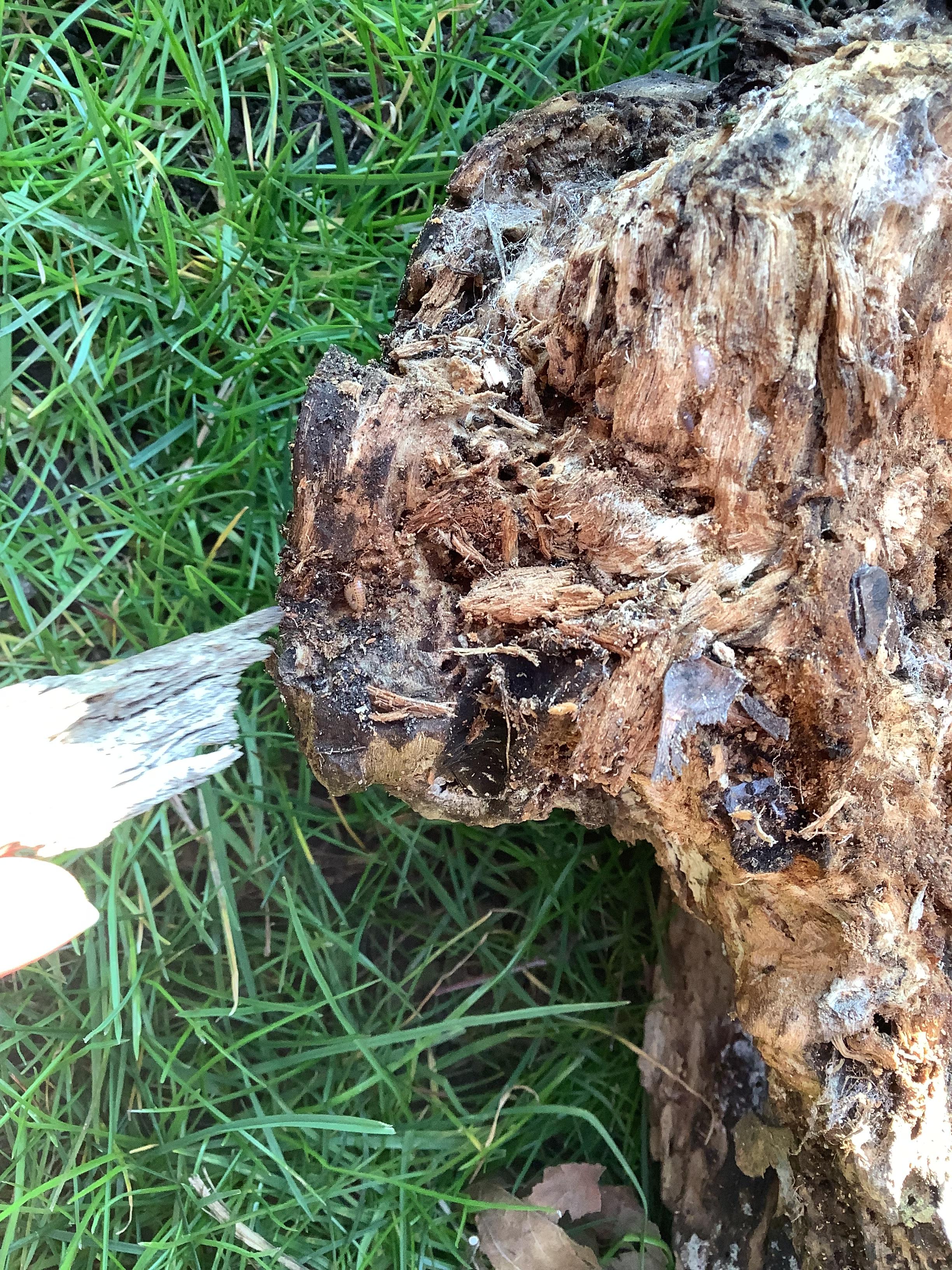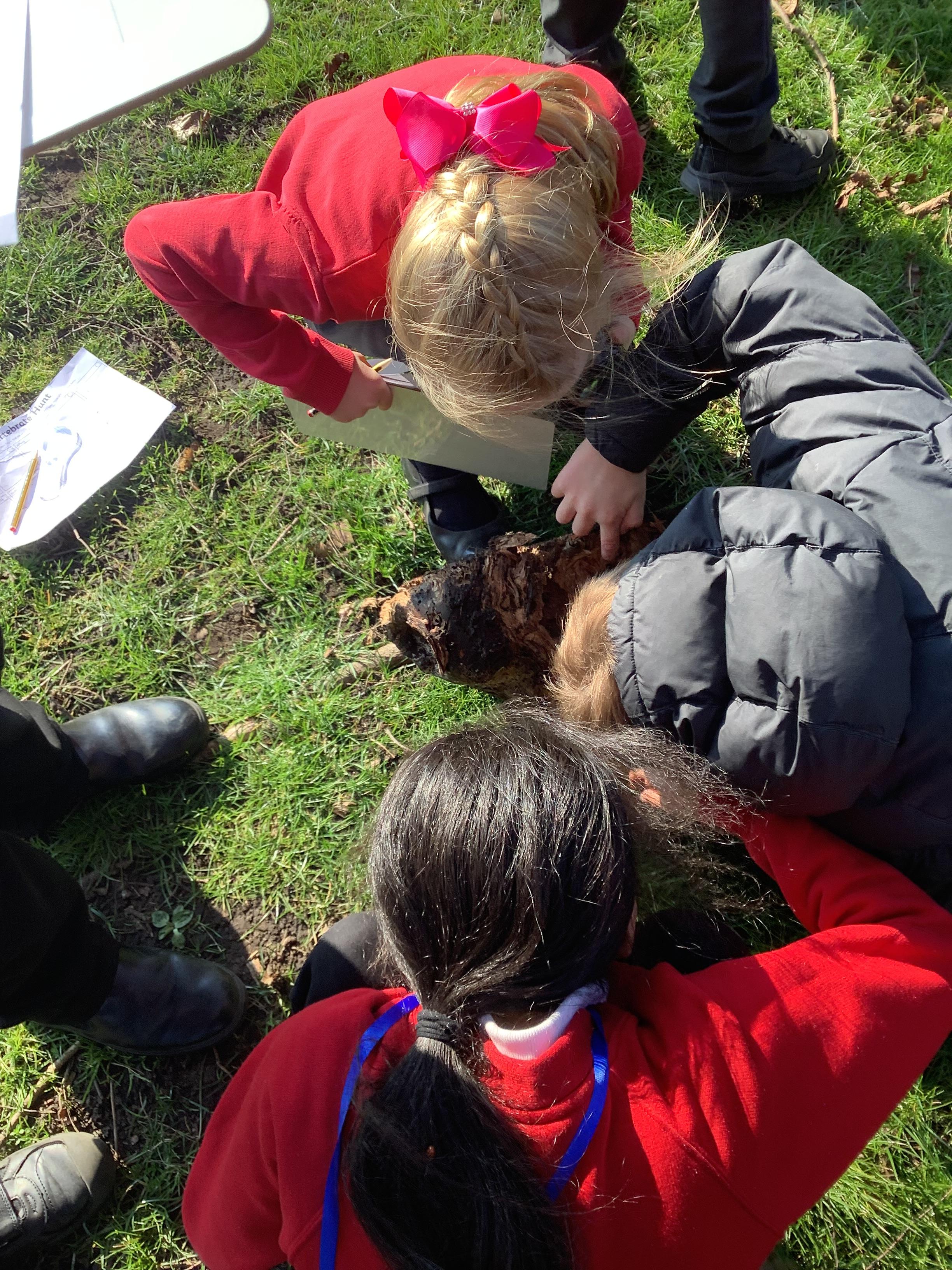 We went on a invertebrate hunt (animals without a backbone). SB found this piece of old tree trunk. 'I found a spider...woodlouse...look...'