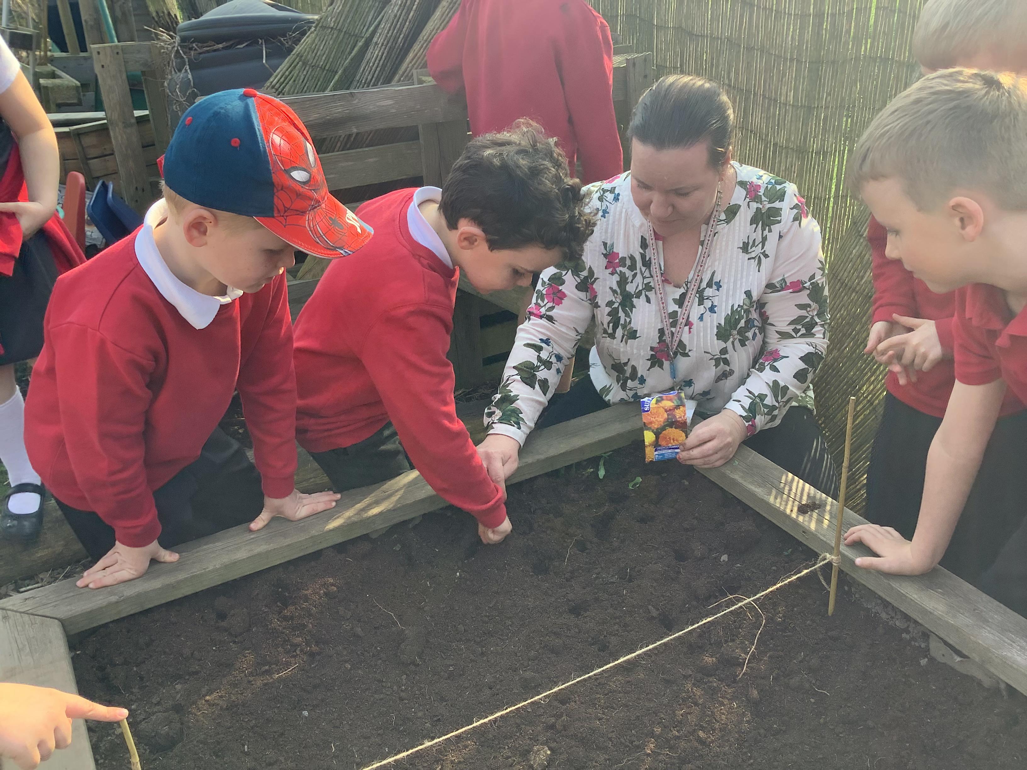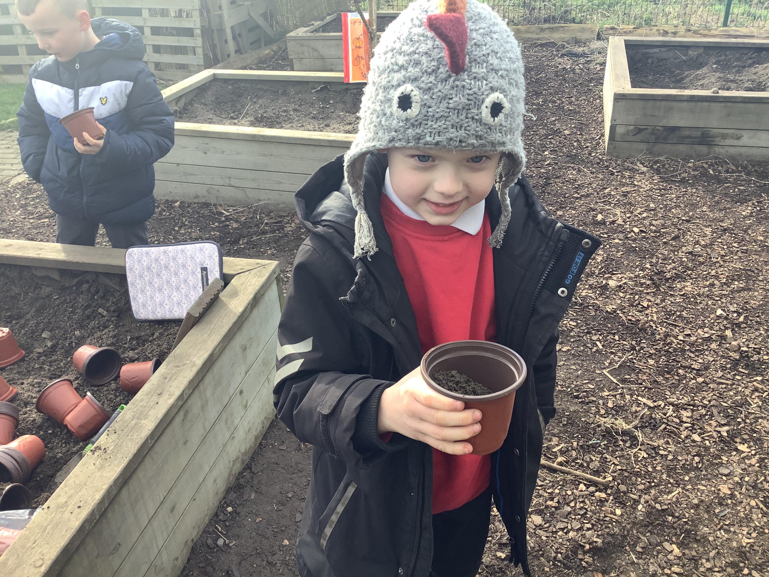 Children began their learning of plants this term by thinking about what conditions plants need to grow in. They were all given a pot, some compost and a tomato seed they have planted the seed and are keeping them in the warmth ready to put in our year 2 planter in the Mystical Garden. The children will observe them over the next few weeks to see what happens.