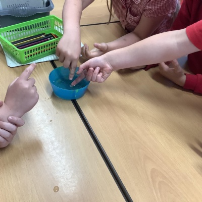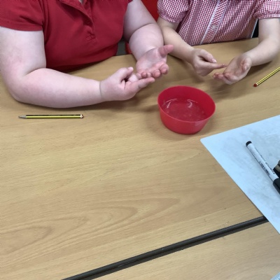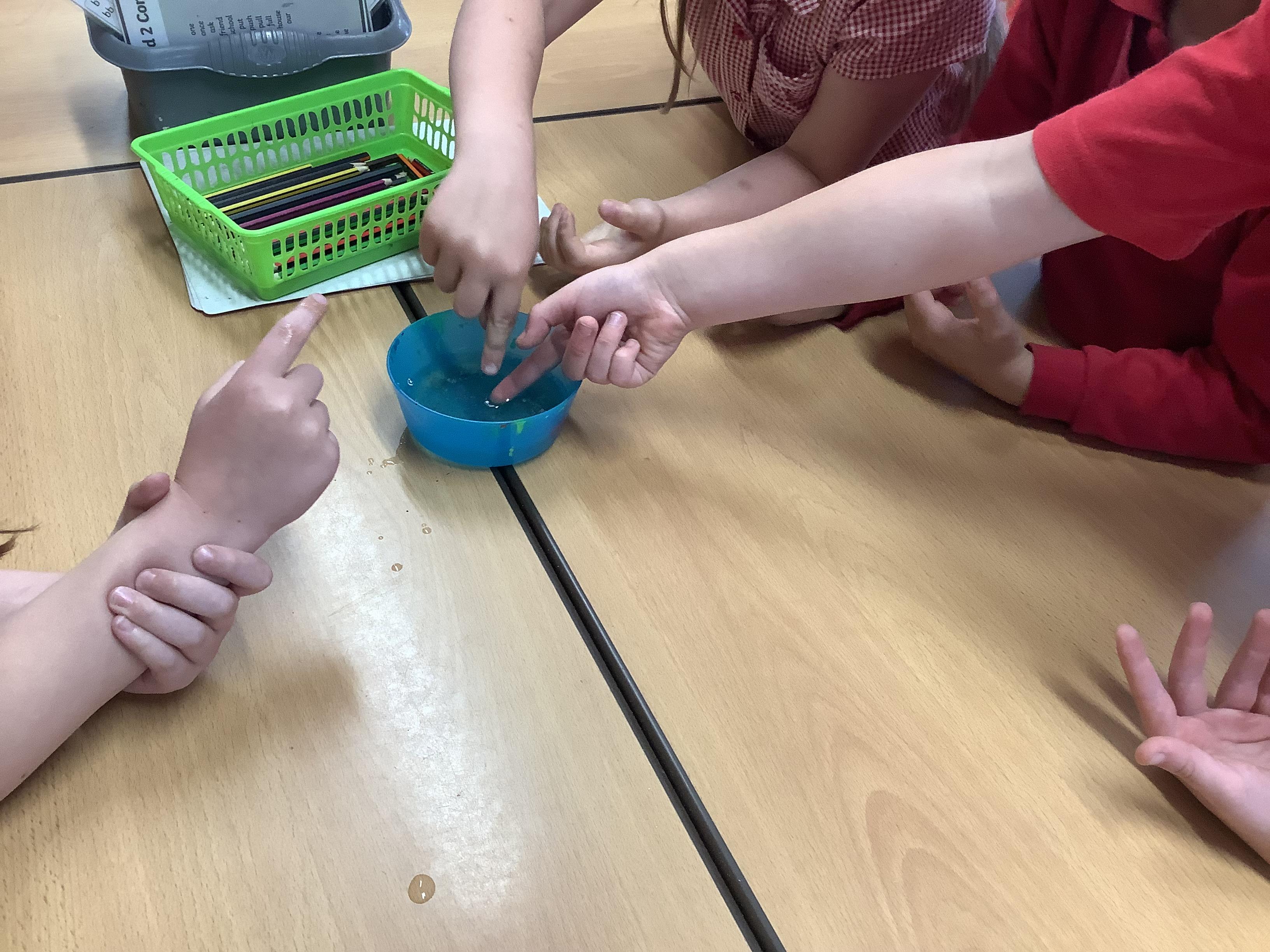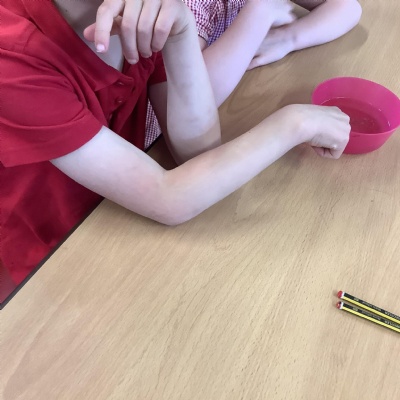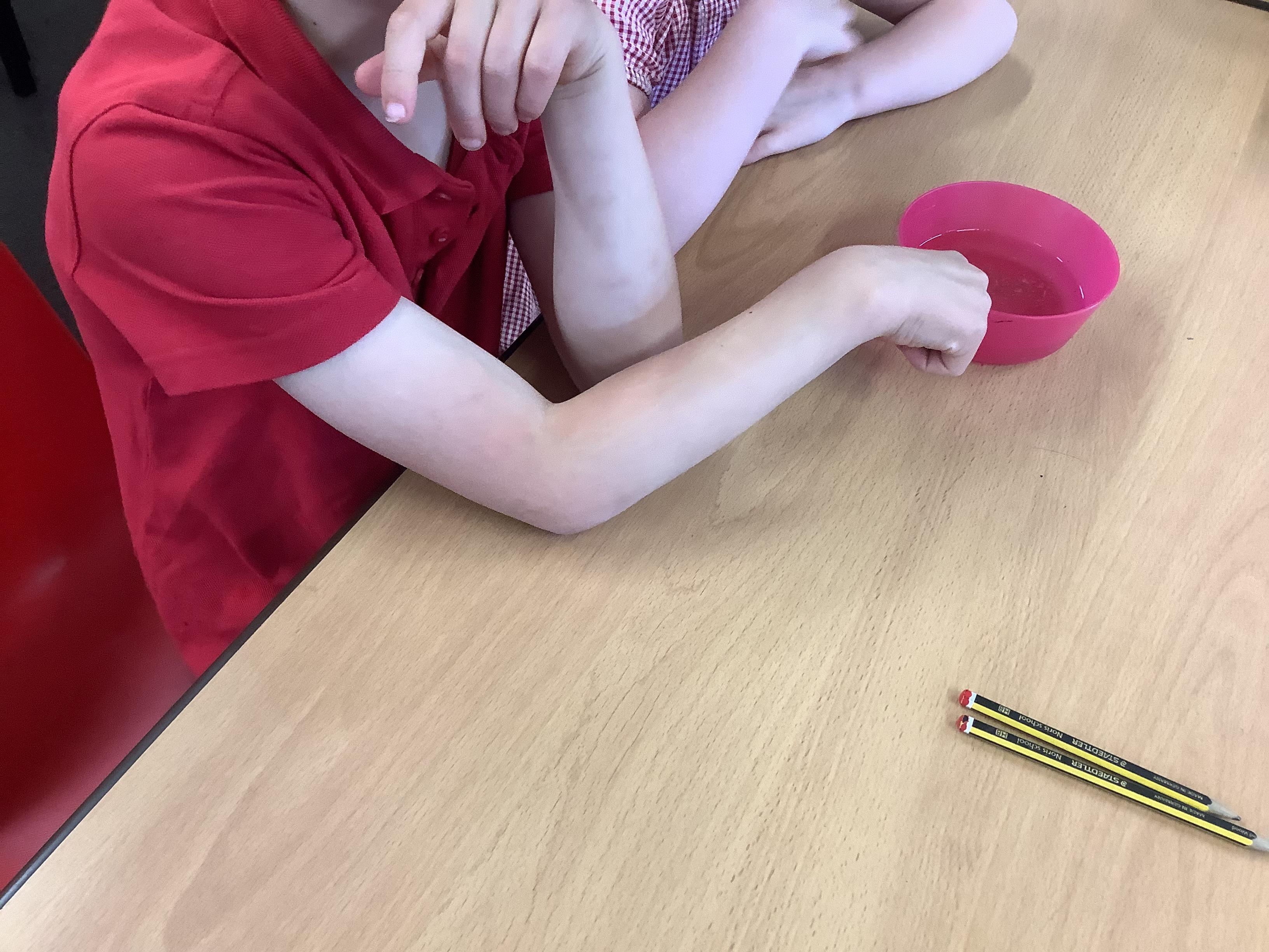 To finish our science learning for this term we looked at why it is important to stay clean and hygienic. We did an investigation to see how germs stick to your hands by using water and pepper. The pepper signified the germs, when we put our fingers in the water, the pepper stuck to them, then we were s[reading germs around the class on everything we touched. Then we added in hand sanitiser, as well as putting some on our hands and it repelled the pepper showing how important it is to wash our hands!