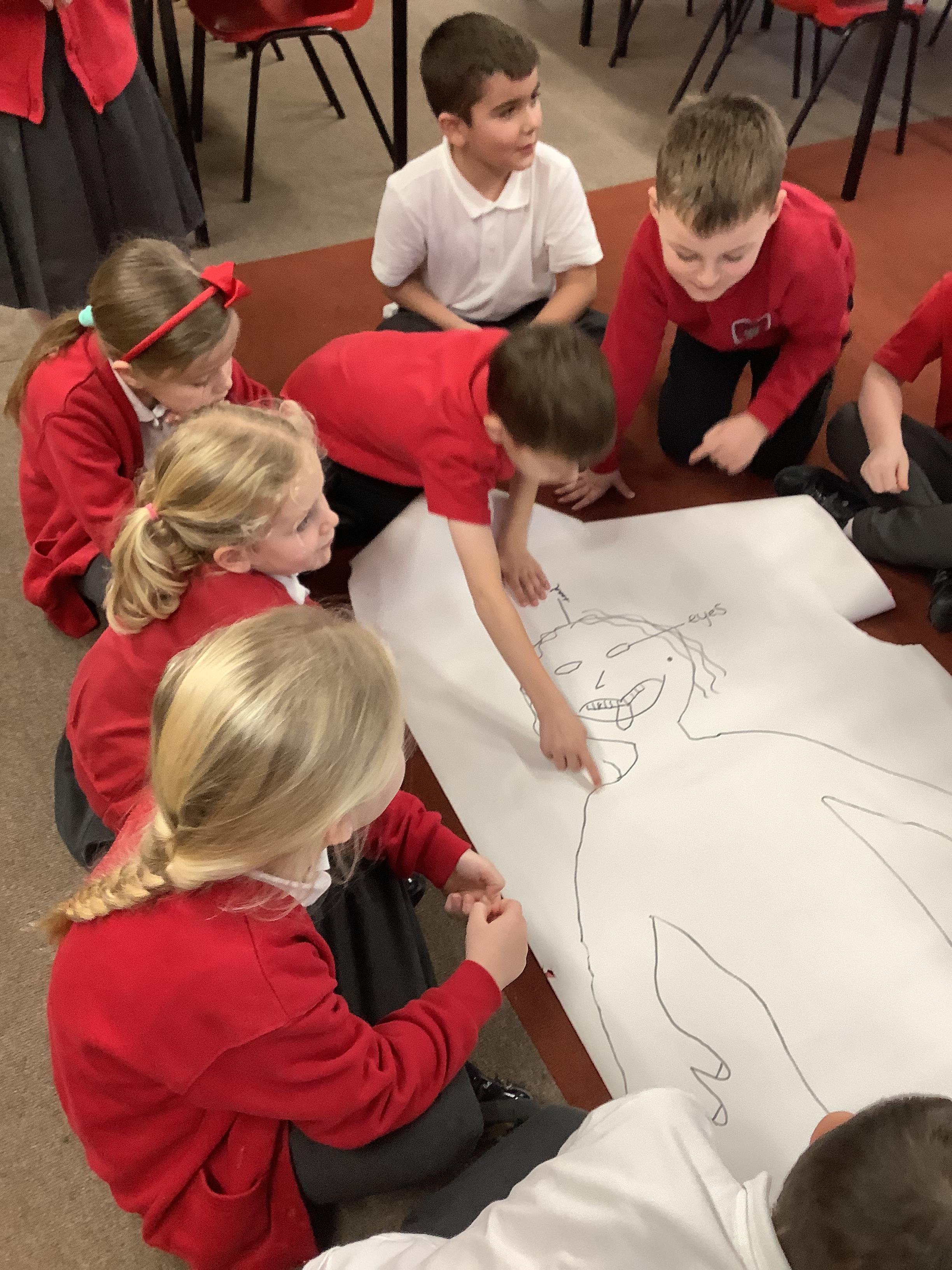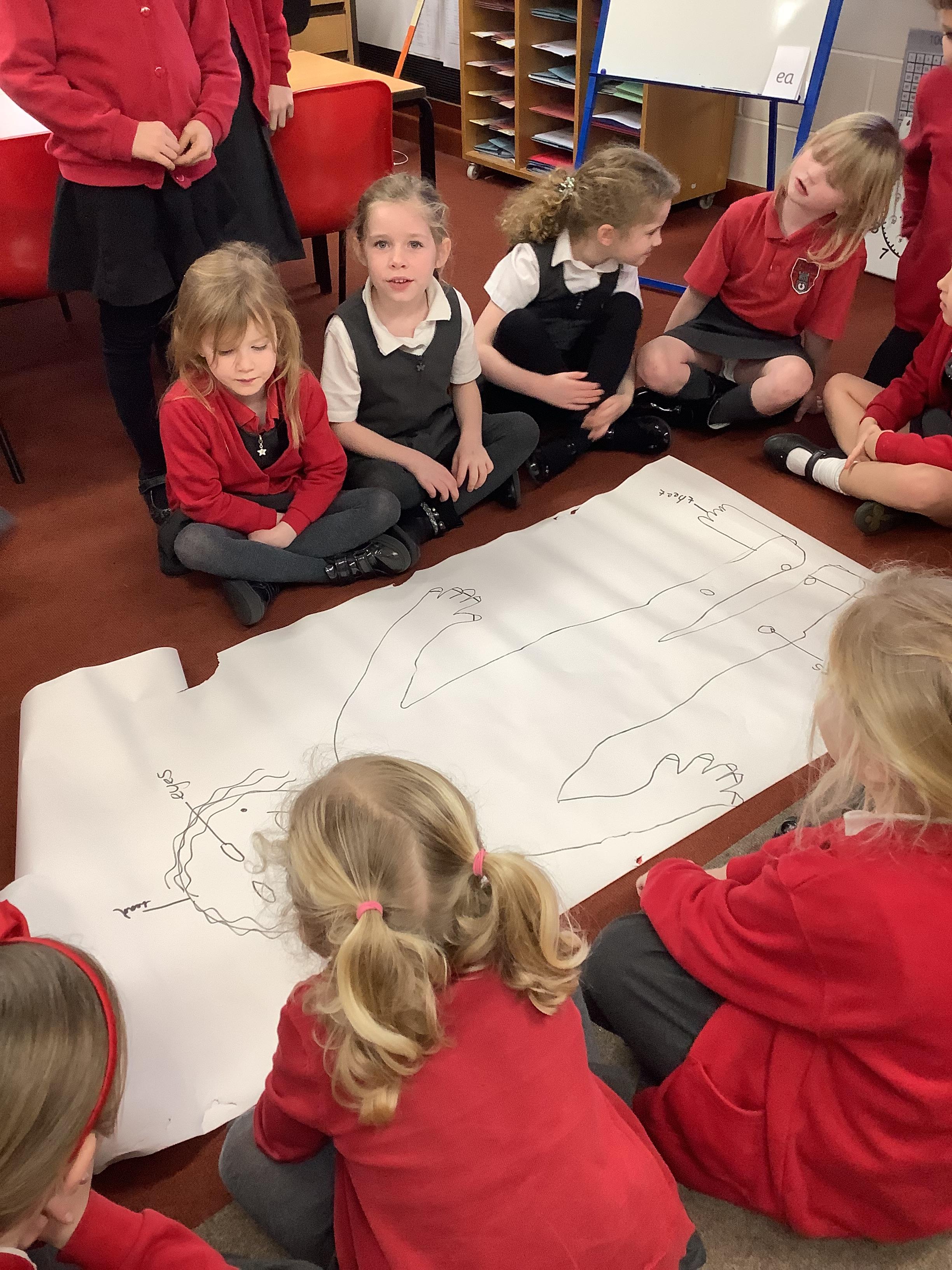 Children have been identifying all the body parts by drawing around someone and labelling them!