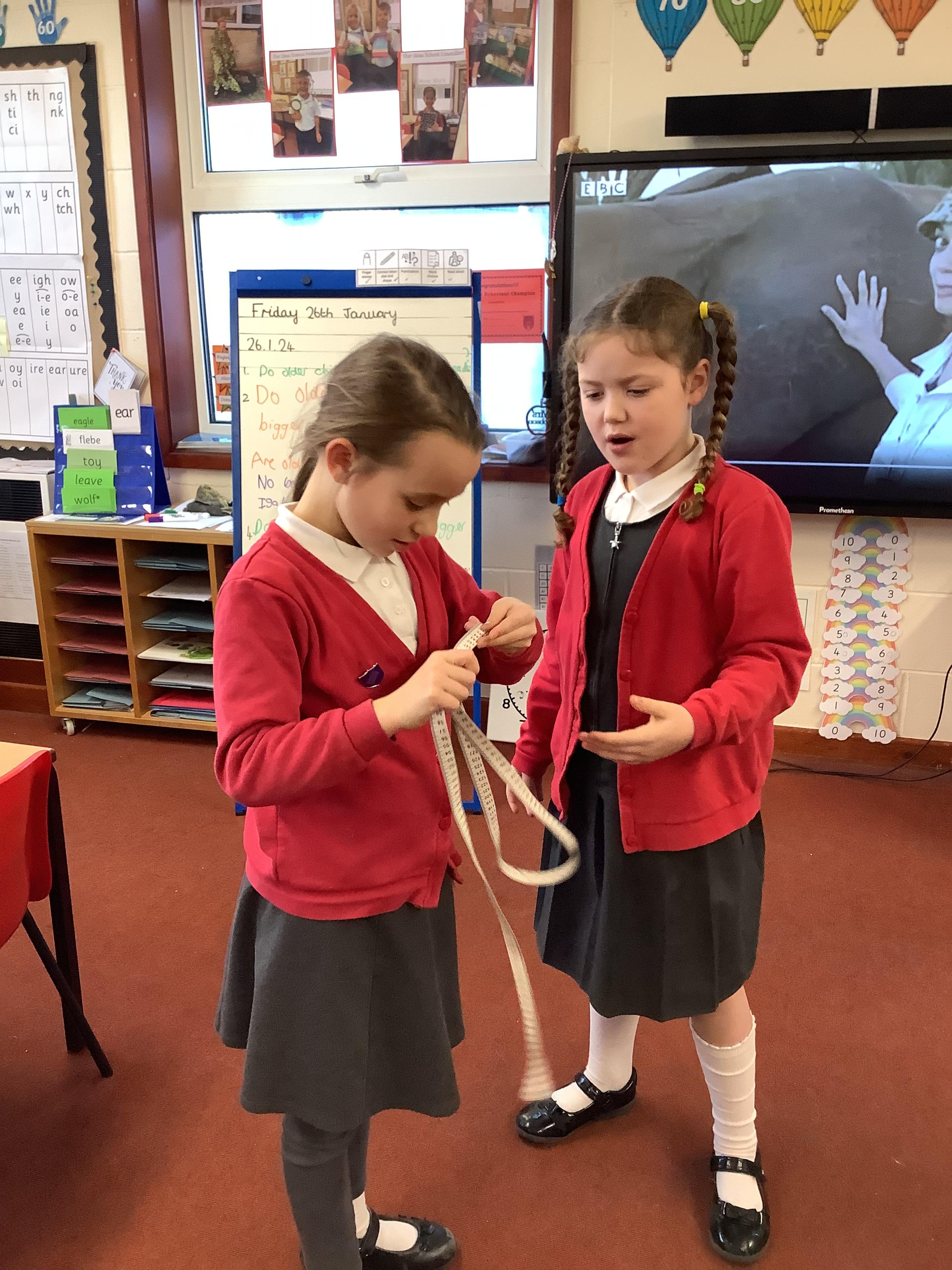 Owls have had an amazing afternoon of science, they have really been using their working scientifically skills! They started by comparing themselves to elephants which led to the asking scientific questions using comparative testing. They thought of, investigated and recorded data on questions such as, do taller children have bigger feet? Do older children have bigger heads? Do smaller children have smaller hands?