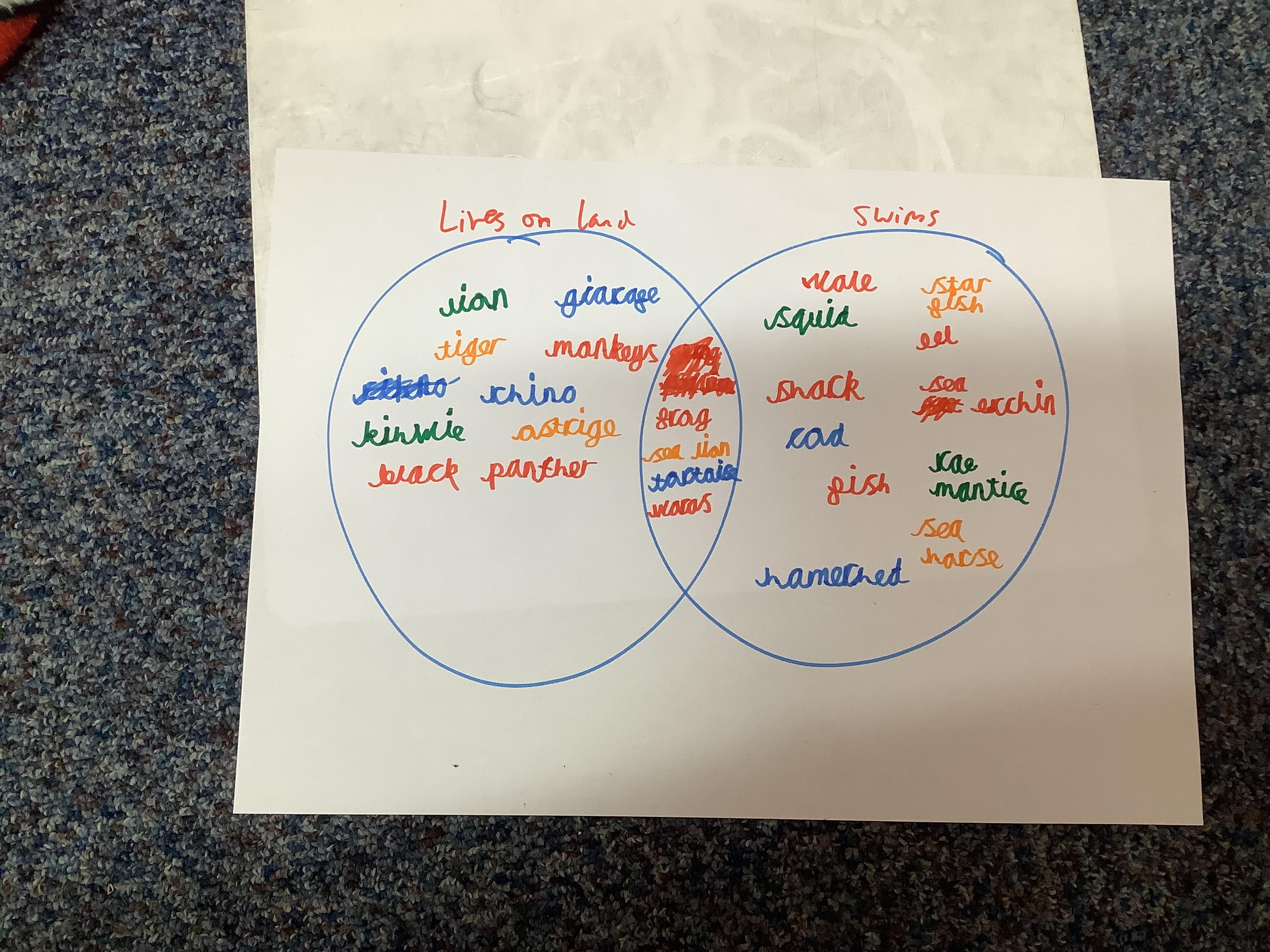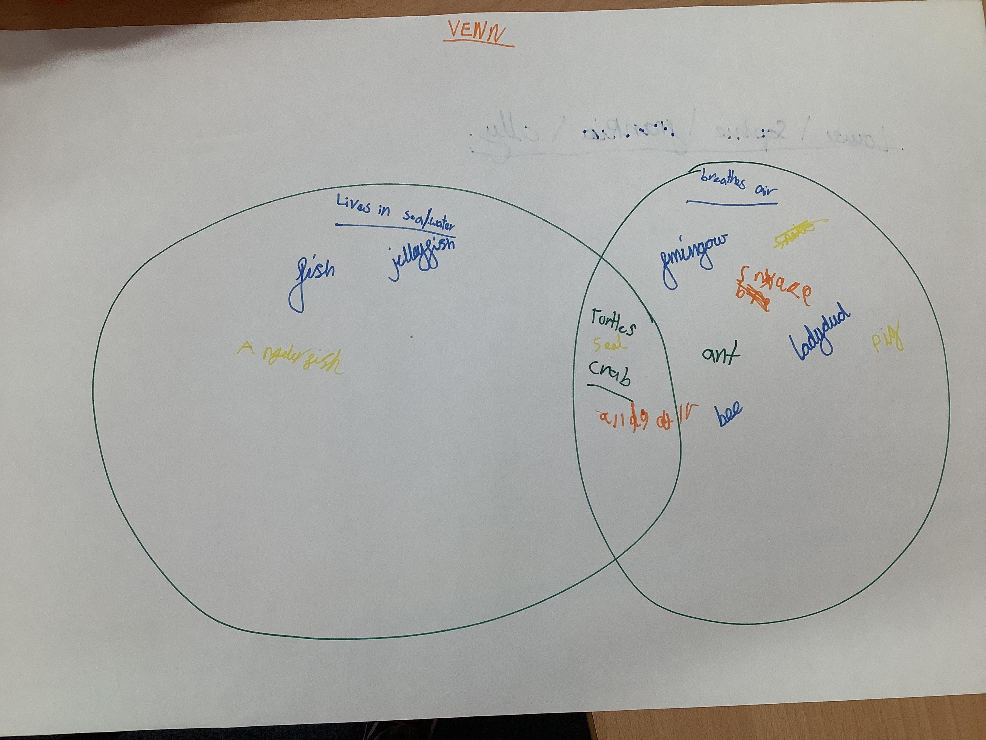 We have been looking at living things and their habitats this term. We learnt about Carroll and Venn diagrams and how to classify animals using them.