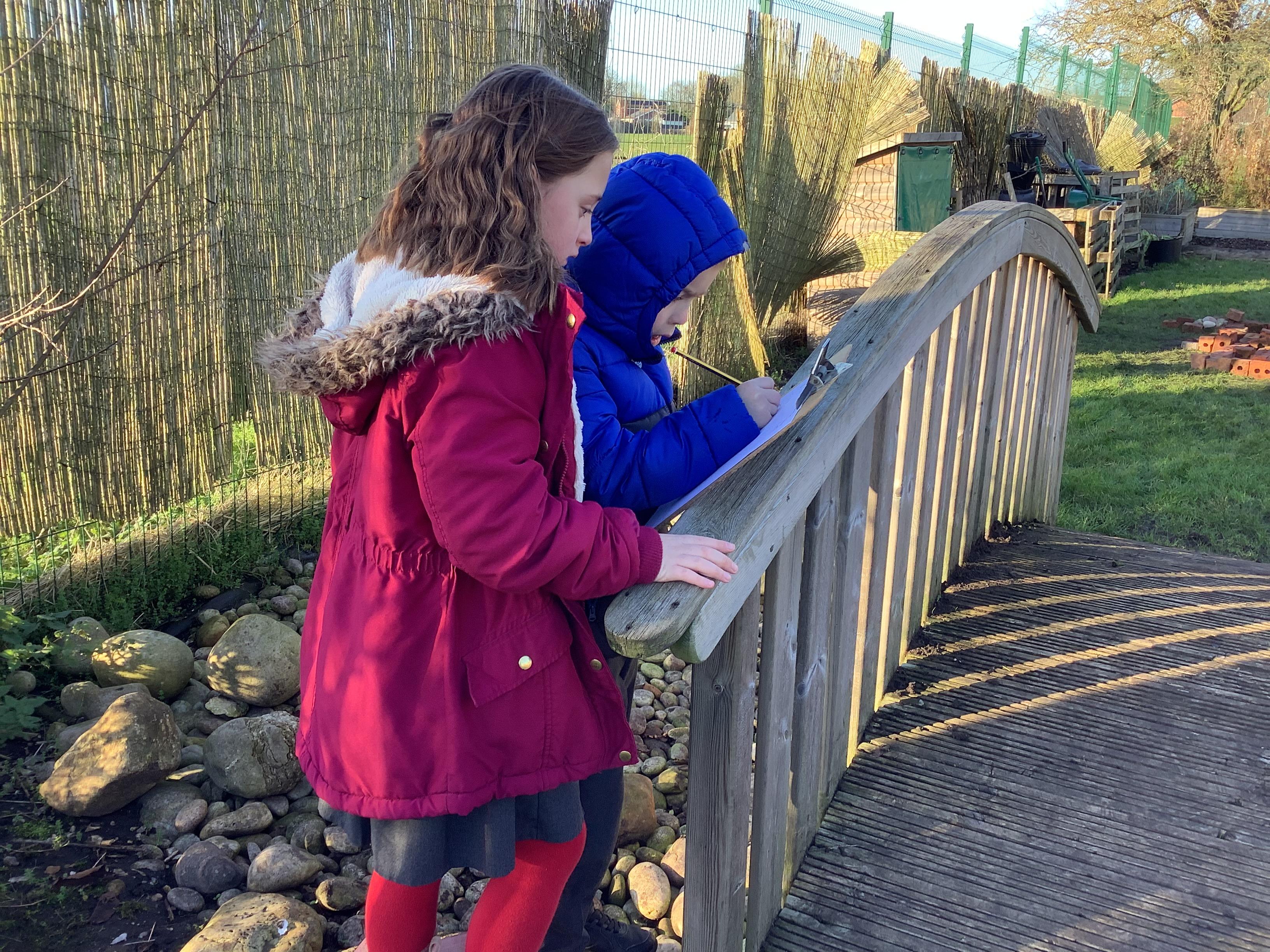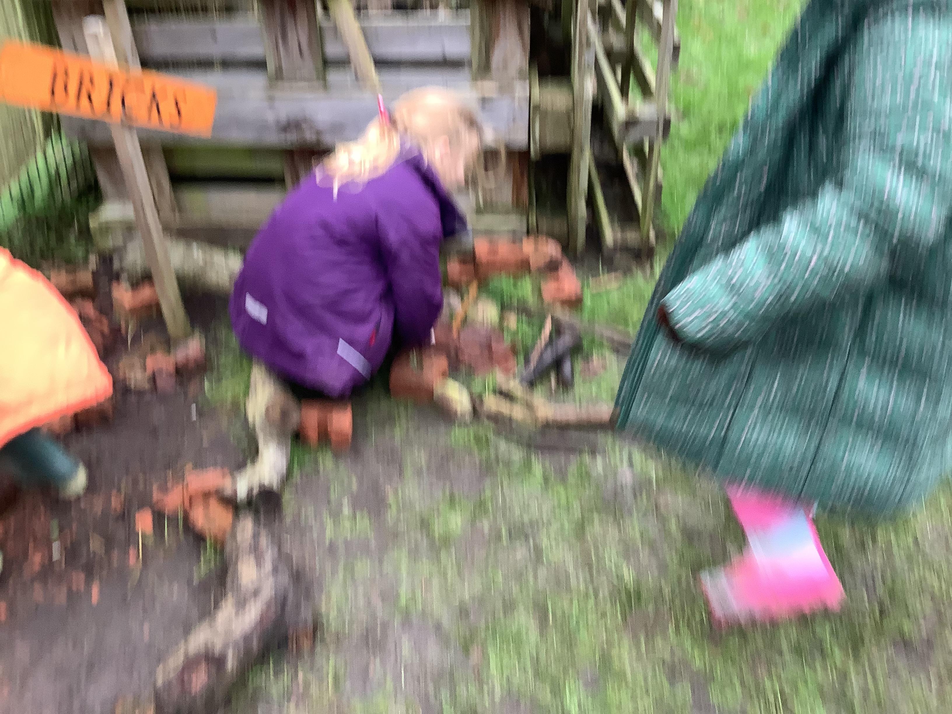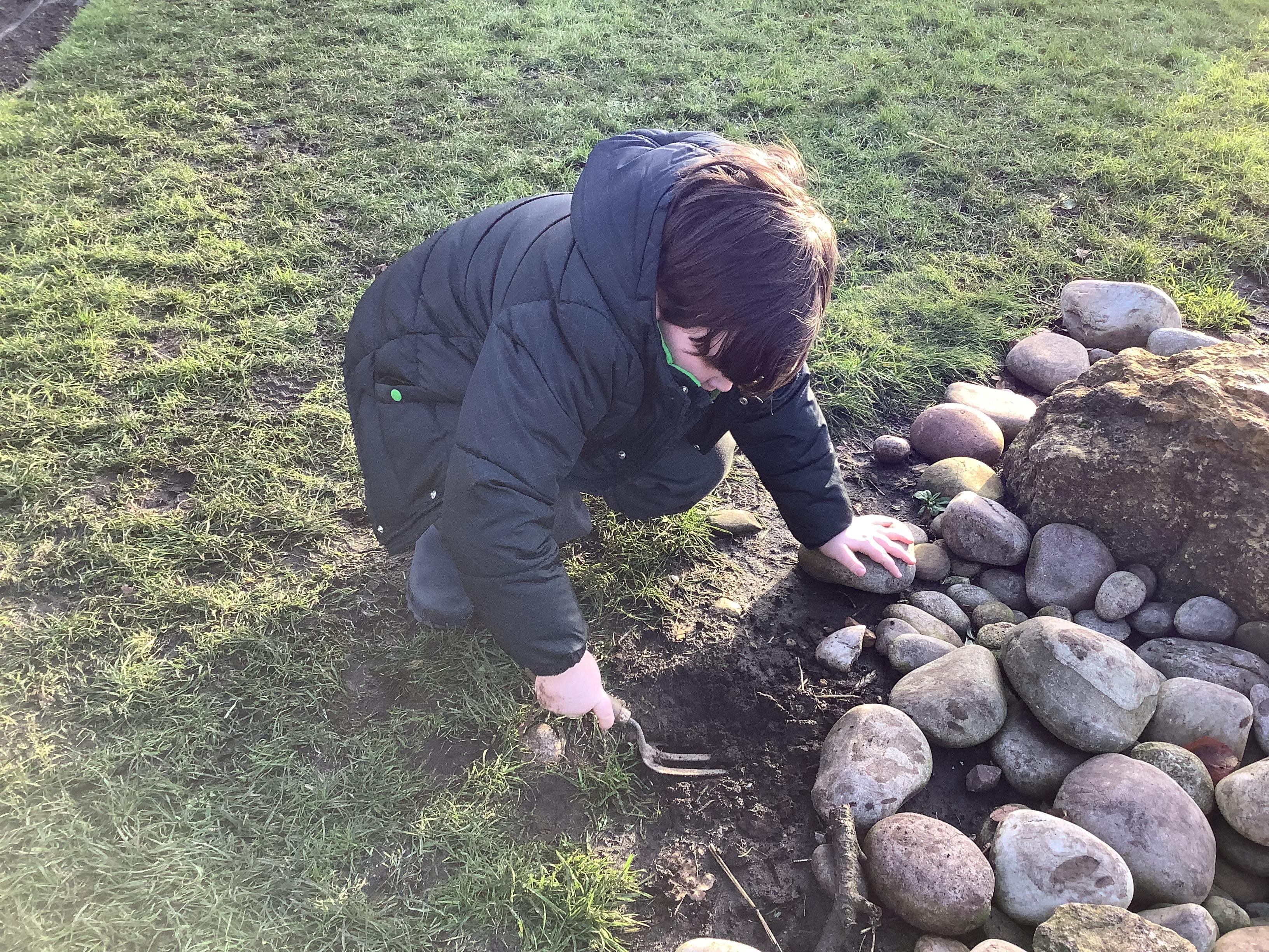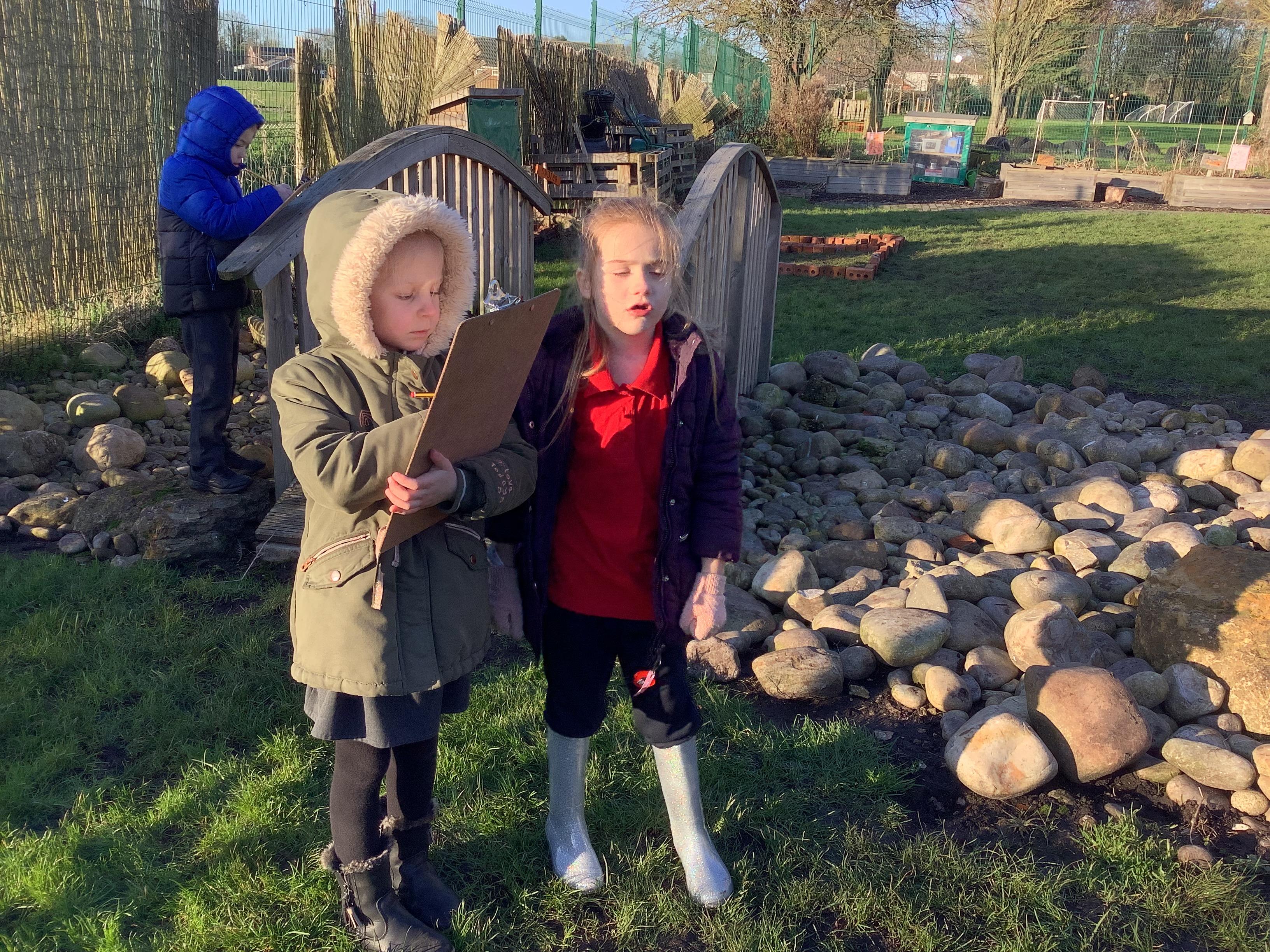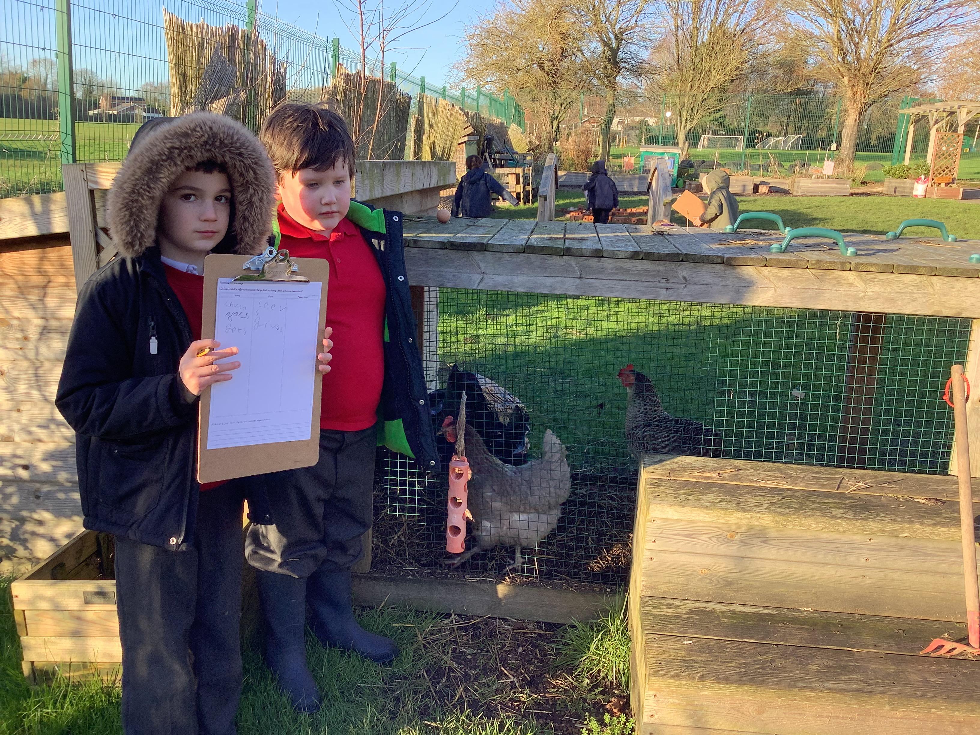 This week children have been continuing their learning by looking in the Mystical Garden at things that are, 'living, dead and never lived'. They found lots of things that are living especially as we have goats and chickens plus all the minibeasts that they have already discovered. They discovered that all the wooden buildings, such as the shelter, chicken coup, planters and bridges were dead because they had once been living when they were trees but have been chopped down and made into other things. They then looked for things that had never lived, such as the fire pit which is metal.