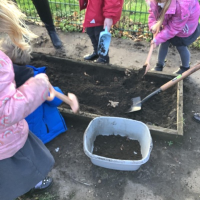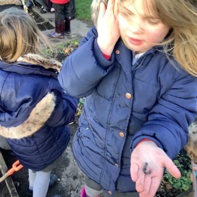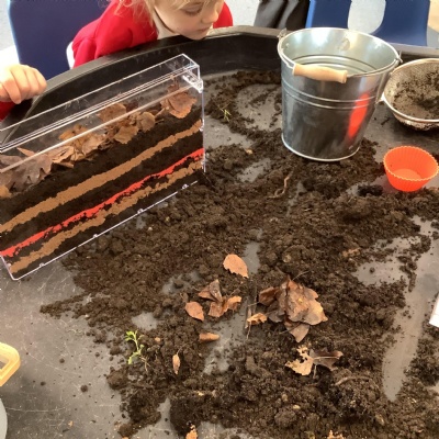 We have also been looking for worms in the garden and set up our ow wormery in class so we can watch the worms tunnelling through the layers of soil and sand.