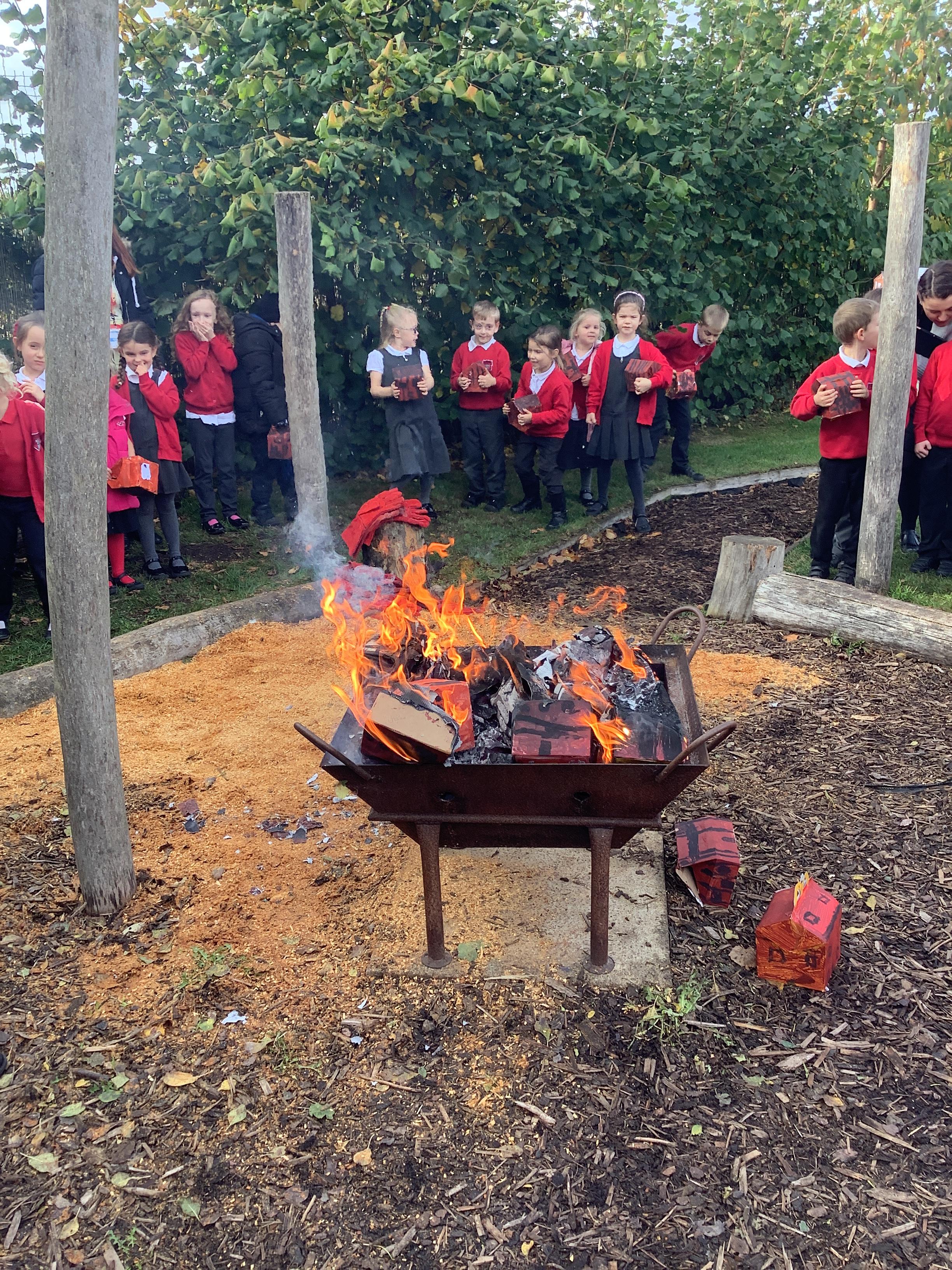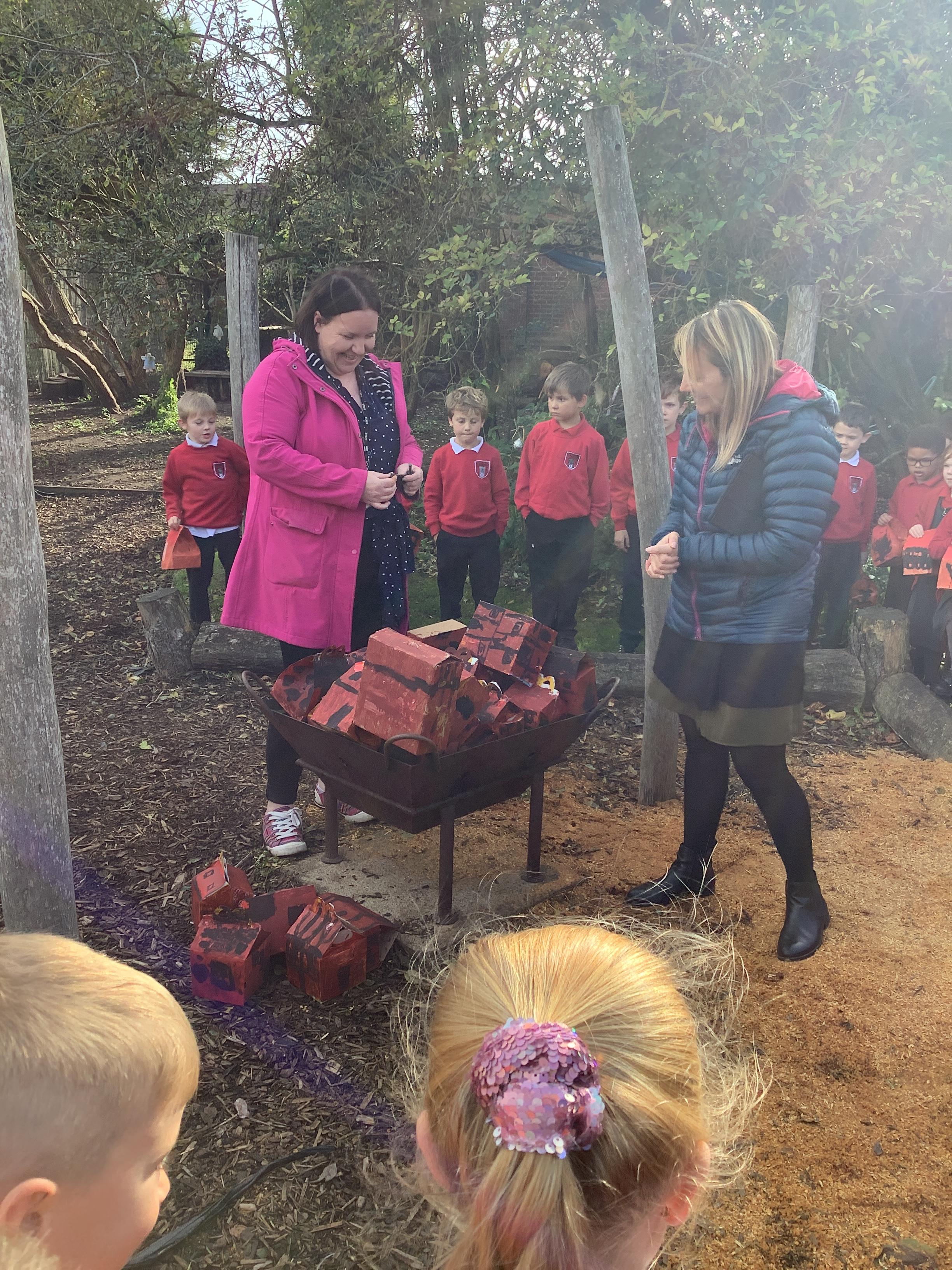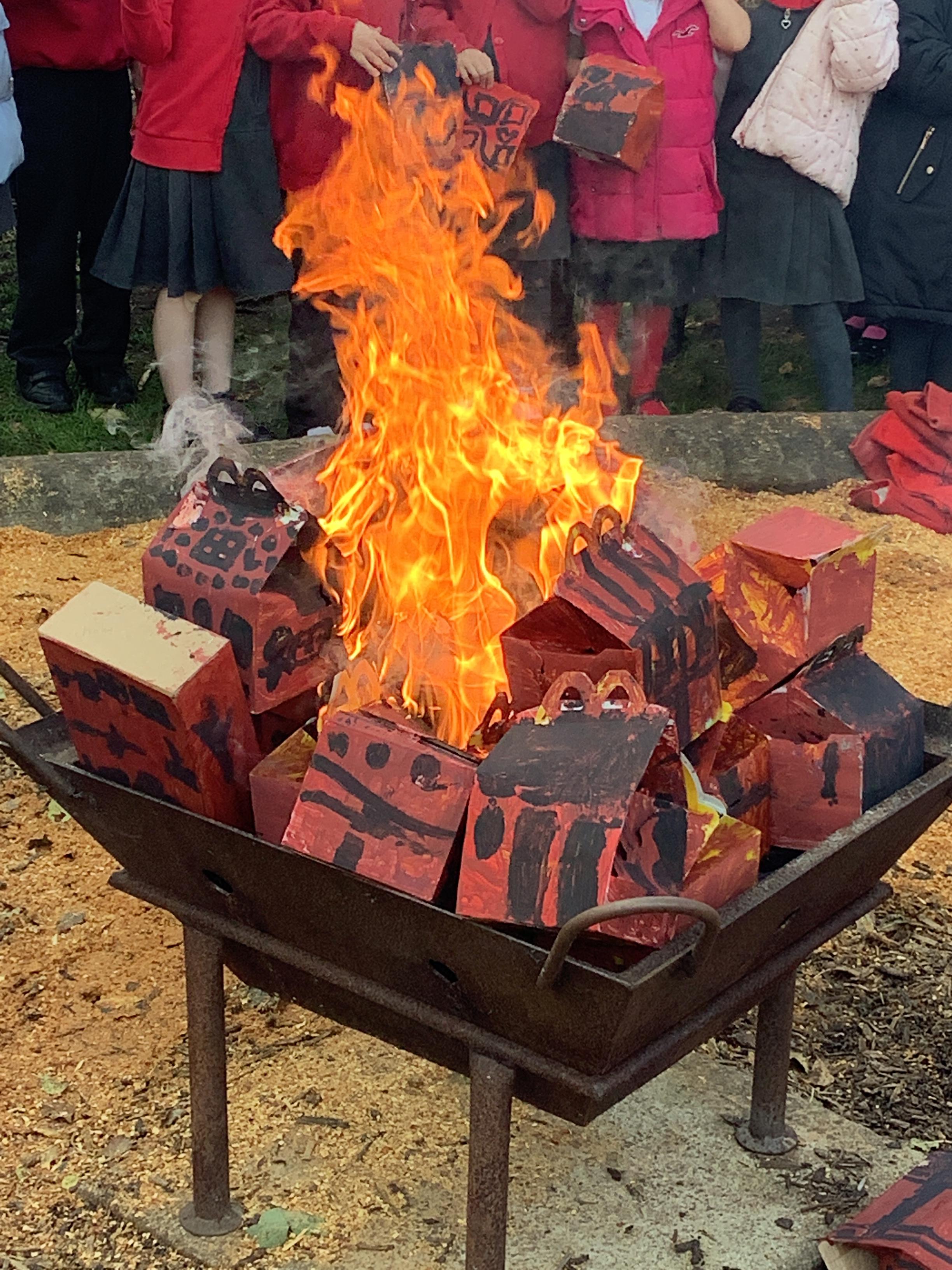 We went to the Mystical garden with Hedgehog class and Owl class. We set fire to our houses we'd made in DT. We saw how fast the fire spread and how high the flames leaped.
