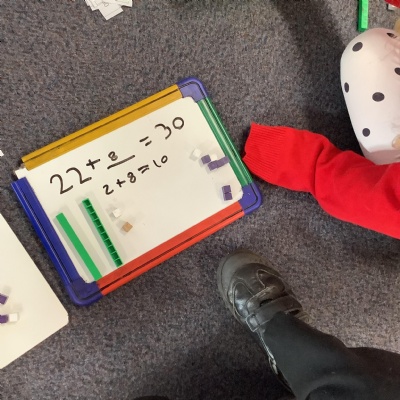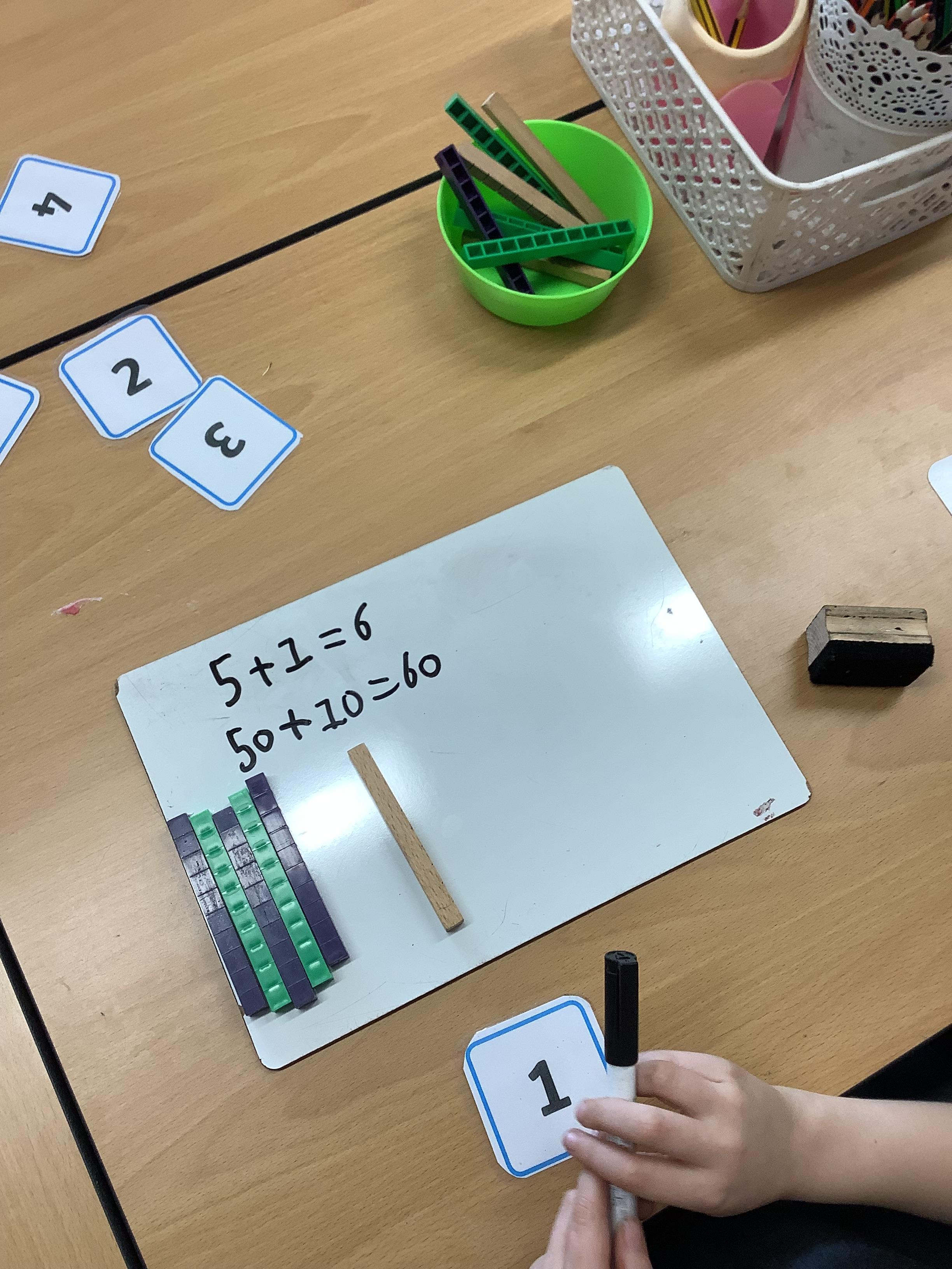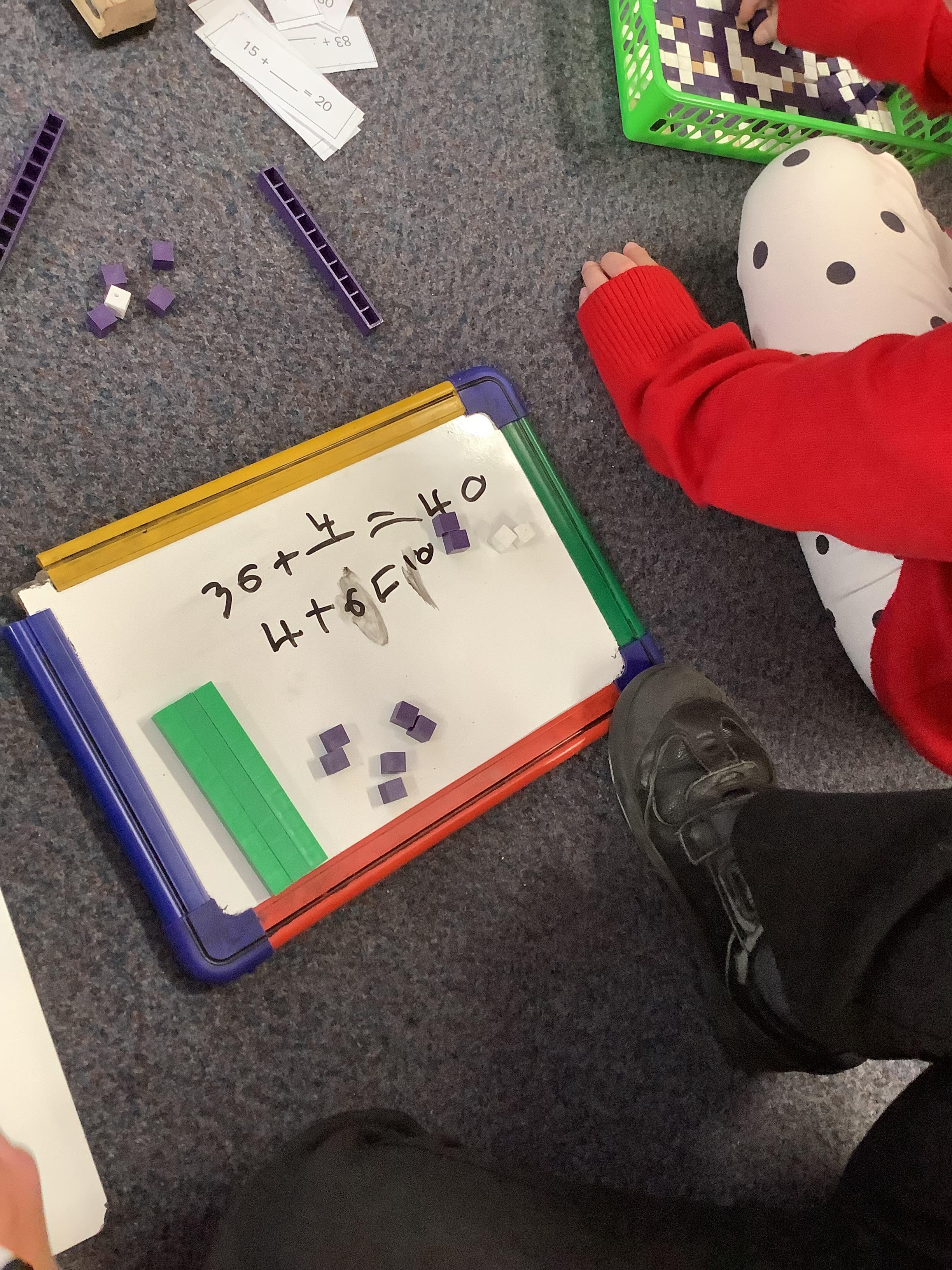 Today in Maths, Y2 have been using their number bonds to 10 to help them work out how many more we need to get to the next multiple of 10.