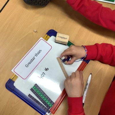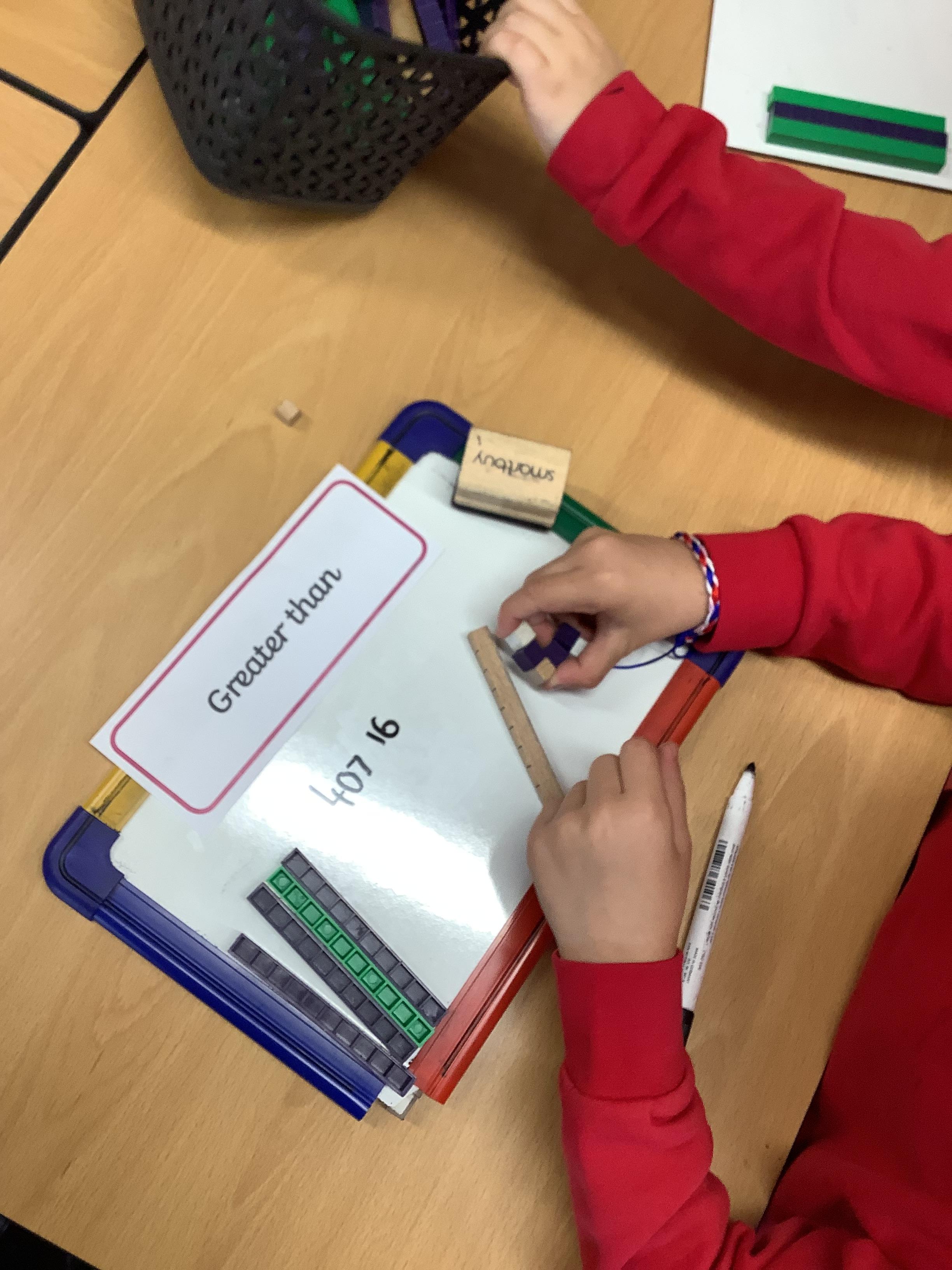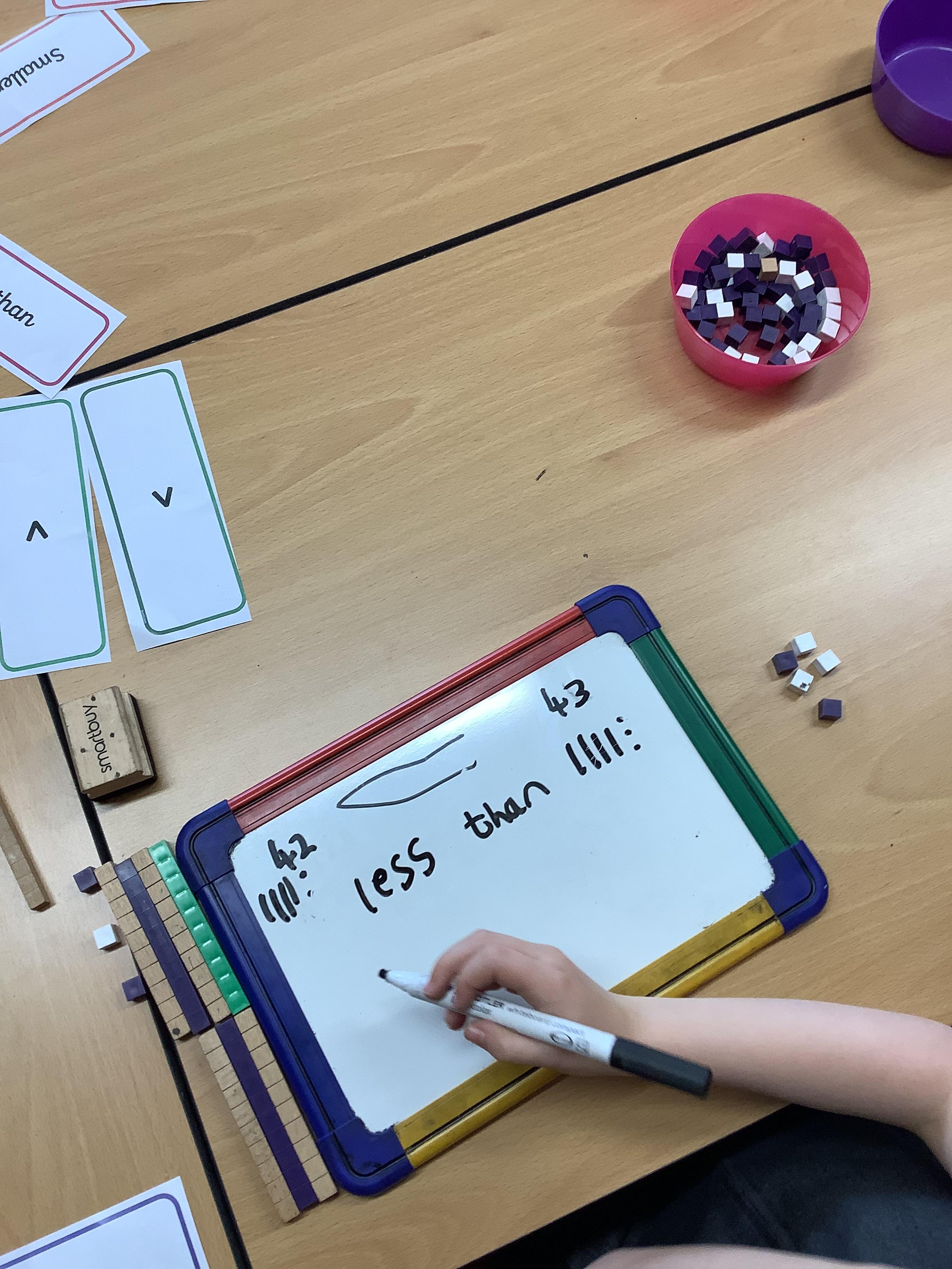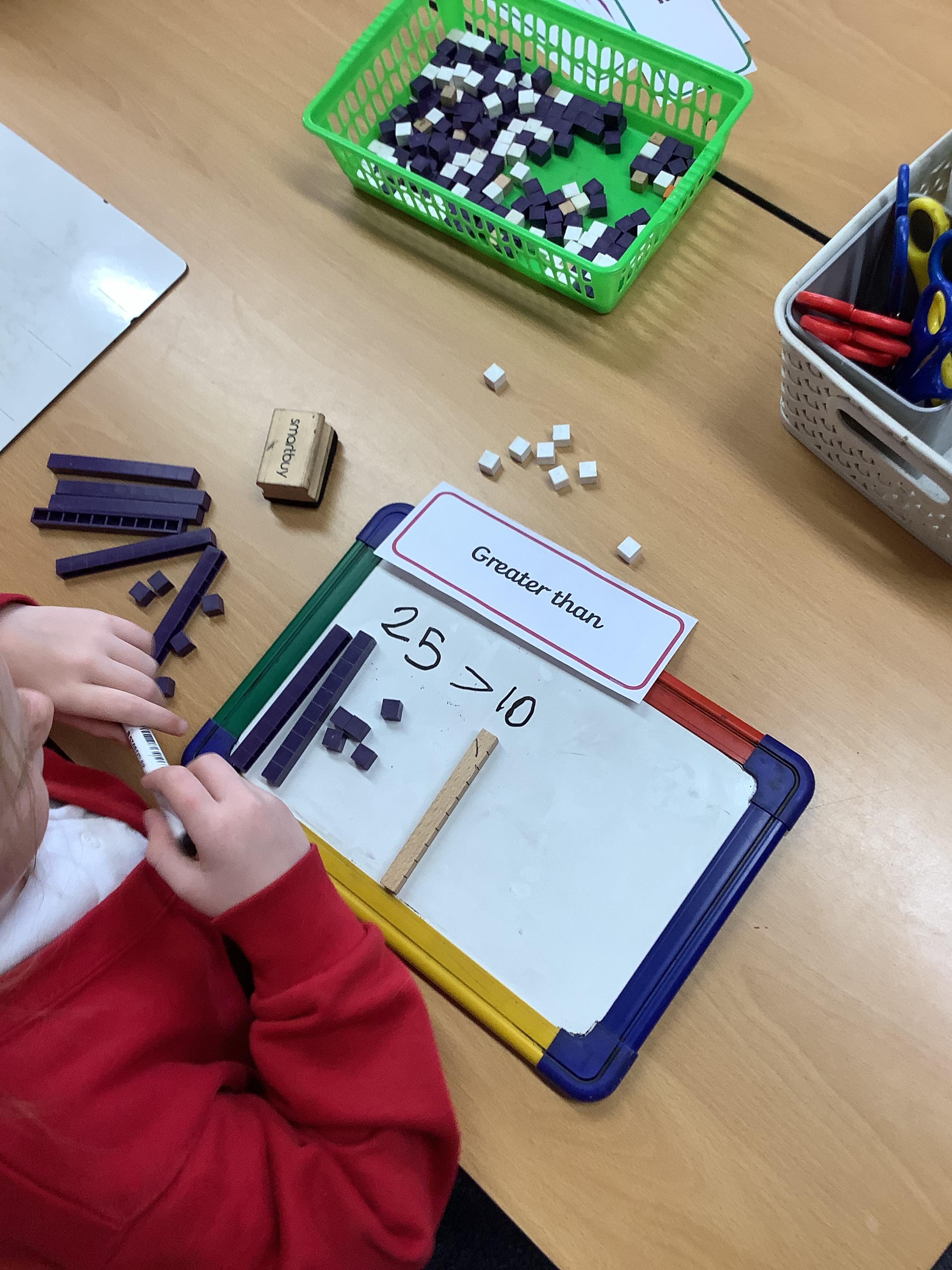 In Maths today, Year 2 have been using the inequality symbols to compare numbers to 100. We used practical resources to show the numbers.