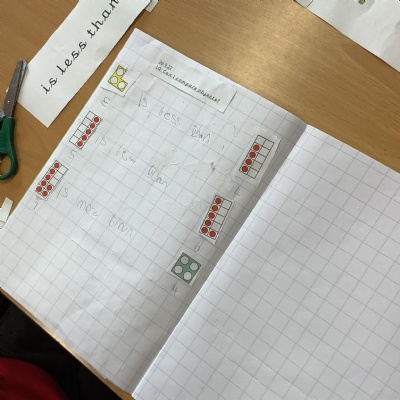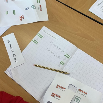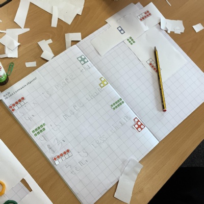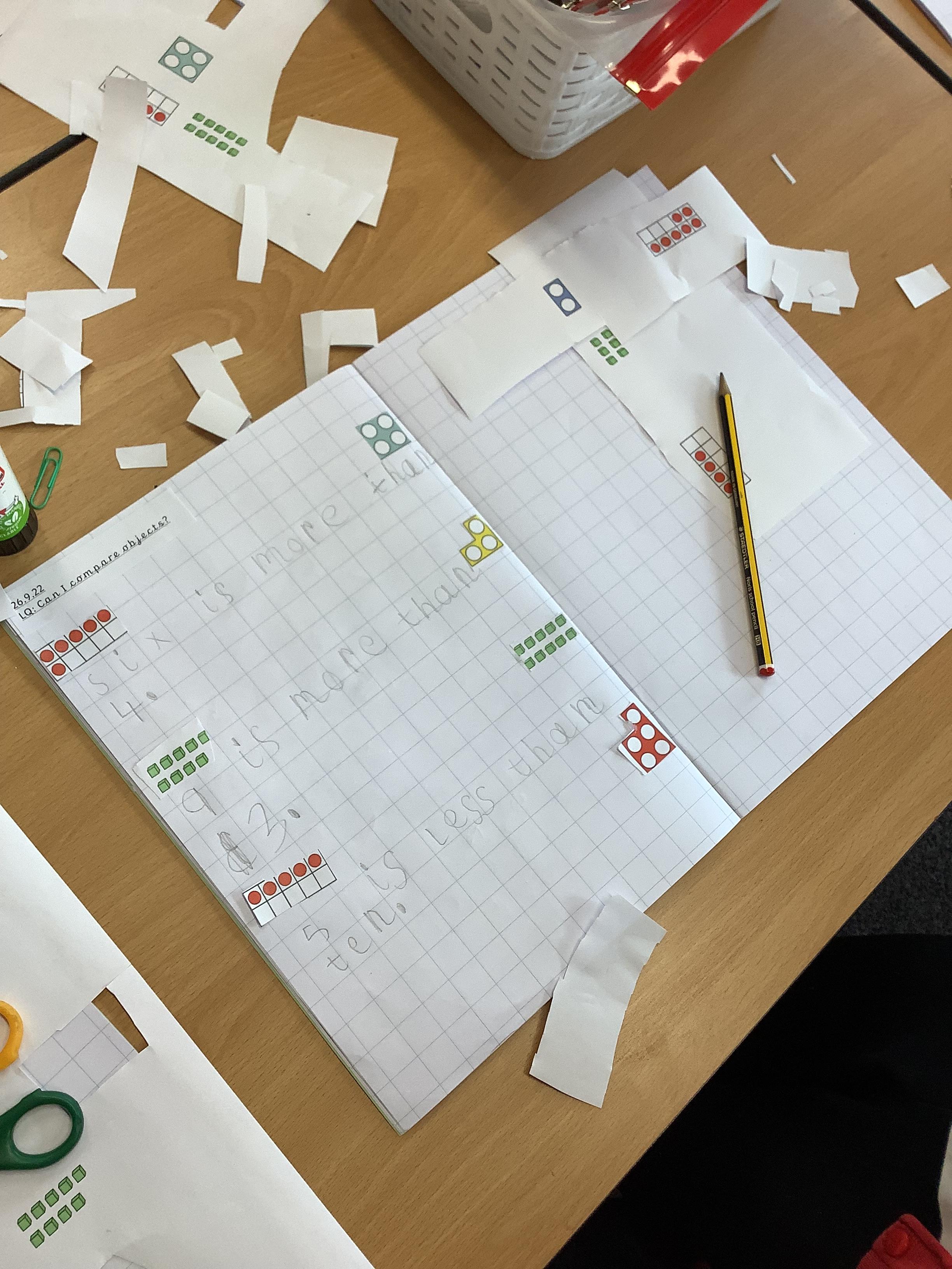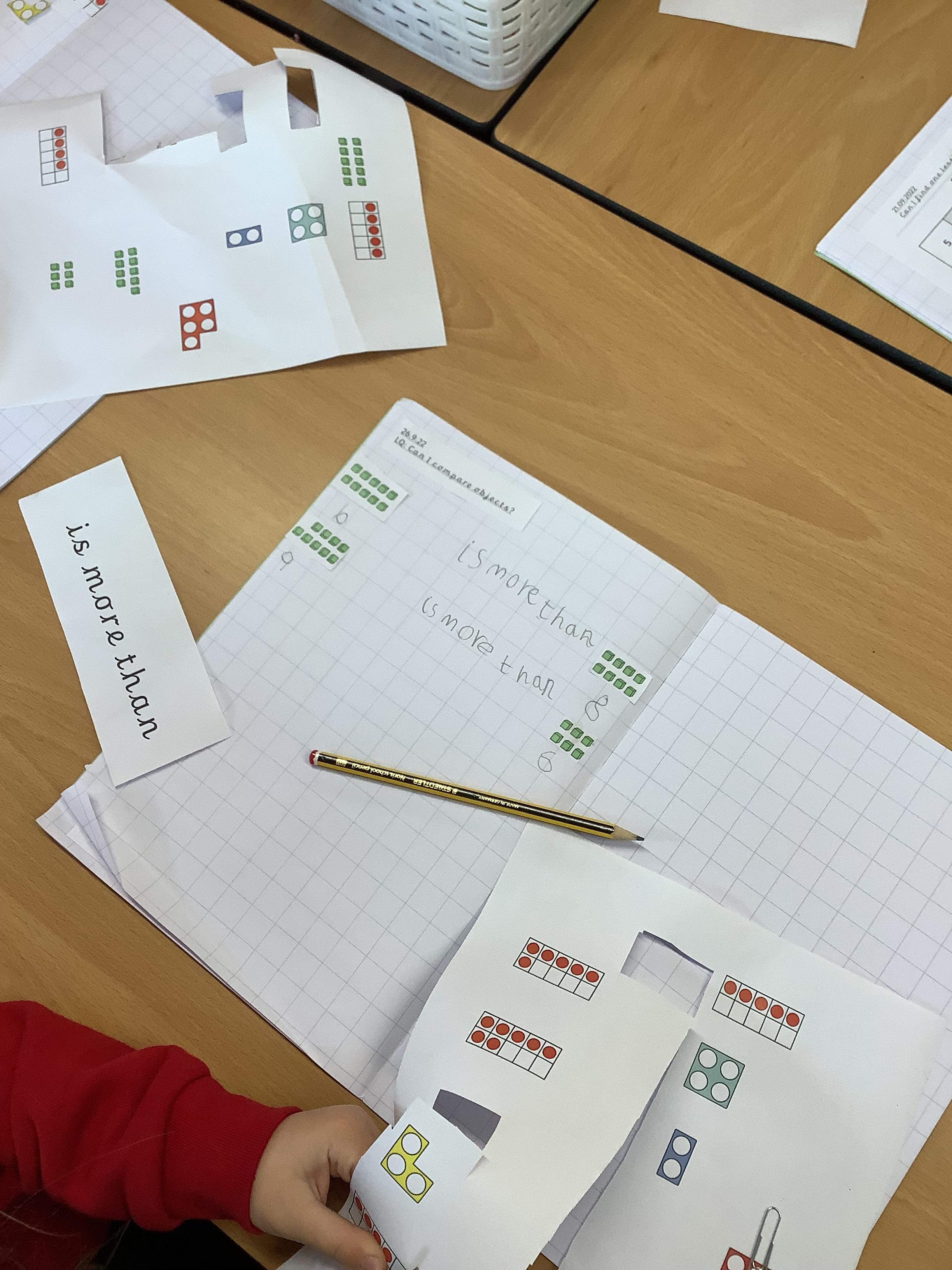 In Maths today, Year 1 have been comparing numbers to 10 using the language more than, less than and equal to.