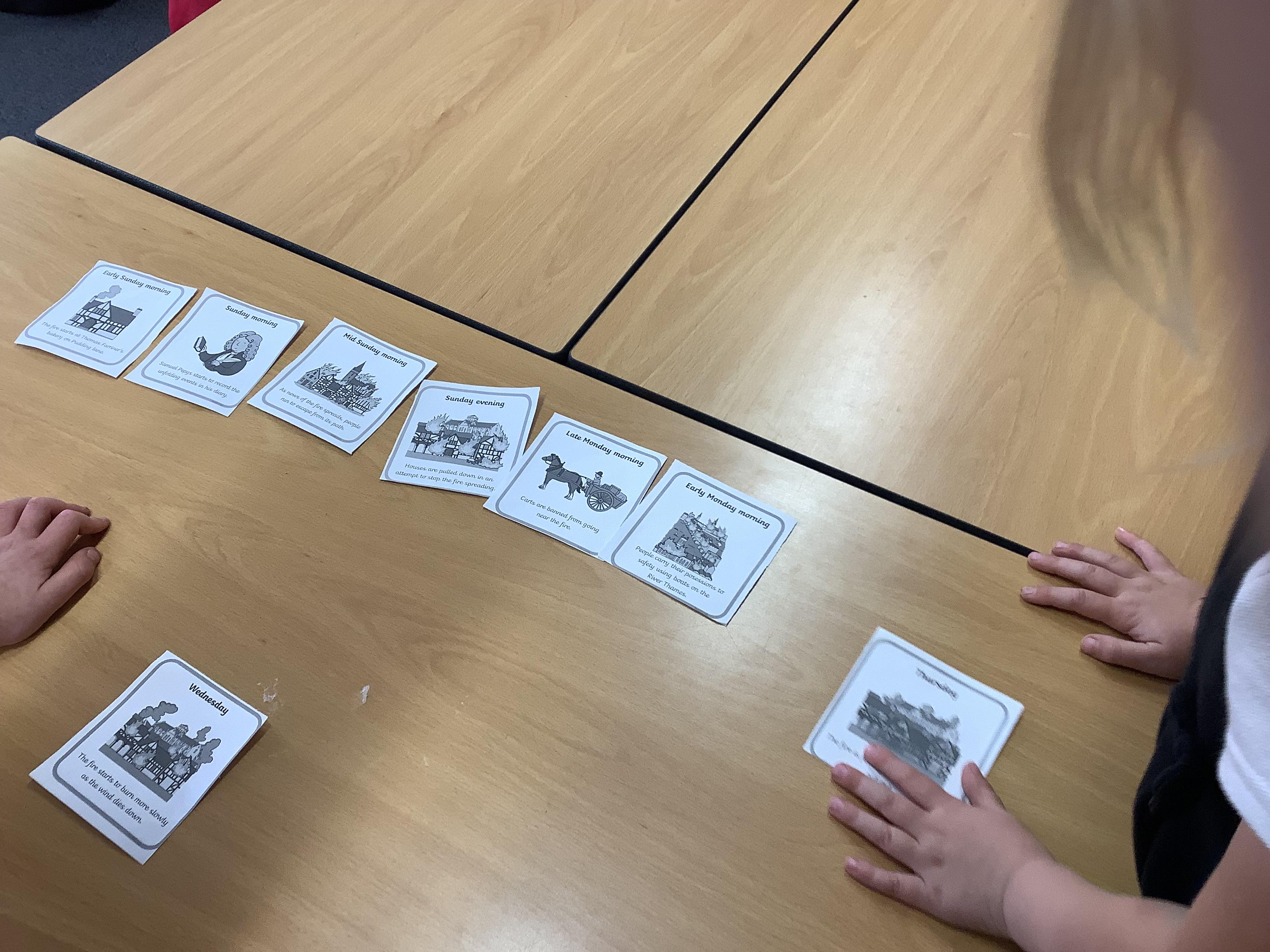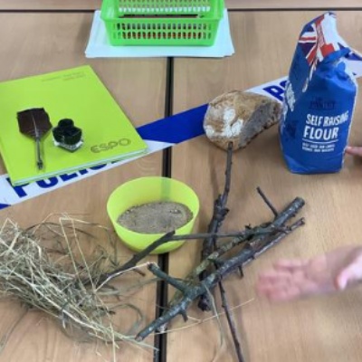 In History this term, we are learning about The Great Fire of London. We started by investigating the significance of all the different items. A diary, ink and a quill, flour and bread, ash, wood and straw.
