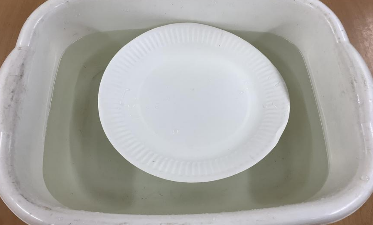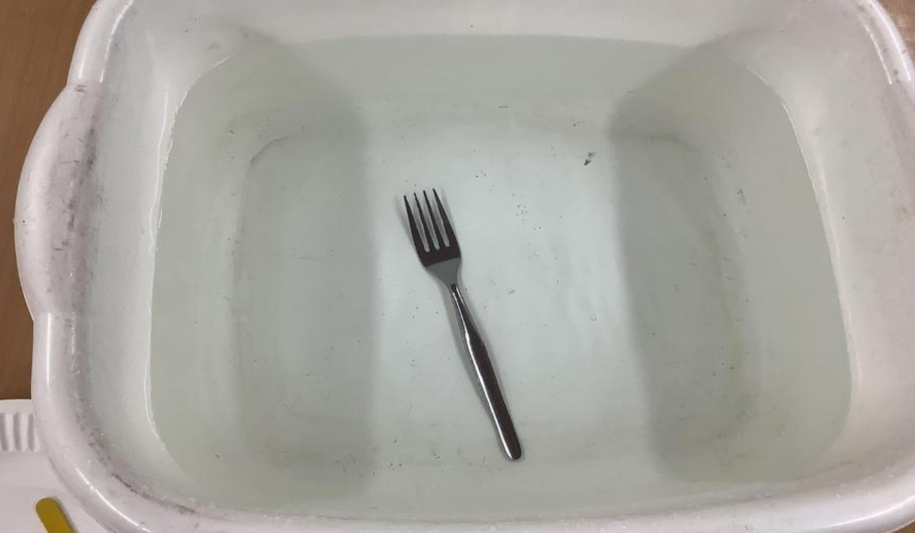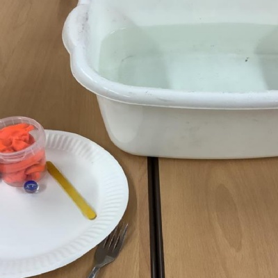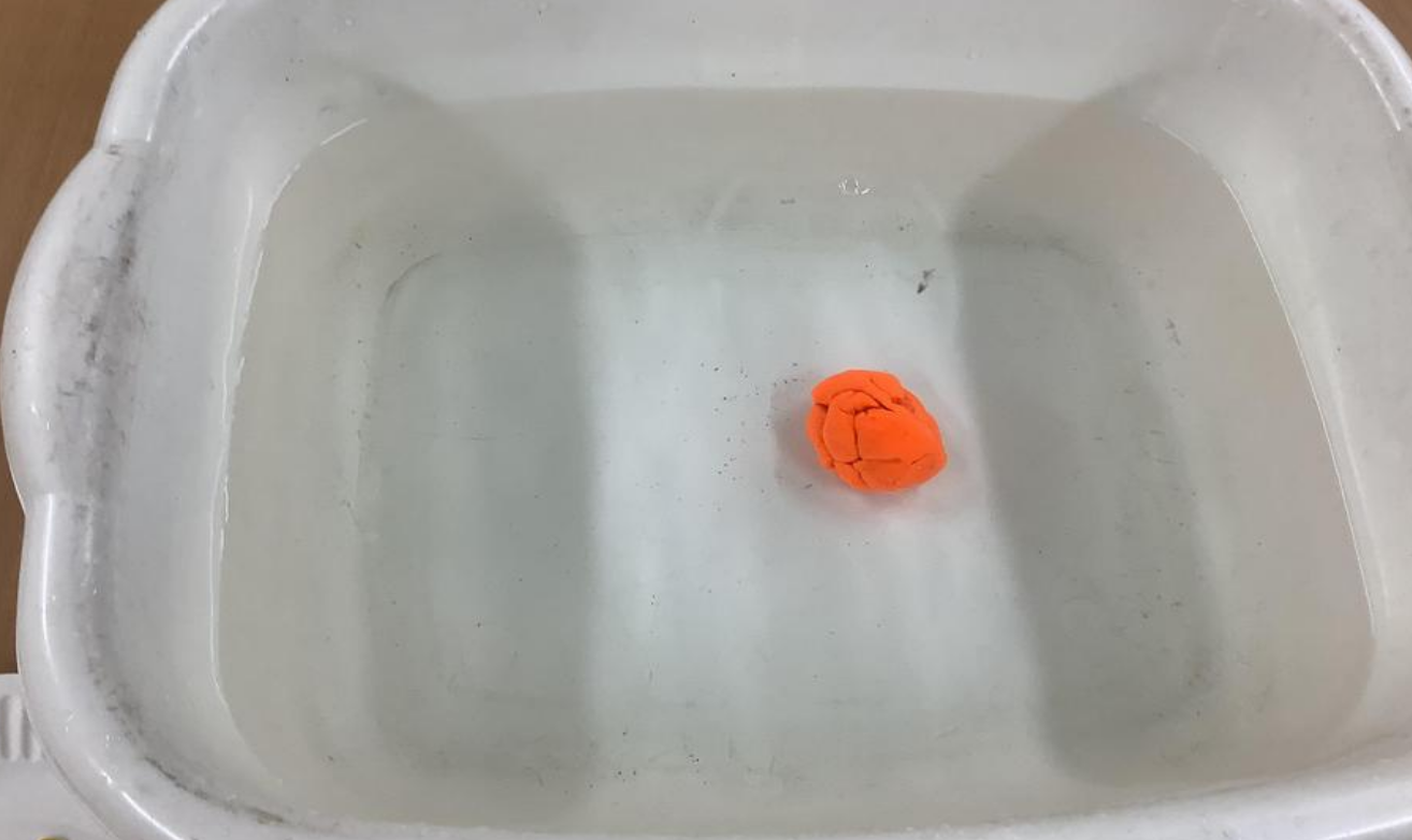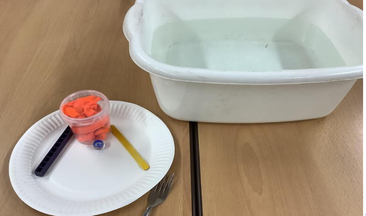 We had a bowl, water, playdoh, marble, lollipop stick, plate, fork. First we had to say what the object was and what material it was made of then we predicted whether it would float or sink before we carried out the investigation.