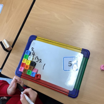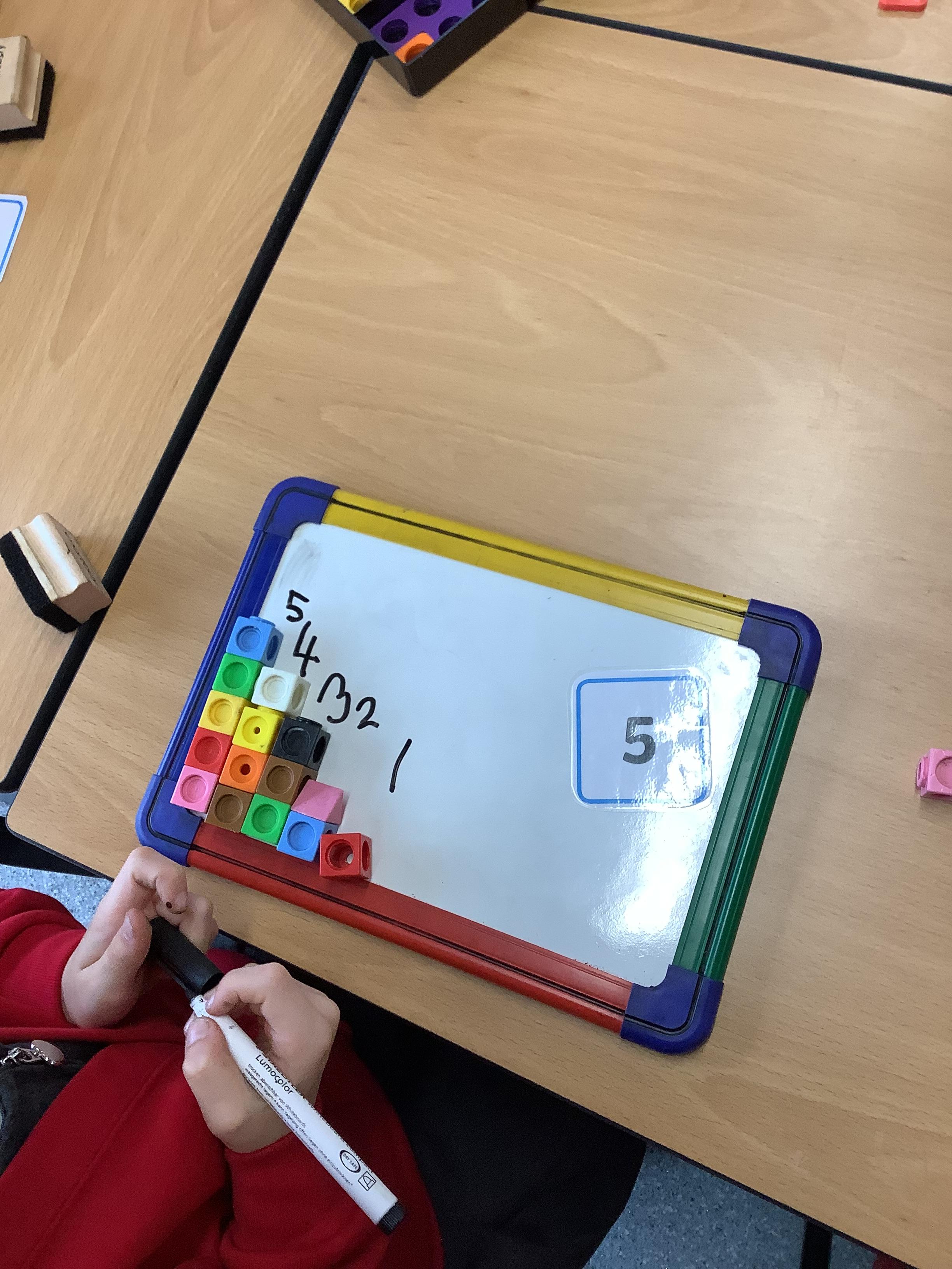 In Maths this week, Year 1 have been finding one more and one less than numbers to 10. We practiced counting backwards from 10 to help us find one less.
