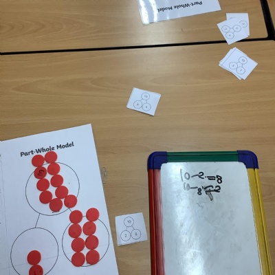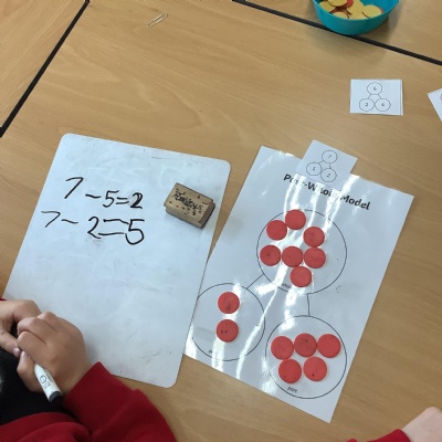 In Maths, Y1 are exploring subtraction. Today we used part-whole models and our knowledge of partitioning to write subtraction number sentences.