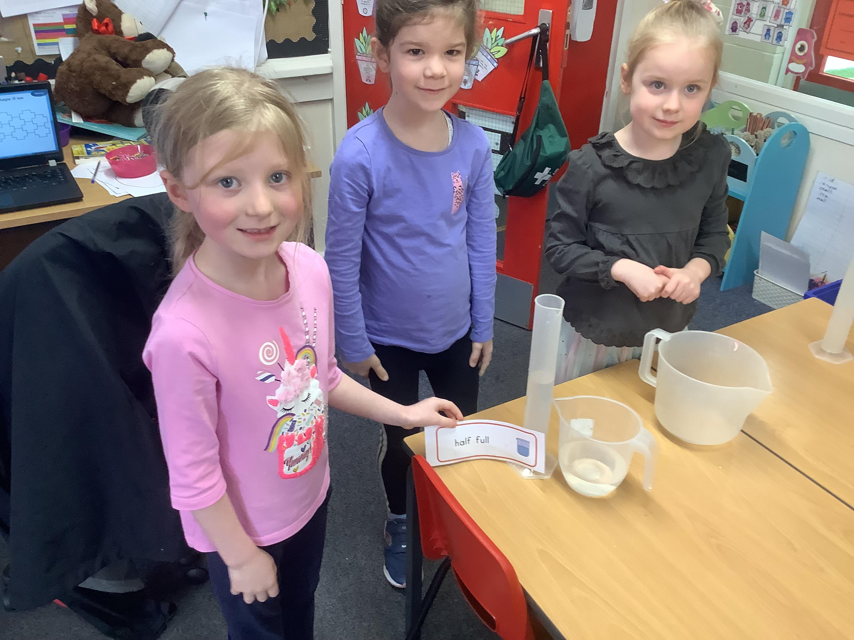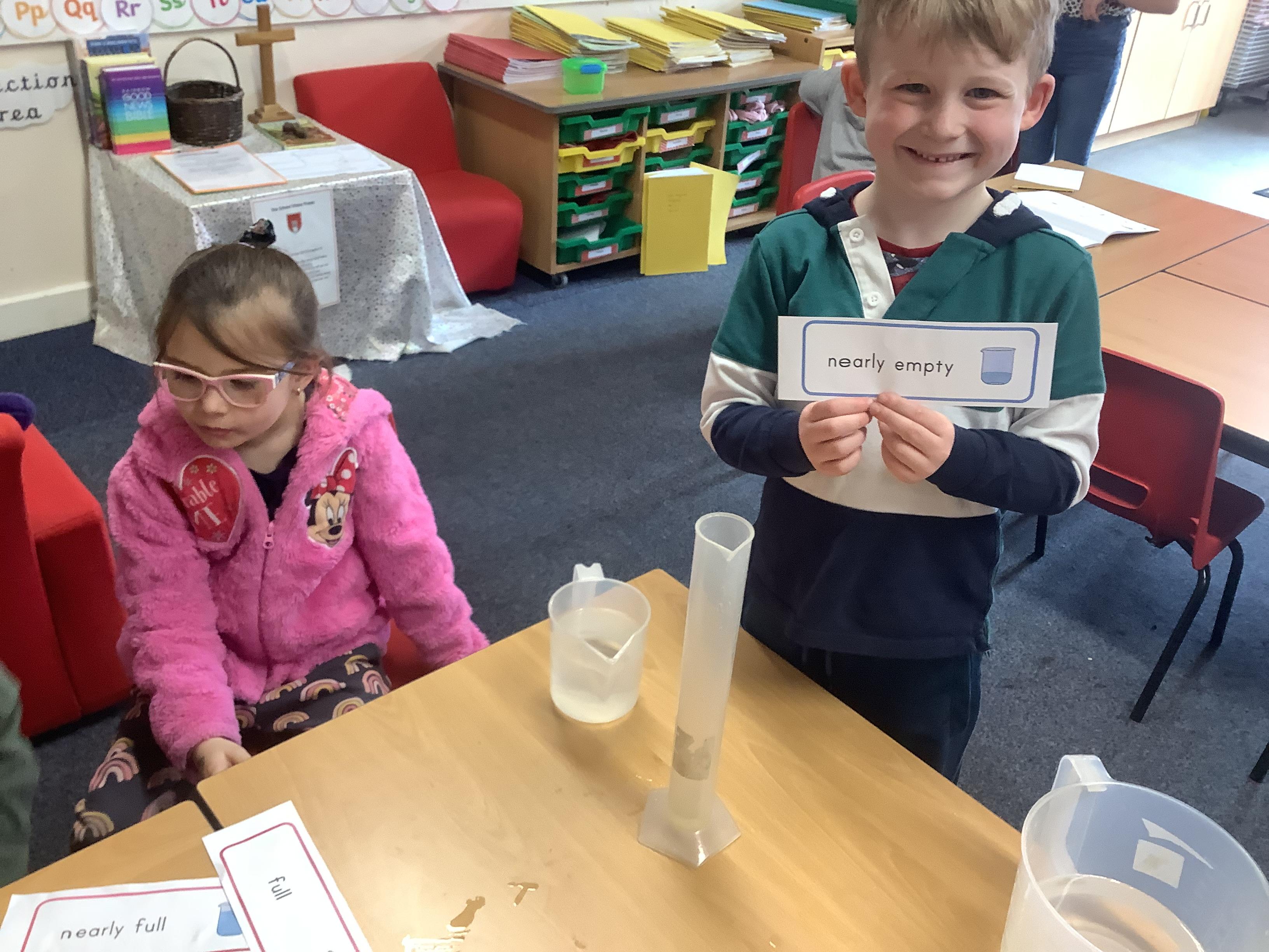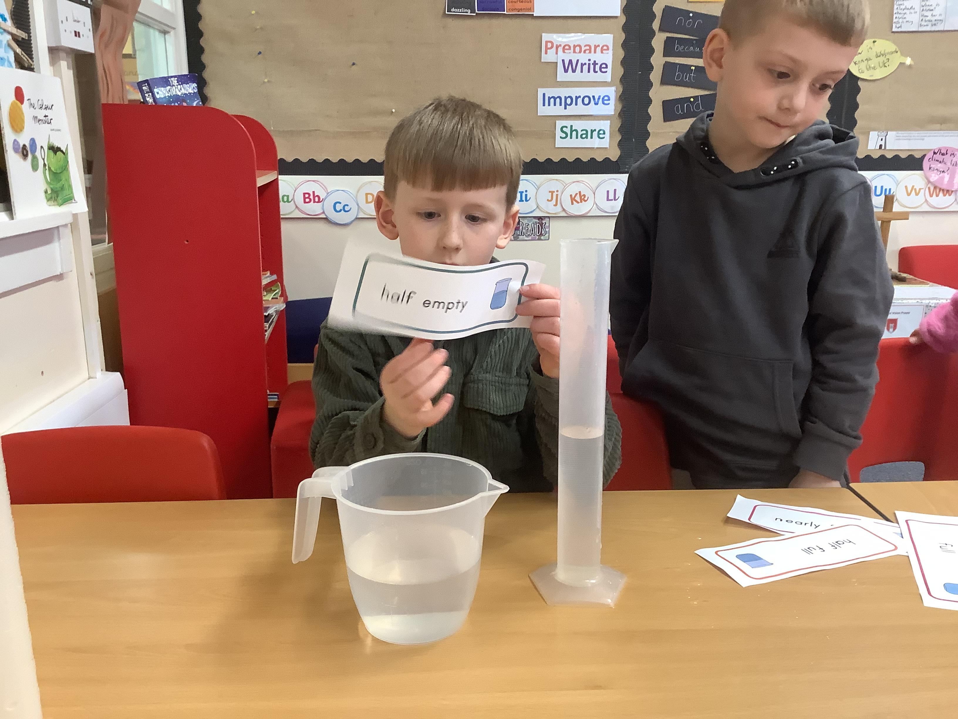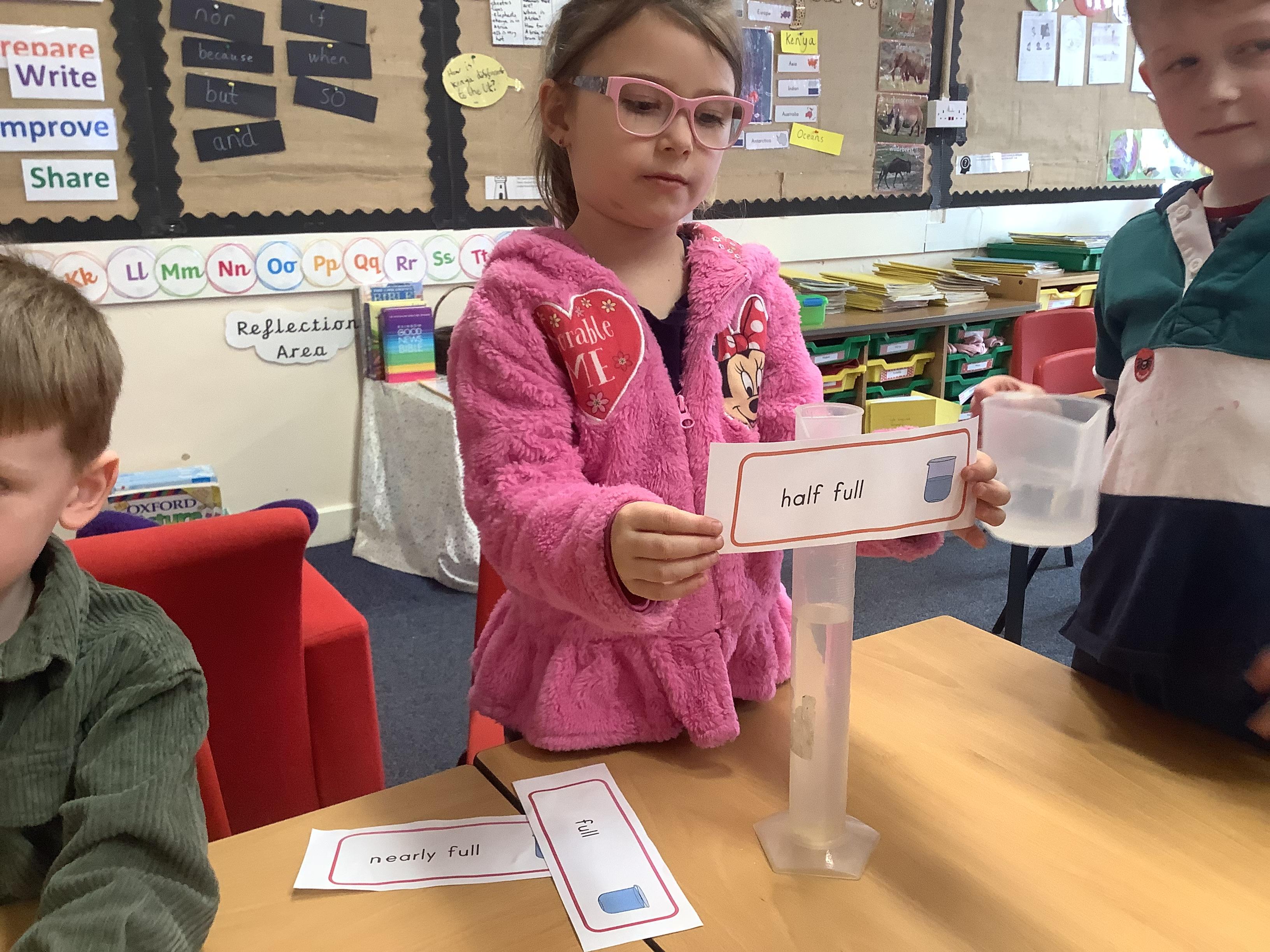 In Year 1 maths we discussed the difference between capacity and volume. We had to label containers which were full, empty , almost full and almost empty.