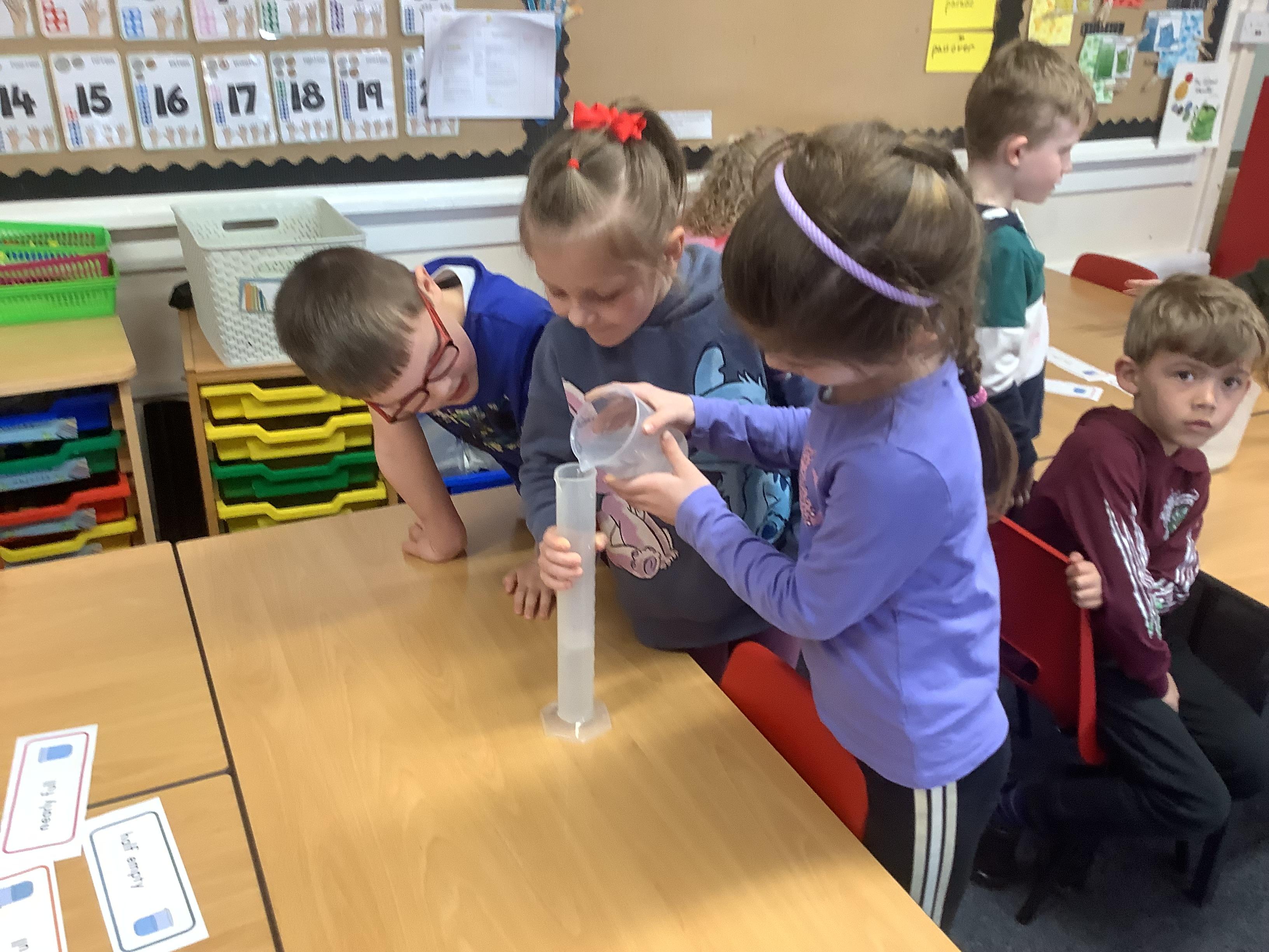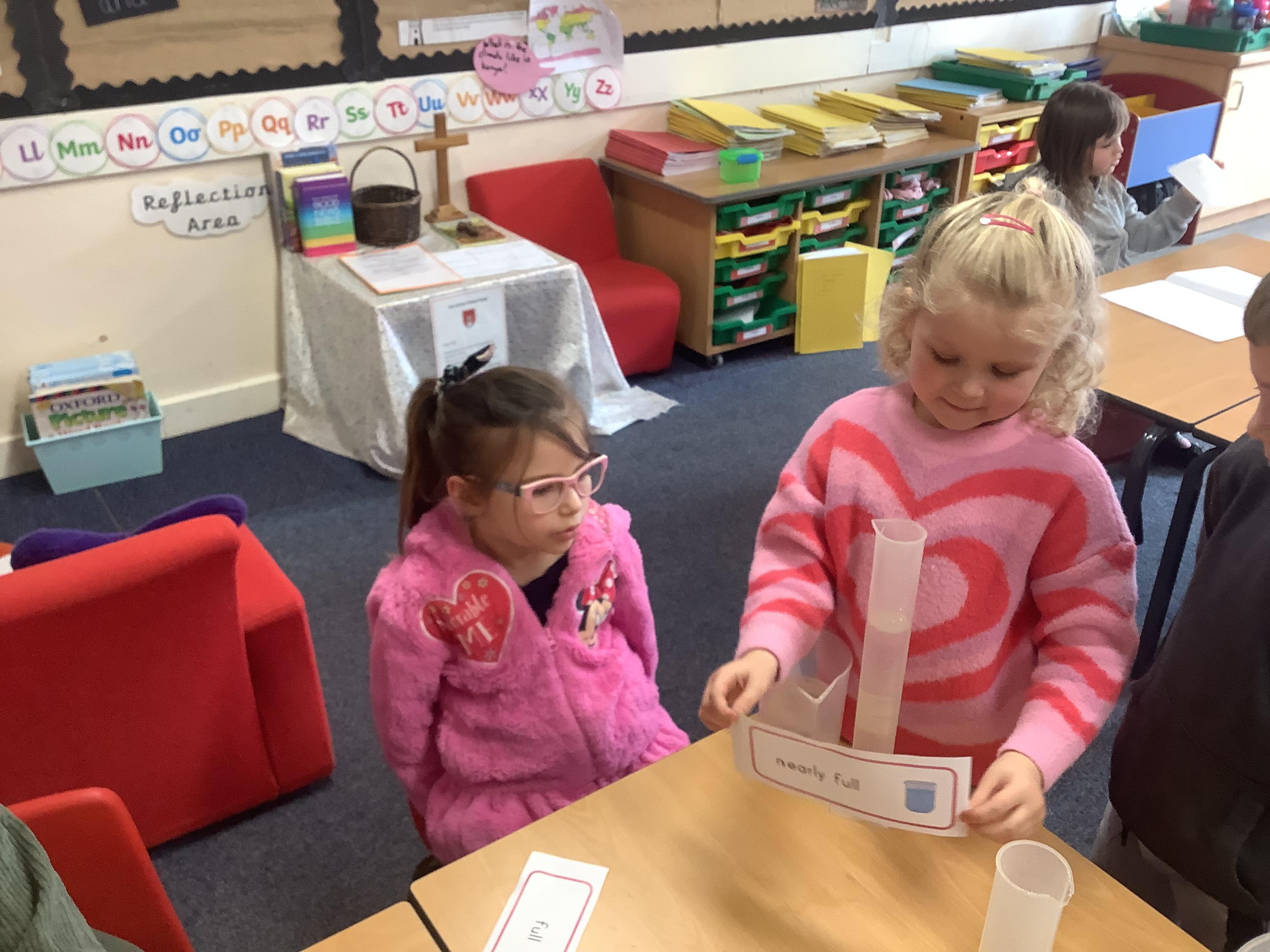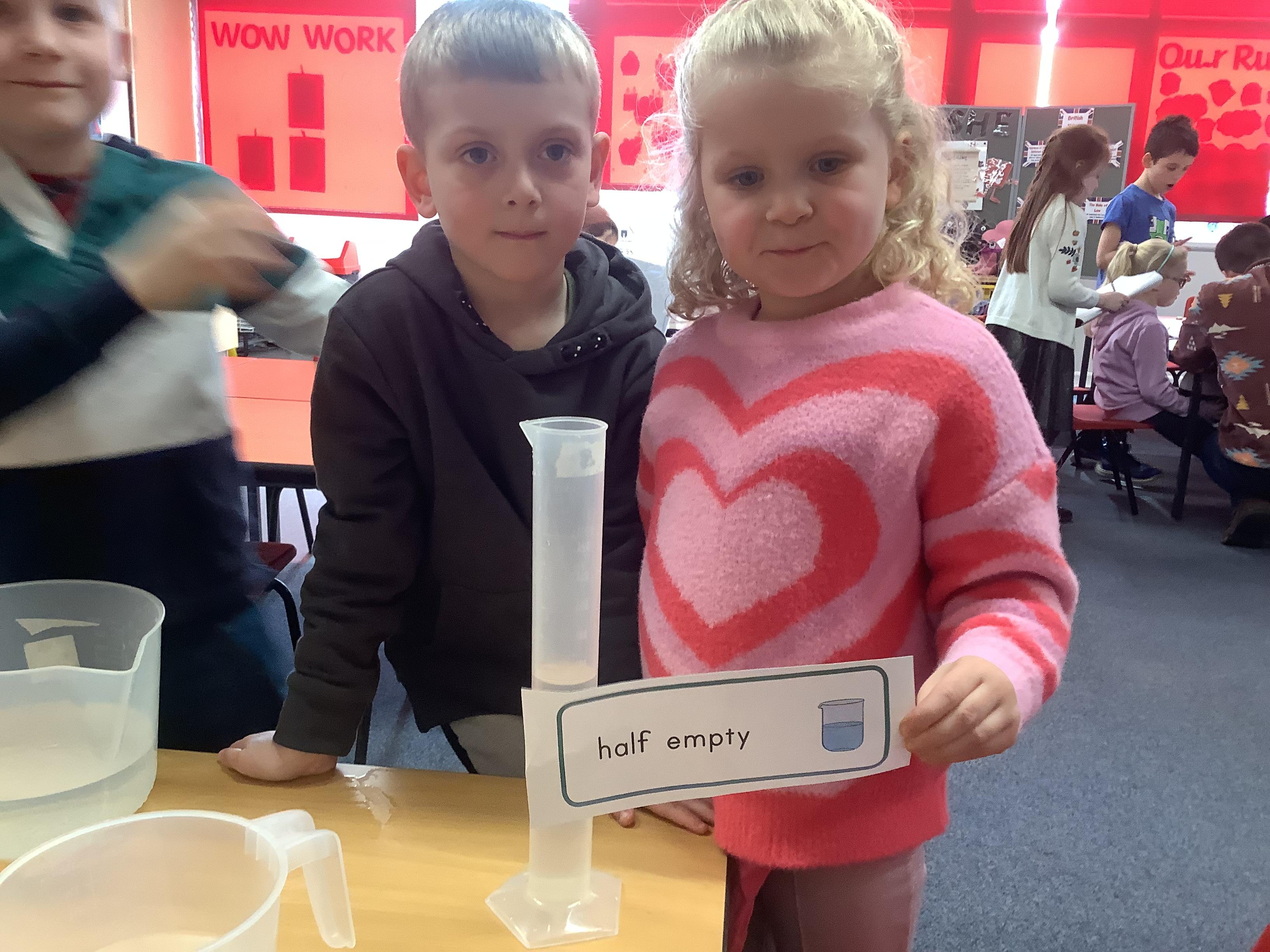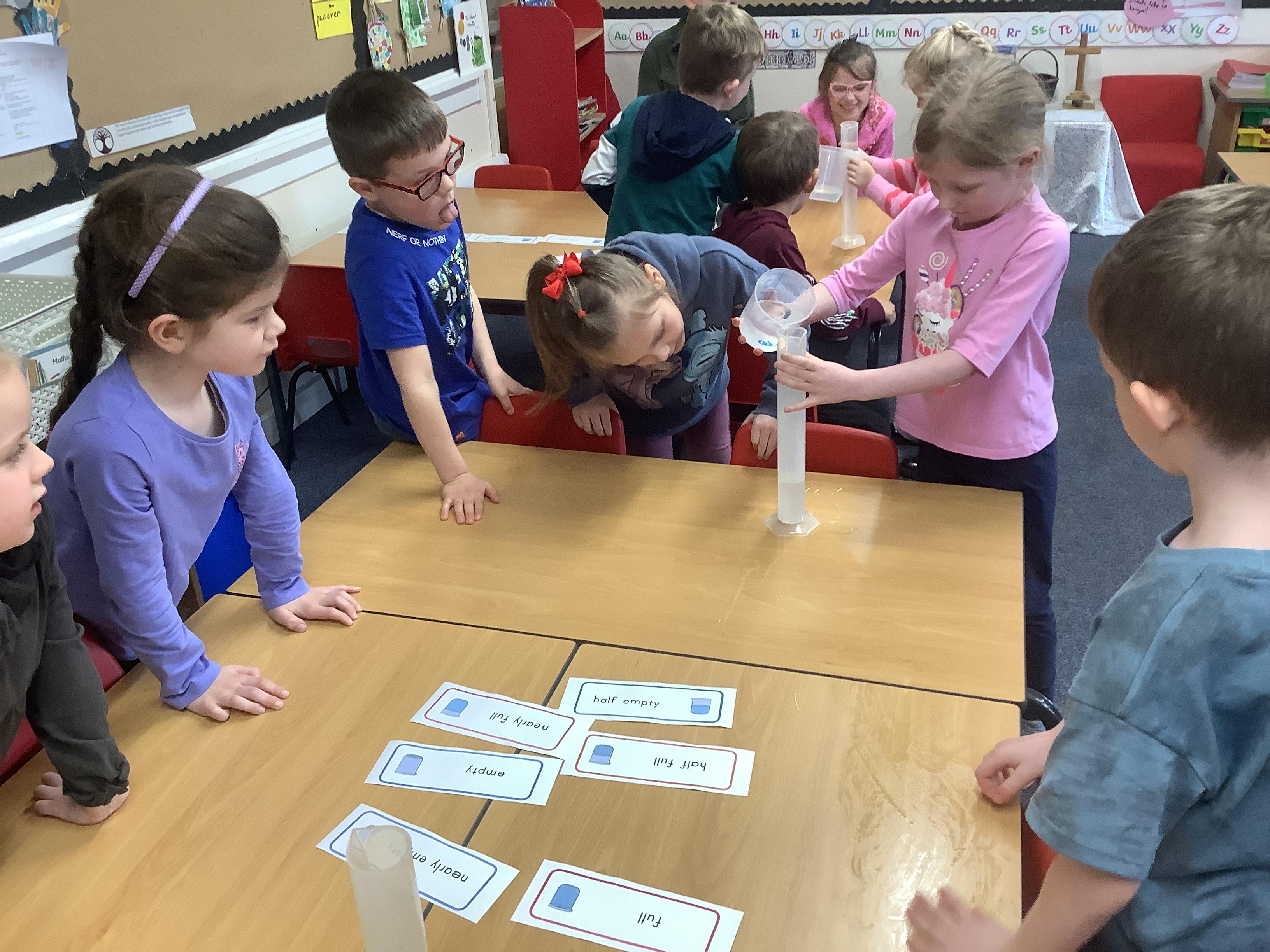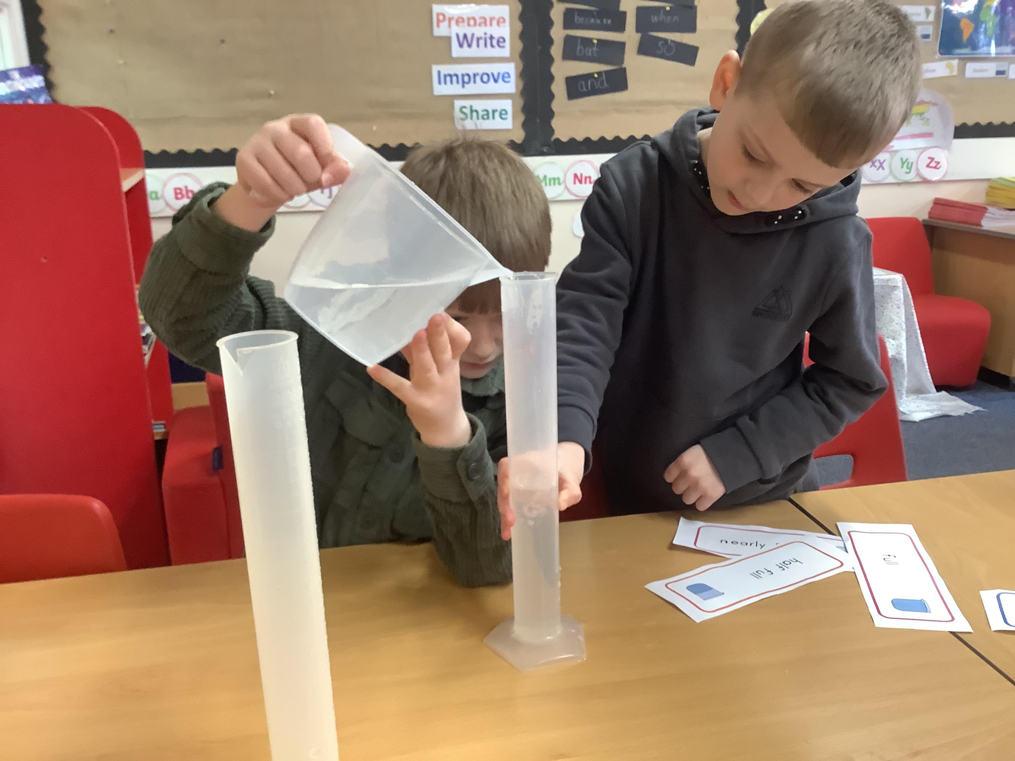In Year 1 maths we discussed the difference between capacity and volume. We had to label containers which were full, empty , almost full and almost empty.
