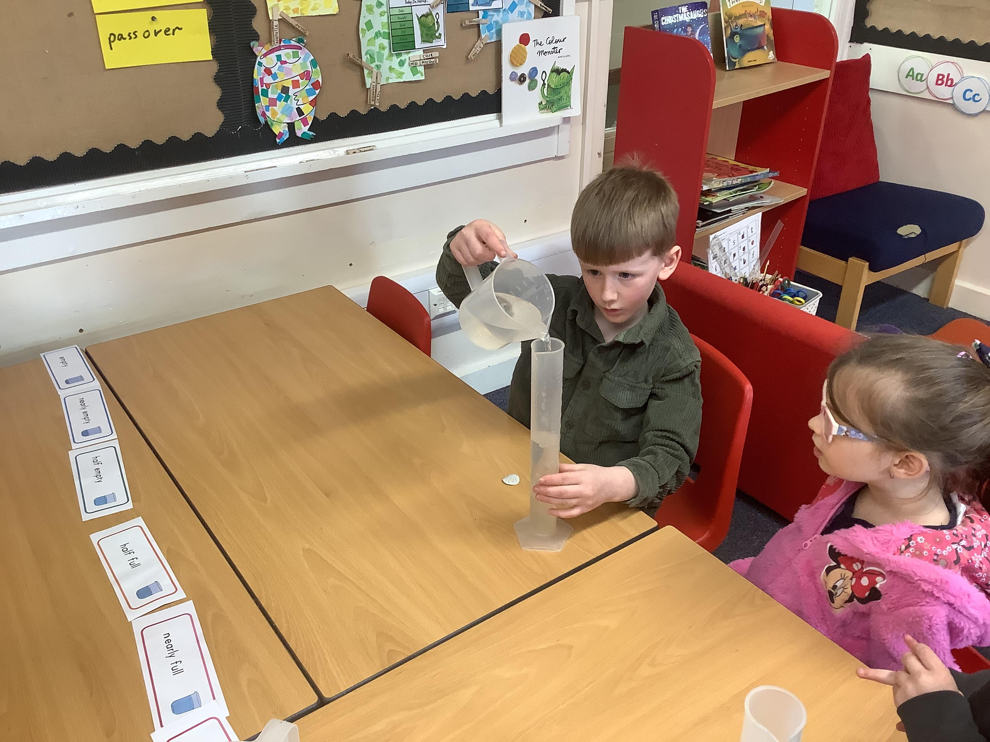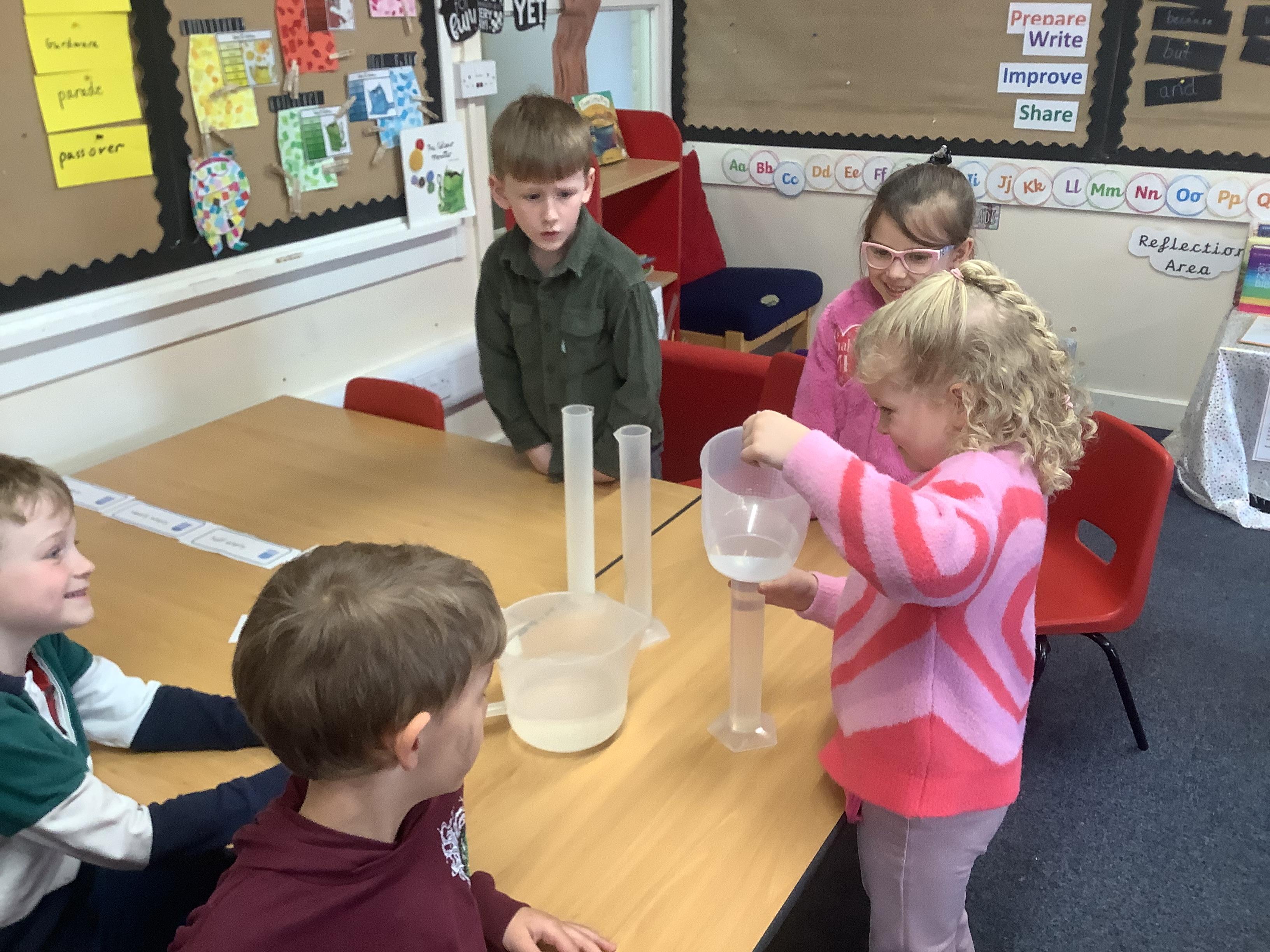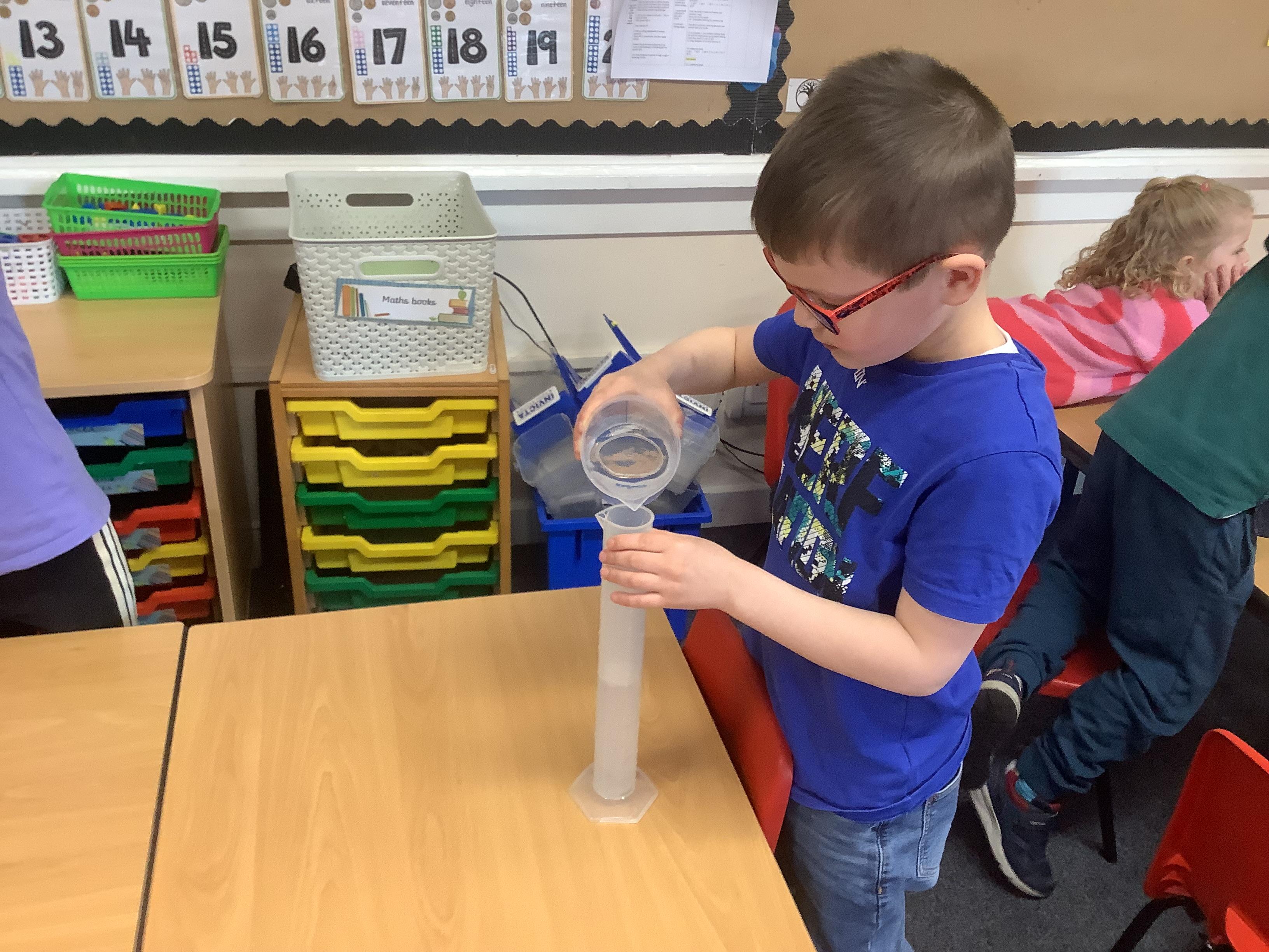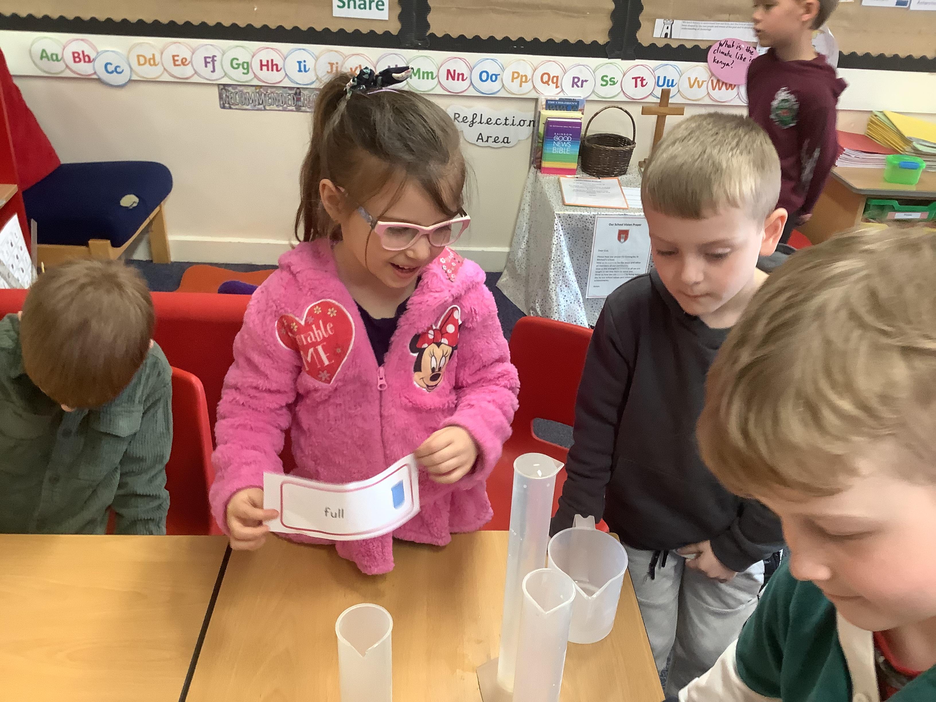 In Year 1 maths we discussed the difference between capacity and volume. We had to label containers which were full, empty , almost full and almost empty.